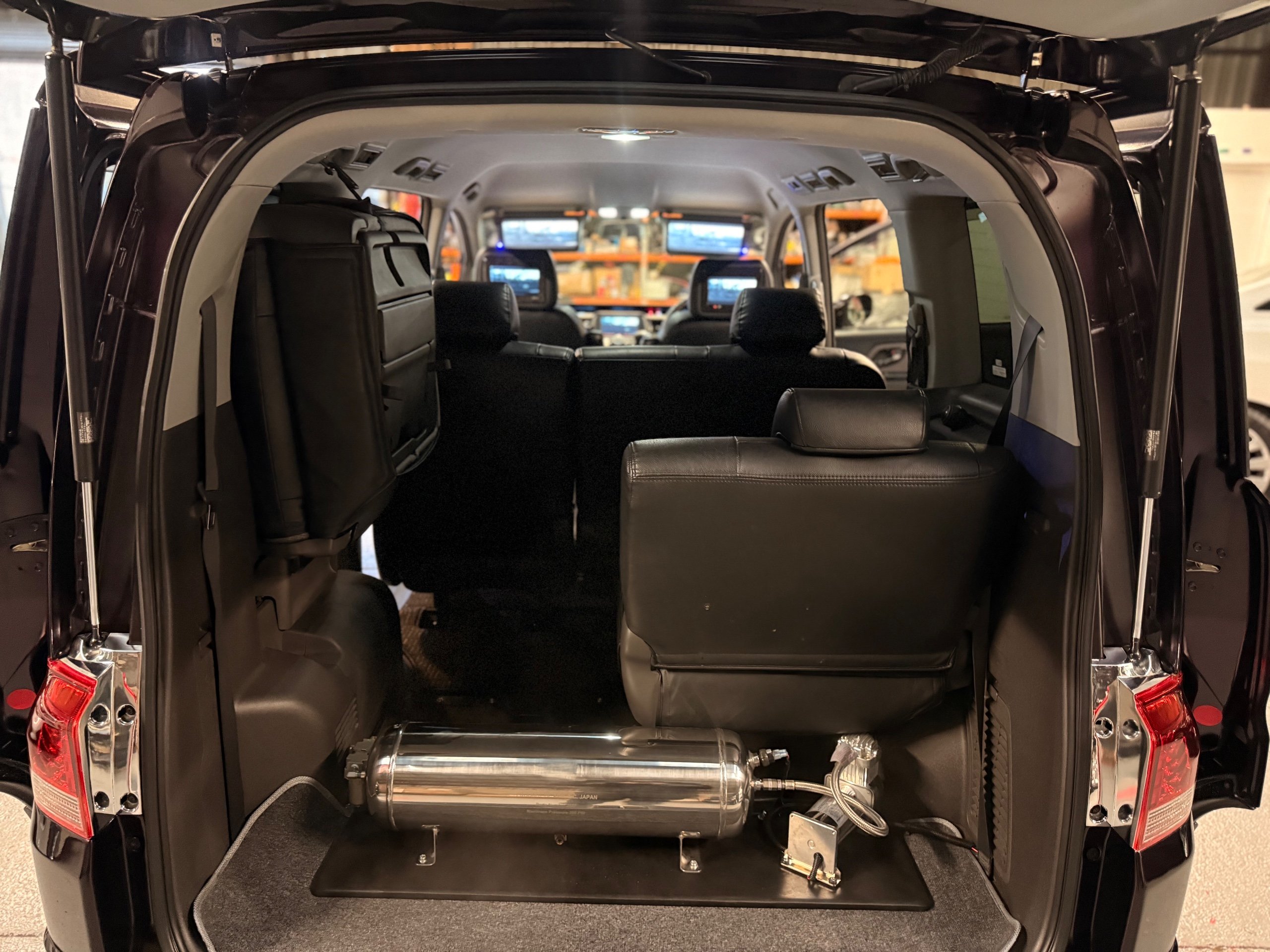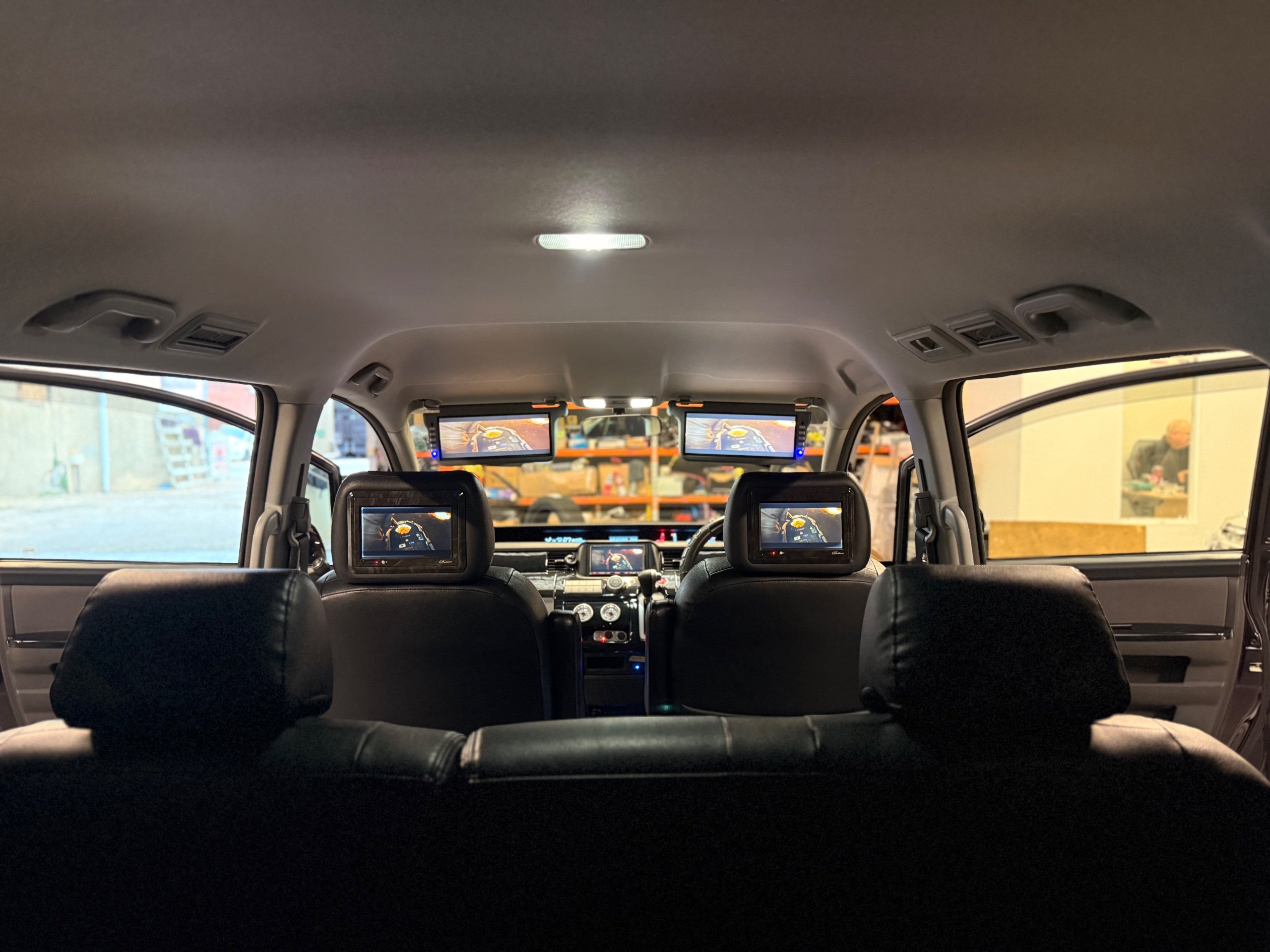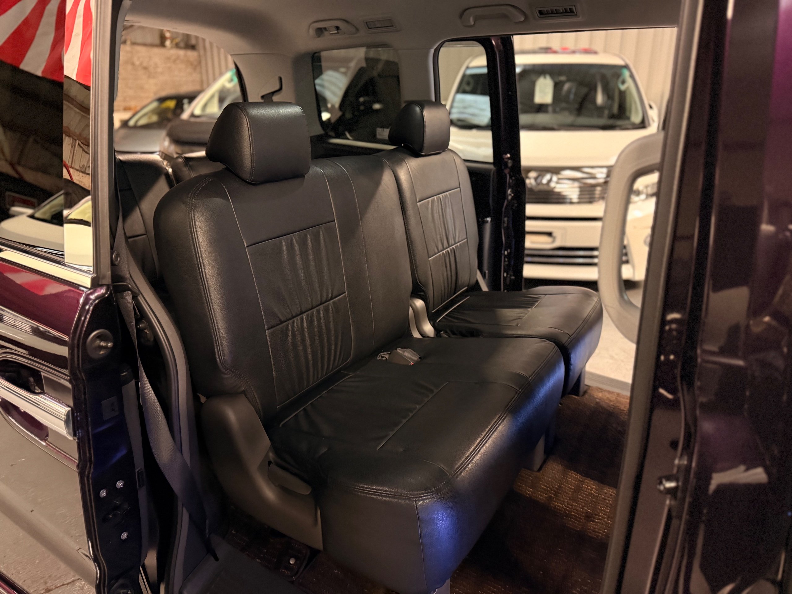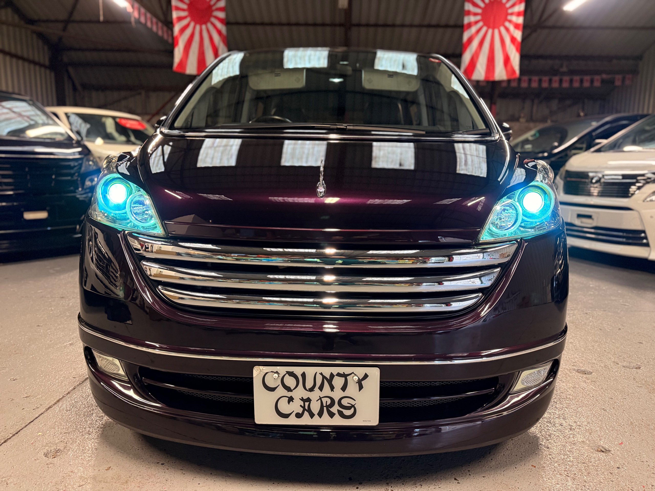 Honda Stepwagon 2.0 IVTEC Automatic G.L.S, Finished in Stunning Unmarked Metallic Purple Paintwork, Full Aero body kit including front and rear spoilers, side door mouldings and boot spoiler, Full l.e.d light conversion including front Angel light headlights, Rear full l.e.d lights, Unmarked 20” Venerdi Chrome Alloys, Full Air Ride Suspension. Brembo brake covers, Bonnet spoiler, Noblesse Quad Exhaust System, Full chrome pack including door rubbers and door mouldings, Only Covered 13,000 Miles From New, 8 Seater, 8 unmarked black leather look seat covers, Full In-car entertainment system including Kenwood speakers and sub, Front sun blinds have been changed to twin monitors, headrest monitors, UK Stereo system, Full dark wood pack including dash and door covers, This Stepwgn has been a show car in Japan, only covering 13,000 Miles, All the standard new parts come with the car including