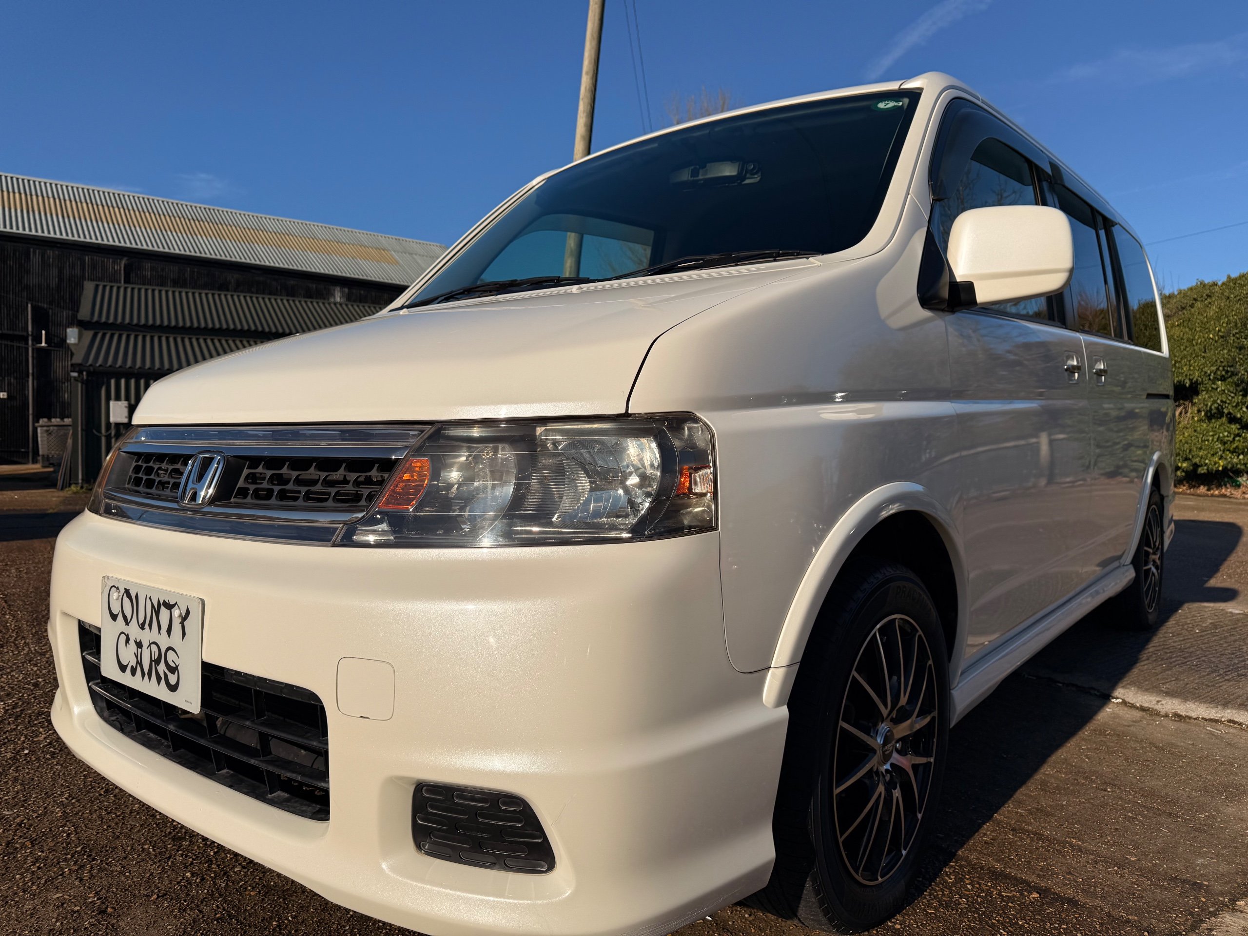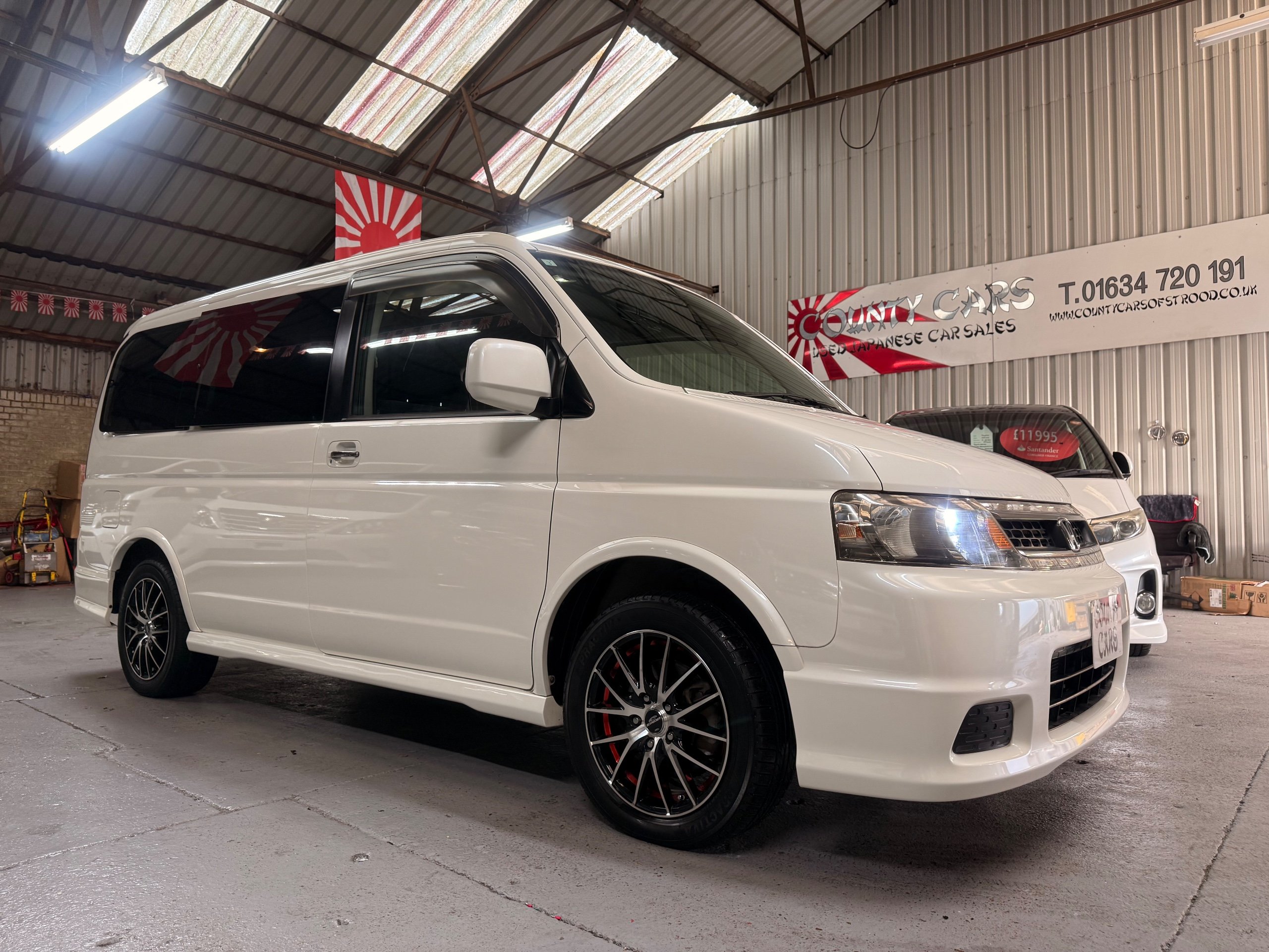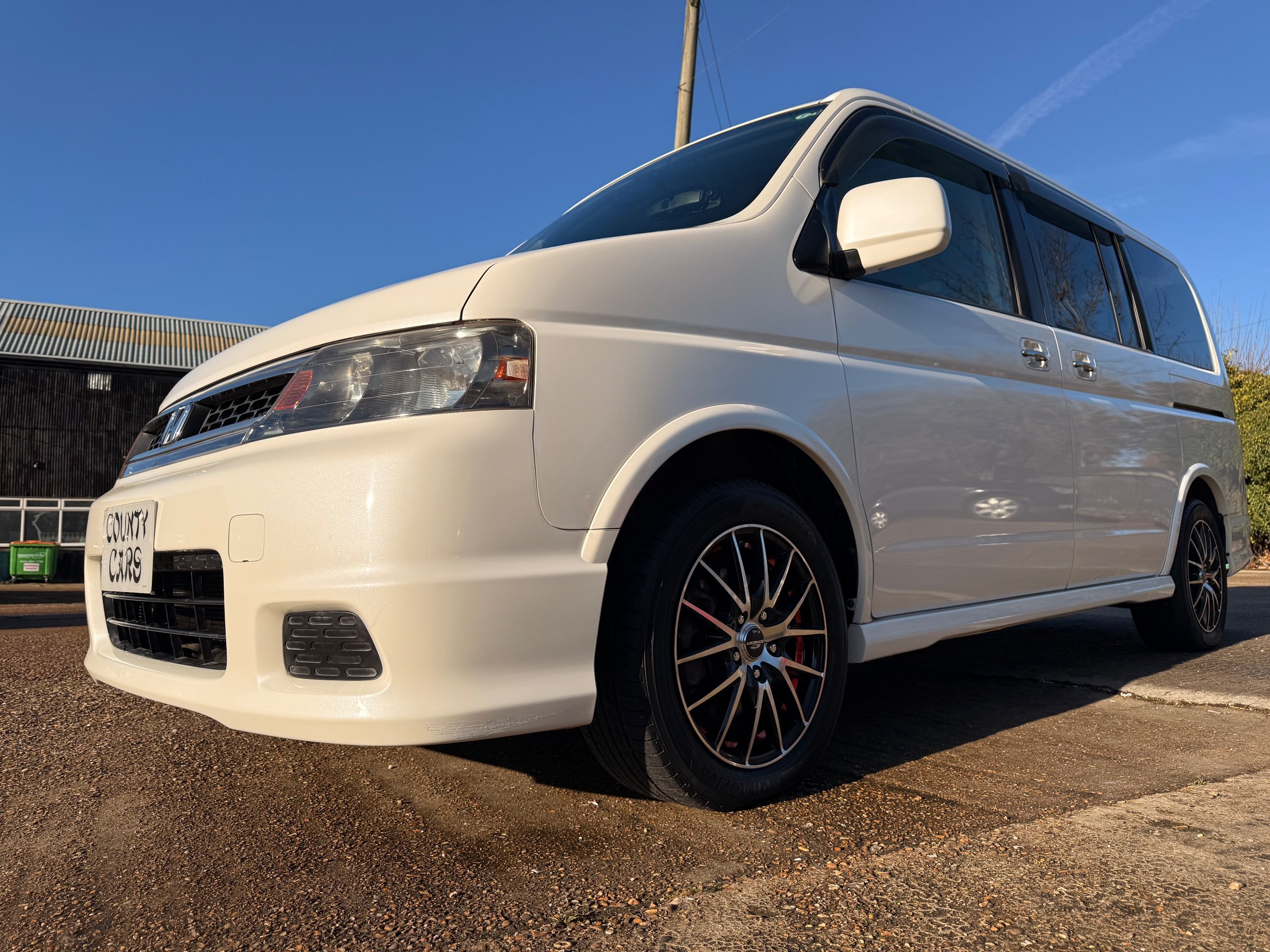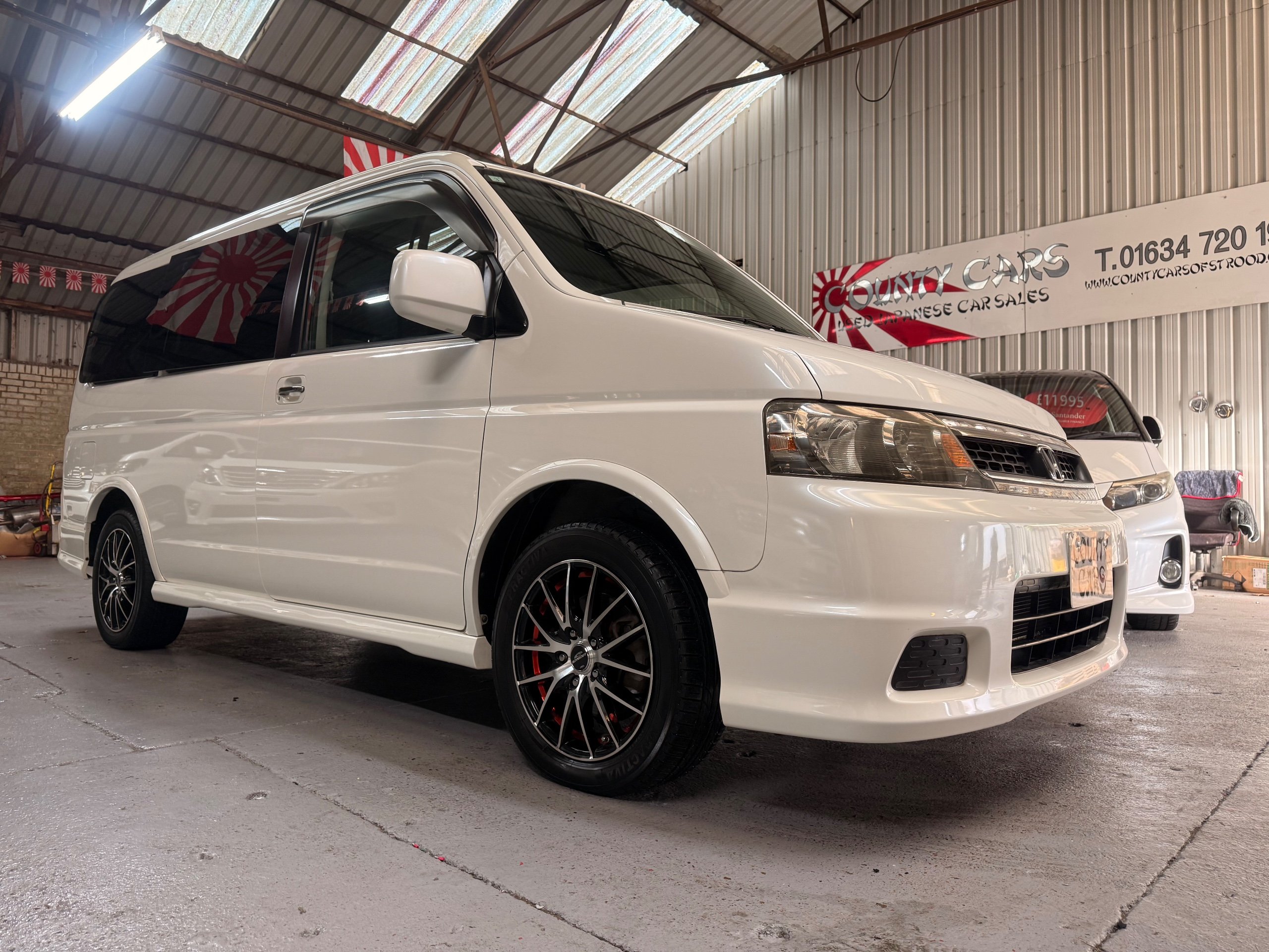 Honda Stepwagon 2.0 IVTEC Auto Spada Model, 2005-05-Reg The Last of the RF Models, Very RARE Nowadays Especially as a Fresh Import, We haven’t been able to import one of these for years. This particular Stepwgn has only covered 51,000 Miles from new, Finished in pearlescent white paintwork, Absolutely stunning 16” Schneider Diamond Cut with black gloss centres with red back Alloys, Full Privacy Glass, Electric Soft Closing Sliding Passenger Door, Rea Spoiler. 8 Seater, 8 Unblemished Black velour Seats, black gloss dash, The front seats have armrests, The Centre seats fold up and slides forward forward, The Rear seats fold up to the side to allow access to a huge boot, Factory Honda Cool-Box, Air-Con, Climate Control, Only 51,000 Miles, U.K Speedo Conversion, UK Stereo will be fitted, it has the original minidisc Japanese stereo at the moment. All The Genuine Paperwork From Japan Including The Auction Sheet and Export Certificate To verify the Mileage and Condition before it left Japan