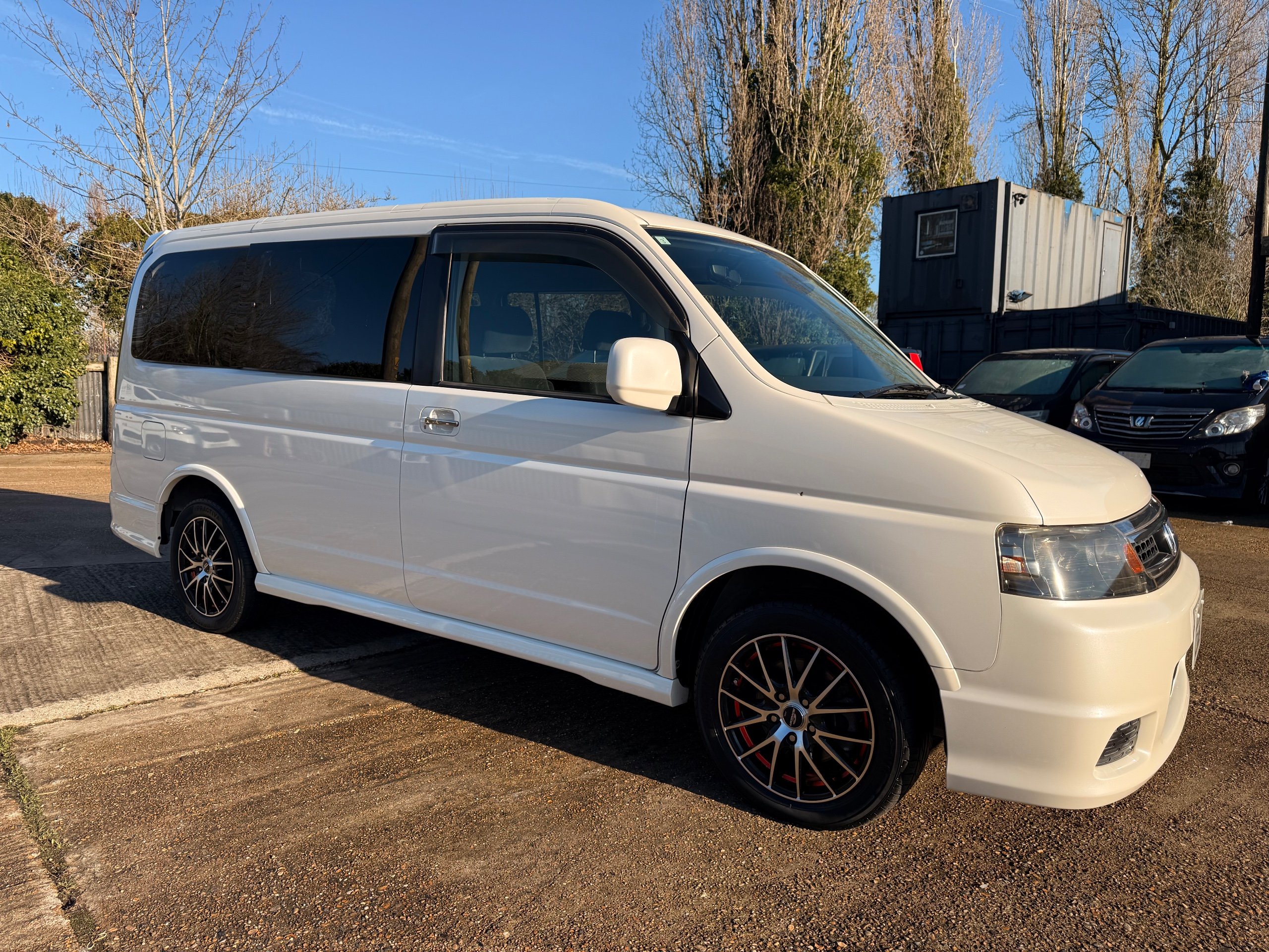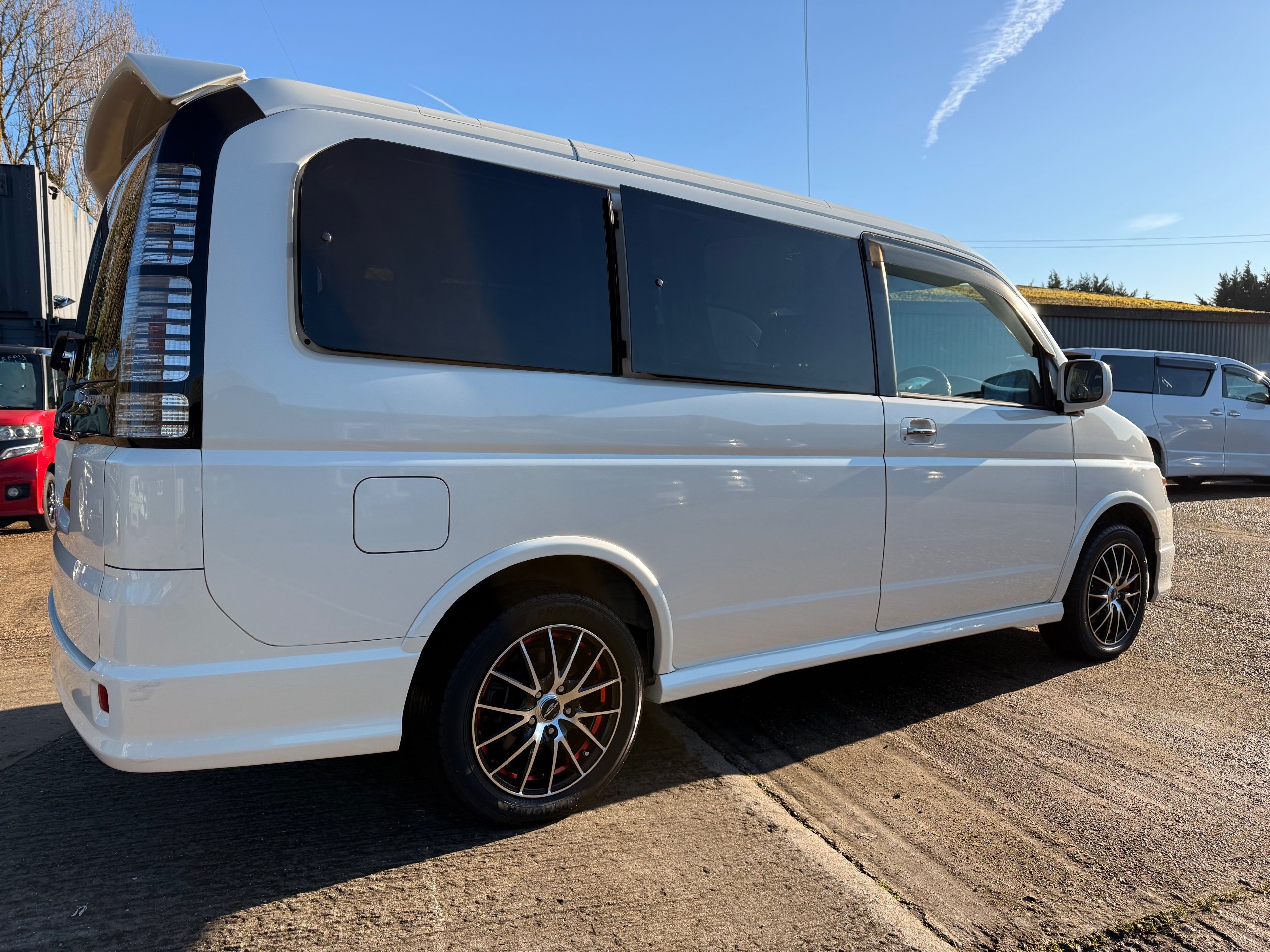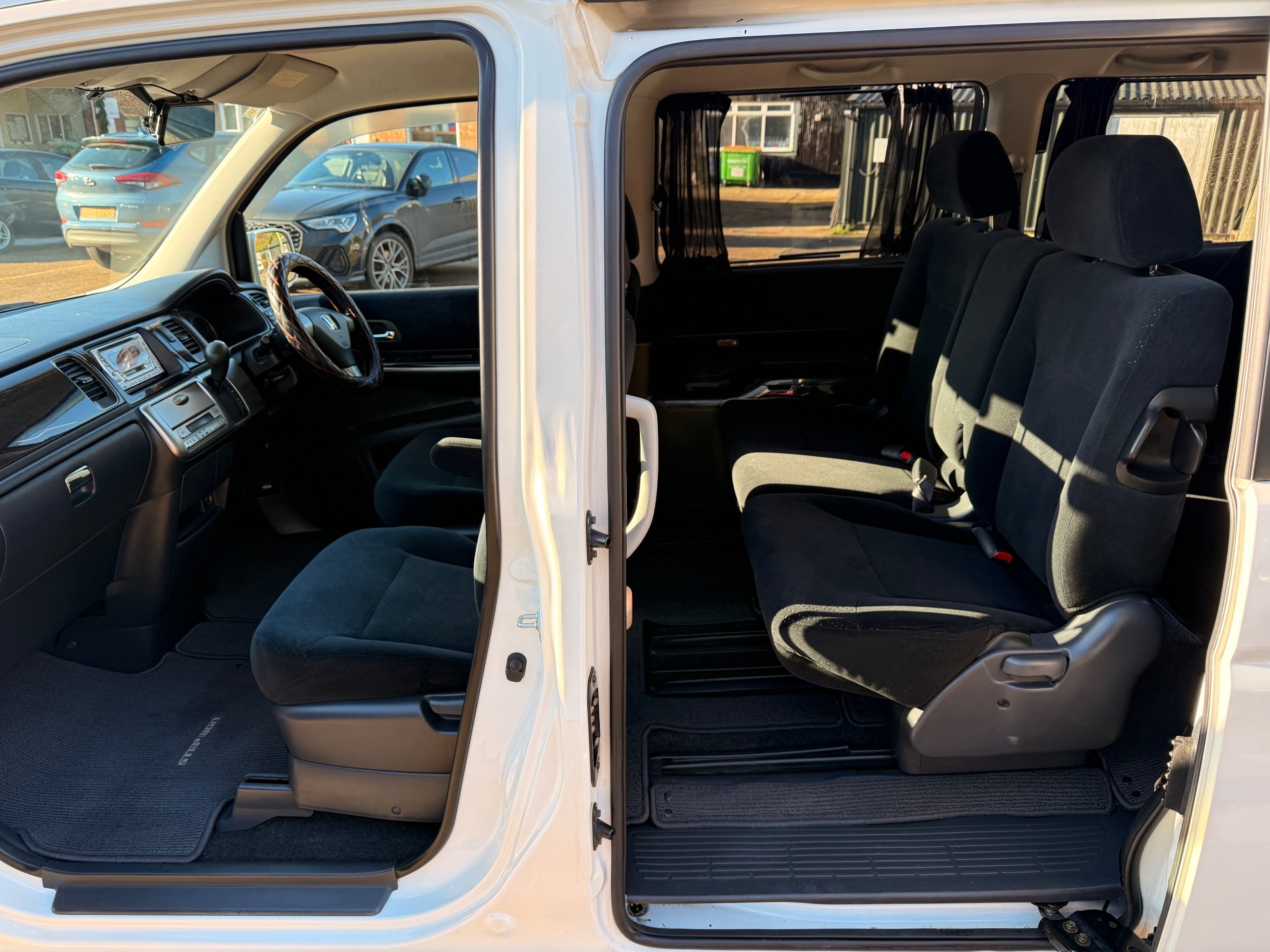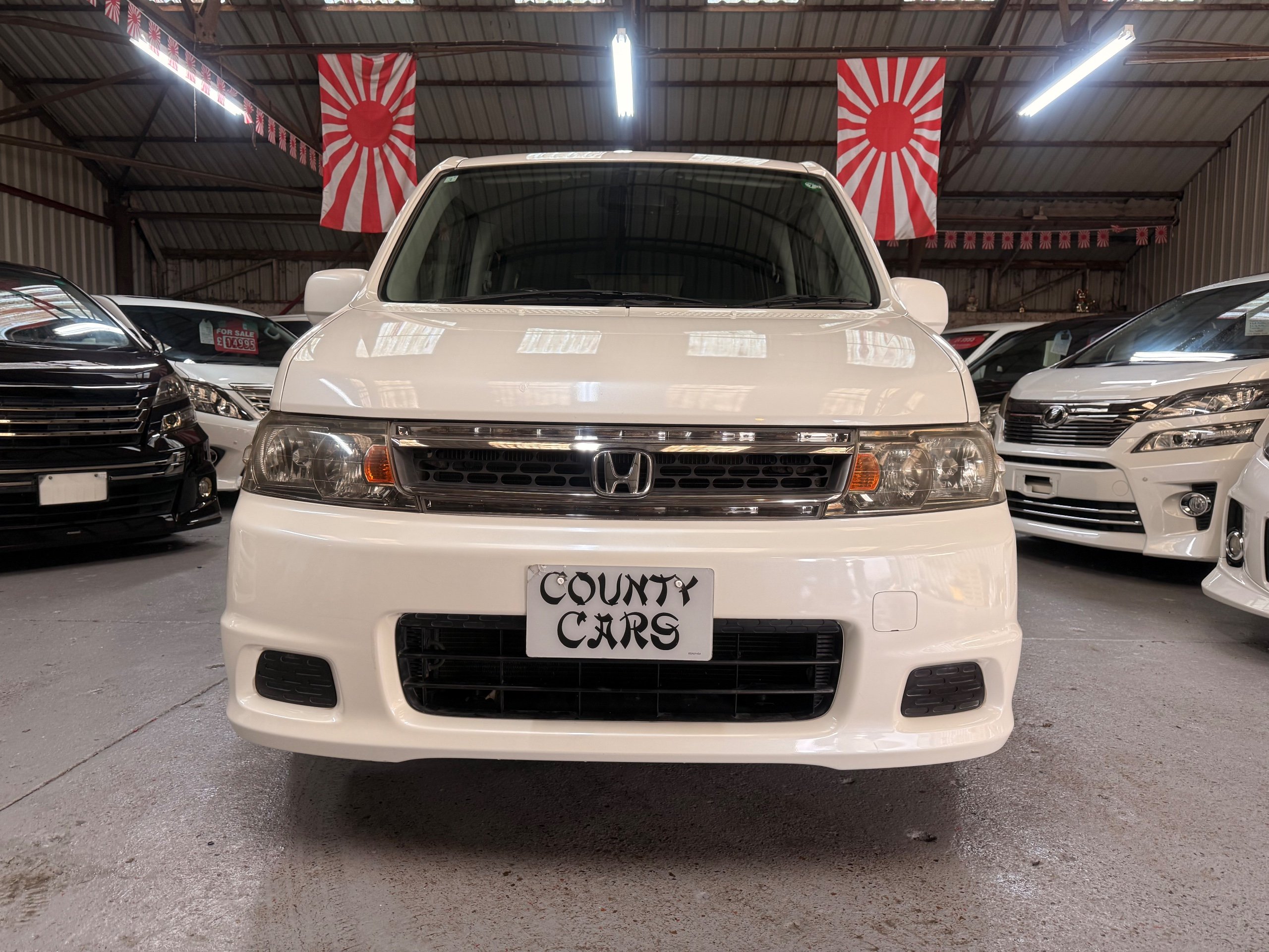 Honda Stepwagon 2.0 IVTEC Auto Spada Model, 2005-05-Reg The Last of the RF Models, Very RARE Nowadays Especially as a Fresh Import, We haven’t been able to import one of these for years. This particular Stepwgn has only covered 51,000 Miles from new, Finished in pearlescent white paintwork, Absolutely stunning 16” Schneider Diamond Cut with black gloss centres with red back Alloys, Full Privacy Glass, Electric Soft Closing Sliding Passenger Door, Rea Spoiler. 8 Seater, 8 Unblemished Black velour Seats, black gloss dash, The front seats have armrests, The Centre seats fold up and slides forward forward, The Rear seats fold up to the side to allow access to a huge boot, Factory Honda Cool-Box, Air-Con, Climate Control, Only 51,000 Miles, U.K Speedo Conversion, UK Stereo will be fitted, it has the original minidisc Japanese stereo at the moment. All The Genuine Paperwork From Japan Including The Auction Sheet and Export Certificate To verify the Mileage and Condition before it left Japan