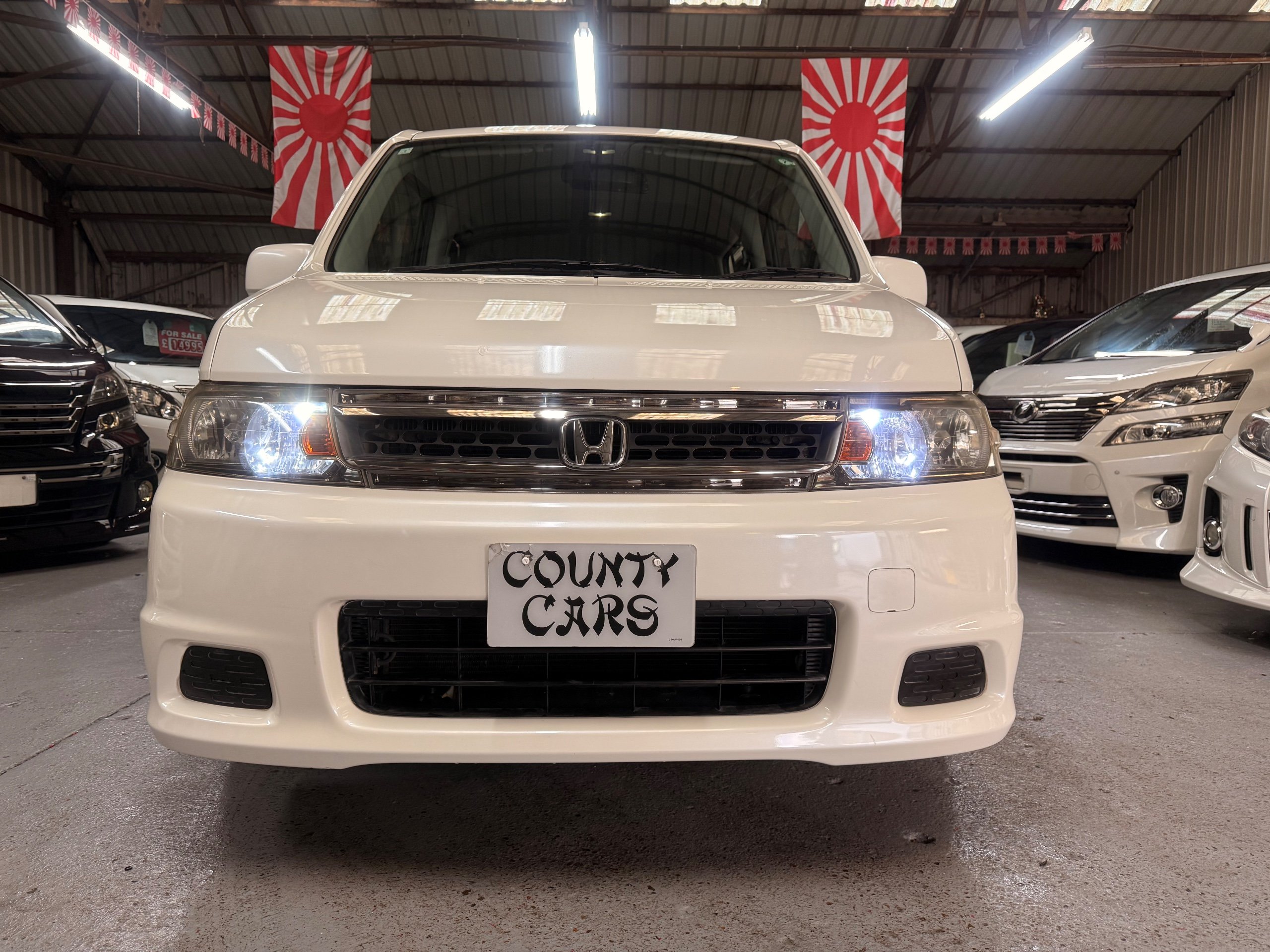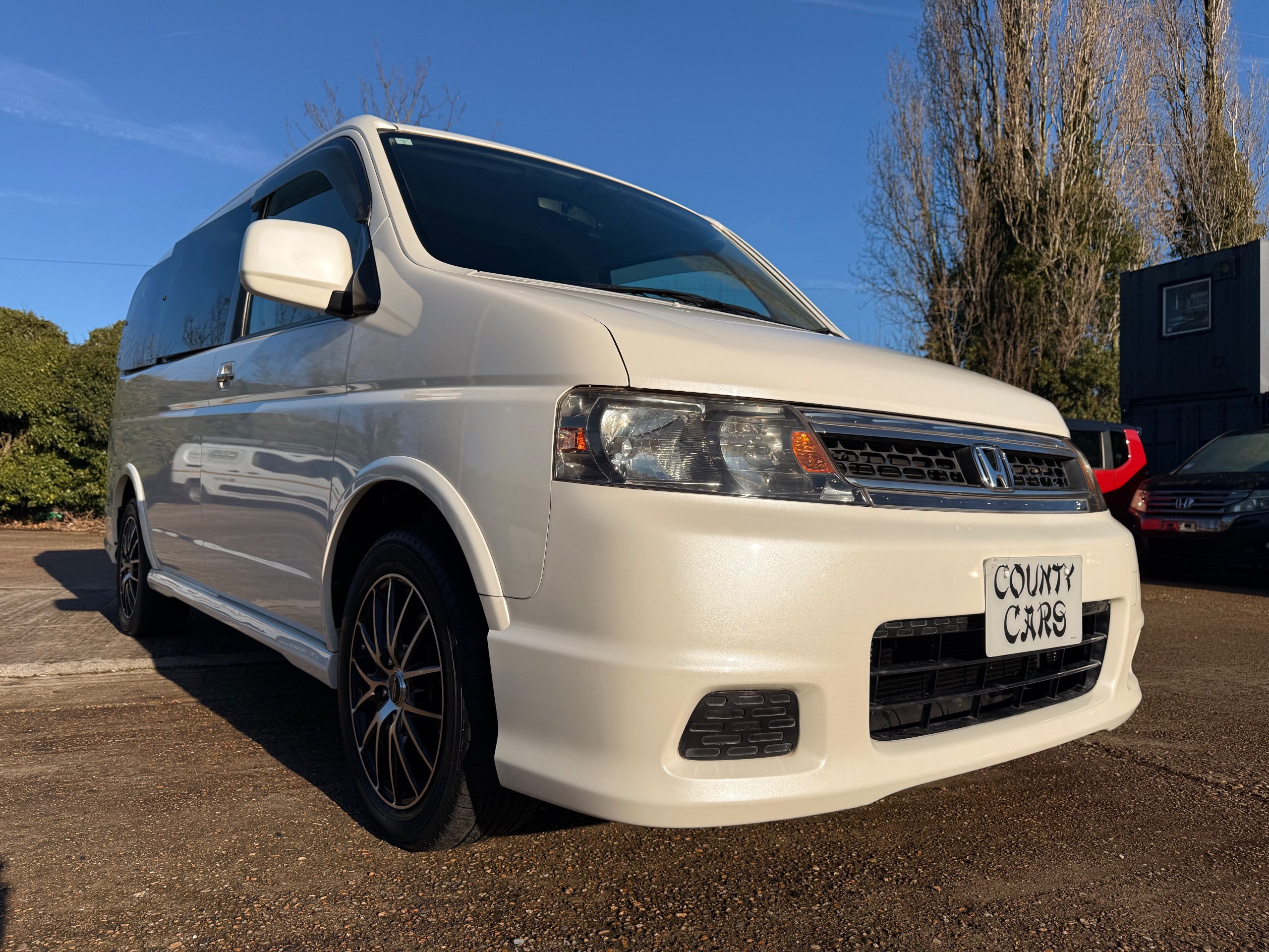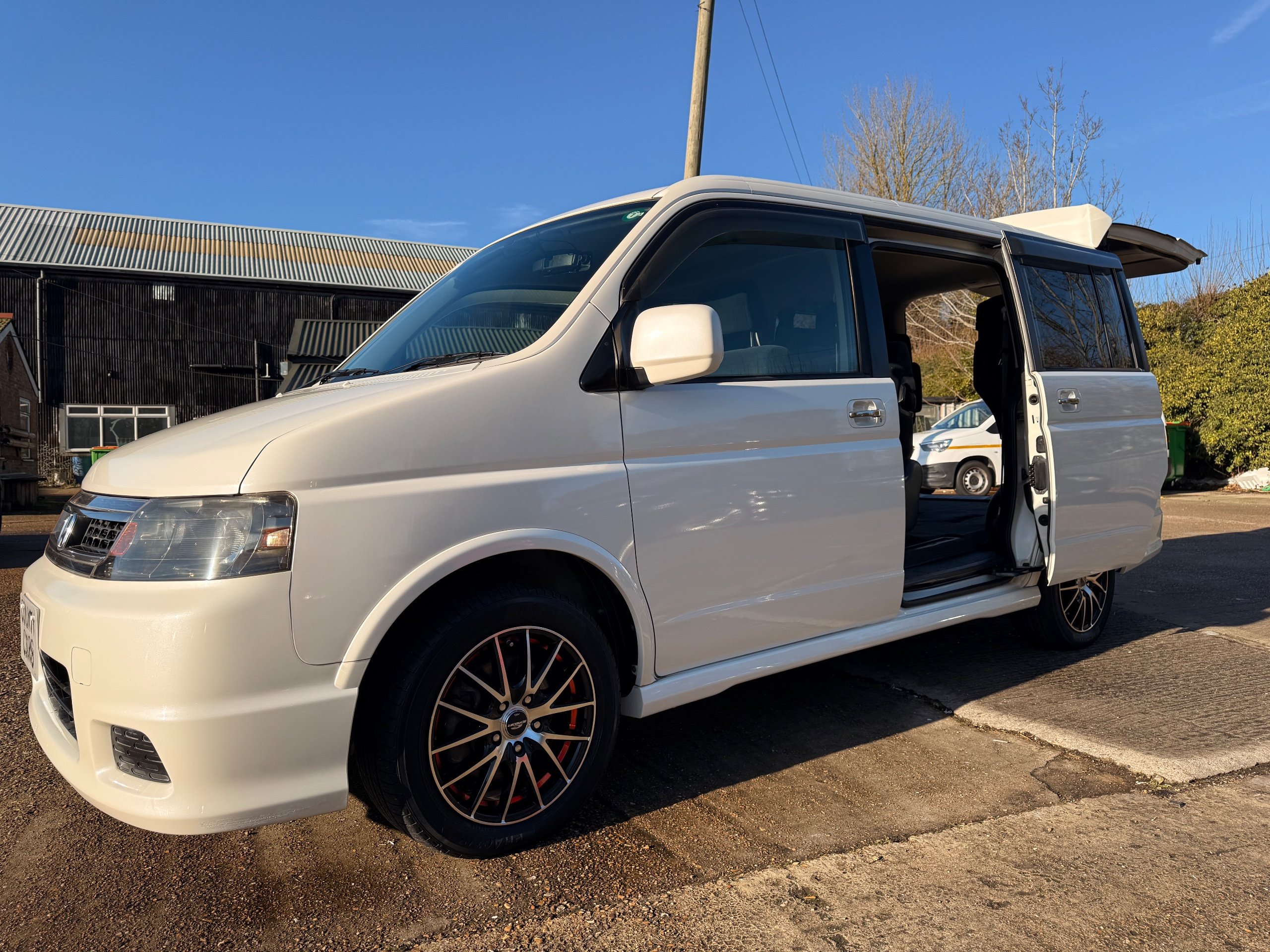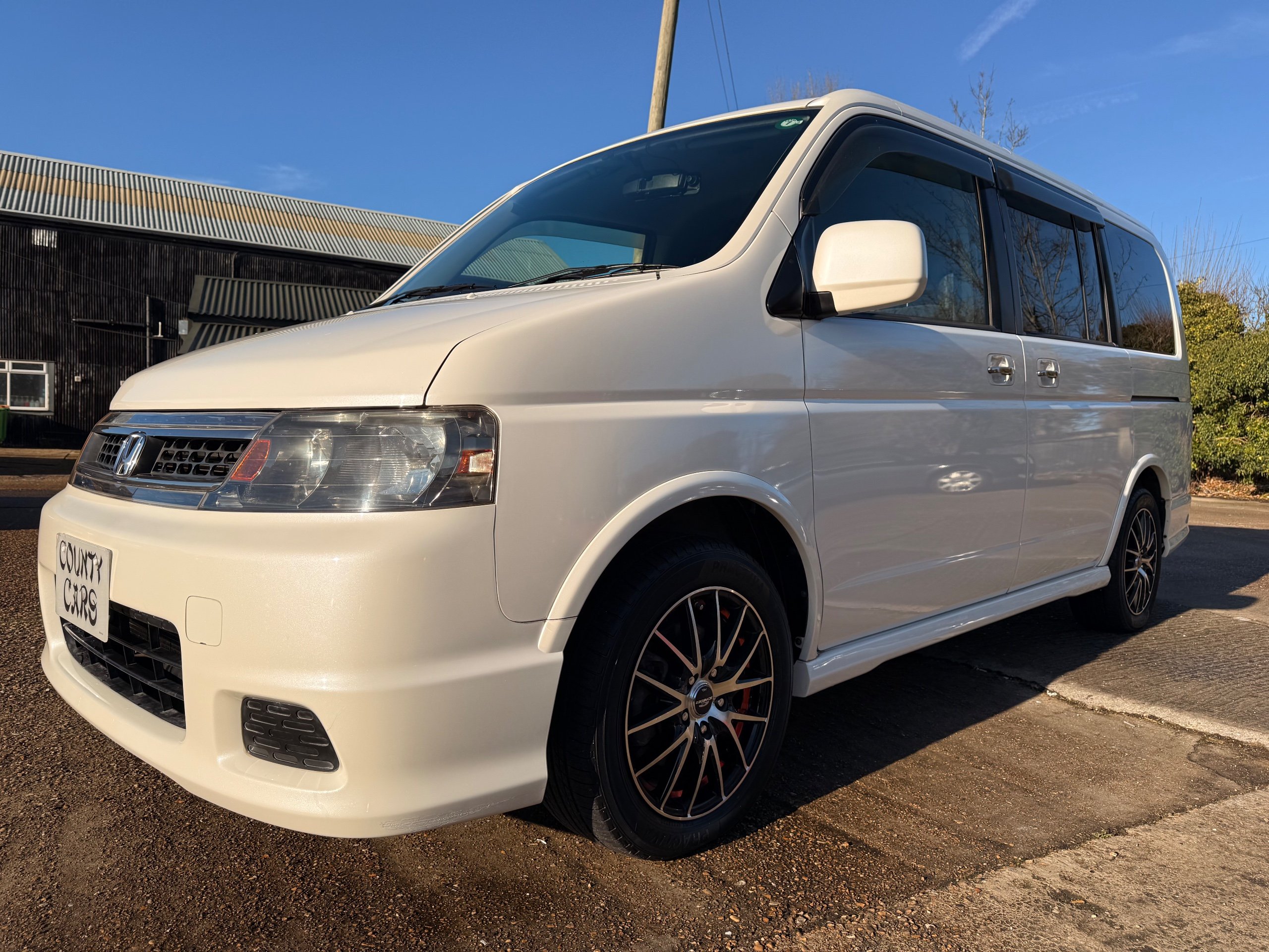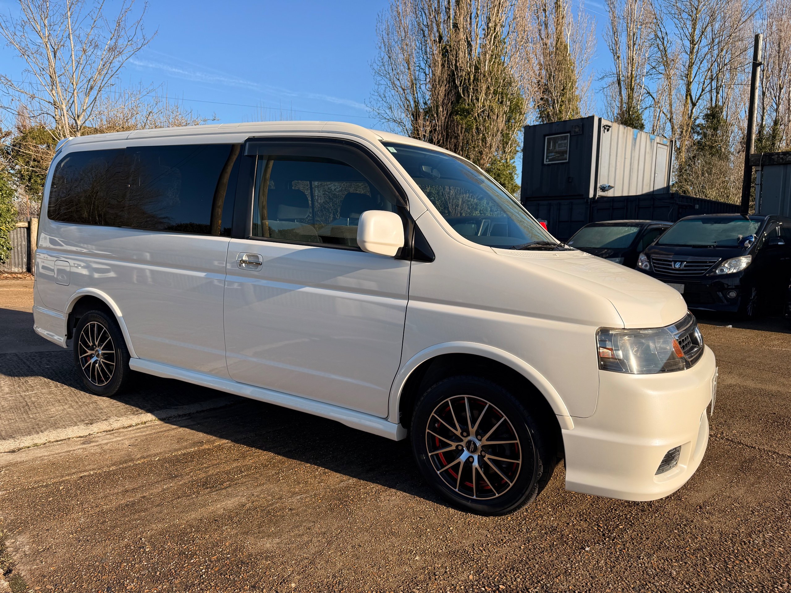 Honda Stepwagon 2.0 IVTEC Auto Spada Model, 2005-05-Reg The Last of the RF Models, Very RARE Nowadays Especially as a Fresh Import, We haven’t been able to import one of these for years. This particular Stepwgn has only covered 51,000 Miles from new, Finished in pearlescent white paintwork, Absolutely stunning 16” Schneider Diamond Cut with black gloss centres with red back Alloys, Full Privacy Glass, Electric Soft Closing Sliding Passenger Door, Rea Spoiler. 8 Seater, 8 Unblemished Black velour Seats, black gloss dash, The front seats have armrests, The Centre seats fold up and slides forward forward, The Rear seats fold up to the side to allow access to a huge boot, Factory Honda Cool-Box, Air-Con, Climate Control, Only 51,000 Miles, U.K Speedo Conversion, UK Stereo will be fitted, it has the original minidisc Japanese stereo at the moment. All The Genuine Paperwork From Japan Including The Auction Sheet and Export Certificate To verify the Mileage and Condition before it left Japan