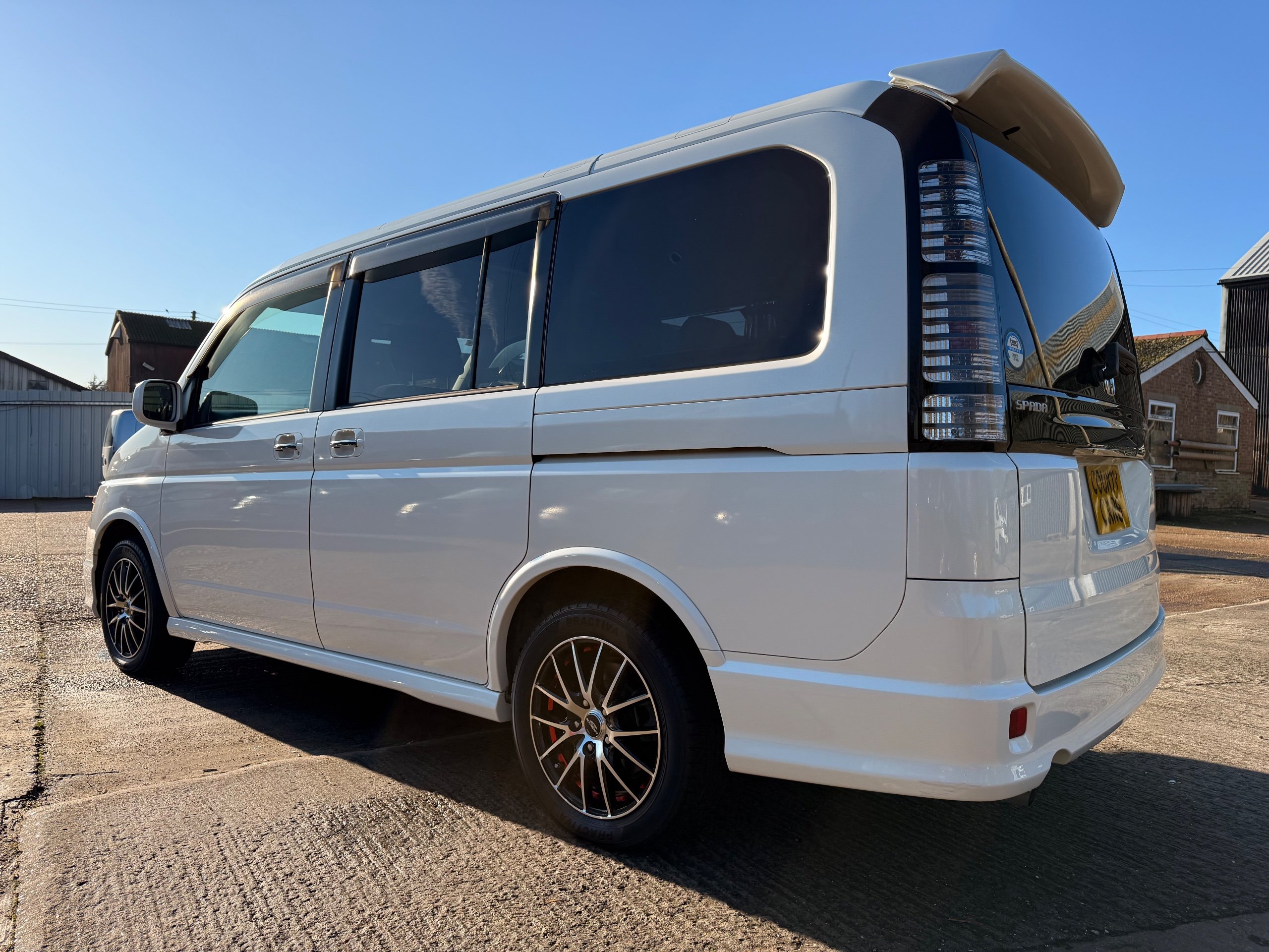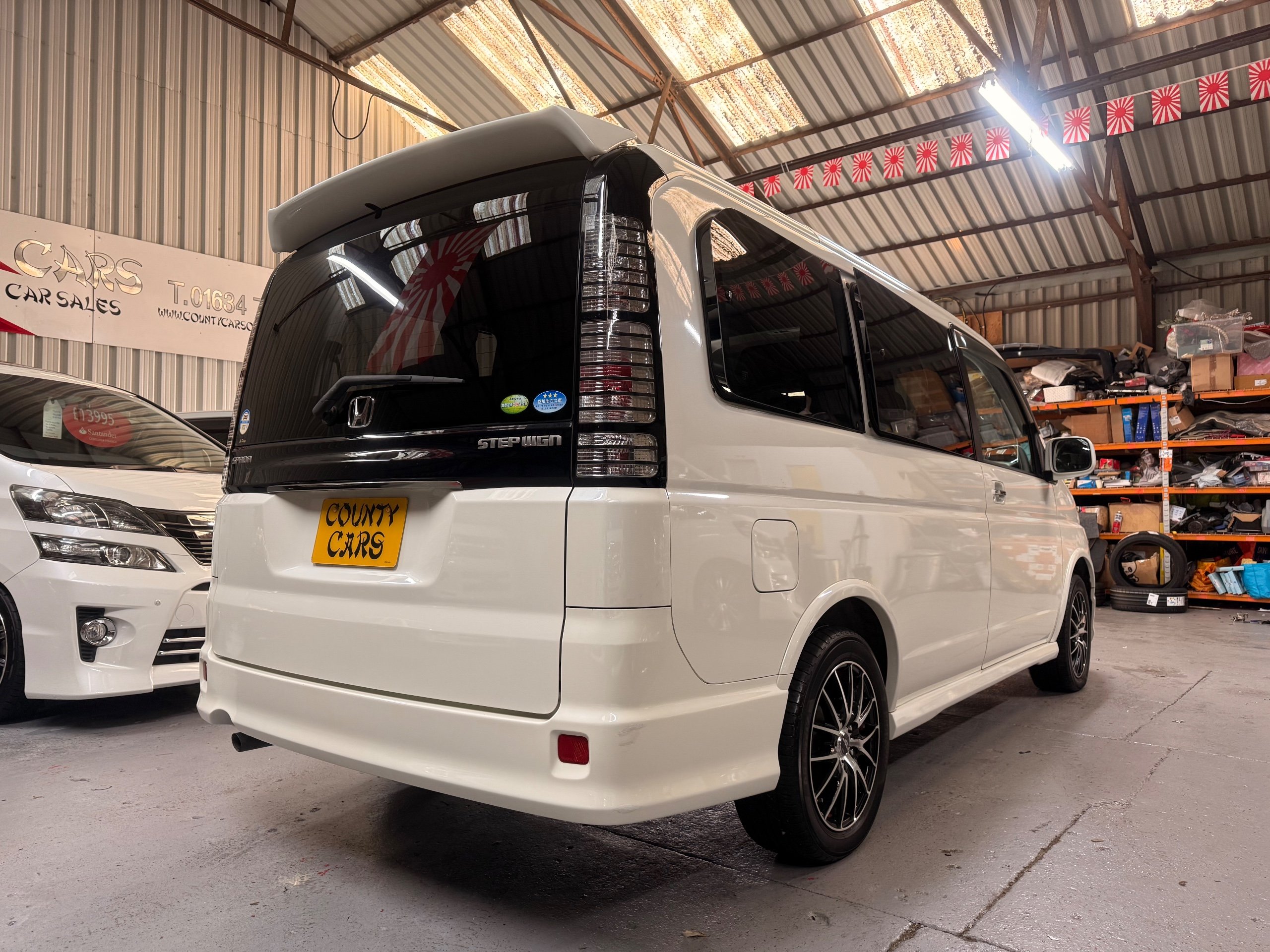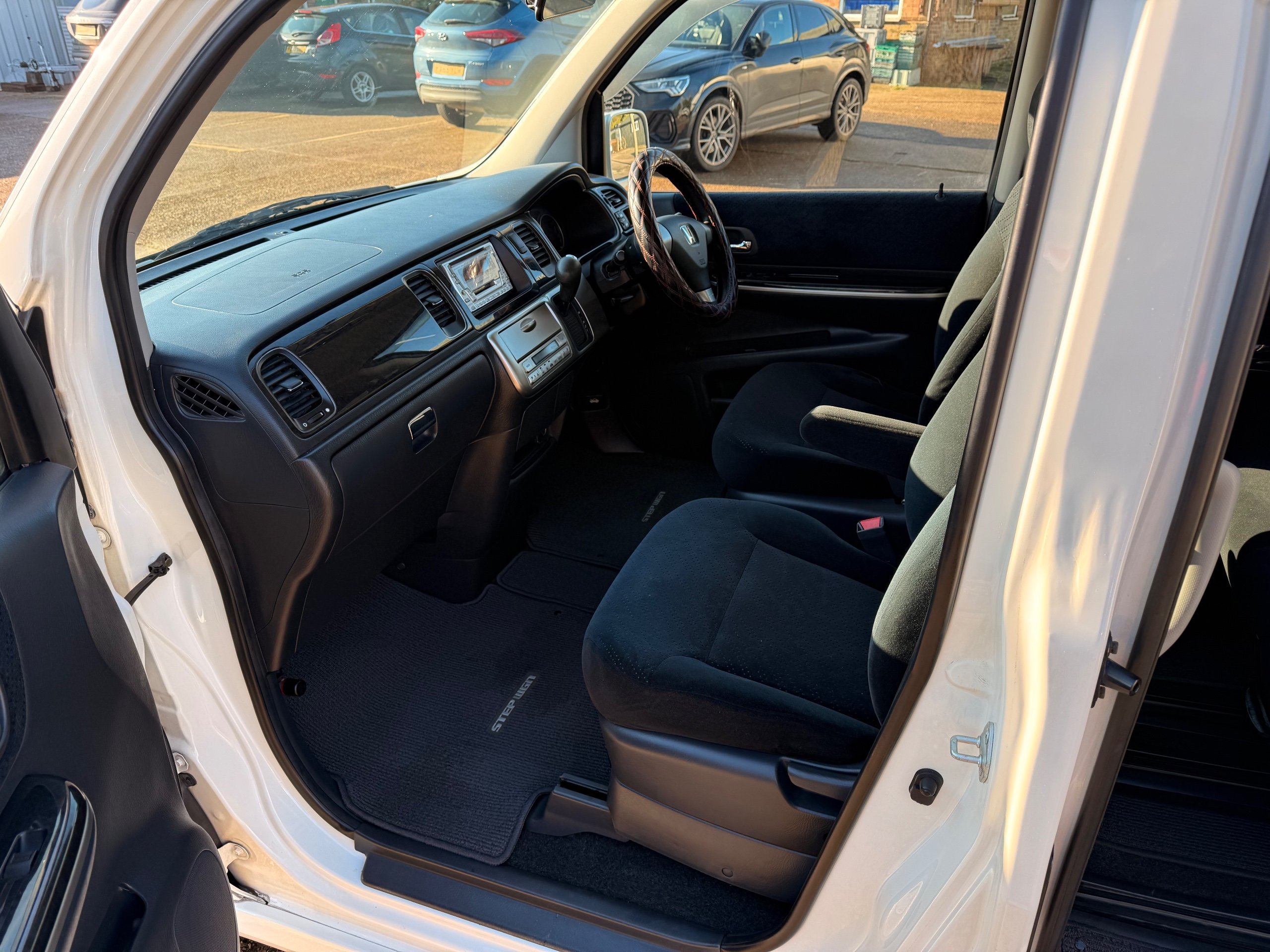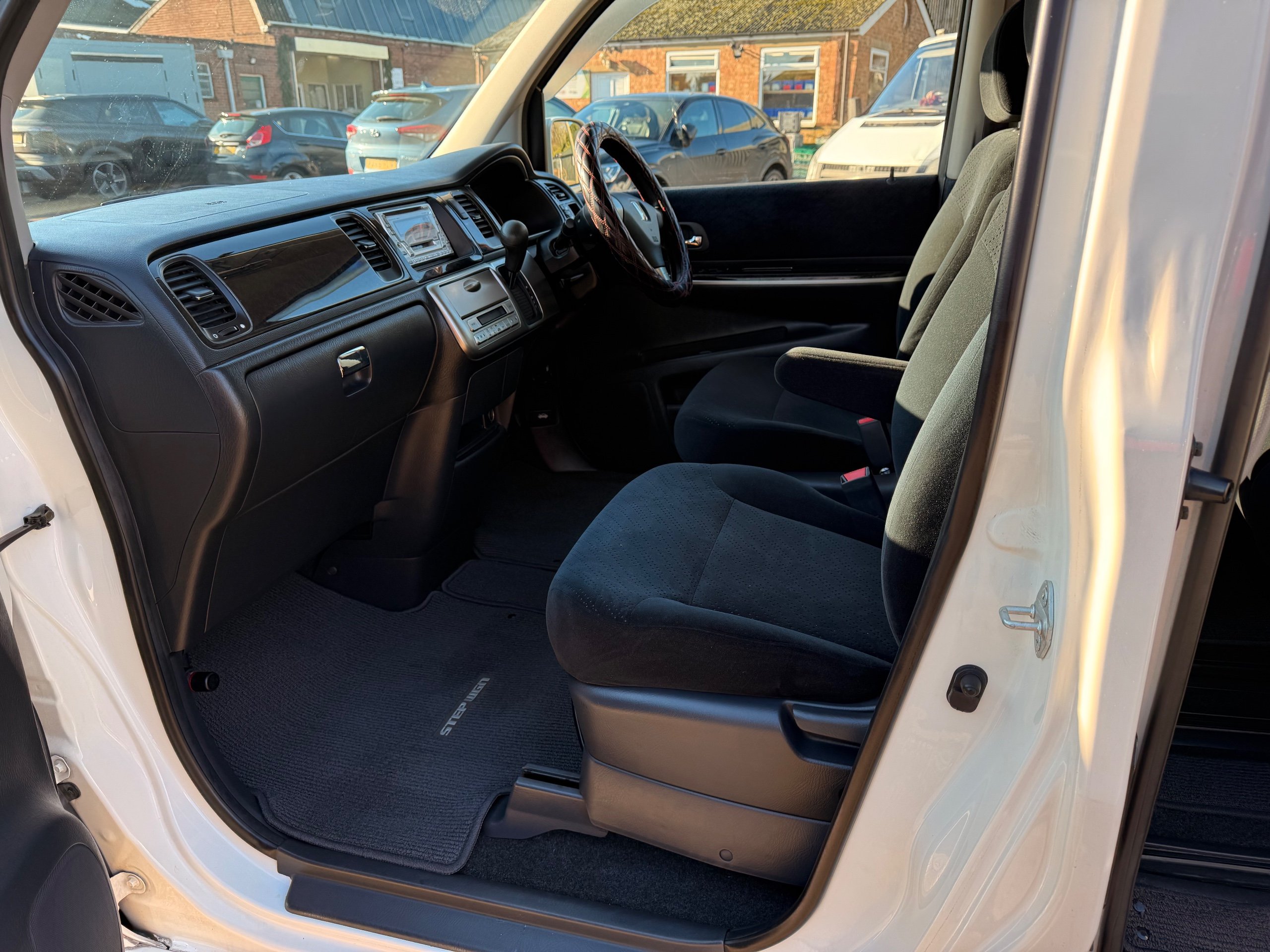 Honda Stepwagon 2.0 IVTEC Auto Spada Model, 2005-05-Reg The Last of the RF Models, Very RARE Nowadays Especially as a Fresh Import, We haven’t been able to import one of these for years. This particular Stepwgn has only covered 51,000 Miles from new, Finished in pearlescent white paintwork, Absolutely stunning 16” Schneider Diamond Cut with black gloss centres with red back Alloys, Full Privacy Glass, Electric Soft Closing Sliding Passenger Door, Rea Spoiler. 8 Seater, 8 Unblemished Black velour Seats, black gloss dash, The front seats have armrests, The Centre seats fold up and slides forward forward, The Rear seats fold up to the side to allow access to a huge boot, Factory Honda Cool-Box, Air-Con, Climate Control, Only 51,000 Miles, U.K Speedo Conversion, UK Stereo will be fitted, it has the original minidisc Japanese stereo at the moment. All The Genuine Paperwork From Japan Including The Auction Sheet and Export Certificate To verify the Mileage and Condition before it left Japan