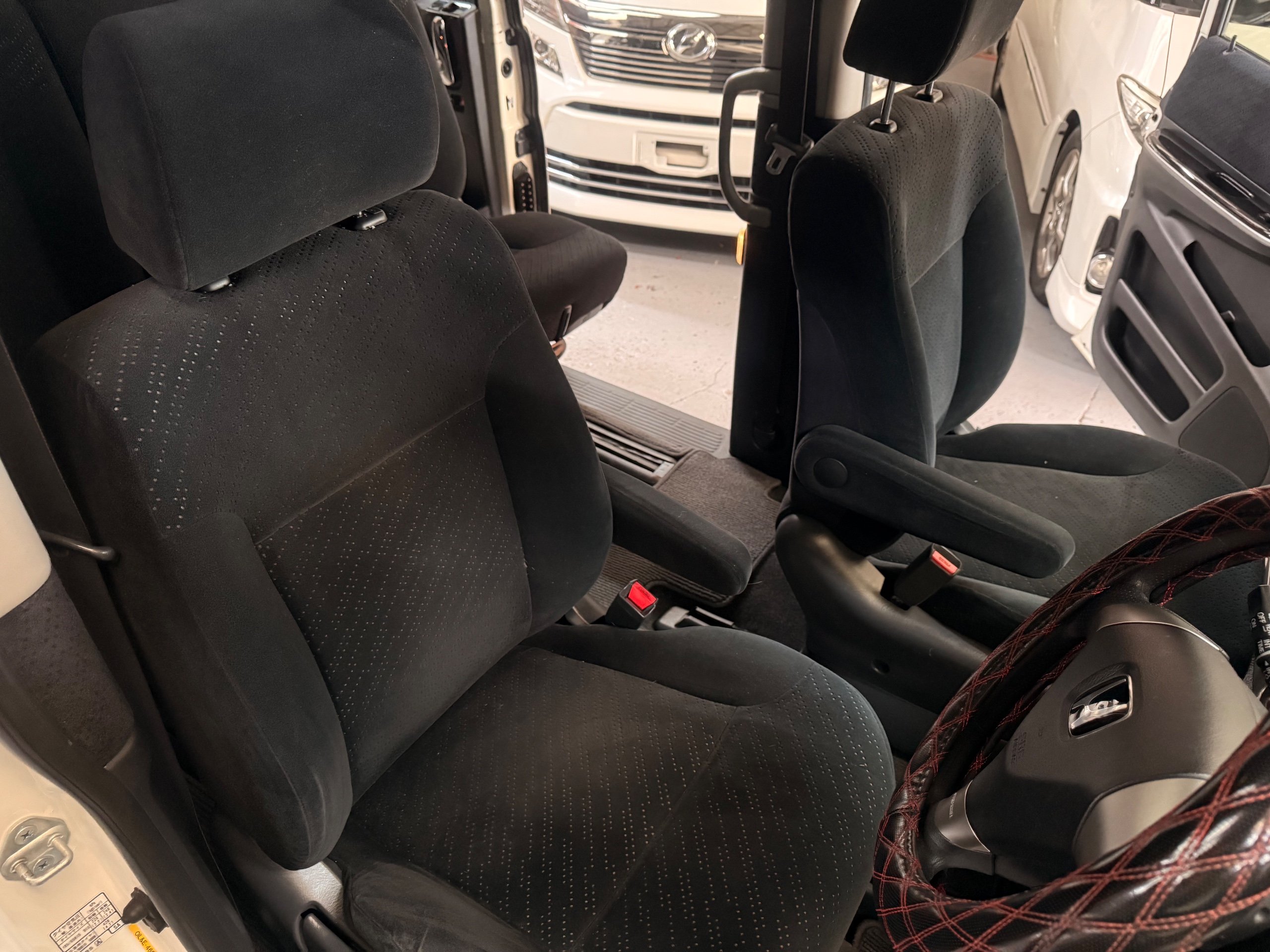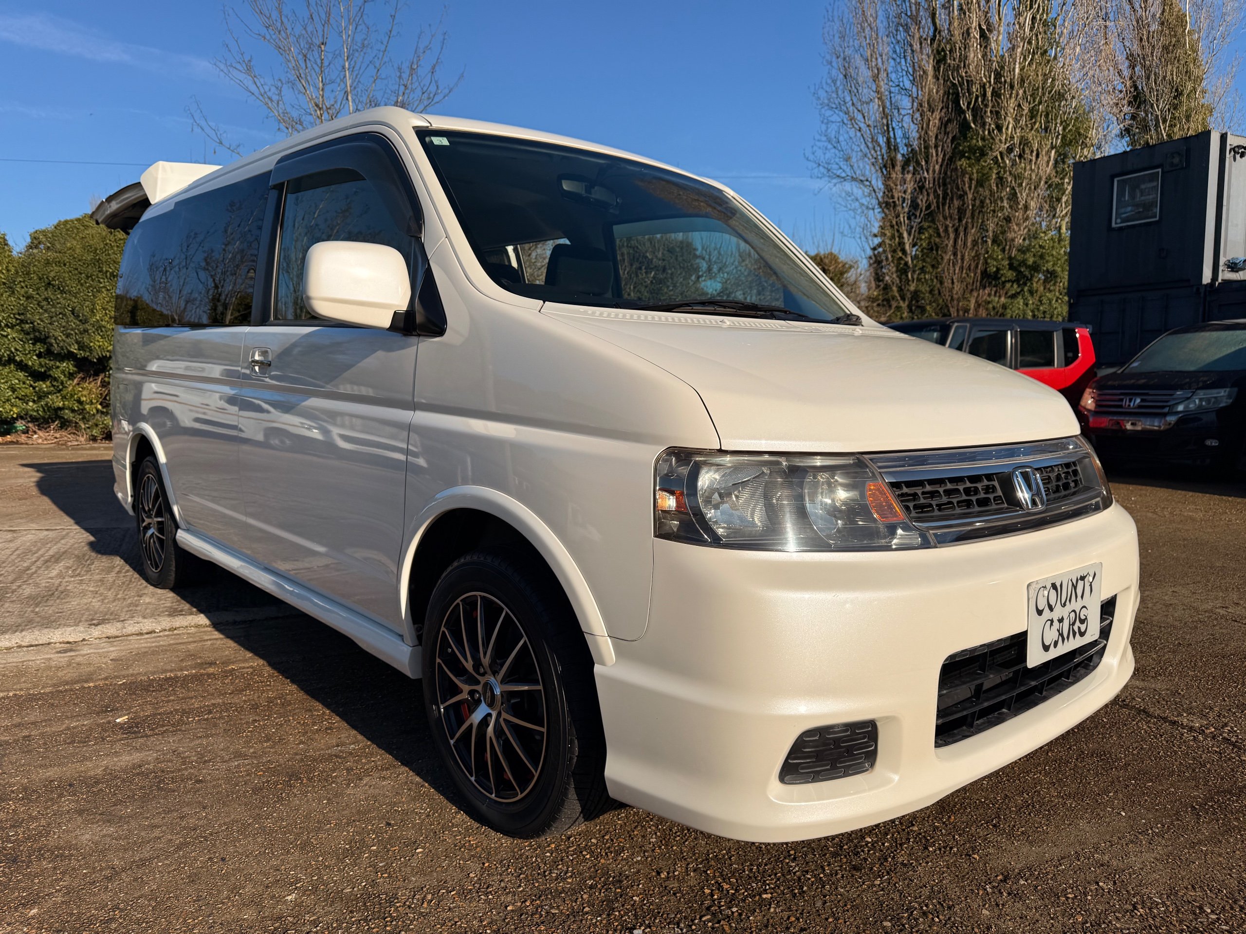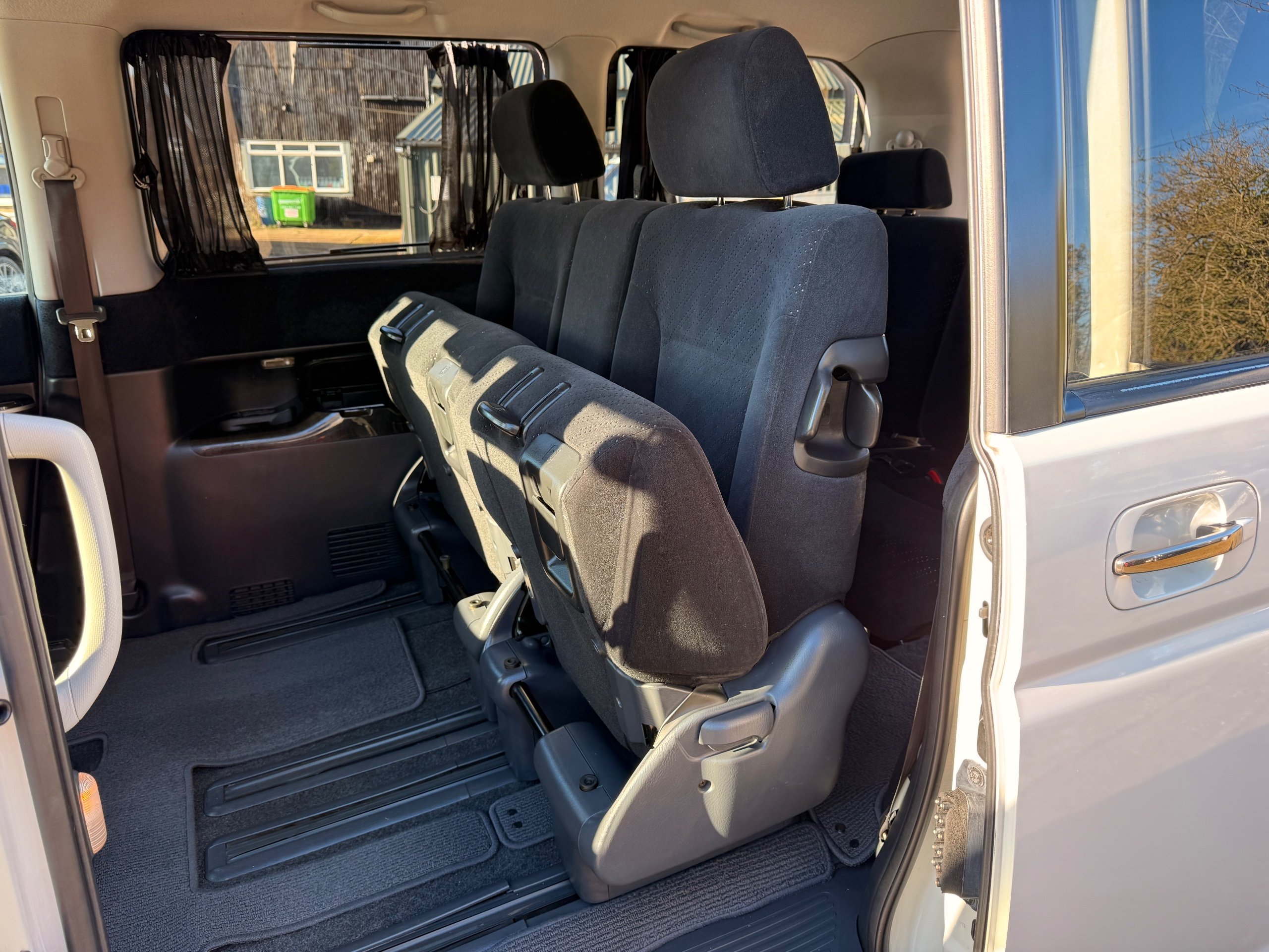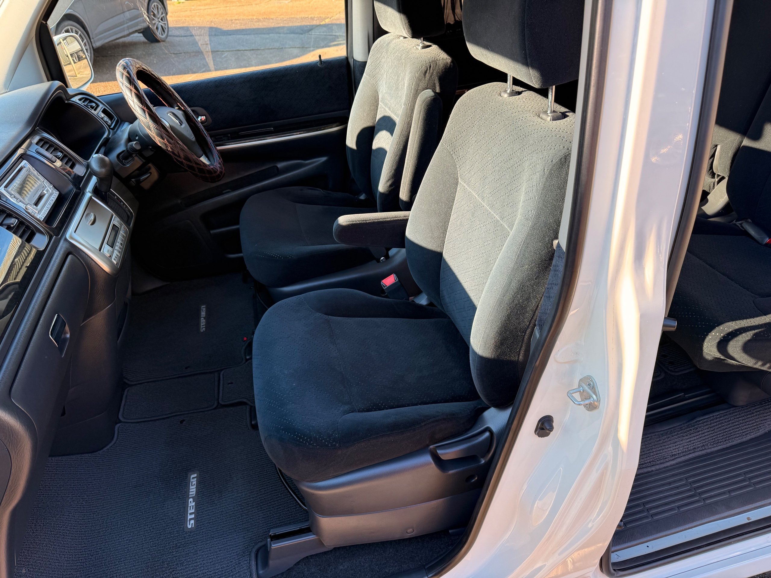 Honda Stepwagon 2.0 IVTEC Auto Spada Model, 2005-05-Reg The Last of the RF Models, Very RARE Nowadays Especially as a Fresh Import, We haven’t been able to import one of these for years. This particular Stepwgn has only covered 51,000 Miles from new, Finished in pearlescent white paintwork, Absolutely stunning 16” Schneider Diamond Cut with black gloss centres with red back Alloys, Full Privacy Glass, Electric Soft Closing Sliding Passenger Door, Rea Spoiler. 8 Seater, 8 Unblemished Black velour Seats, black gloss dash, The front seats have armrests, The Centre seats fold up and slides forward forward, The Rear seats fold up to the side to allow access to a huge boot, Factory Honda Cool-Box, Air-Con, Climate Control, Only 51,000 Miles, U.K Speedo Conversion, UK Stereo will be fitted, it has the original minidisc Japanese stereo at the moment. All The Genuine Paperwork From Japan Including The Auction Sheet and Export Certificate To verify the Mileage and Condition before it left Japan