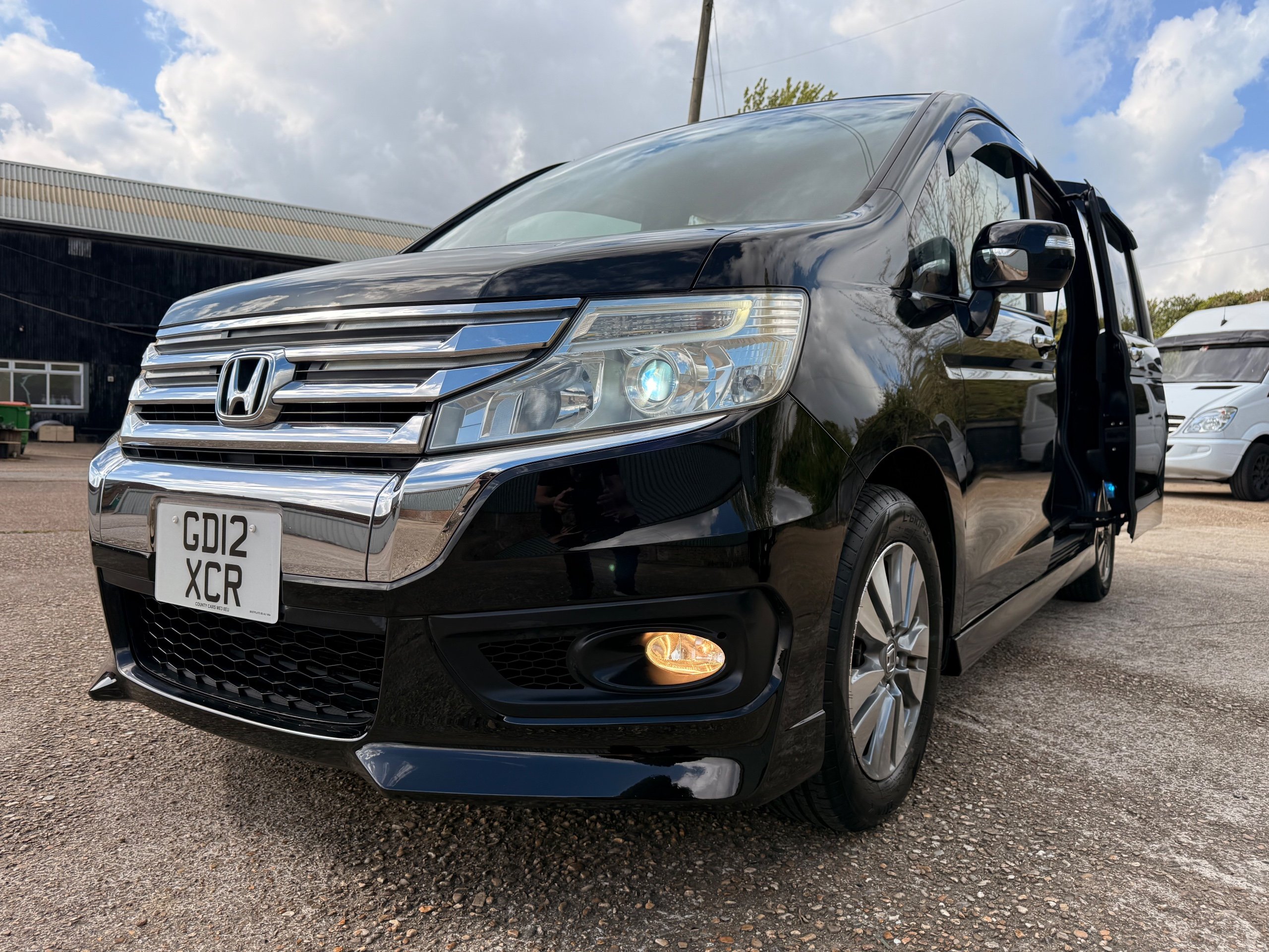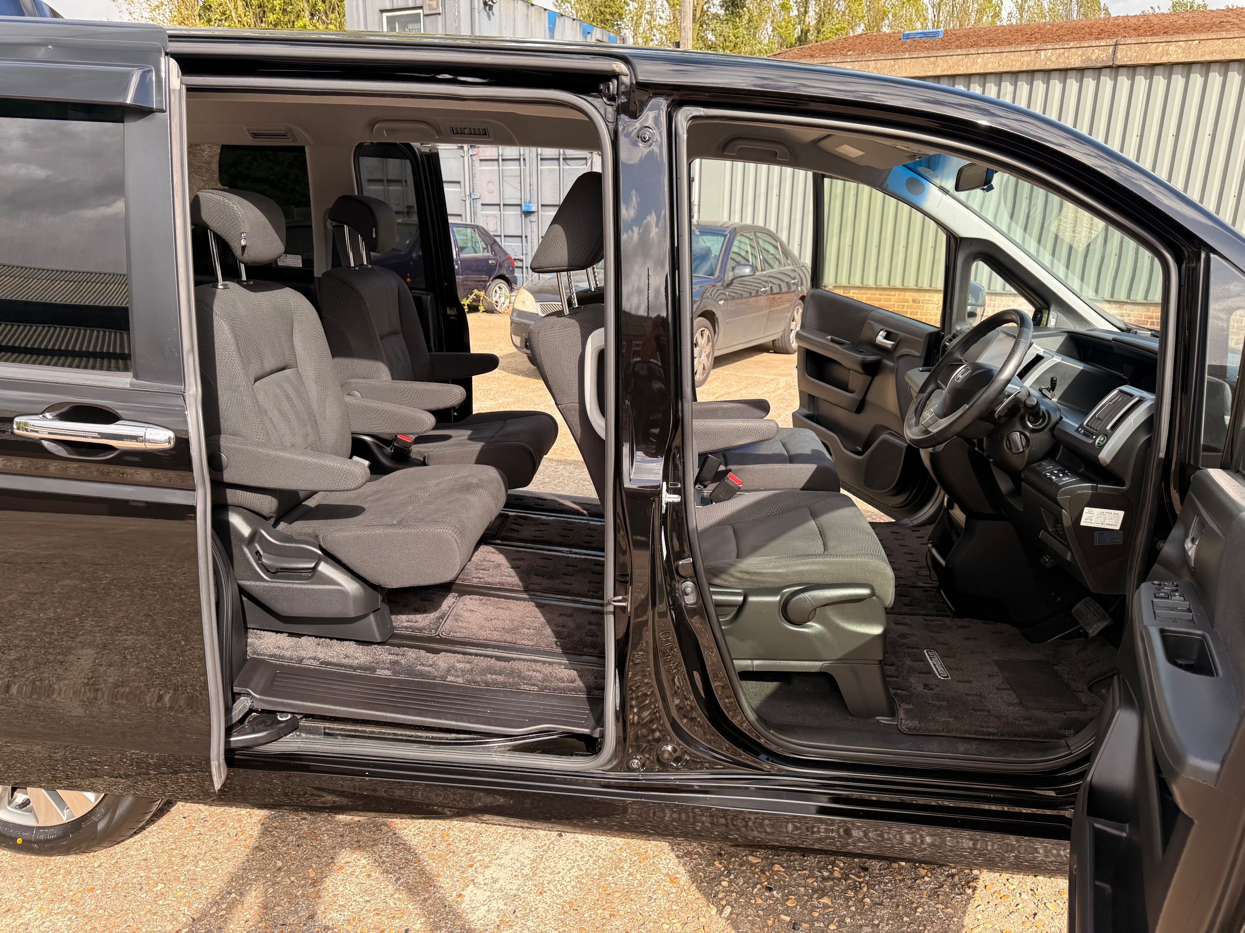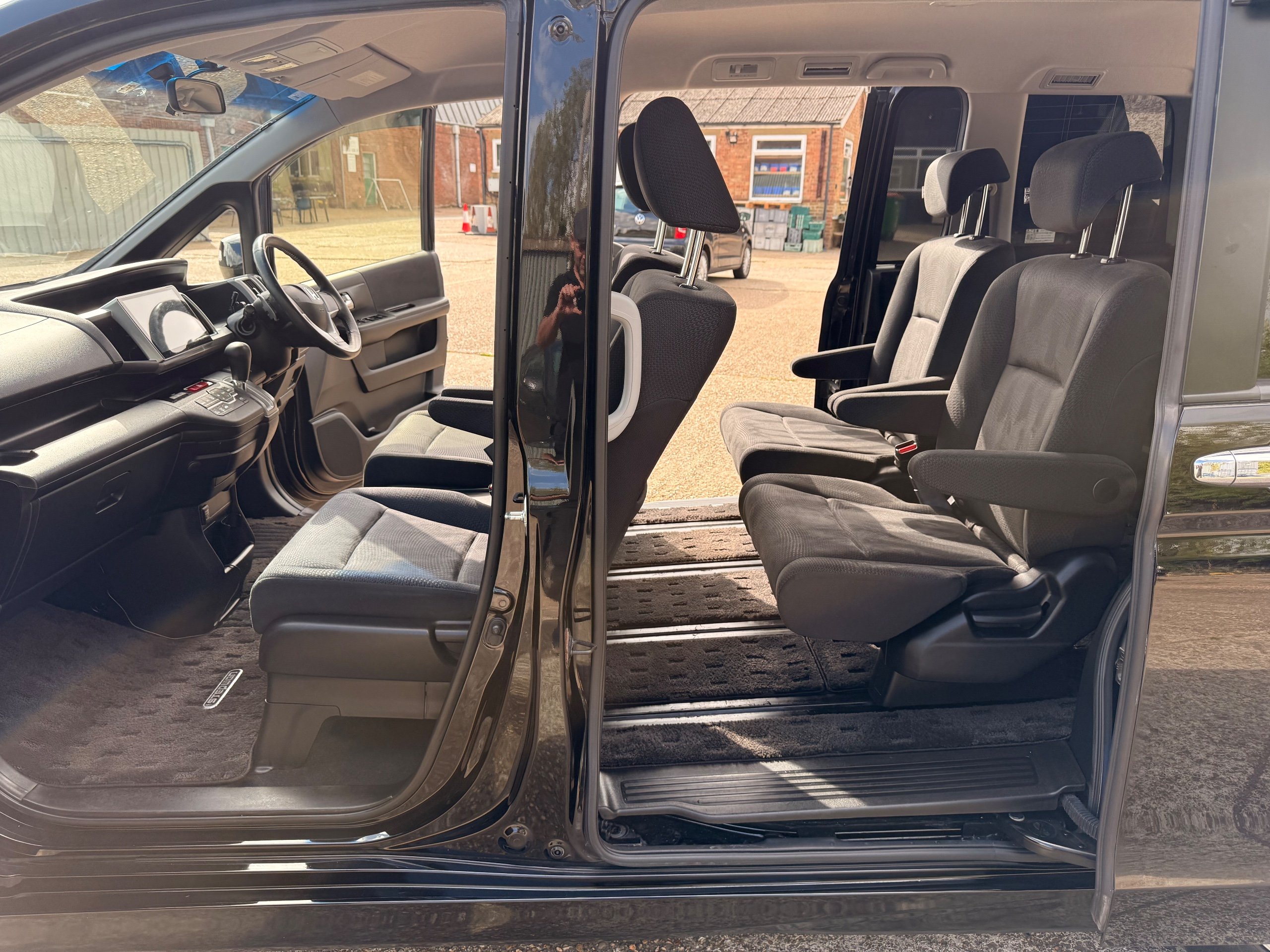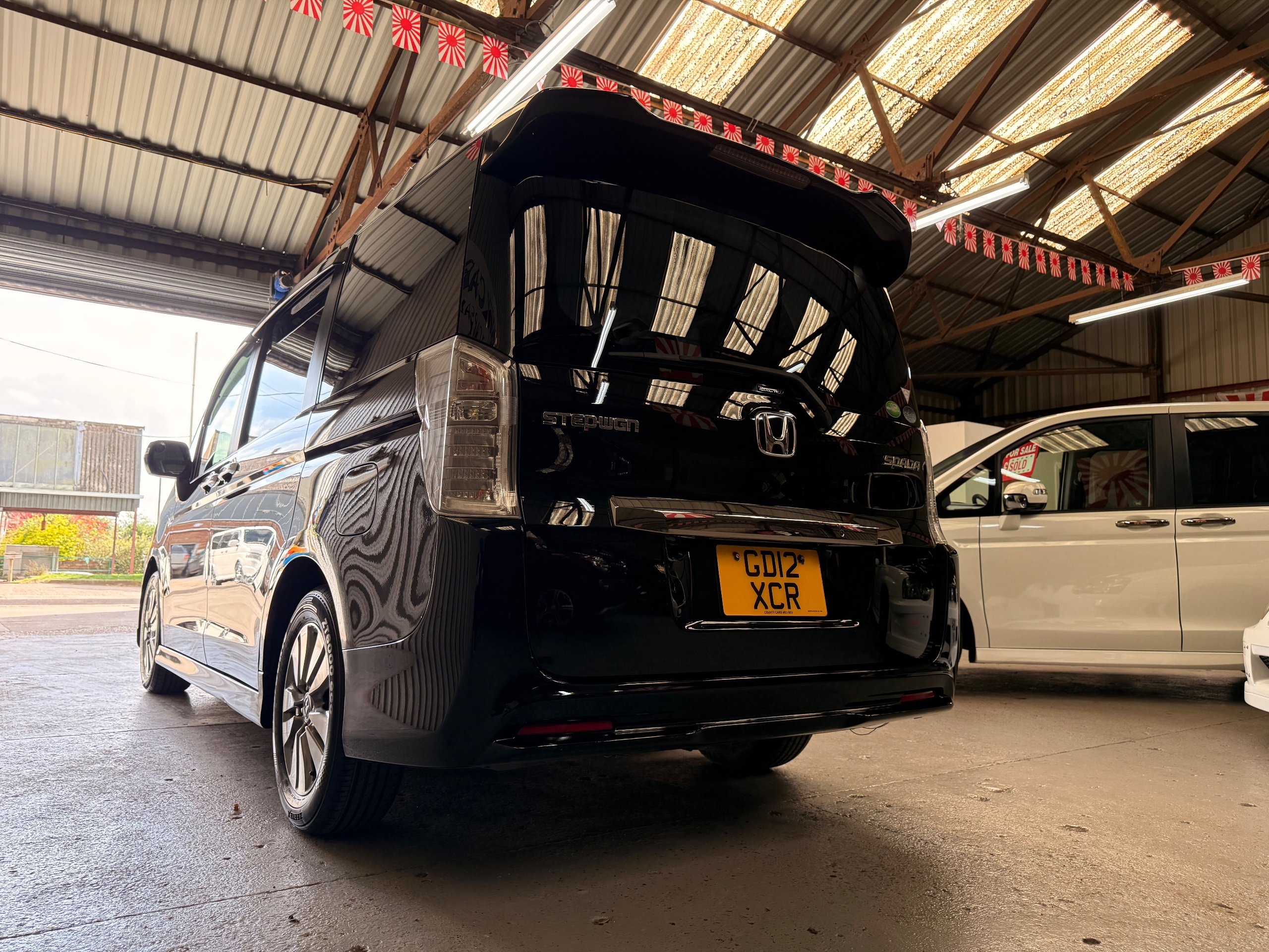 Honda Stepwagon 2.0 Spada-Z- R.K Series, Auto, 2012-12-Reg, Face-Lift Edition, Finished in Unmarked Metallic Black Paintwork, Full Privacy Glass, Stunning 17” Diamond Cut Honda Alloys, Twin Electric Soft Closing Sliding Doors, Rear spoiler, Front spots, fold away wing mirrors with built in led indicators, 7 Seater, 7 Unmarked Black velour seats, The front seats both have armrests, Centre flip down table with built in cup holders, The middle row of seats fold away and slide forward the Rear seats fold into the floor to give way to a huge boot, Isofix points, 7X3 Point Factory Honda Seatbelts, Air-Con, Climate Control, Factory Honda Rear Blinds, Key-less Entry and Key-less Start, Cruise Control, Auto Start/Stop, TC,, Colour reversing camera, UK Stereo with Apple CarPlay stereo, Only covered 80,000 Miles with all the Genuine paperwork from Japan including the auction sheet and Export certificate which both show the mileage and condition before it left Japan