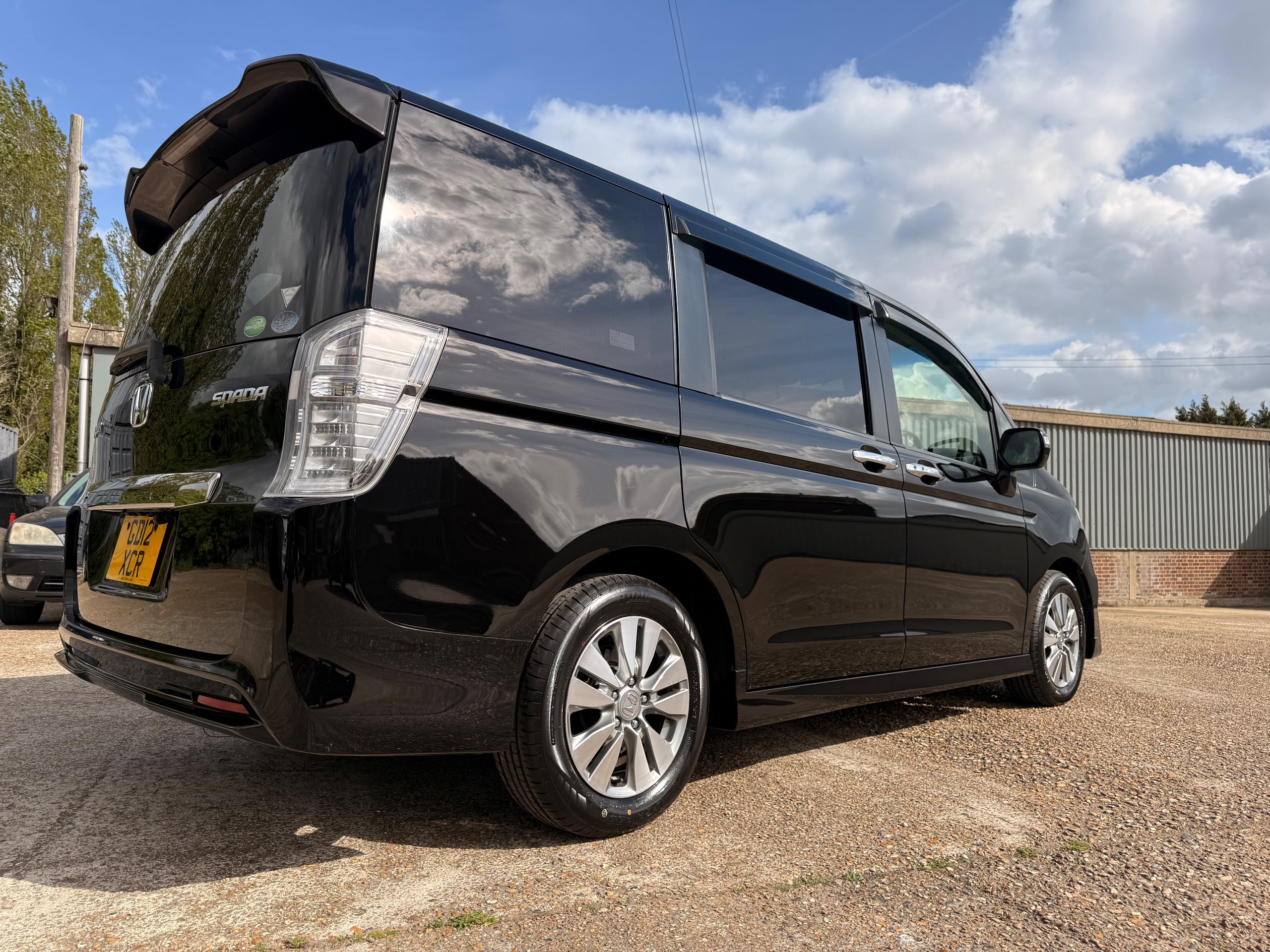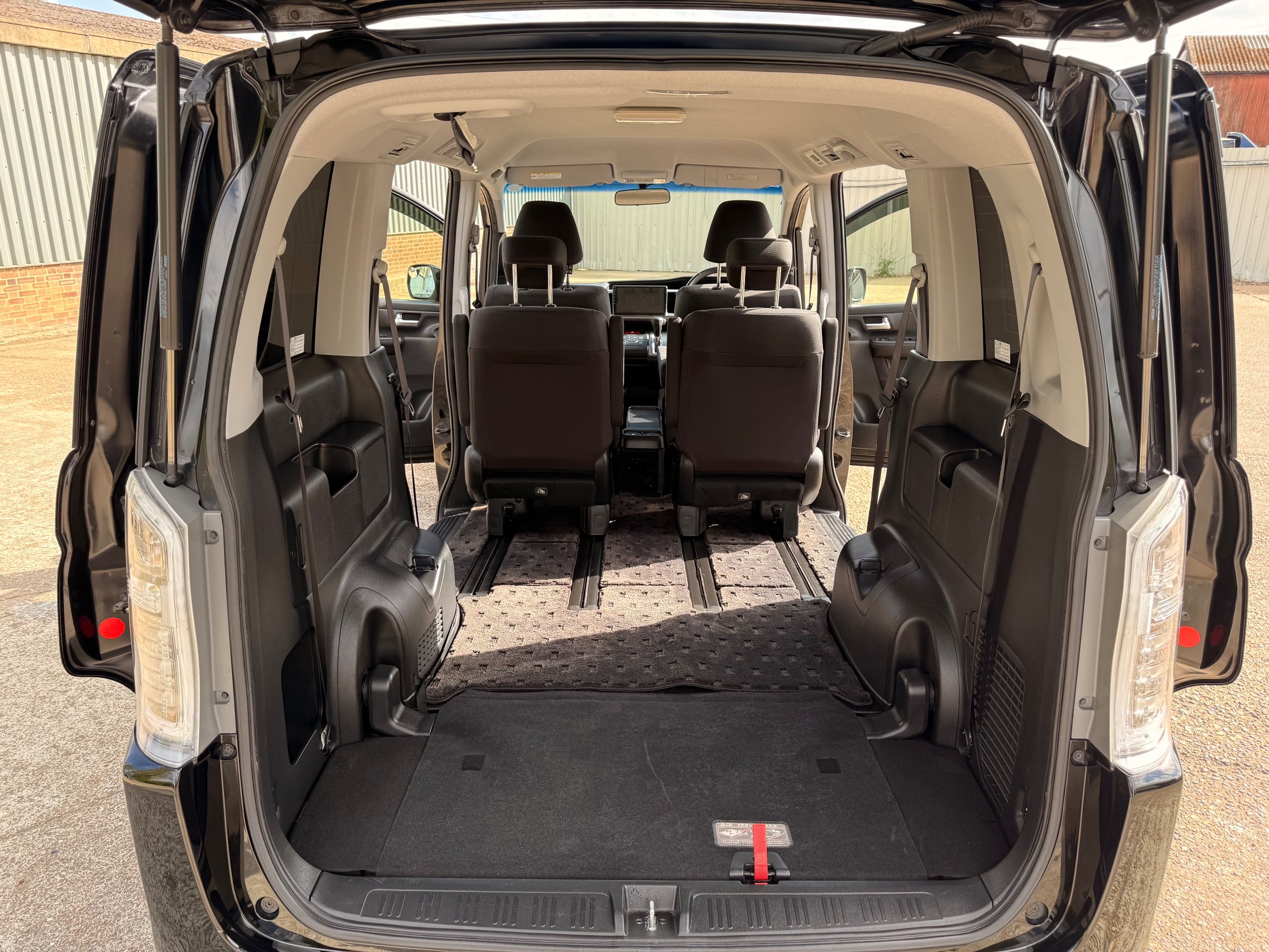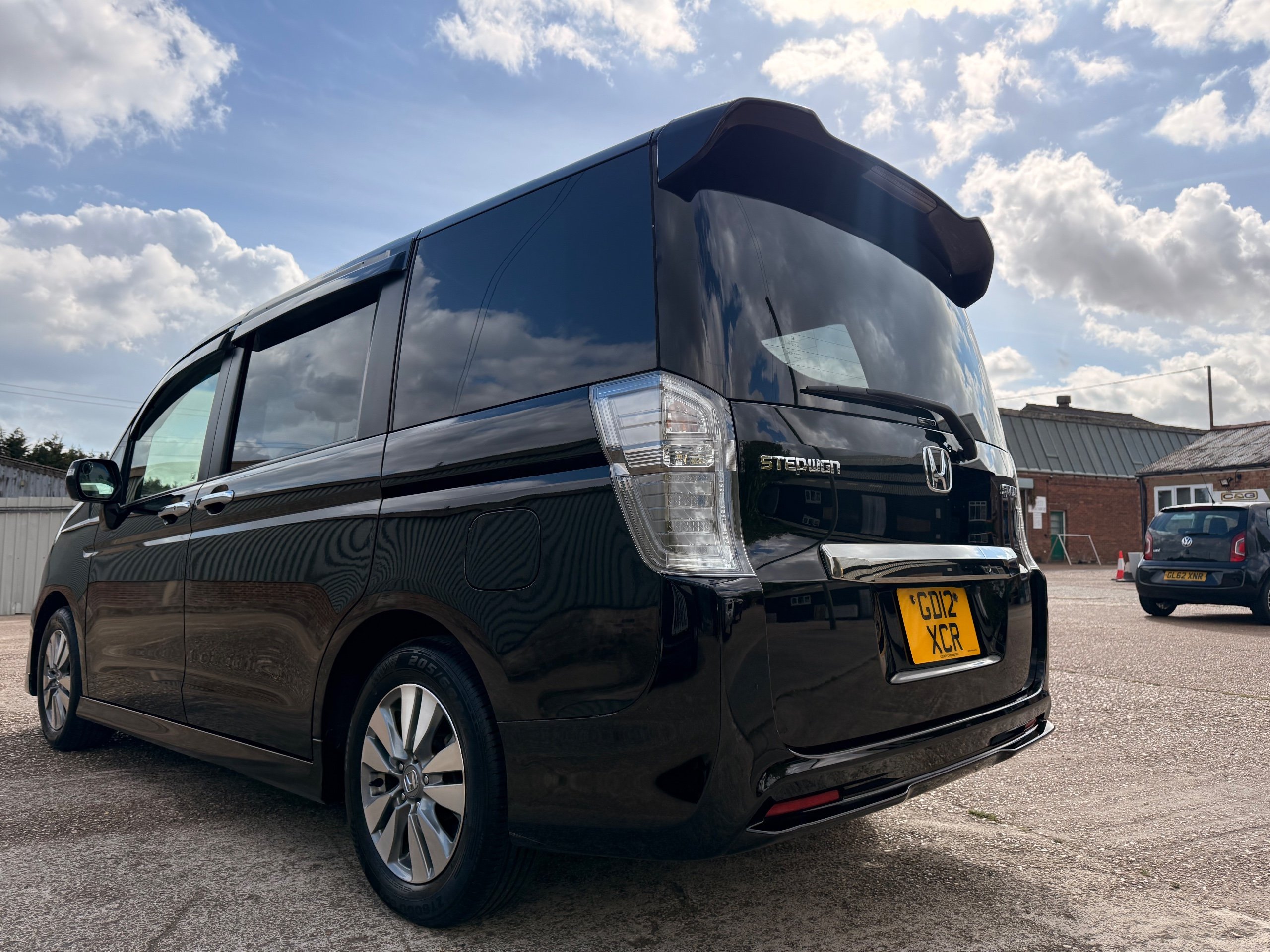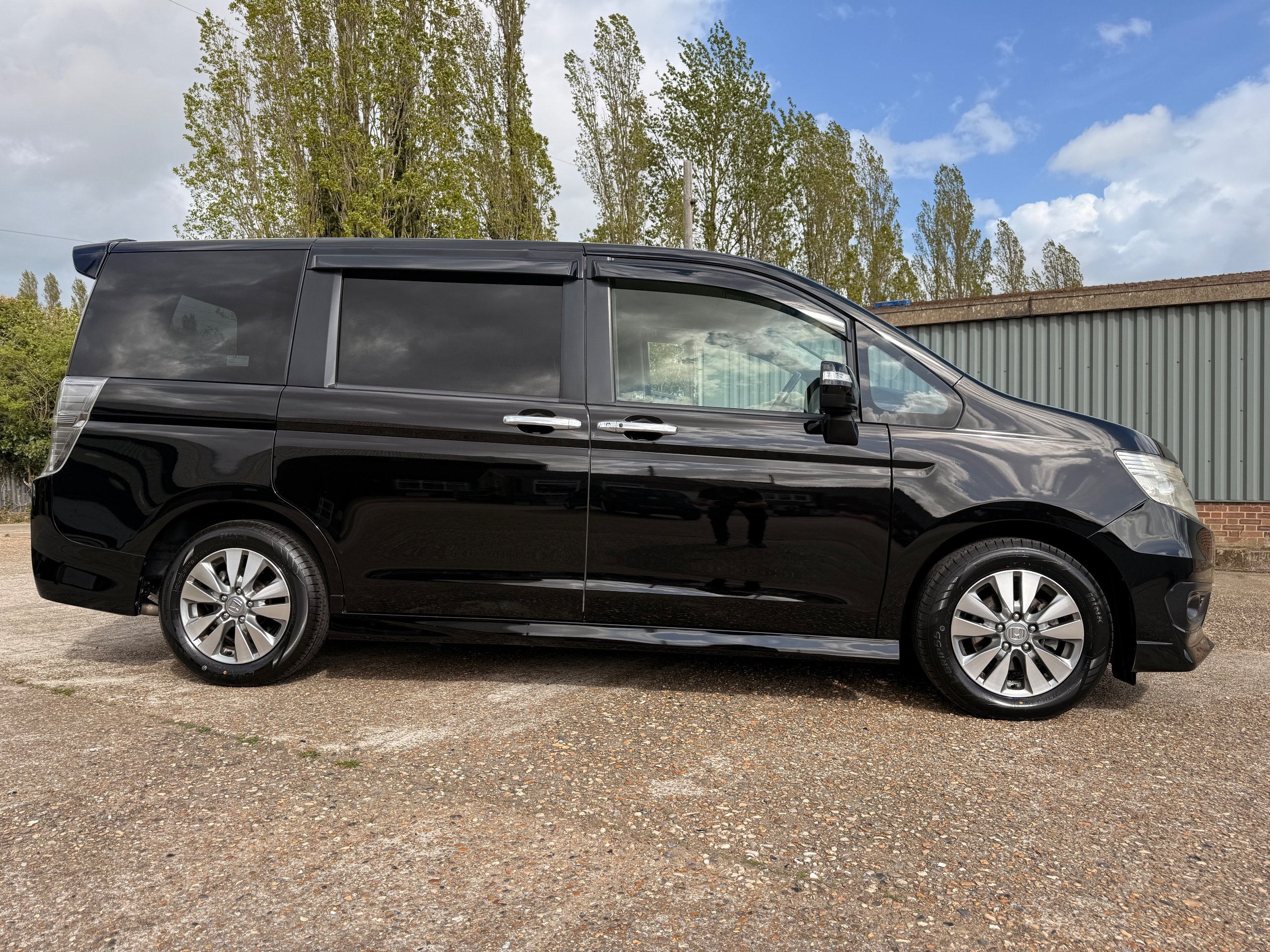 Honda Stepwagon 2.0 Spada-Z- R.K Series, Auto, 2012-12-Reg, Face-Lift Edition, Finished in Unmarked Metallic Black Paintwork, Full Privacy Glass, Stunning 17” Diamond Cut Honda Alloys, Twin Electric Soft Closing Sliding Doors, Rear spoiler, Front spots, fold away wing mirrors with built in led indicators, 7 Seater, 7 Unmarked Black velour seats, The front seats both have armrests, Centre flip down table with built in cup holders, The middle row of seats fold away and slide forward the Rear seats fold into the floor to give way to a huge boot, Isofix points, 7X3 Point Factory Honda Seatbelts, Air-Con, Climate Control, Factory Honda Rear Blinds, Key-less Entry and Key-less Start, Cruise Control, Auto Start/Stop, TC,, Colour reversing camera, UK Stereo with Apple CarPlay stereo, Only covered 80,000 Miles with all the Genuine paperwork from Japan including the auction sheet and Export certificate which both show the mileage and condition before it left Japan
