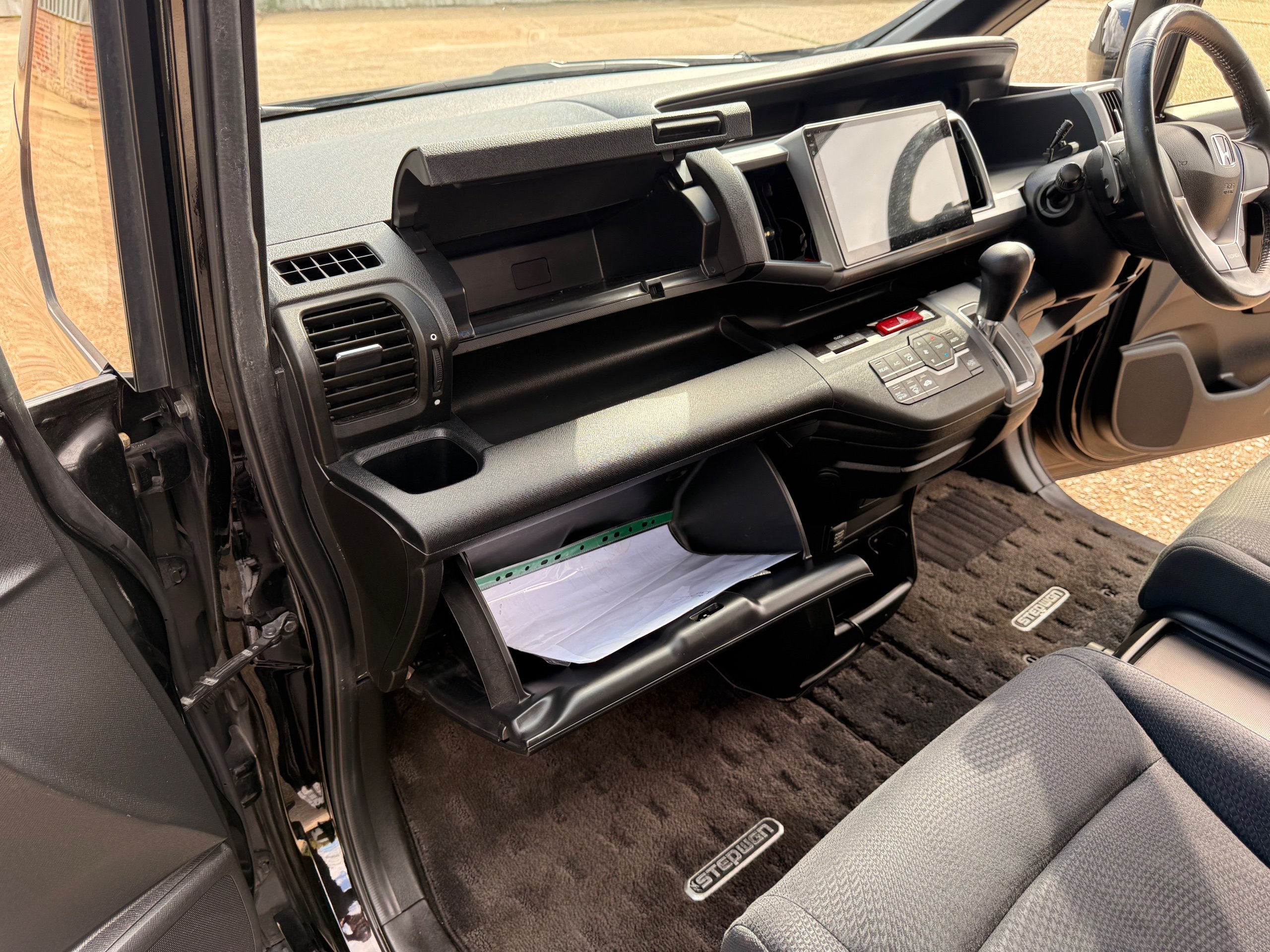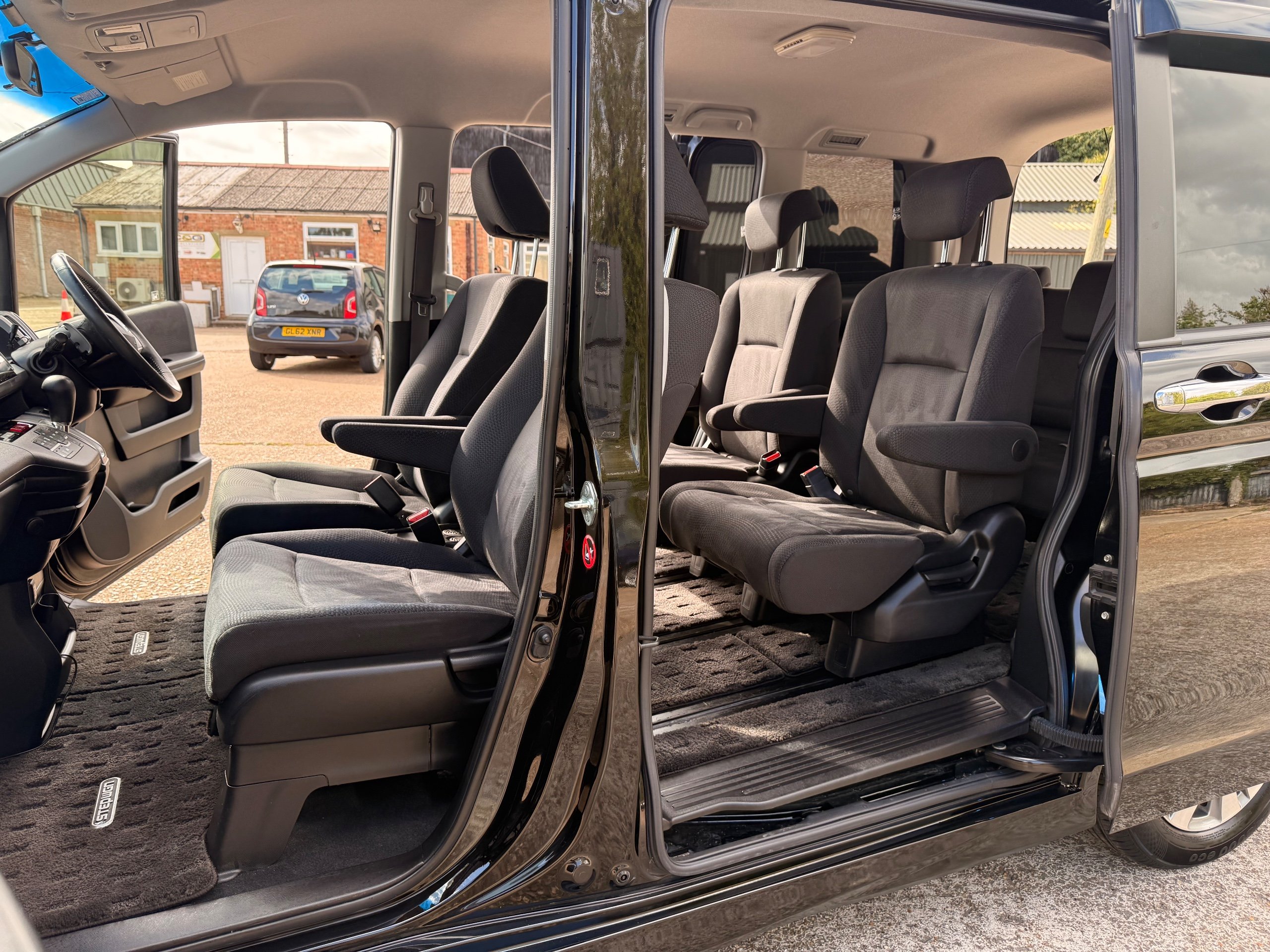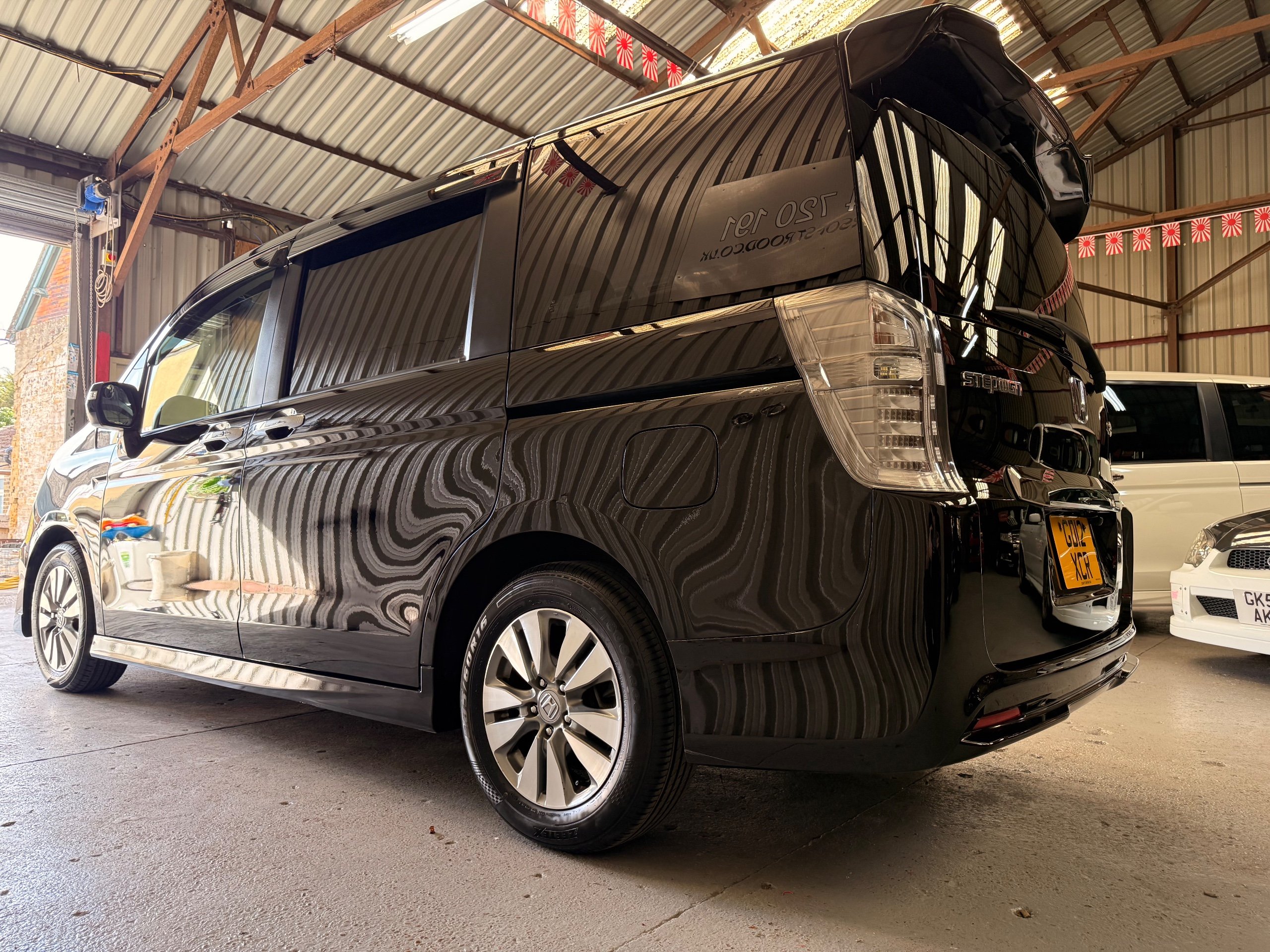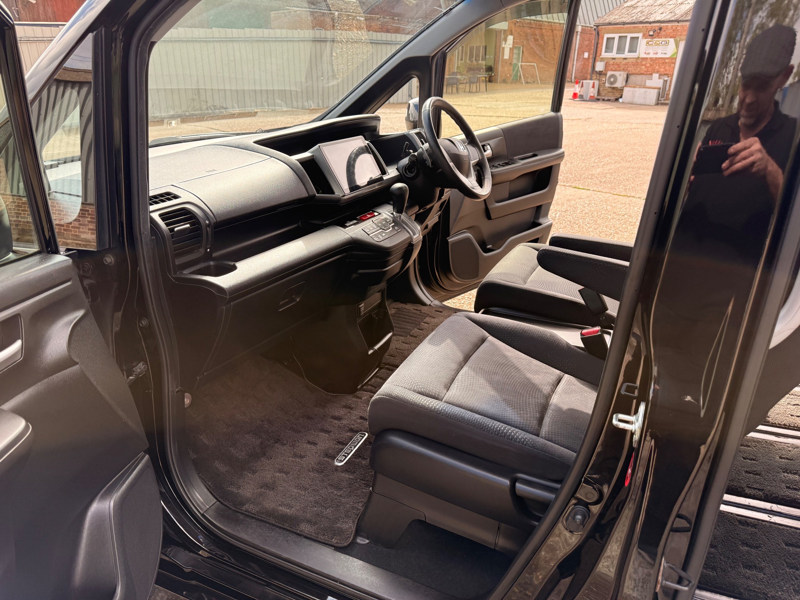 Honda Stepwagon 2.0 Spada-Z- R.K Series, Auto, 2012-12-Reg, Face-Lift Edition, Finished in Unmarked Metallic Black Paintwork, Full Privacy Glass, Stunning 17” Diamond Cut Honda Alloys, Twin Electric Soft Closing Sliding Doors, Rear spoiler, Front spots, fold away wing mirrors with built in led indicators, 7 Seater, 7 Unmarked Black velour seats, The front seats both have armrests, Centre flip down table with built in cup holders, The middle row of seats fold away and slide forward the Rear seats fold into the floor to give way to a huge boot, Isofix points, 7X3 Point Factory Honda Seatbelts, Air-Con, Climate Control, Factory Honda Rear Blinds, Key-less Entry and Key-less Start, Cruise Control, Auto Start/Stop, TC,, Colour reversing camera, UK Stereo with Apple CarPlay stereo, Only covered 80,000 Miles with all the Genuine paperwork from Japan including the auction sheet and Export certificate which both show the mileage and condition before it left Japan