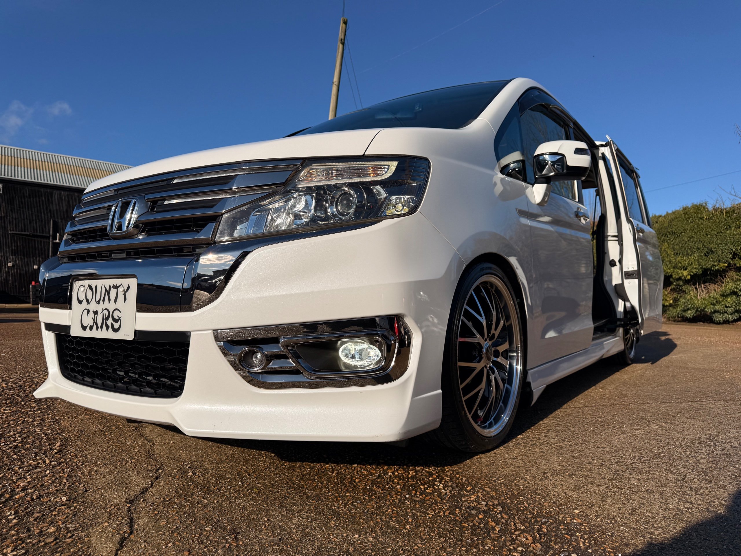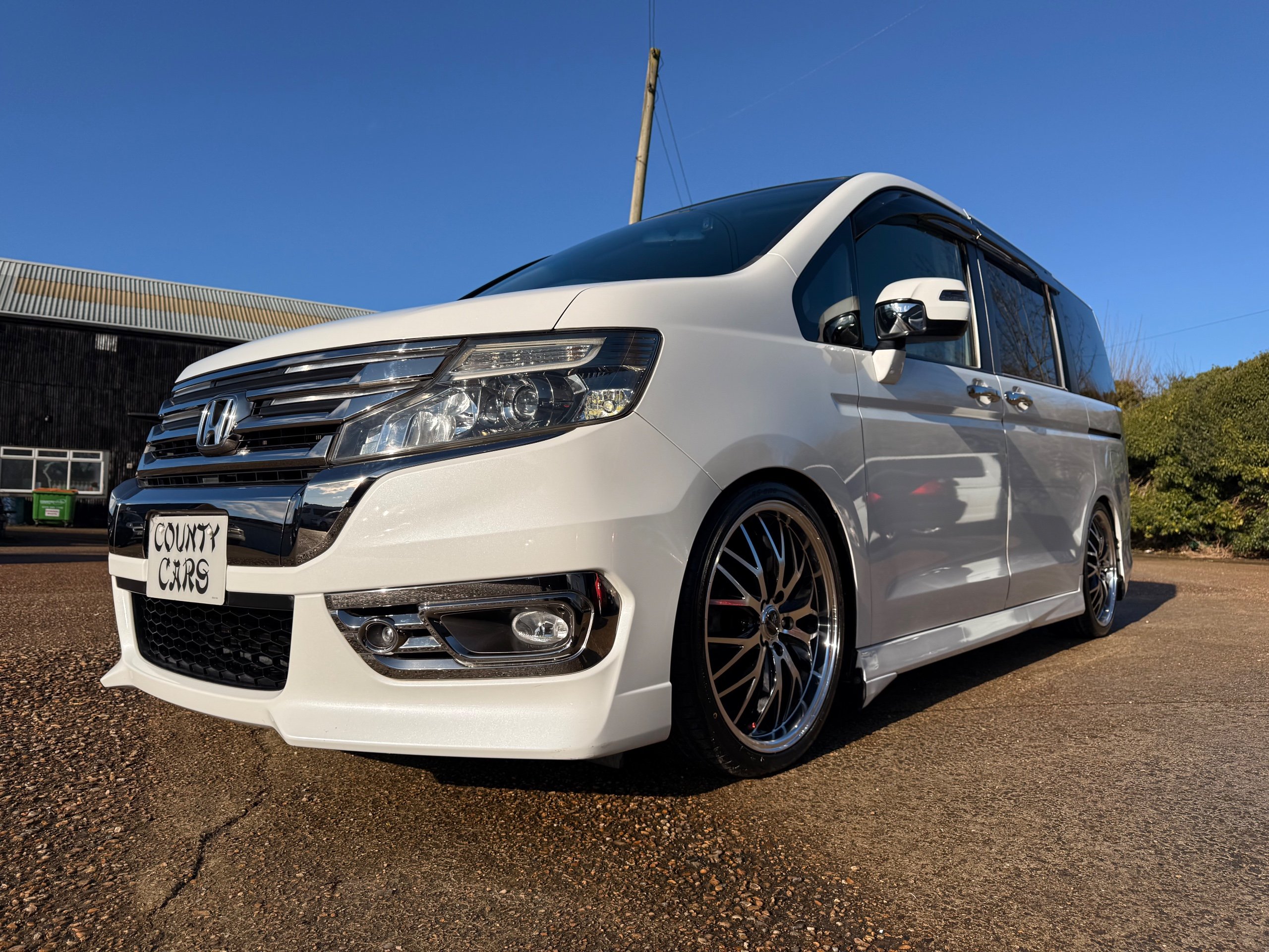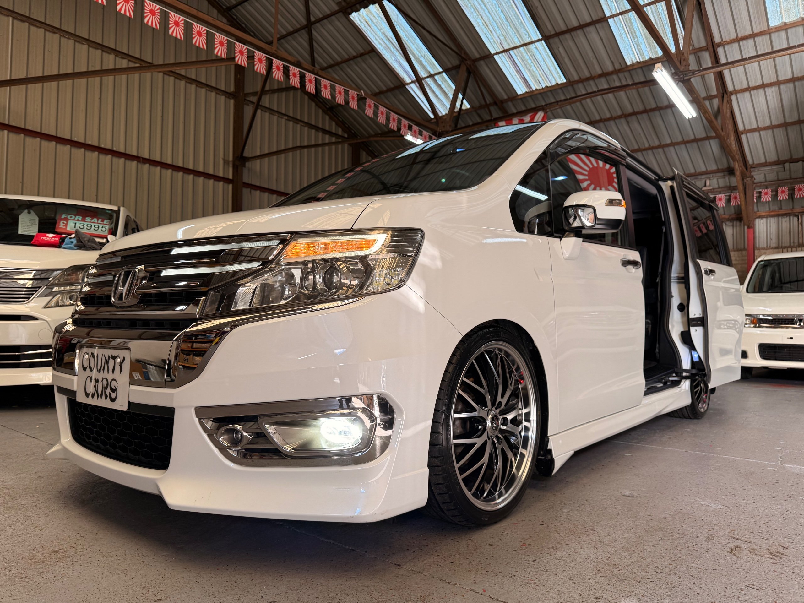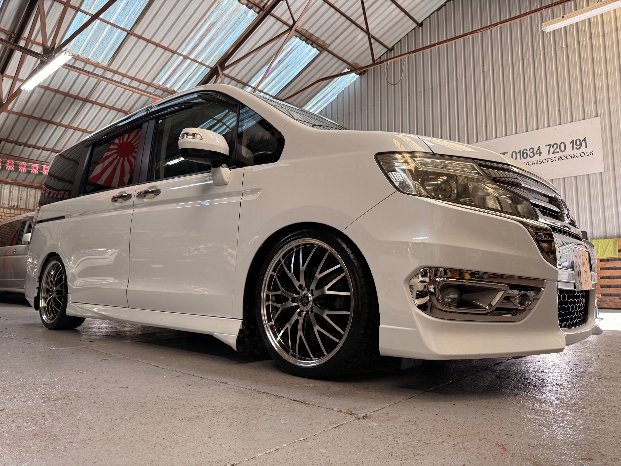 Honda Stepwagon 2.0 Spada Cool Spirit R.K Series, Auto, 2013-63-Reg, Face-Lift Edition, Finished in Unmarked Pearlescent White Paintwork, Full Privacy Glass, Stunning 19” Multi Forchetta 2 Diamond Cut Alloys They really set it off. Twin Electric Soft Closing Sliding Doors, Rear spoiler, Front spots, with chrome surrounds, 7 Seater, 7 Unmarked half Black leather seats, The front seats have armrests, Flip up table with cup holders, The middle row of seats are Captain Style Seats with Twin Armrests, They also fold up and slide forward and the Rear seats fold into the floor to give way to a huge boot, Flip rear seat also faces backwards outside of the car ideal for fishing or boot fairs, Isofix points, 3 Point Factory Honda Seatbelts, Full Mugen Over mats latest edition Mugen mats, Front & Rear Electric windows, Air-Con, Climate control, Rear A/C, Key-less Entry and Key-less Start, Colour reversing camera, Cruise Control, Auto/Start/Stop, Android Stereo with Auto Apple CarPlay, Rear Alpine Rear Monitor, Full gloss black dash kit, Full anti slip dash mats and pocket covers, Only covered a Genuine 57,000 Miles with all the Genuine paperwork from Japan including the auction sheet and d-registration form which both show the mileage and condition before it left Japan UK Stereo System fitted MPH Speedo conversion Fully serviced all done before Collection/Delivery