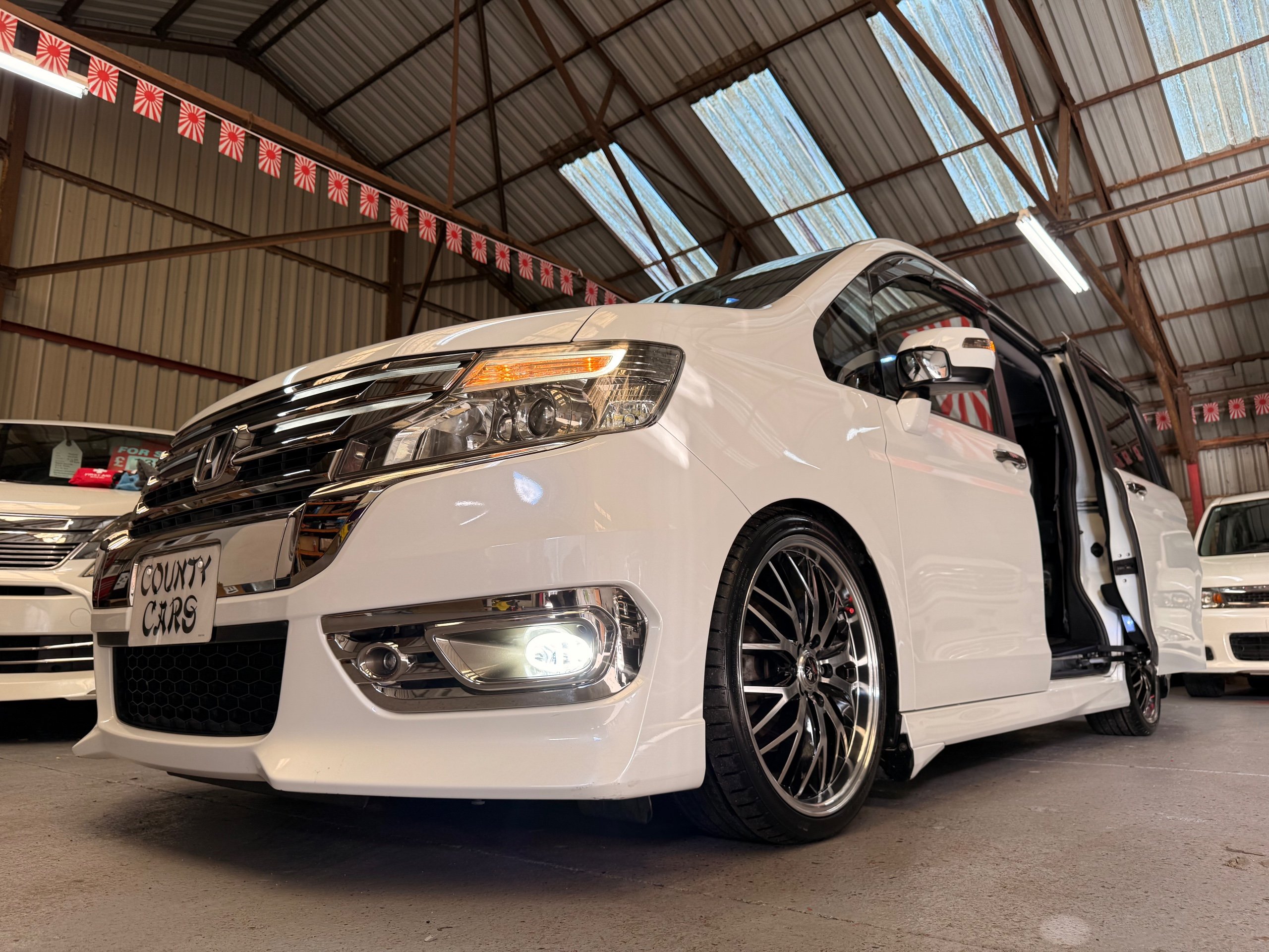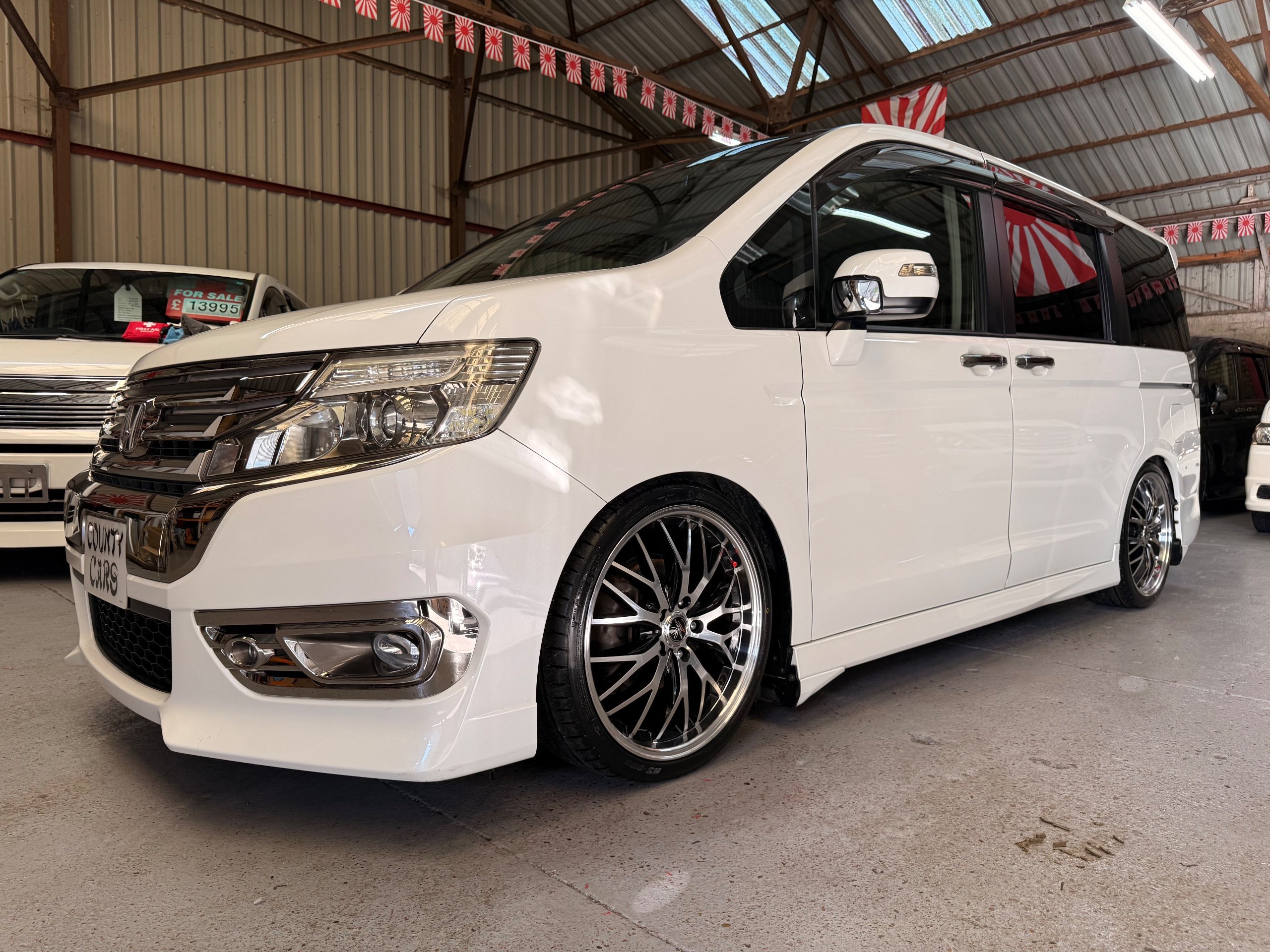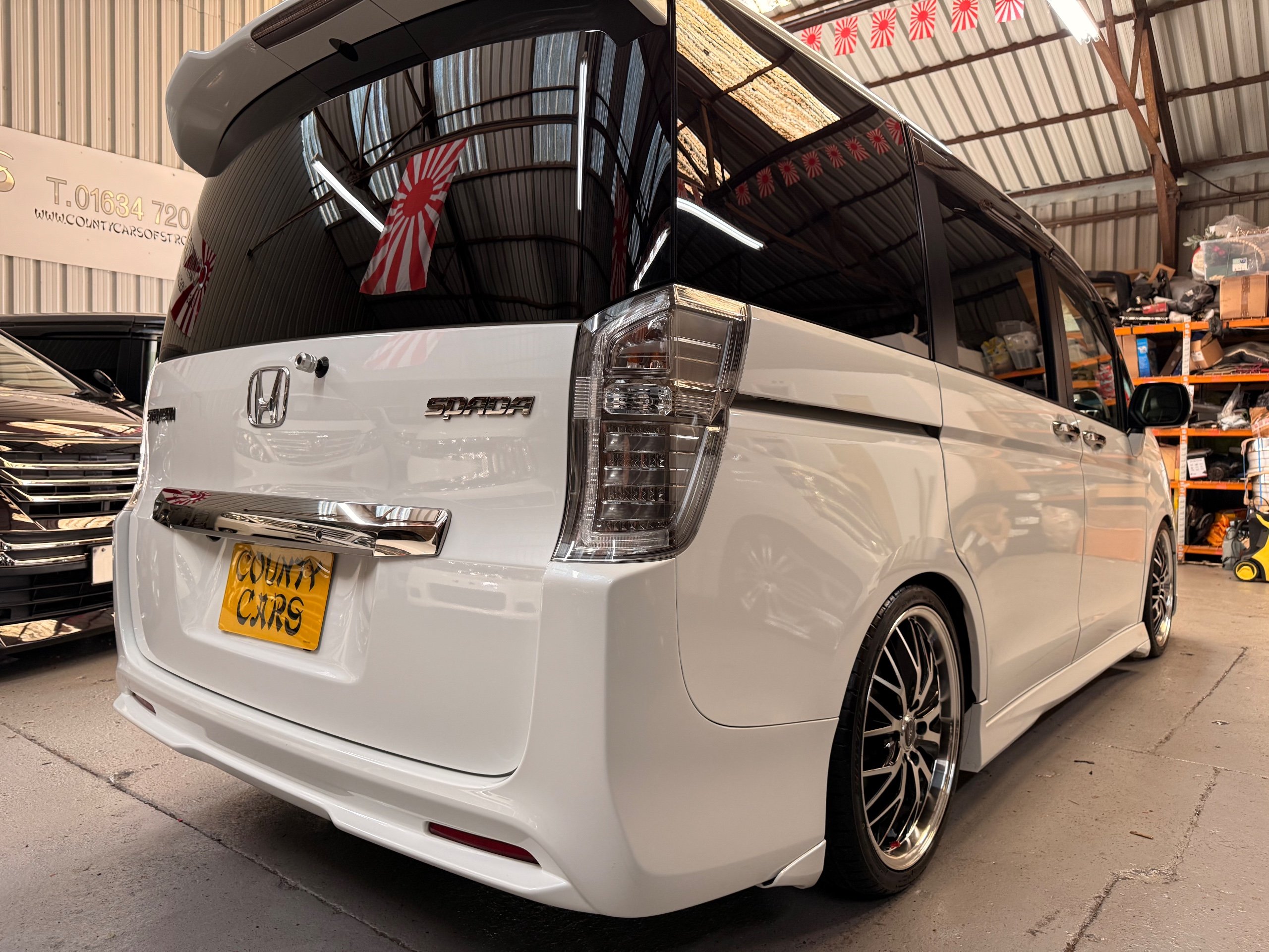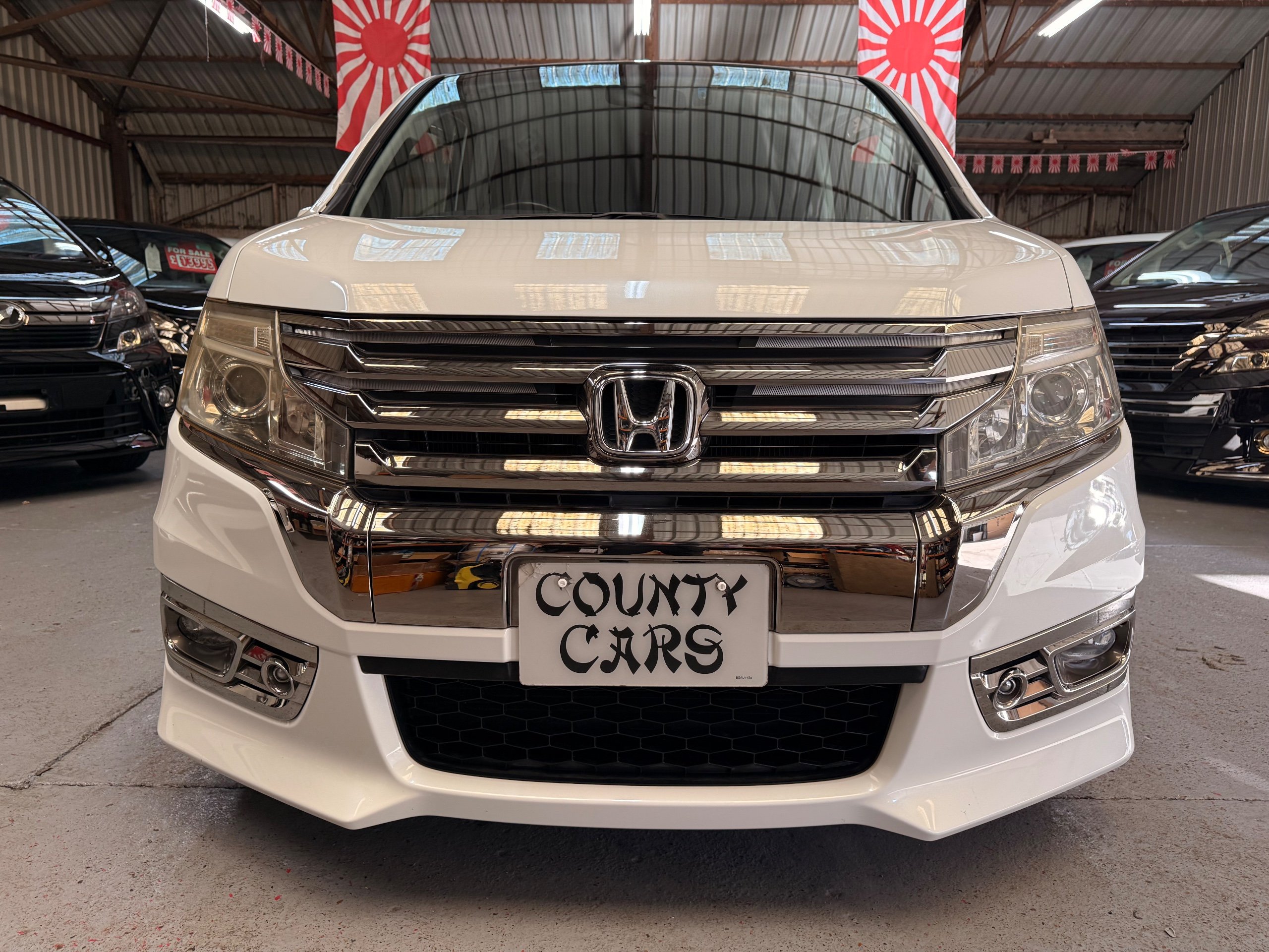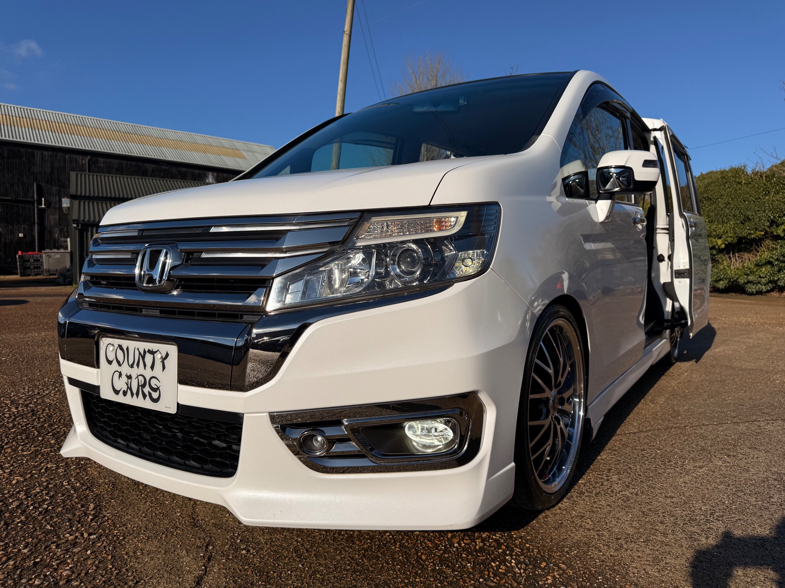 Honda Stepwagon 2.0 Spada Cool Spirit R.K Series, Auto, 2013-63-Reg, Face-Lift Edition, Finished in Unmarked Pearlescent White Paintwork, Full Privacy Glass, Stunning 19” Multi Forchetta 2 Diamond Cut Alloys They really set it off. Twin Electric Soft Closing Sliding Doors, Rear spoiler, Front spots, with chrome surrounds, 7 Seater, 7 Unmarked half Black leather seats, The front seats have armrests, Flip up table with cup holders, The middle row of seats are Captain Style Seats with Twin Armrests, They also fold up and slide forward and the Rear seats fold into the floor to give way to a huge boot, Flip rear seat also faces backwards outside of the car ideal for fishing or boot fairs, Isofix points, 3 Point Factory Honda Seatbelts, Full Mugen Over mats latest edition Mugen mats, Front & Rear Electric windows, Air-Con, Climate control, Rear A/C, Key-less Entry and Key-less Start, Colour reversing camera, Cruise Control, Auto/Start/Stop, Android Stereo with Auto Apple CarPlay, Rear Alpine Rear Monitor, Full gloss black dash kit, Full anti slip dash mats and pocket covers, Only covered a Genuine 57,000 Miles with all the Genuine paperwork from Japan including the auction sheet and d-registration form which both show the mileage and condition before it left Japan UK Stereo System fitted MPH Speedo conversion Fully serviced all done before Collection/Delivery