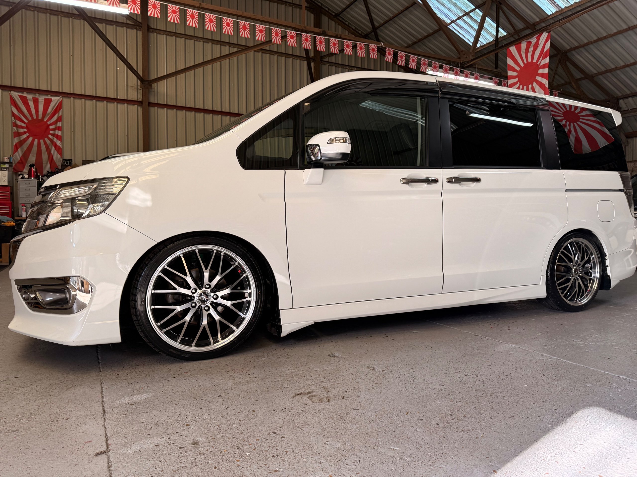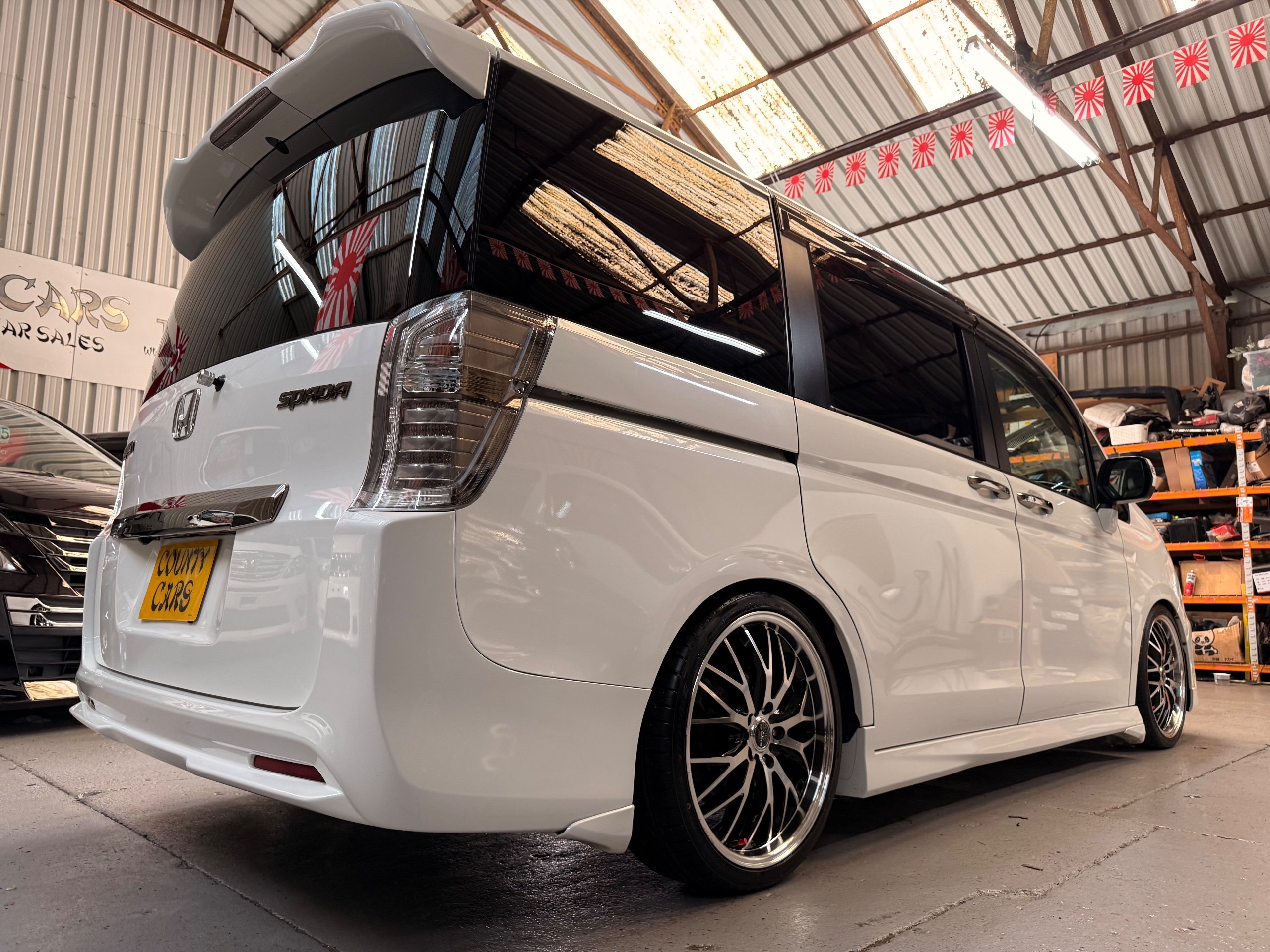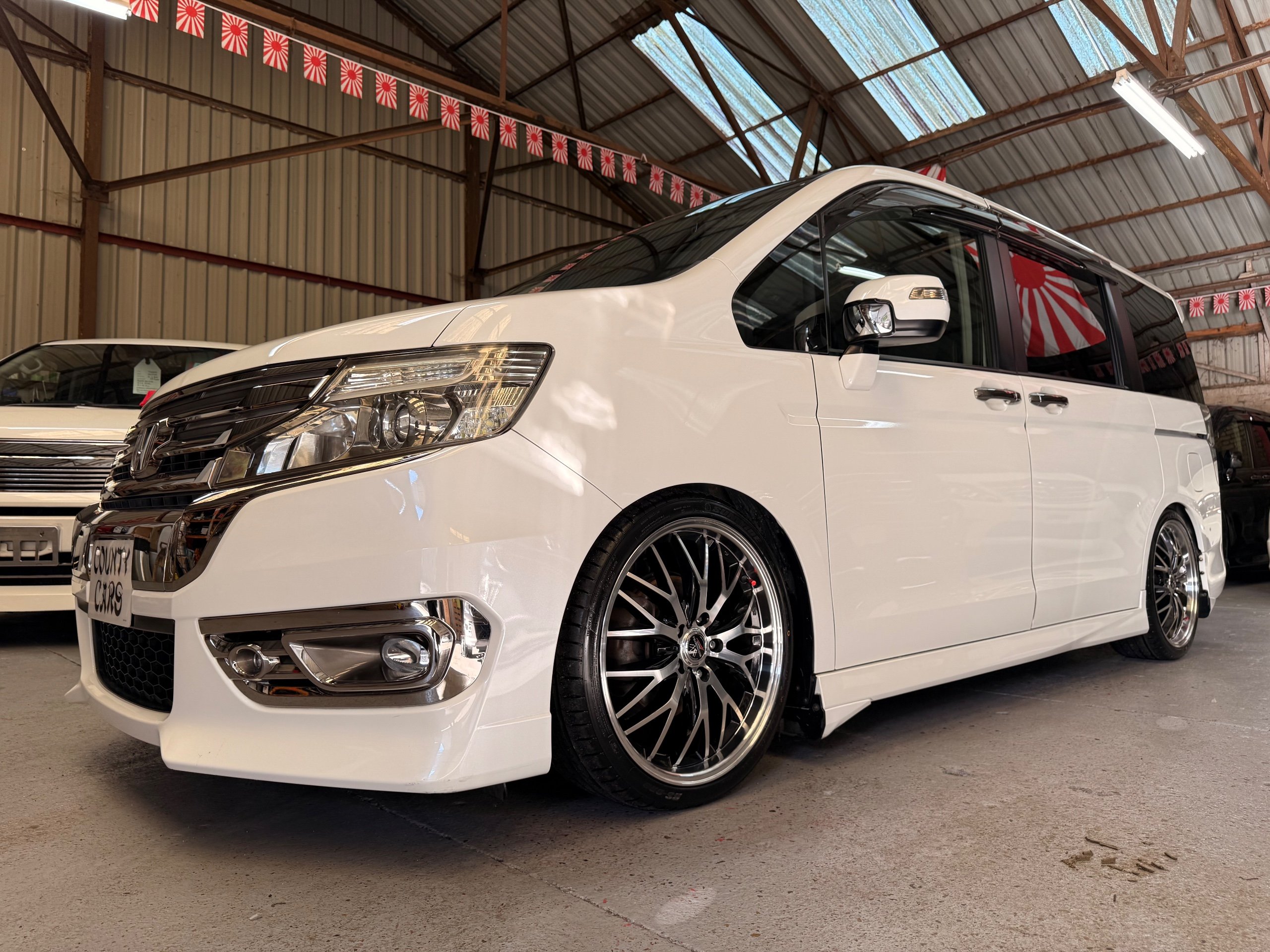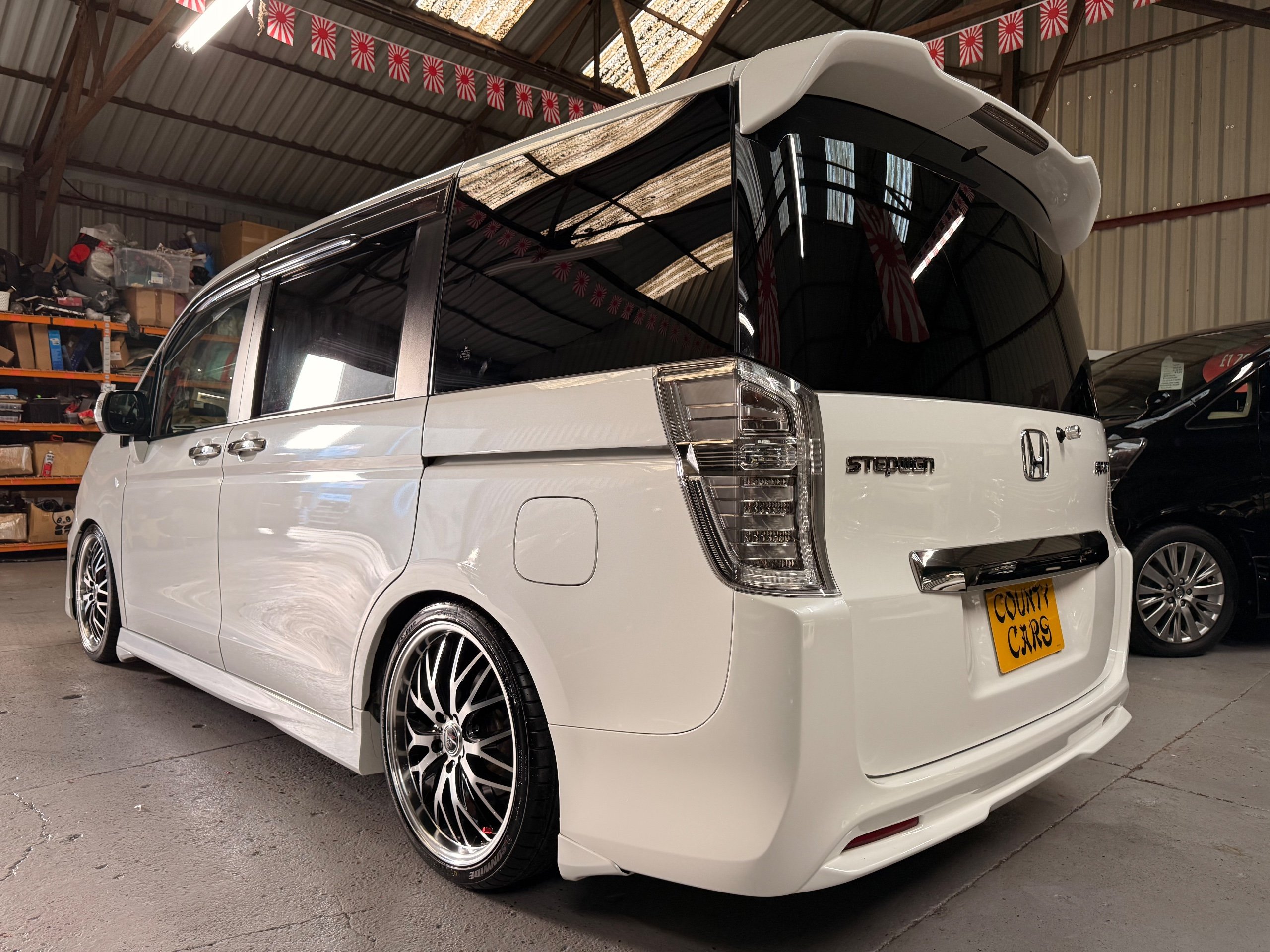 Honda Stepwagon 2.0 Spada Cool Spirit R.K Series, Auto, 2013-63-Reg, Face-Lift Edition, Finished in Unmarked Pearlescent White Paintwork, Full Privacy Glass, Stunning 19” Multi Forchetta 2 Diamond Cut Alloys They really set it off. Twin Electric Soft Closing Sliding Doors, Rear spoiler, Front spots, with chrome surrounds, 7 Seater, 7 Unmarked half Black leather seats, The front seats have armrests, Flip up table with cup holders, The middle row of seats are Captain Style Seats with Twin Armrests, They also fold up and slide forward and the Rear seats fold into the floor to give way to a huge boot, Flip rear seat also faces backwards outside of the car ideal for fishing or boot fairs, Isofix points, 3 Point Factory Honda Seatbelts, Full Mugen Over mats latest edition Mugen mats, Front & Rear Electric windows, Air-Con, Climate control, Rear A/C, Key-less Entry and Key-less Start, Colour reversing camera, Cruise Control, Auto/Start/Stop, Android Stereo with Auto Apple CarPlay, Rear Alpine Rear Monitor, Full gloss black dash kit, Full anti slip dash mats and pocket covers, Only covered a Genuine 57,000 Miles with all the Genuine paperwork from Japan including the auction sheet and d-registration form which both show the mileage and condition before it left Japan UK Stereo System fitted MPH Speedo conversion Fully serviced all done before Collection/Delivery