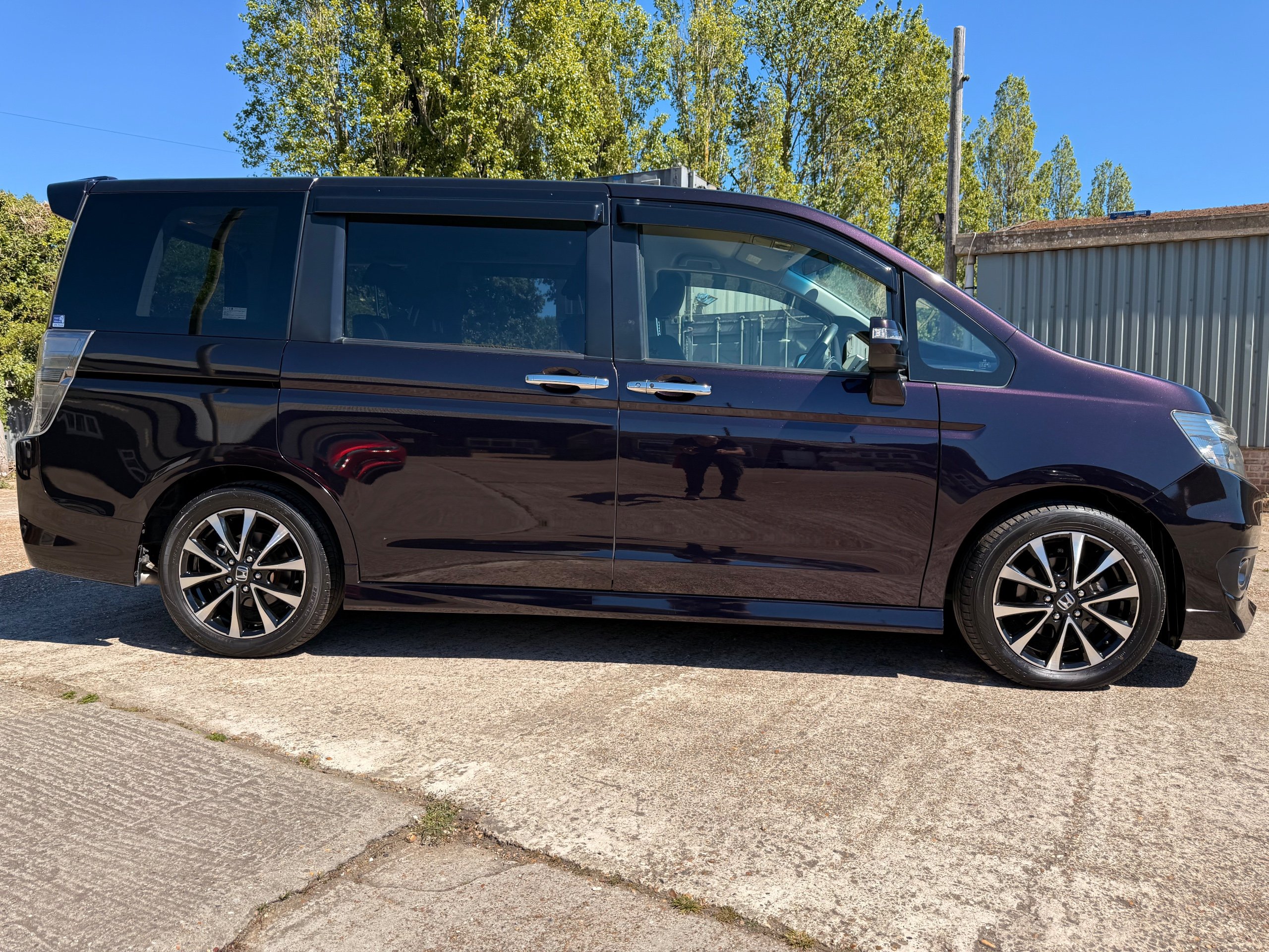 Honda Stepwagon 2.0 Spada Cool Spirit R.K Series, Auto, 2014-14-Reg, Face-Lift Edition, Finished in Stunning Metallic Midnight Purple Paintwork, Full Privacy Glass, Stunning 17" Diamond Cut with black gloss centres Honda Spada Alloys, Twin Electric Soft Closing Sliding Doors, Rear spoiler, Front spots, Chrome door handles, 8 Seater, 8 Unmarked half Black leather seats, The front seats have armrests, Flip up table with cup holders, The middle row of seats fold up and slide forward and the Rear seats fold into the floor to give way to a huge boot, Flip rear seat to face backwards outside of the car ideal for fishing or boot fairs, Isofix points, 3 Point Factory Honda Seatbelts, Front & Rear Electric windows, Top End Floor Mats, Air-Con, Climate control, Rear A/C, Key-less Entry and Key-less Start, Colour reversing camera, Cruise Control, Auto/Start/Stop, Android Stereo with Auto Apple CarPlay, Only covered a Genuine 40,000 Miles with all the Genuine paperwork from Japan including the auction sheet and Export certificate which both show the mileage and condition before it left Japan UK Stereo System fitted MPH Speedo conversion Fully serviced all done before Collection/Delivery