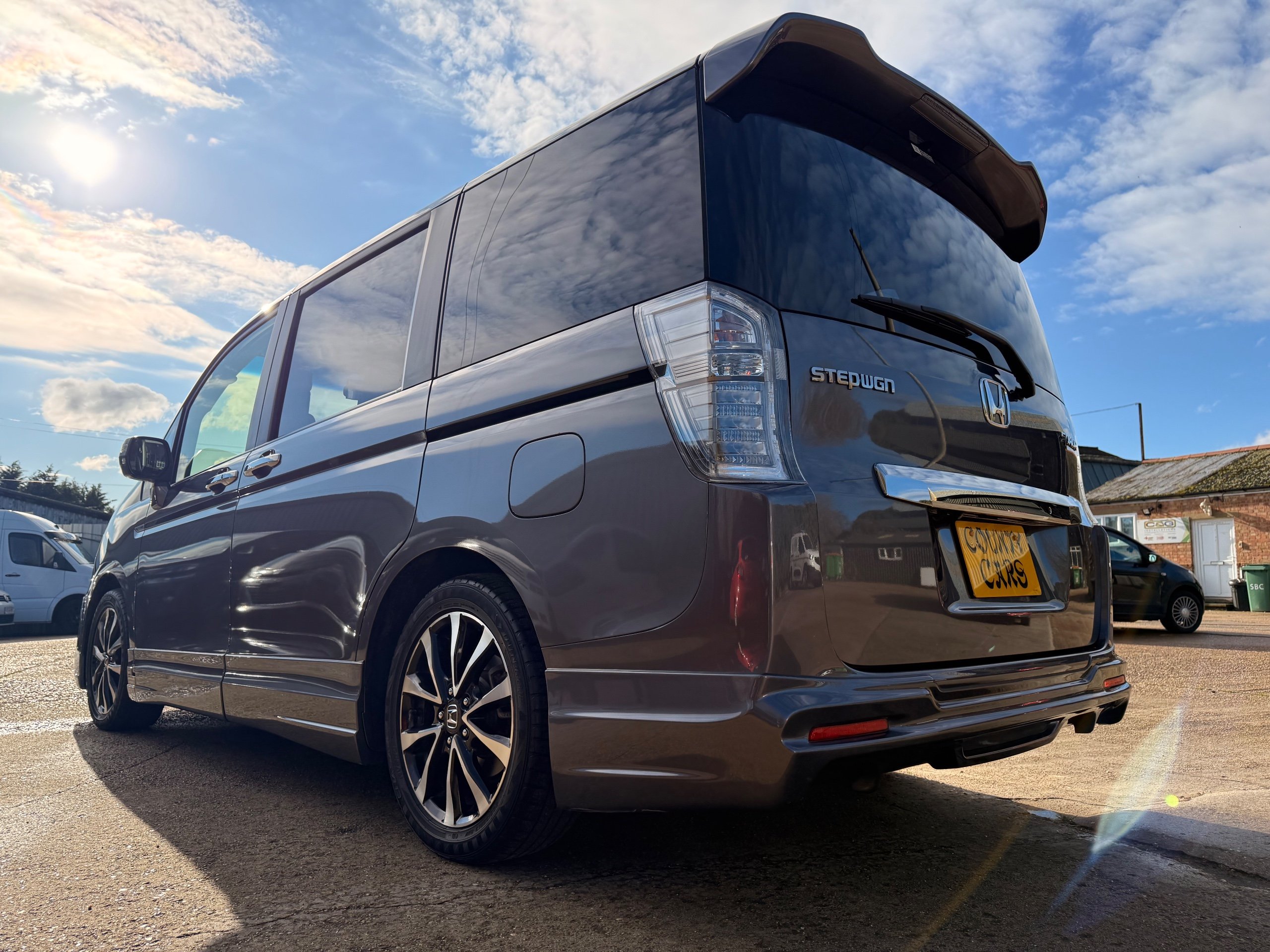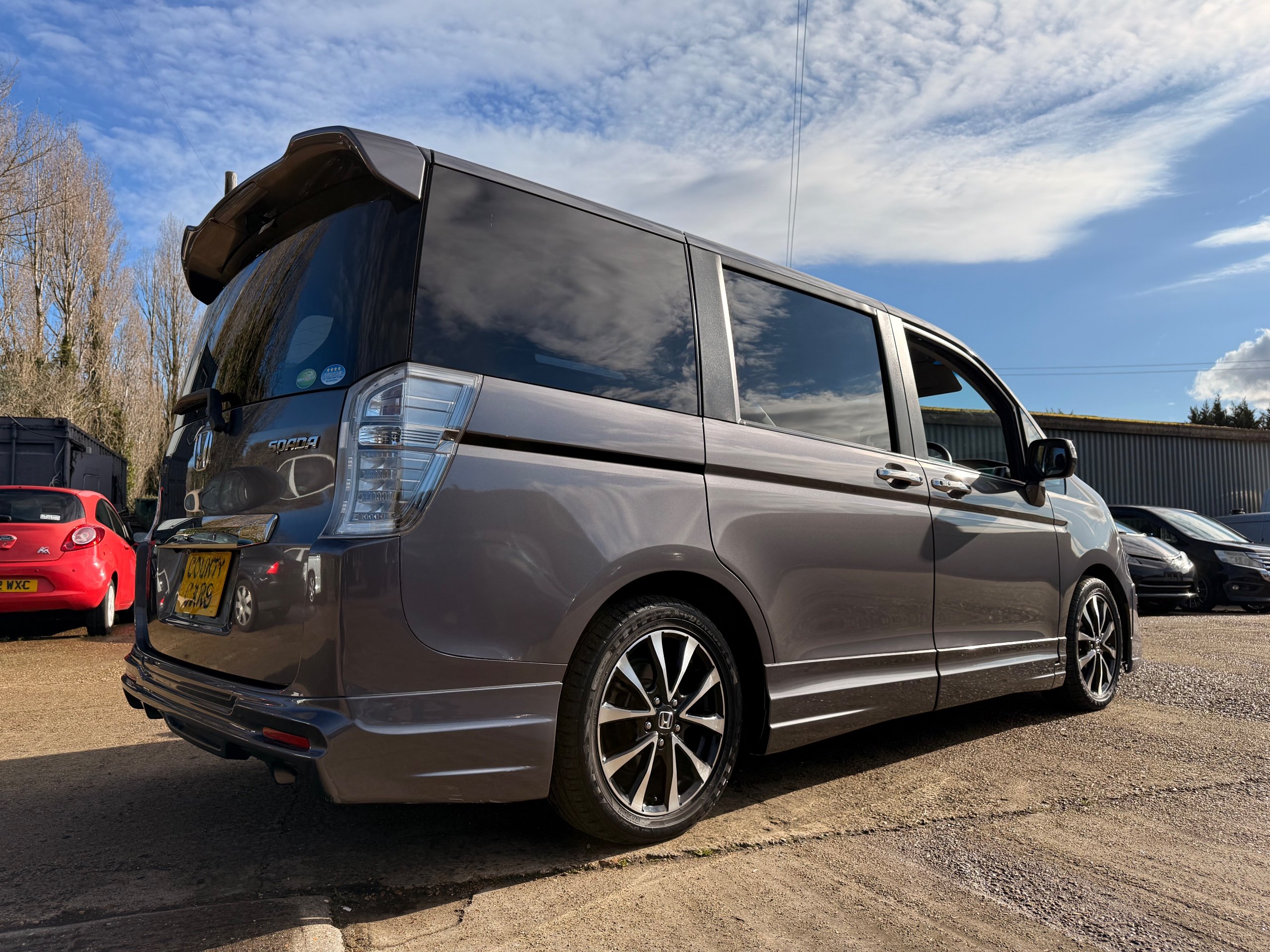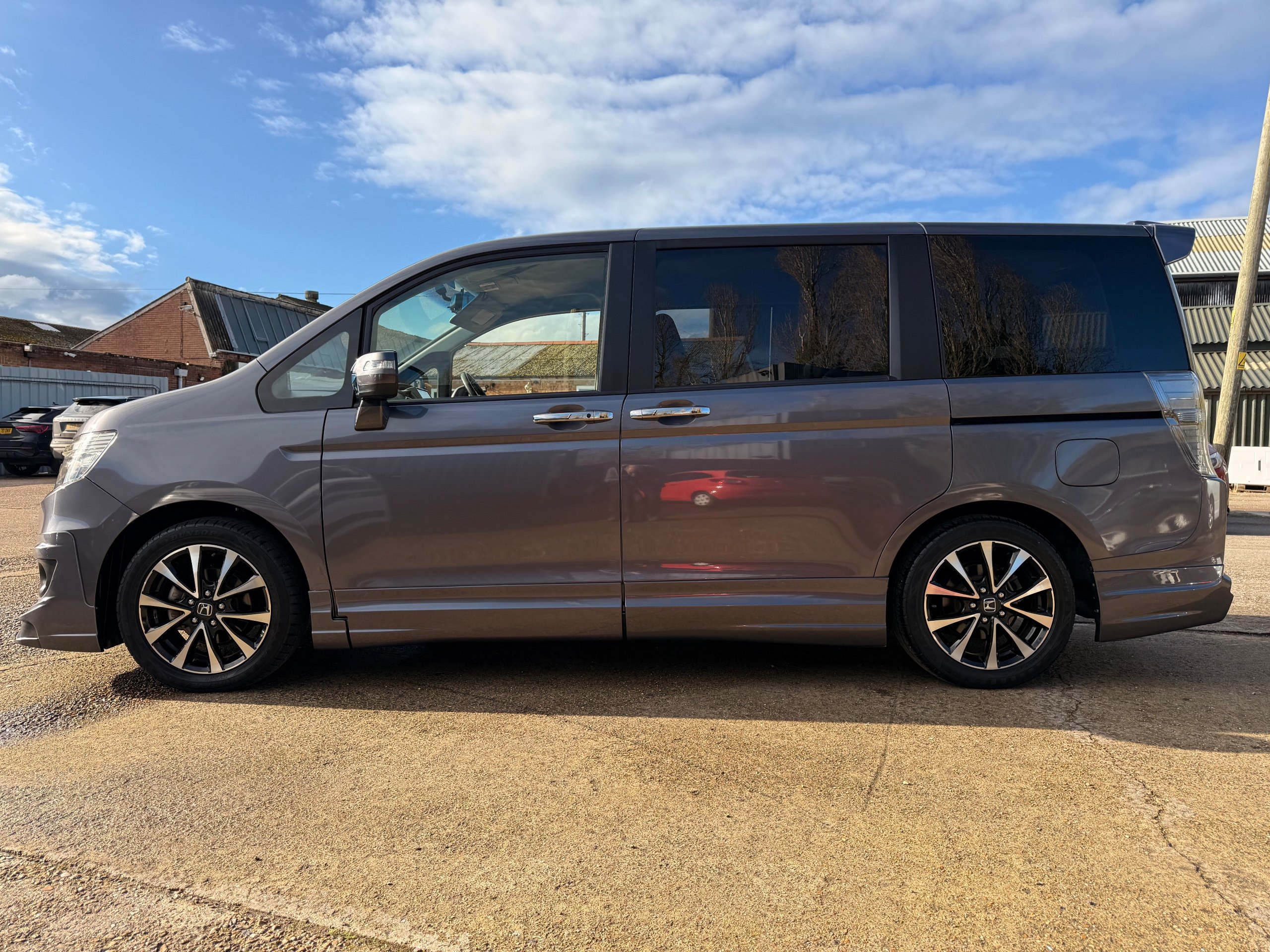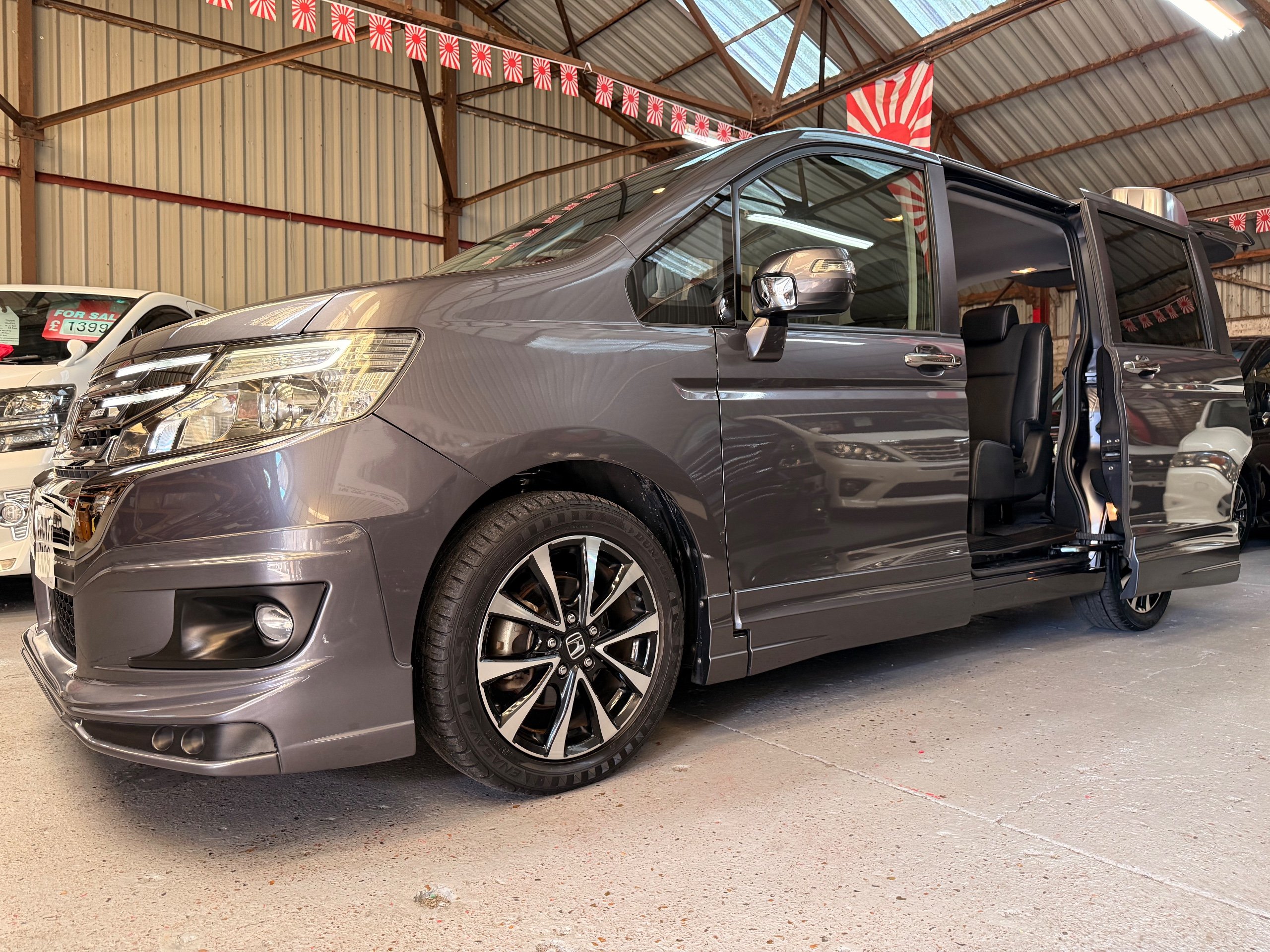 Honda Stepwagon 2.0 Spada Cool-Spirit Mugen Edition, 2014-64-Reg, Finished in unmarked Metallic Grey Paintwork, Full privacy glass, Full Mugen Body-kit, Genuine Mugen Front bumper Side Skirts and Rear Bumper, Front Spots, Rear Spoiler, Genuine 17” Honda Diamond cut with gloss black centres Alloy wheels, Key-Less Entry, 8 Seater, 8 Unblemished half leather seats, The front seats have armrests, Between the front seats is a flip up table with two cup holders, The Middle row of Seats has a centre armrest with twin cup holders, Rear Electric Windows on the sliding doors, The middle row of seats folds forward, The Rear Seats fold backwards to sit facing outside of the car, The Rear Seat also folds into the floor to give way to a huge boot, Carbon Fibre Style Dash-Kit, Air-Con, Climate Control, Twin Electric Soft Closing Sliding Doors, Auto Star/Stop, Traction Control, Cruise Control, ECO Mode, Key-Less Start, UK Speedo, UK Stereo with Apple CarPlay, Fully Serviced, Only covered 40,000 Miles