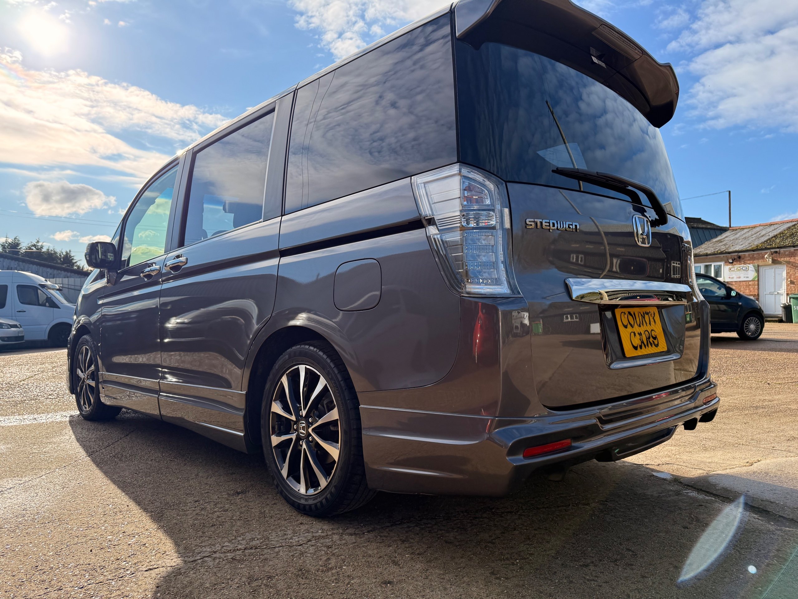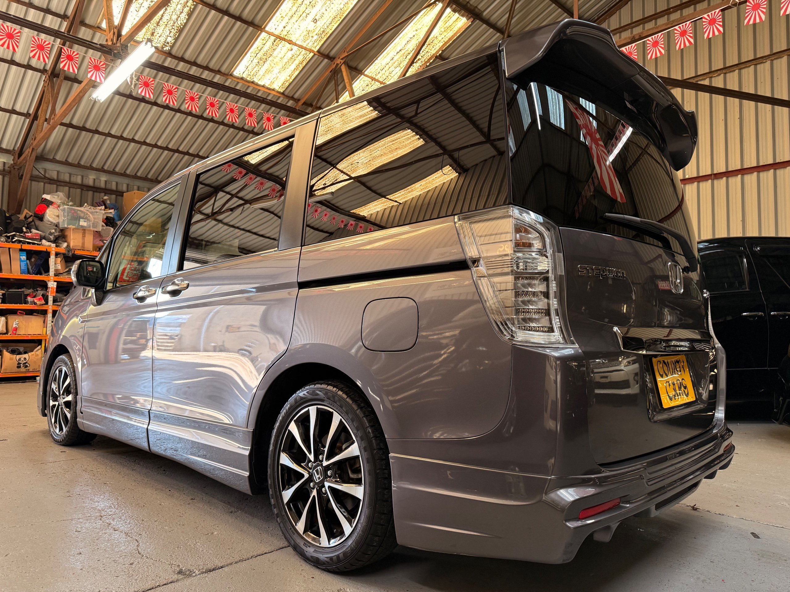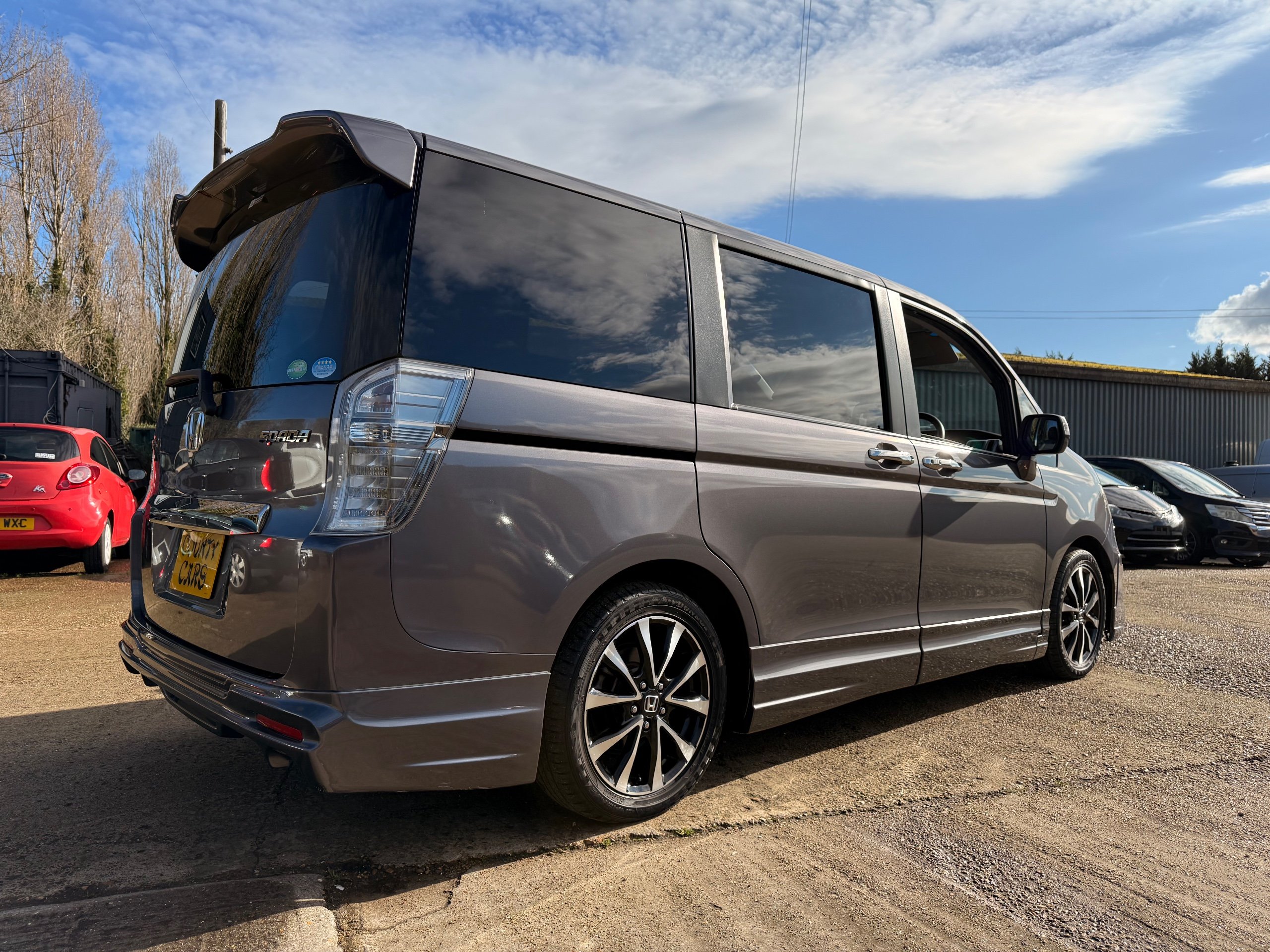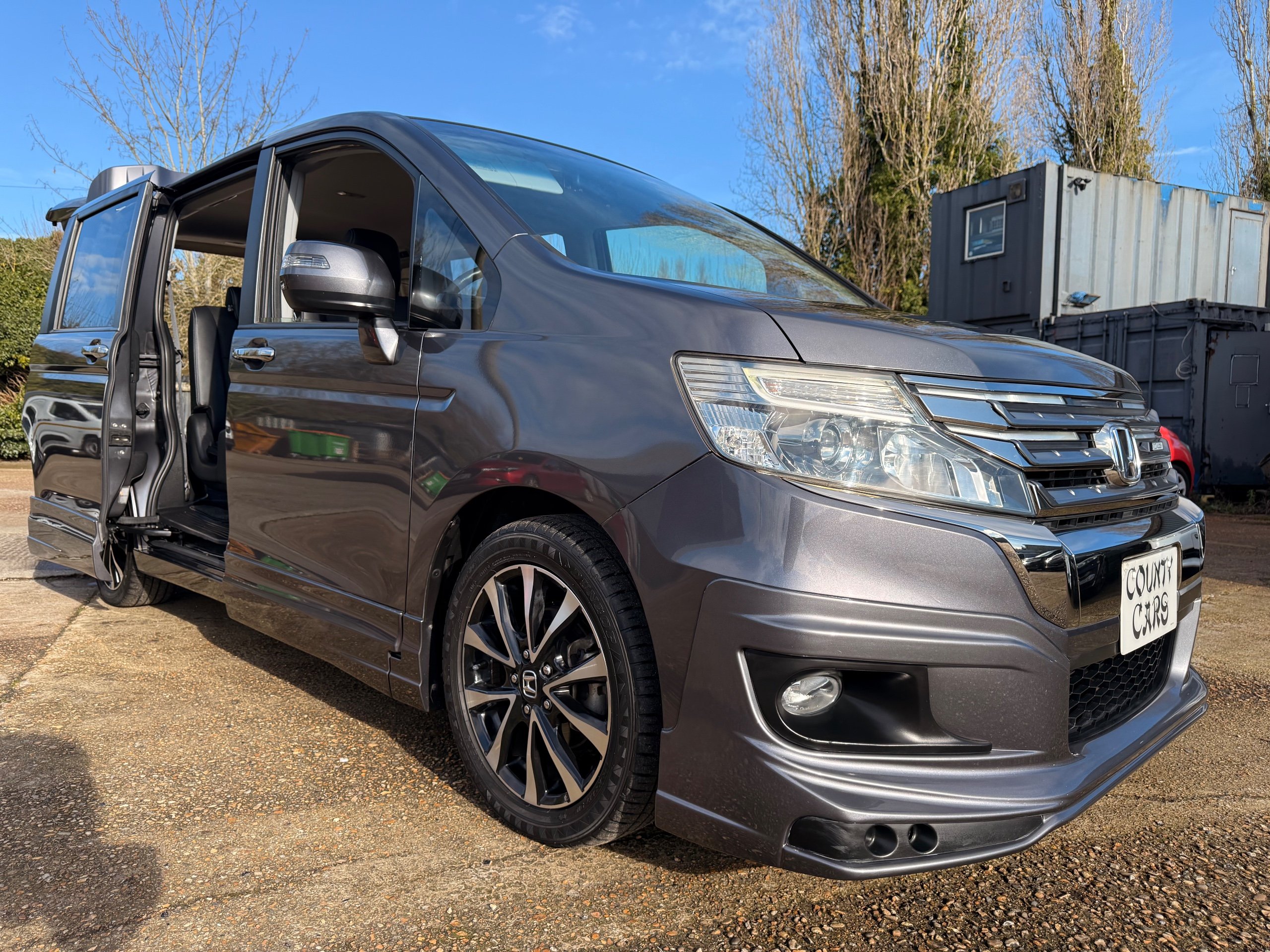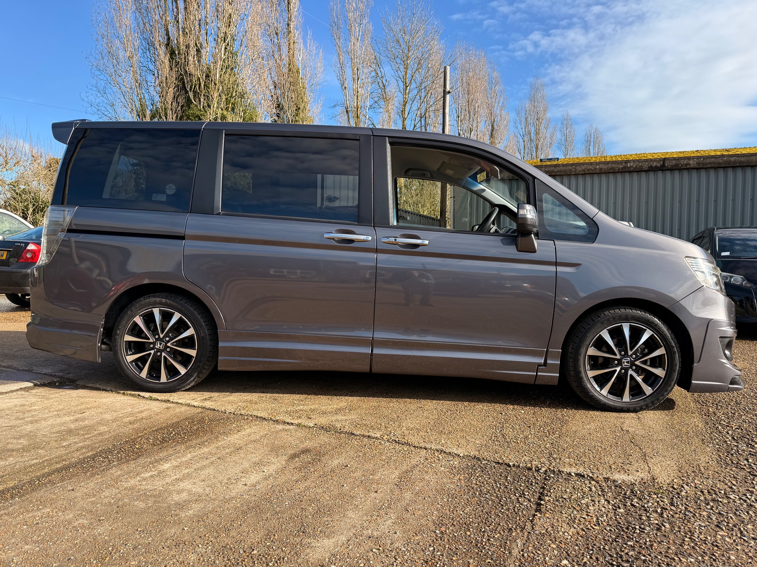 Honda Stepwagon 2.0 Spada Cool-Spirit Mugen Edition, 2014-64-Reg, Finished in unmarked Metallic Grey Paintwork, Full privacy glass, Full Mugen Body-kit, Genuine Mugen Front bumper Side Skirts and Rear Bumper, Front Spots, Rear Spoiler, Genuine 17” Honda Diamond cut with gloss black centres Alloy wheels, Key-Less Entry, 8 Seater, 8 Unblemished half leather seats, The front seats have armrests, Between the front seats is a flip up table with two cup holders, The Middle row of Seats has a centre armrest with twin cup holders, Rear Electric Windows on the sliding doors, The middle row of seats folds forward, The Rear Seats fold backwards to sit facing outside of the car, The Rear Seat also folds into the floor to give way to a huge boot, Carbon Fibre Style Dash-Kit, Air-Con, Climate Control, Twin Electric Soft Closing Sliding Doors, Auto Star/Stop, Traction Control, Cruise Control, ECO Mode, Key-Less Start, UK Speedo, UK Stereo with Apple CarPlay, Fully Serviced, Only covered 40,000 Miles