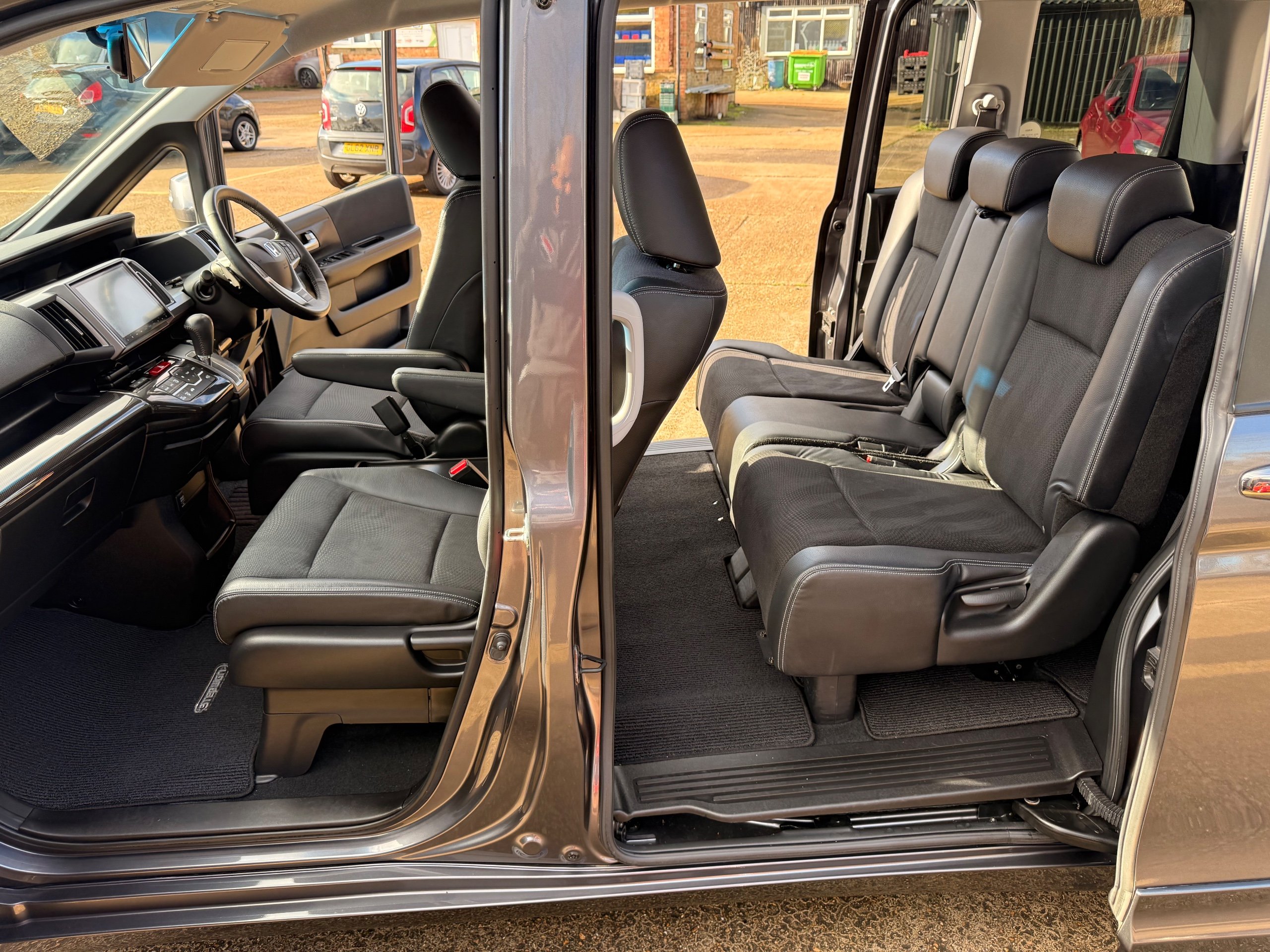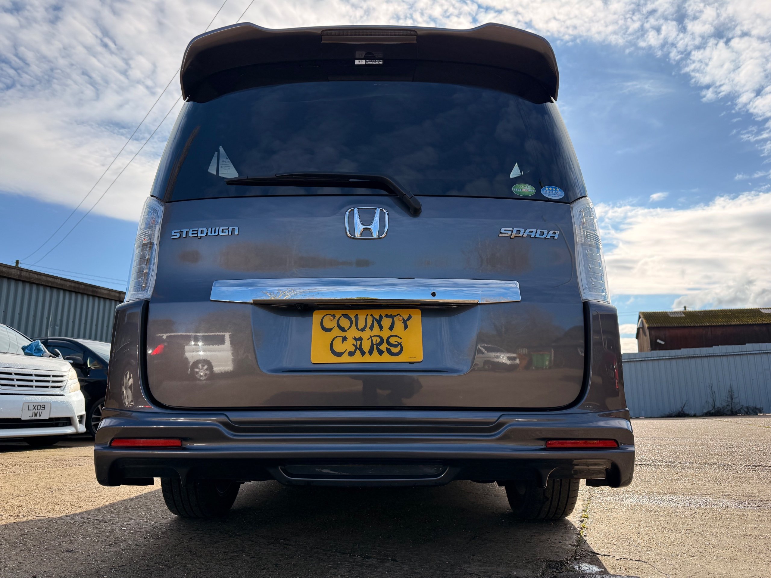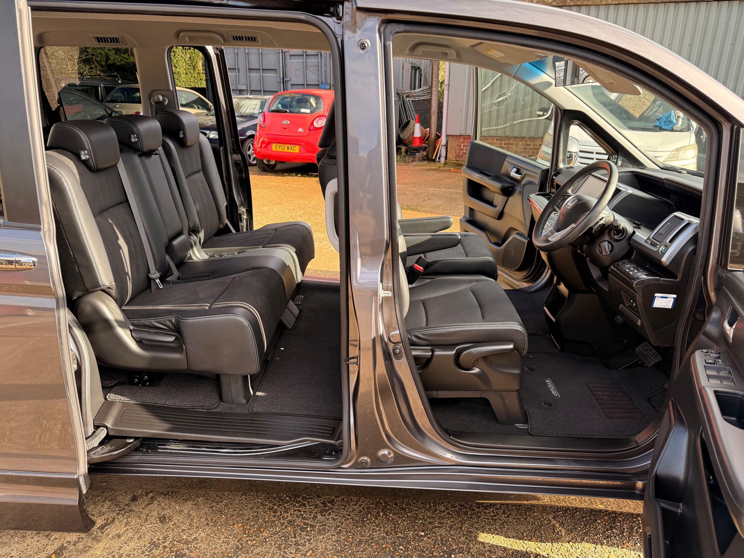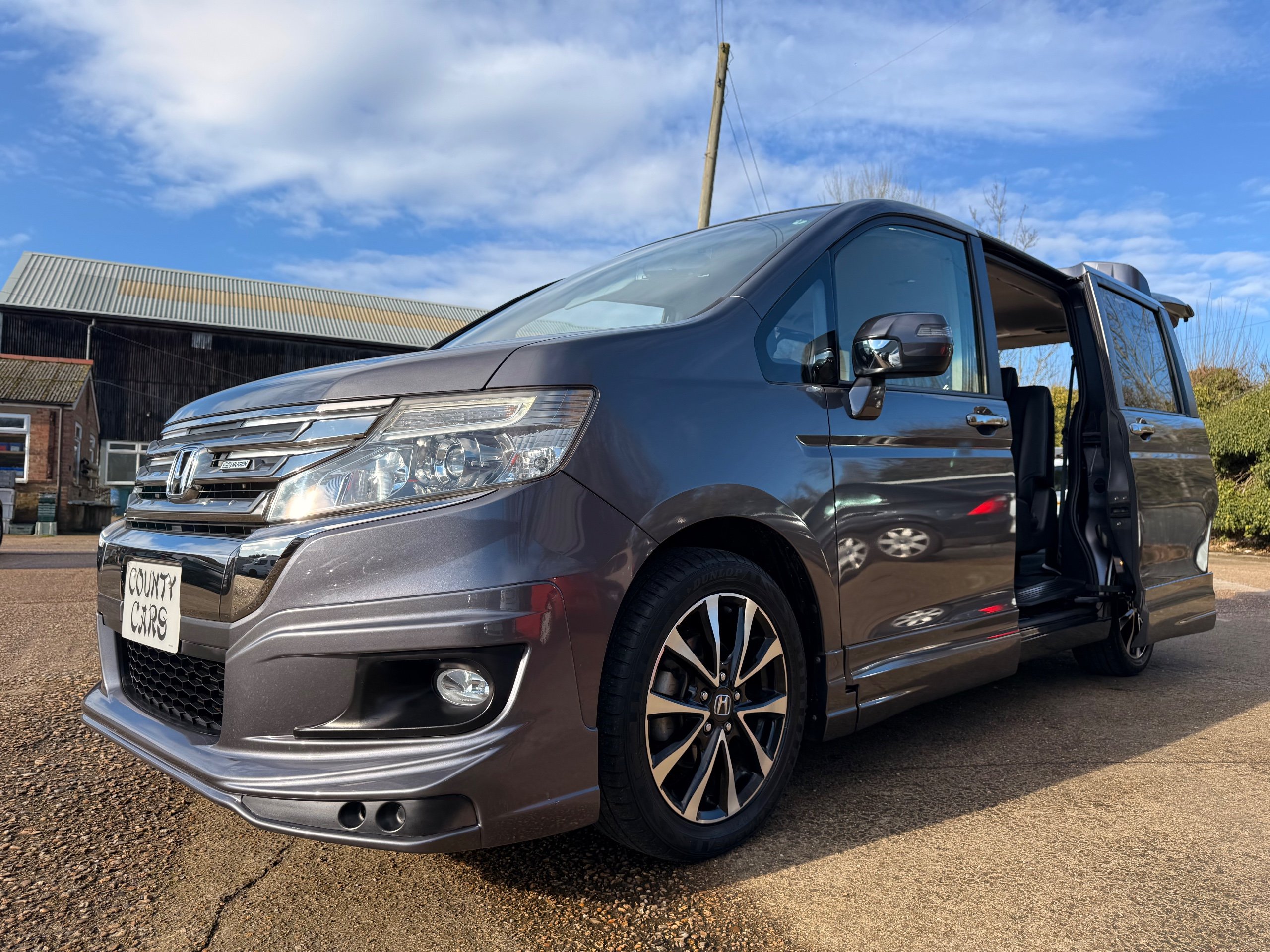 Honda Stepwagon 2.0 Spada Cool-Spirit Mugen Edition, 2014-64-Reg, Finished in unmarked Metallic Grey Paintwork, Full privacy glass, Full Mugen Body-kit, Genuine Mugen Front bumper Side Skirts and Rear Bumper, Front Spots, Rear Spoiler, Genuine 17” Honda Diamond cut with gloss black centres Alloy wheels, Key-Less Entry, 8 Seater, 8 Unblemished half leather seats, The front seats have armrests, Between the front seats is a flip up table with two cup holders, The Middle row of Seats has a centre armrest with twin cup holders, Rear Electric Windows on the sliding doors, The middle row of seats folds forward, The Rear Seats fold backwards to sit facing outside of the car, The Rear Seat also folds into the floor to give way to a huge boot, Carbon Fibre Style Dash-Kit, Air-Con, Climate Control, Twin Electric Soft Closing Sliding Doors, Auto Star/Stop, Traction Control, Cruise Control, ECO Mode, Key-Less Start, UK Speedo, UK Stereo with Apple CarPlay, Fully Serviced, Only covered 40,000 Miles
