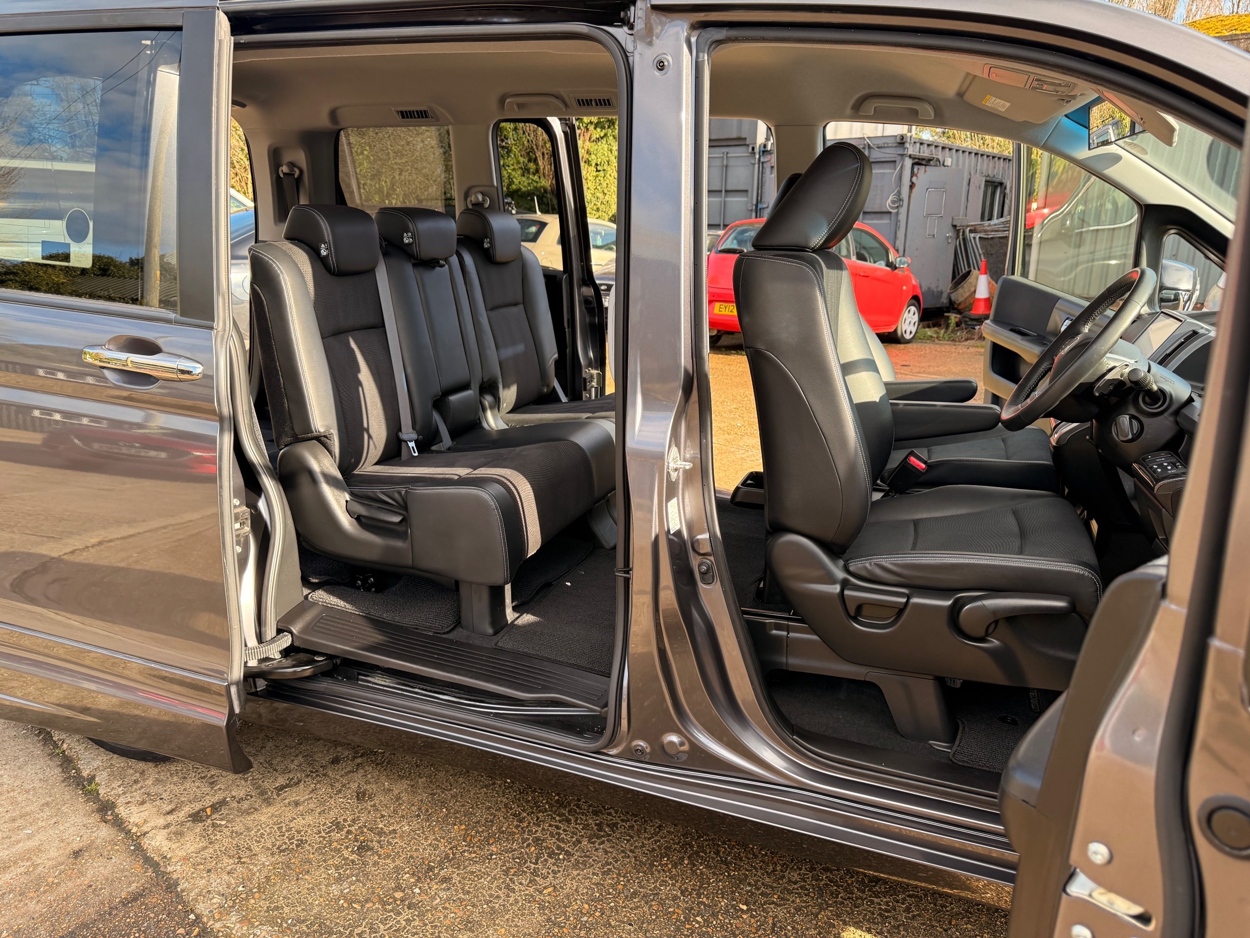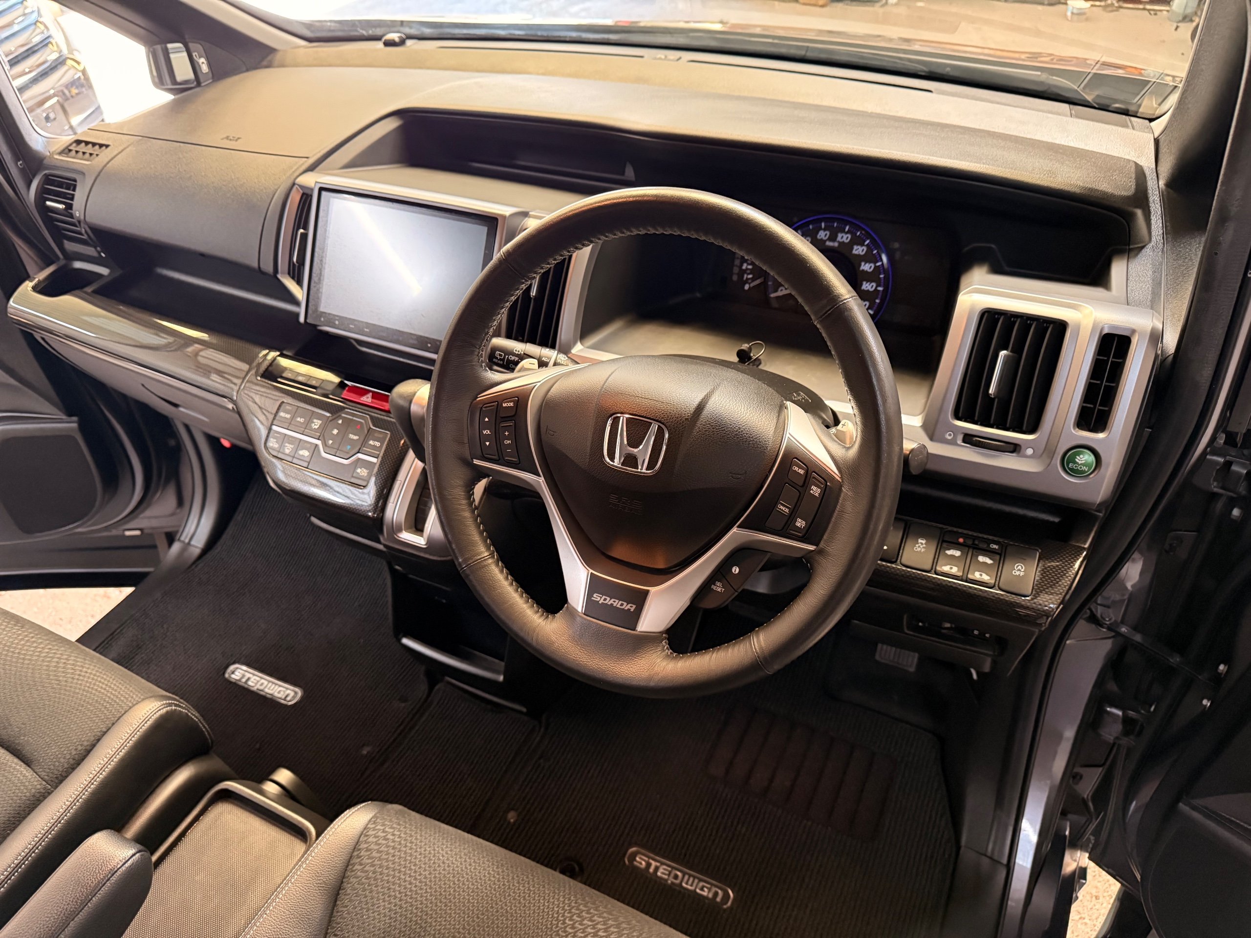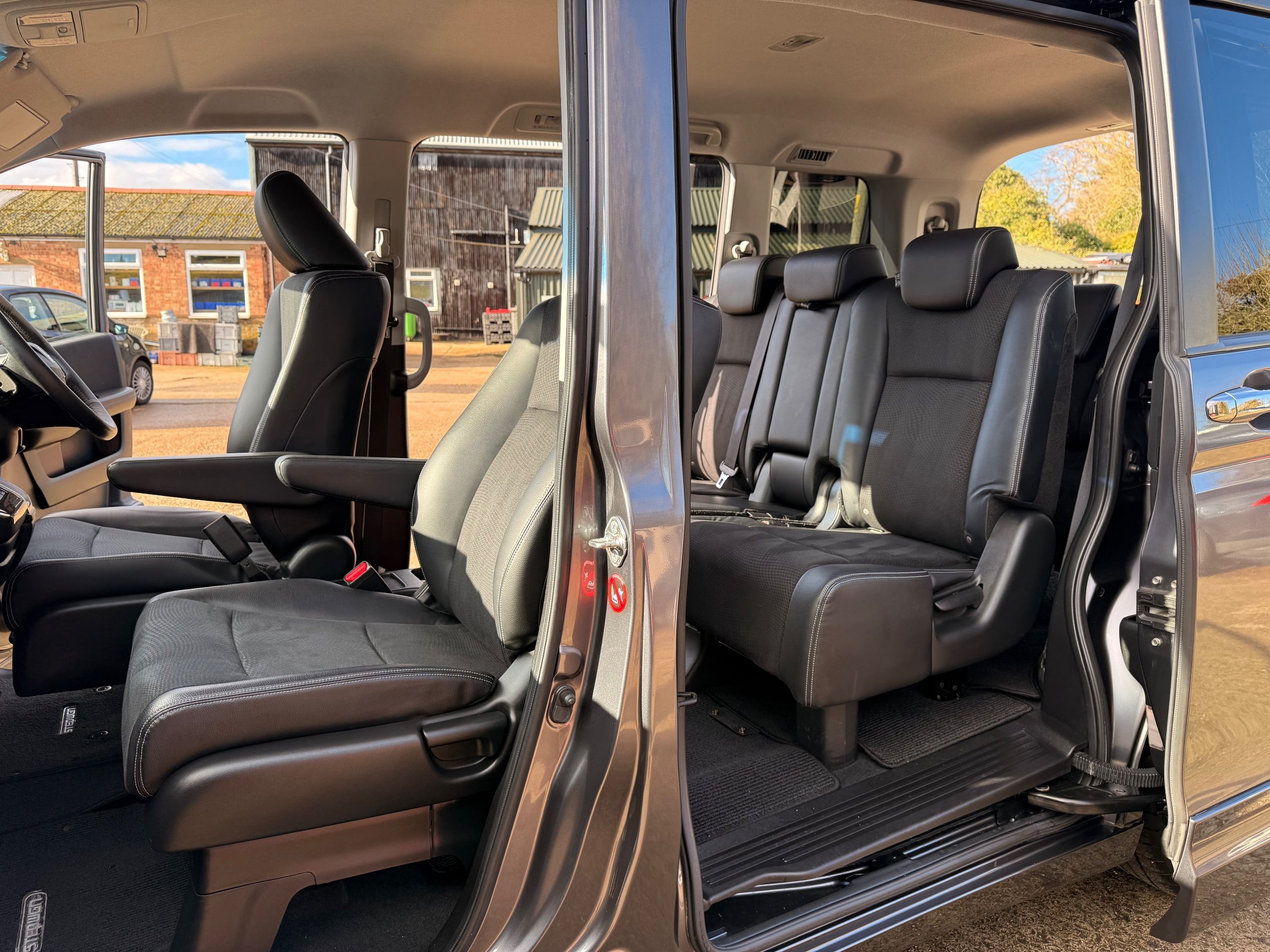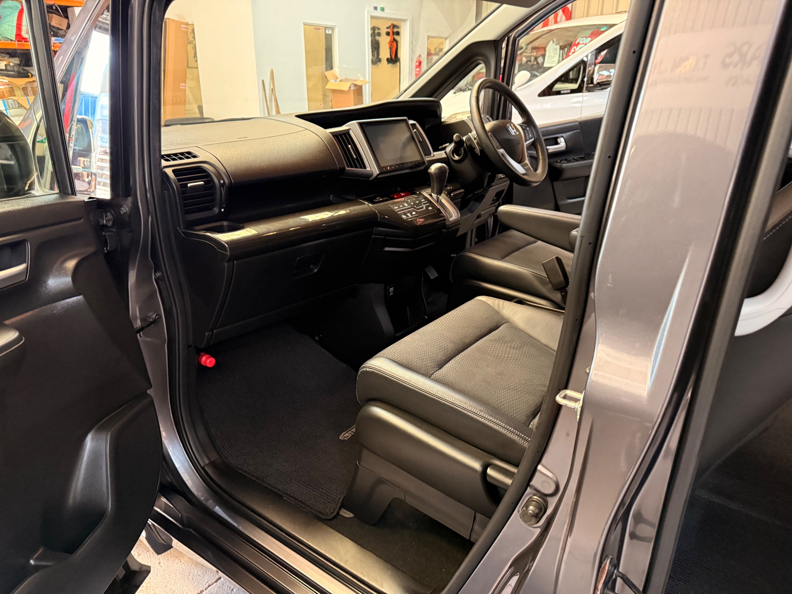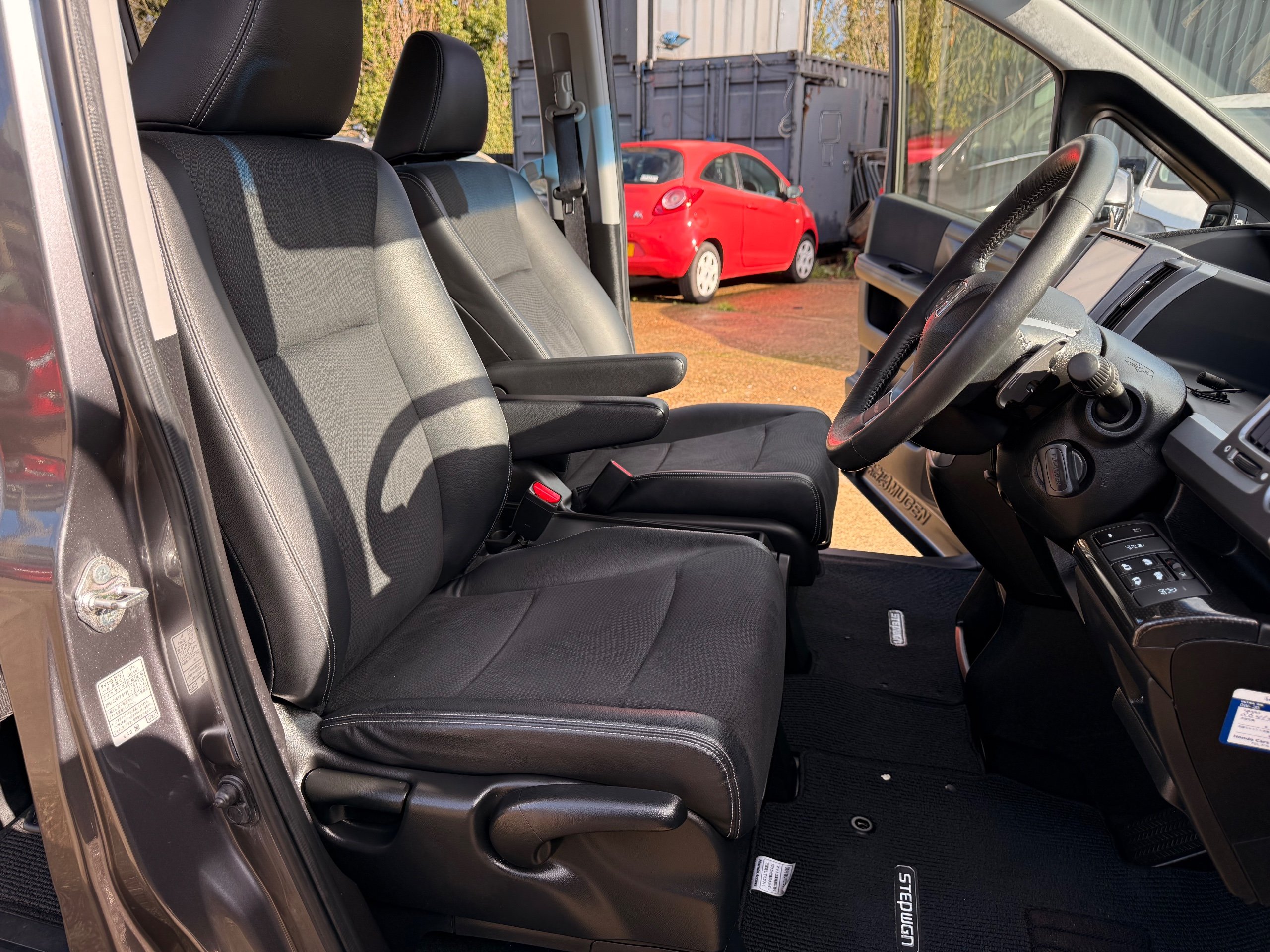 Honda Stepwagon 2.0 Spada Cool-Spirit Mugen Edition, 2014-64-Reg, Finished in unmarked Metallic Grey Paintwork, Full privacy glass, Full Mugen Body-kit, Genuine Mugen Front bumper Side Skirts and Rear Bumper, Front Spots, Rear Spoiler, Genuine 17” Honda Diamond cut with gloss black centres Alloy wheels, Key-Less Entry, 8 Seater, 8 Unblemished half leather seats, The front seats have armrests, Between the front seats is a flip up table with two cup holders, The Middle row of Seats has a centre armrest with twin cup holders, Rear Electric Windows on the sliding doors, The middle row of seats folds forward, The Rear Seats fold backwards to sit facing outside of the car, The Rear Seat also folds into the floor to give way to a huge boot, Carbon Fibre Style Dash-Kit, Air-Con, Climate Control, Twin Electric Soft Closing Sliding Doors, Auto Star/Stop, Traction Control, Cruise Control, ECO Mode, Key-Less Start, UK Speedo, UK Stereo with Apple CarPlay, Fully Serviced, Only covered 40,000 Miles