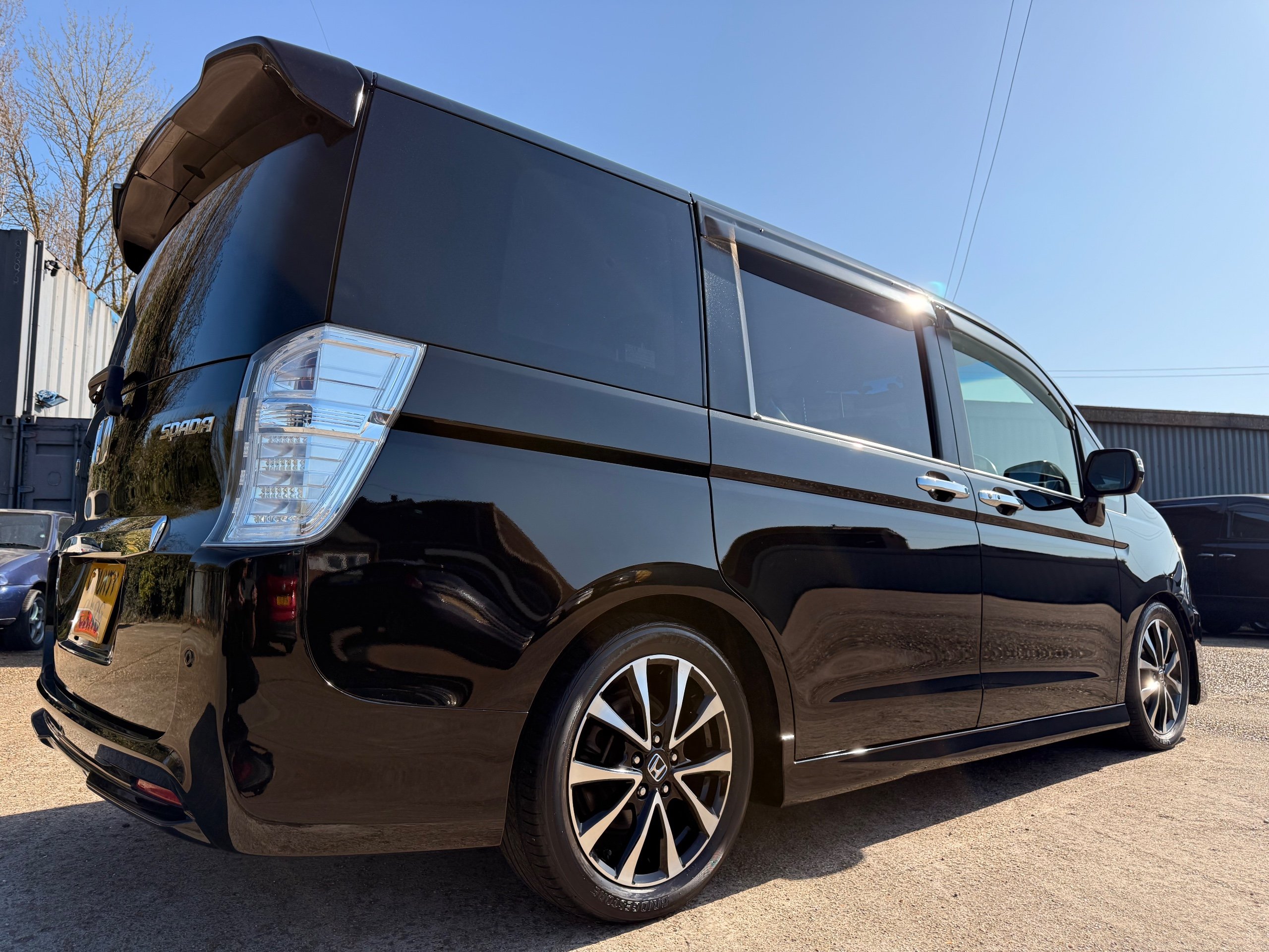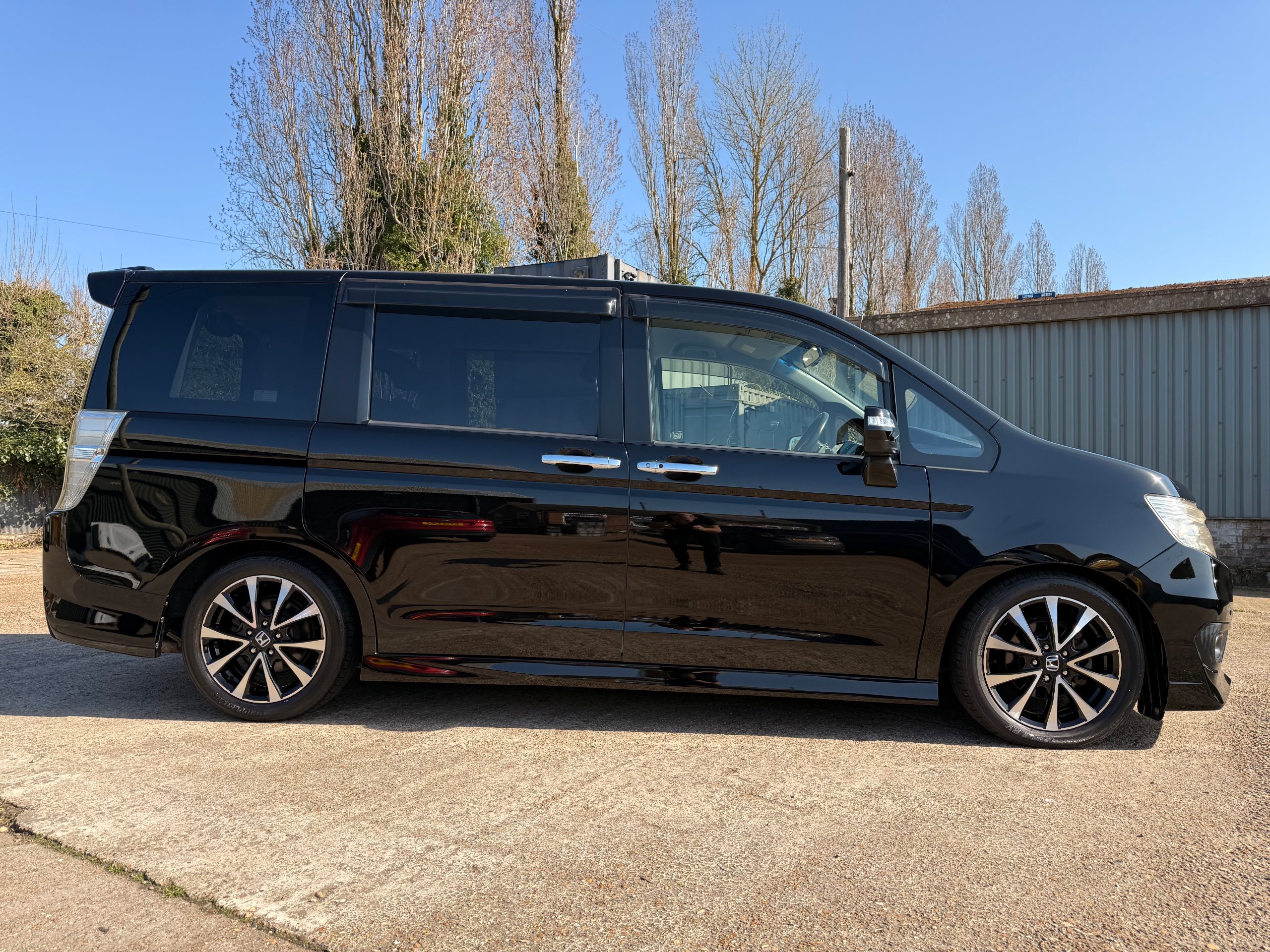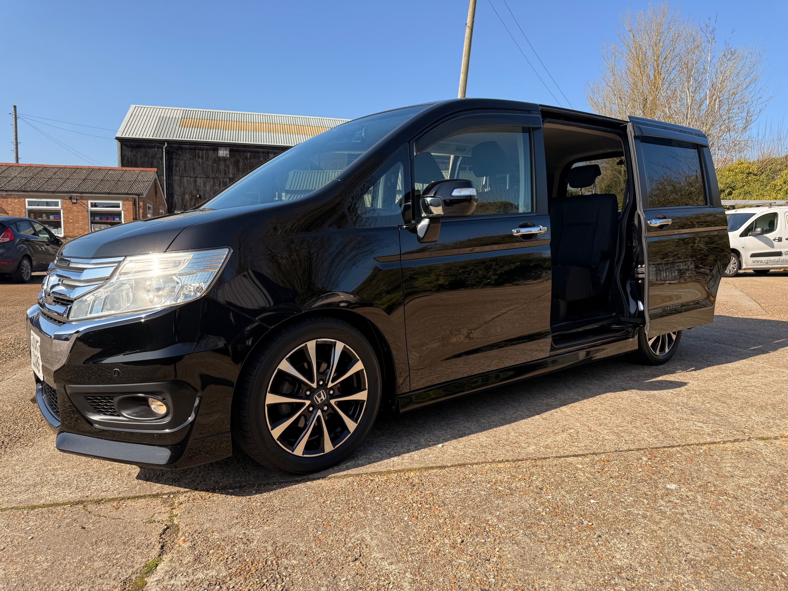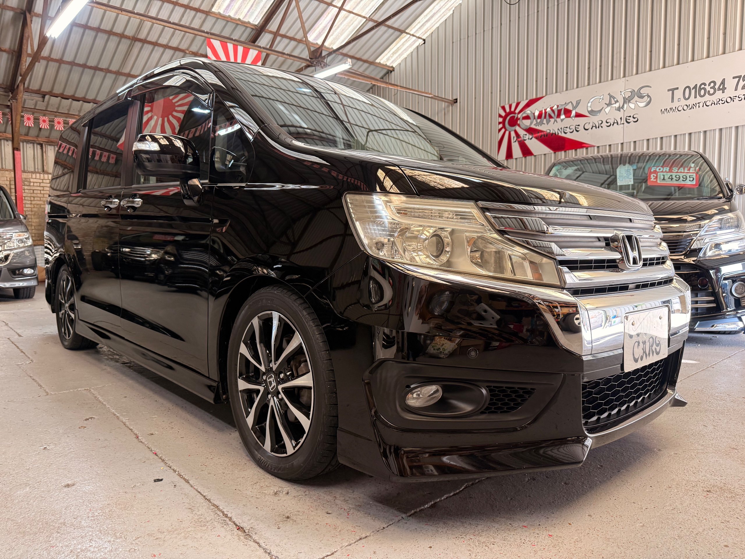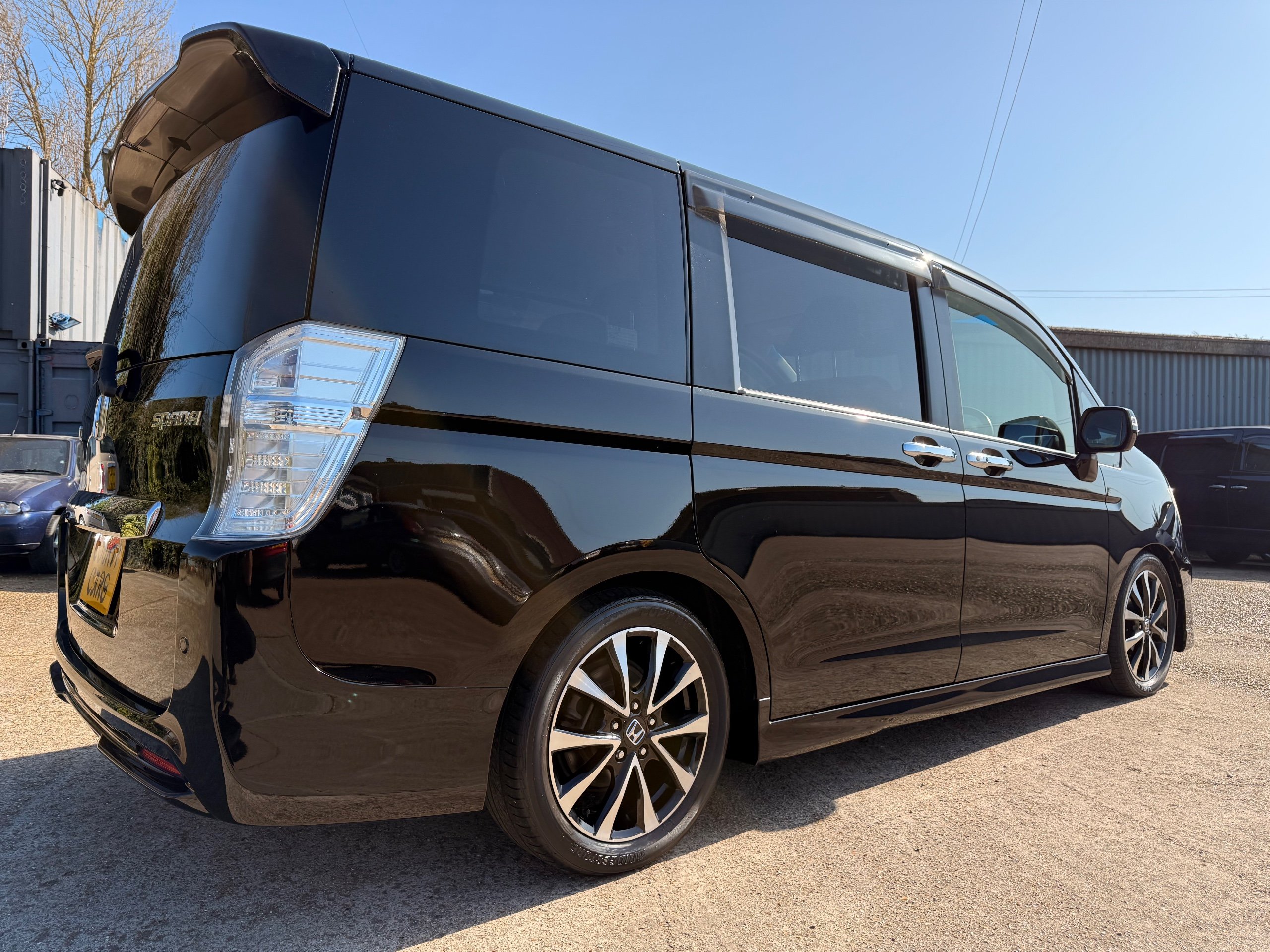 Honda Stepwagon 2.0 Spada-Z- R.K Series, Auto, 2013-13-Reg, Face-Lift Edition, Finished in Unmarked Metallic Black Paintwork, Full Privacy Glass, Stunning Unmarked 17” Stepwgn Cool-Spirit Diamond Cut with black gloss centre Alloys, Twin Electric Soft Closing Sliding Doors, Rear spoiler, Front spots Chrome door handles, Front and Rear Factory Honda Parking Sensors, 8 Seater, 8 Unmarked velour seats, The front seats have armrests, Flip up table with cup holders, The middle row of seats fold up and slide forward and the Rear seats fold into the floor to give way to a huge boot, Flip rear seat, Isofix points, 3 Point Factory Honda Seatbelts, Front & Rear Electric windows, Air-Con, Climate control, Rear A/C, Key-less Entry and Key-less Start, Gloss black dash cover set, Colour reversing camera, Cruise Control, Auto/Start/Stop, Android Stereo with Auto Apple CarPlay, Only covered a Genuine 62,000 Miles from new with all the Genuine paperwork from Japan including the auction sheet and d-registration form which both show the mileage and condition before it left Japan