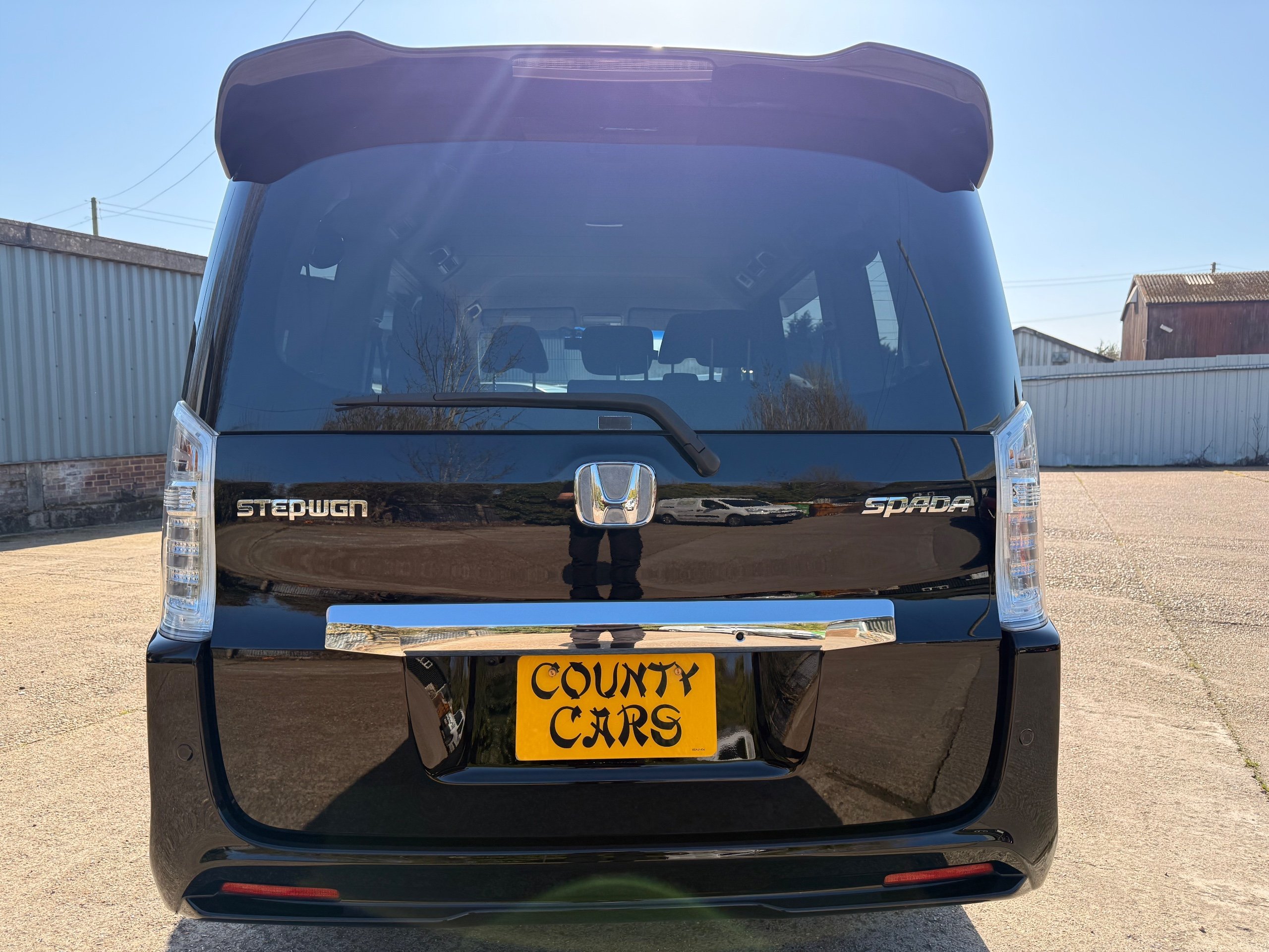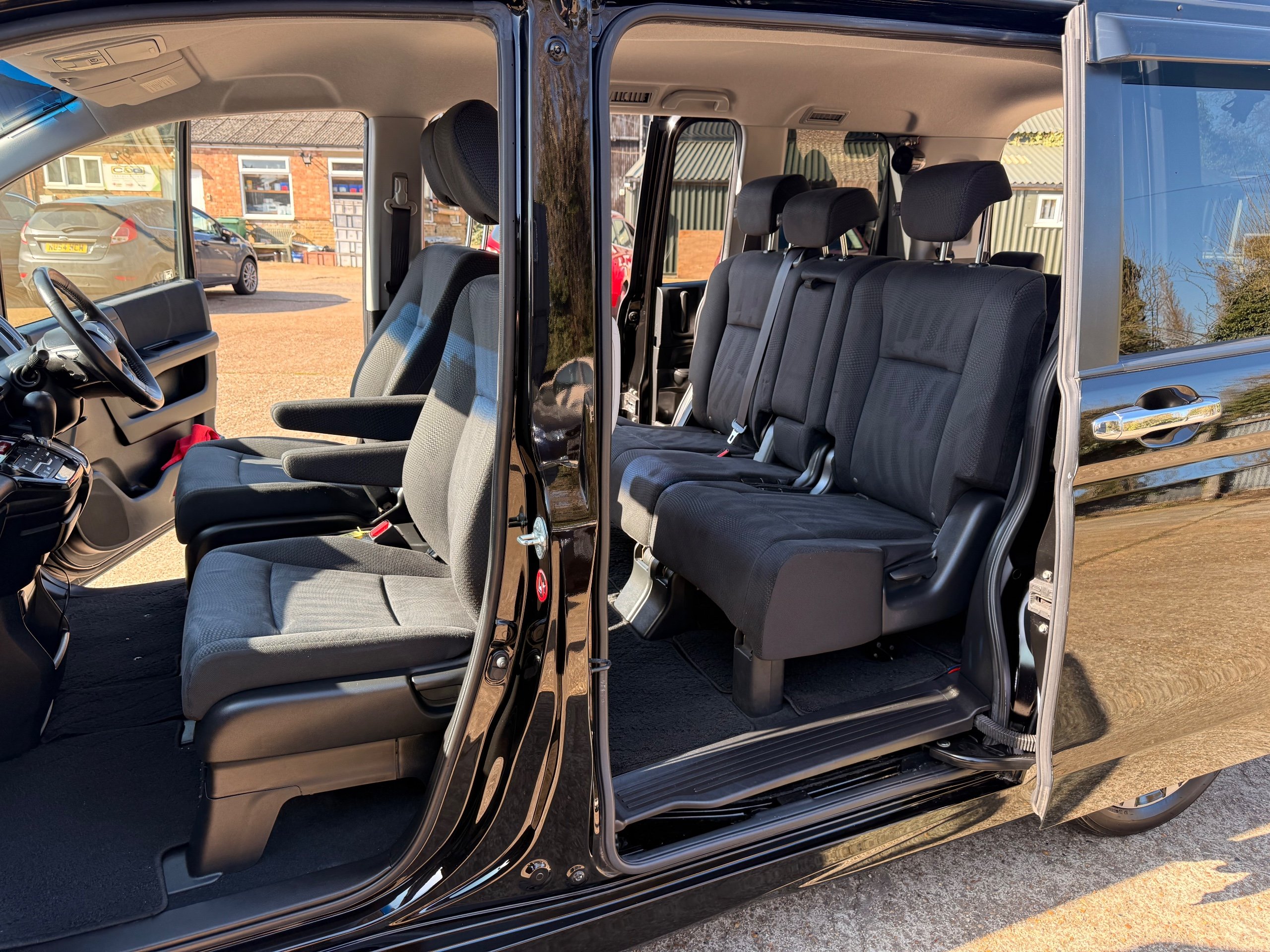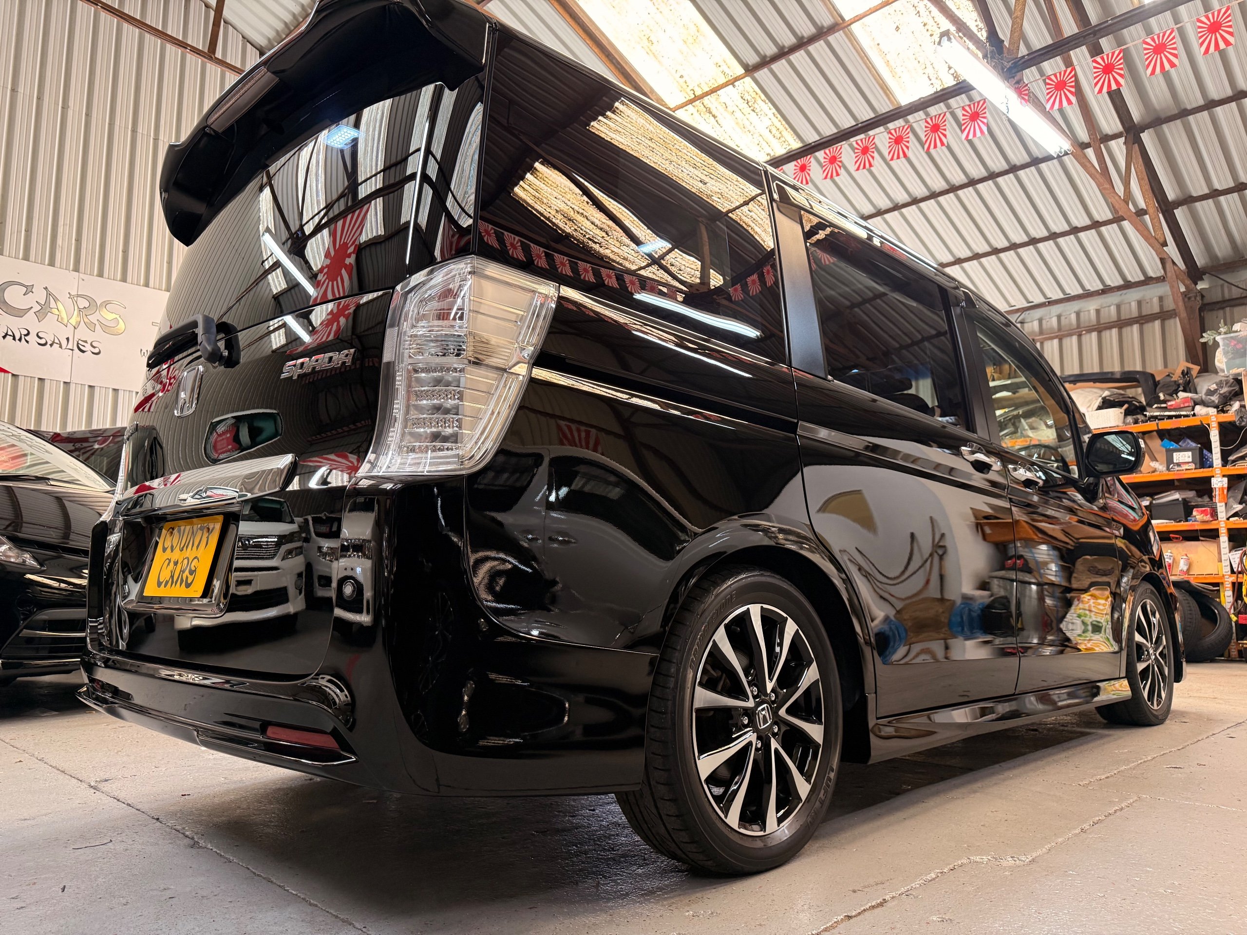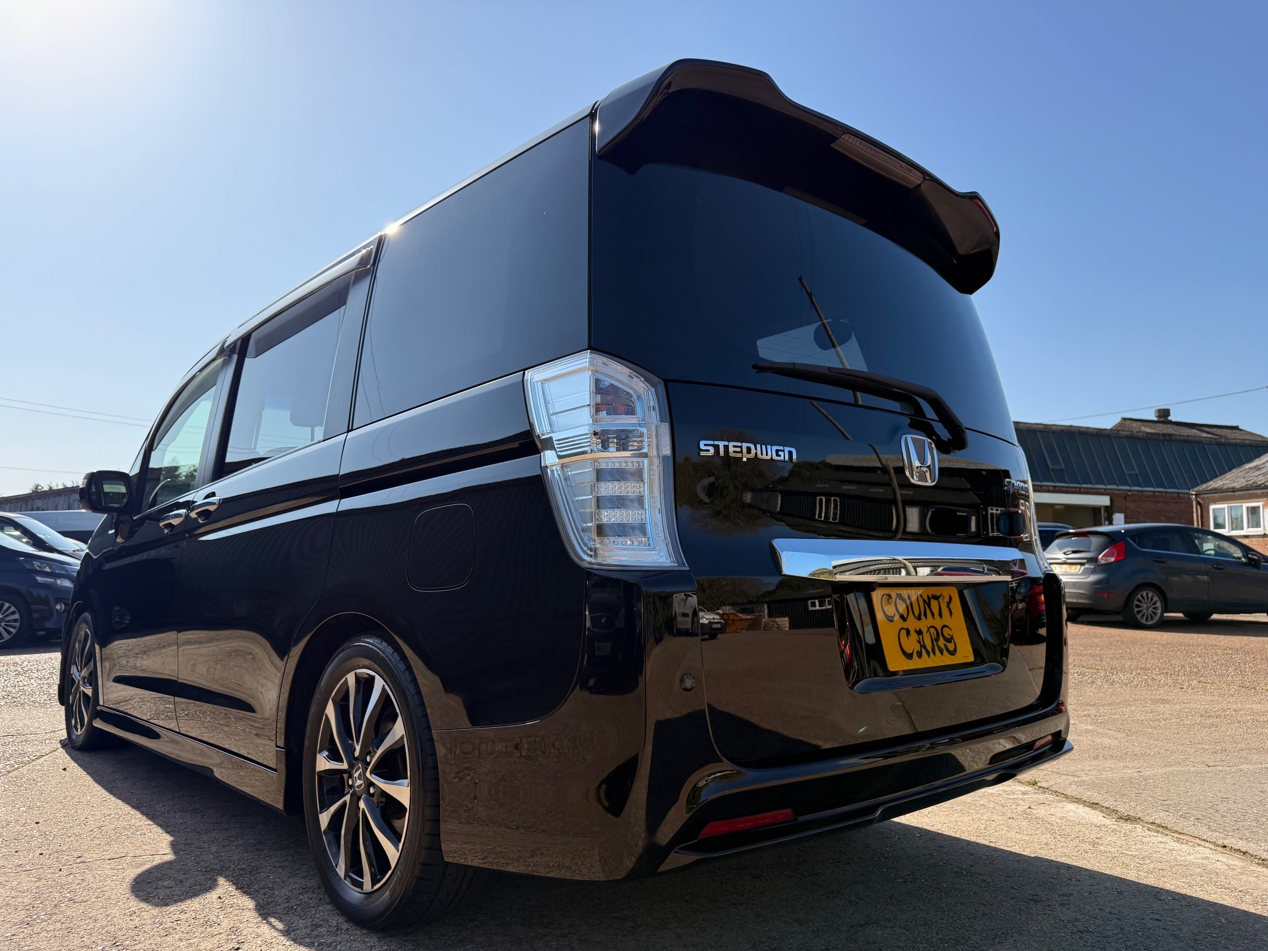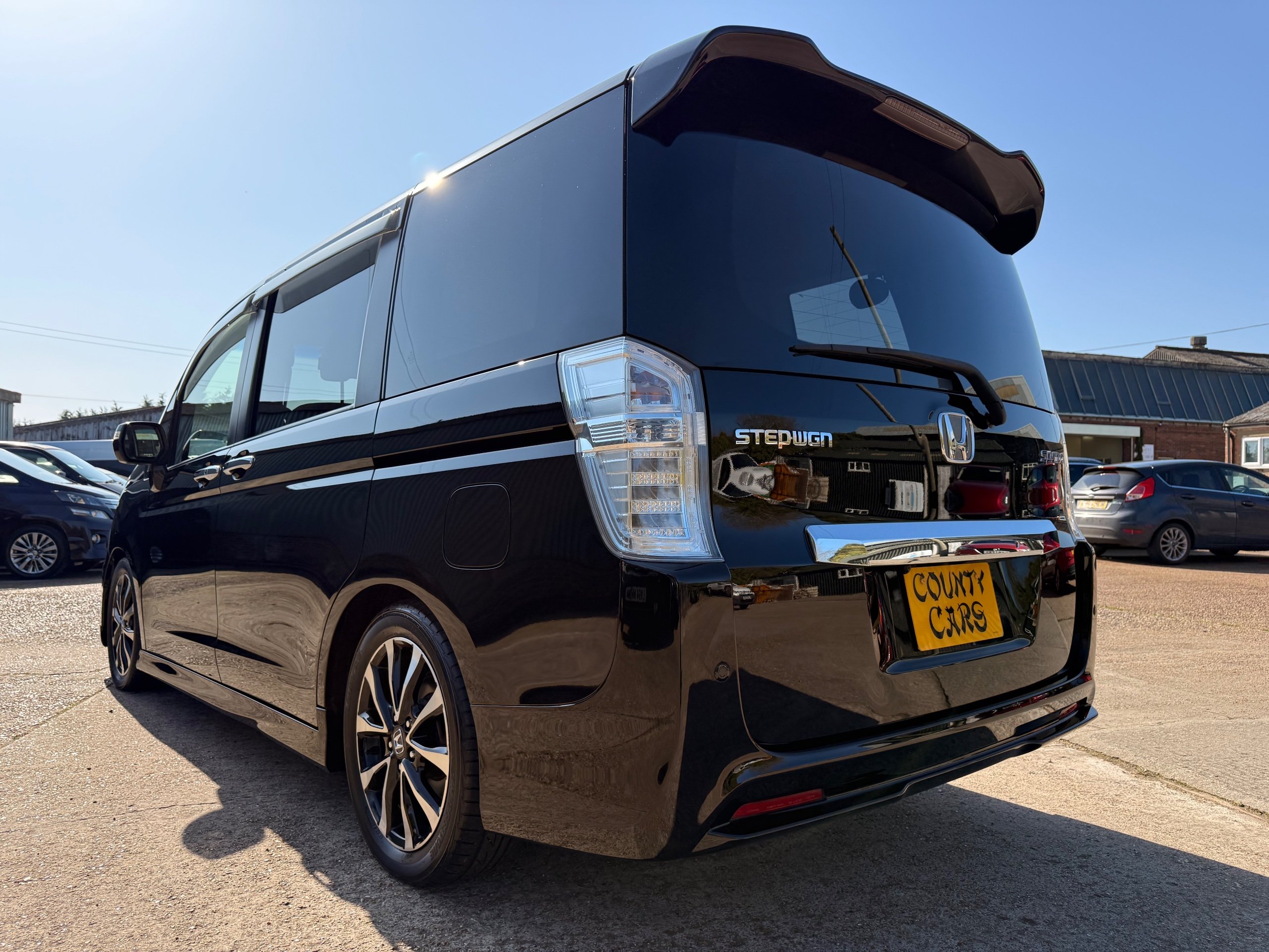 Honda Stepwagon 2.0 Spada-Z- R.K Series, Auto, 2013-13-Reg, Face-Lift Edition, Finished in Unmarked Metallic Black Paintwork, Full Privacy Glass, Stunning Unmarked 17” Stepwgn Cool-Spirit Diamond Cut with black gloss centre Alloys, Twin Electric Soft Closing Sliding Doors, Rear spoiler, Front spots Chrome door handles, Front and Rear Factory Honda Parking Sensors, 8 Seater, 8 Unmarked velour seats, The front seats have armrests, Flip up table with cup holders, The middle row of seats fold up and slide forward and the Rear seats fold into the floor to give way to a huge boot, Flip rear seat, Isofix points, 3 Point Factory Honda Seatbelts, Front & Rear Electric windows, Air-Con, Climate control, Rear A/C, Key-less Entry and Key-less Start, Gloss black dash cover set, Colour reversing camera, Cruise Control, Auto/Start/Stop, Android Stereo with Auto Apple CarPlay, Only covered a Genuine 62,000 Miles from new with all the Genuine paperwork from Japan including the auction sheet and d-registration form which both show the mileage and condition before it left Japan