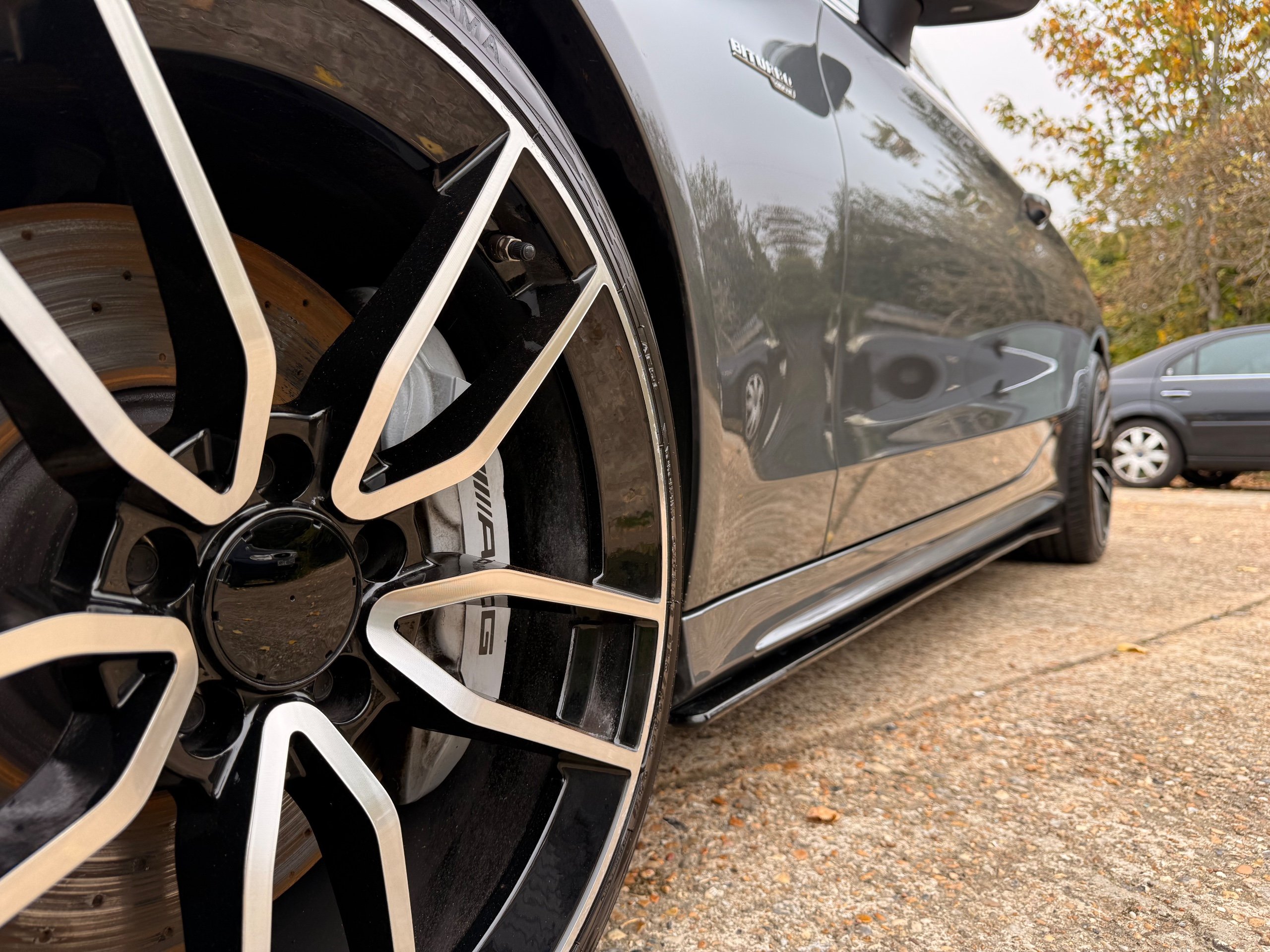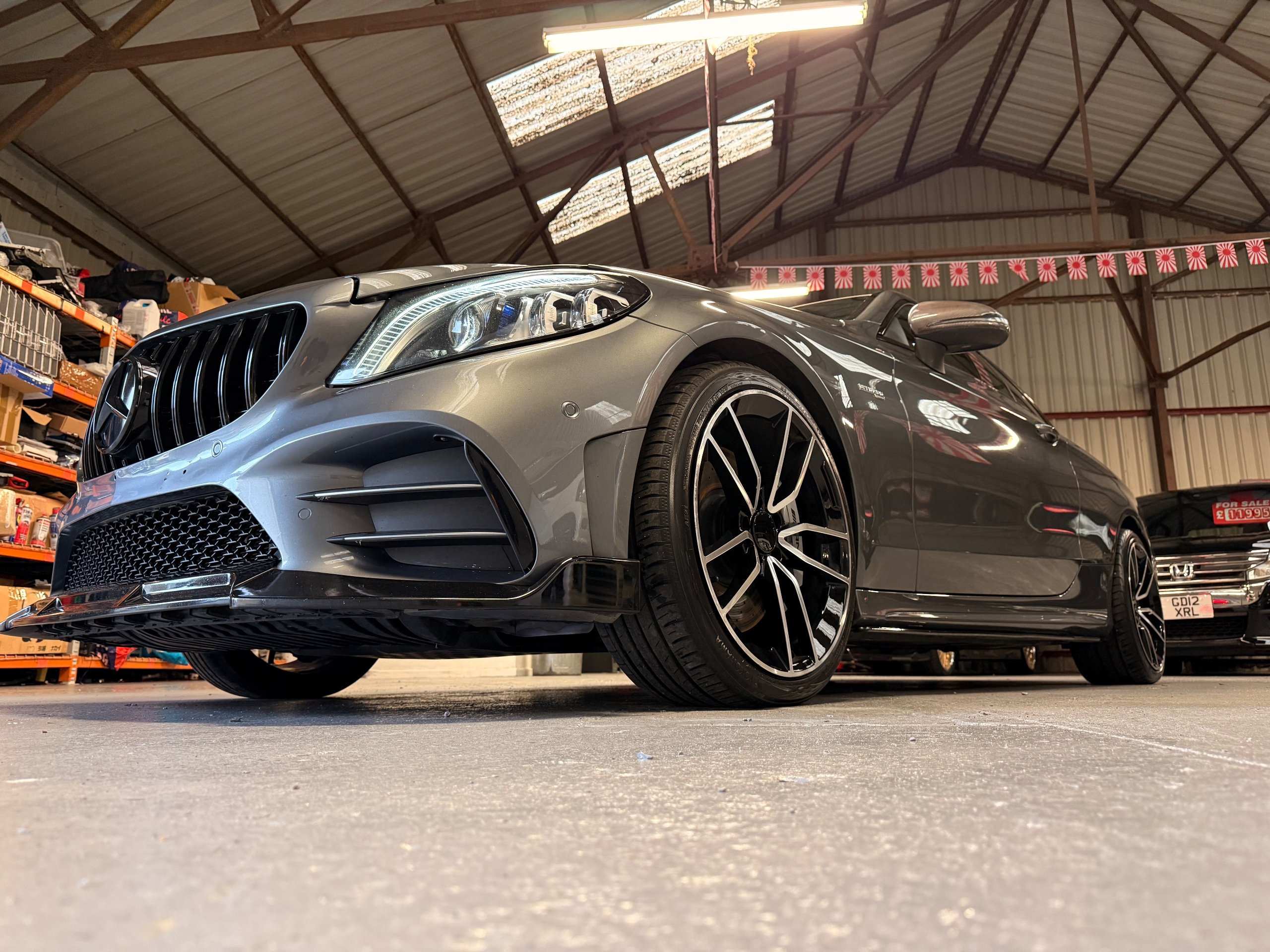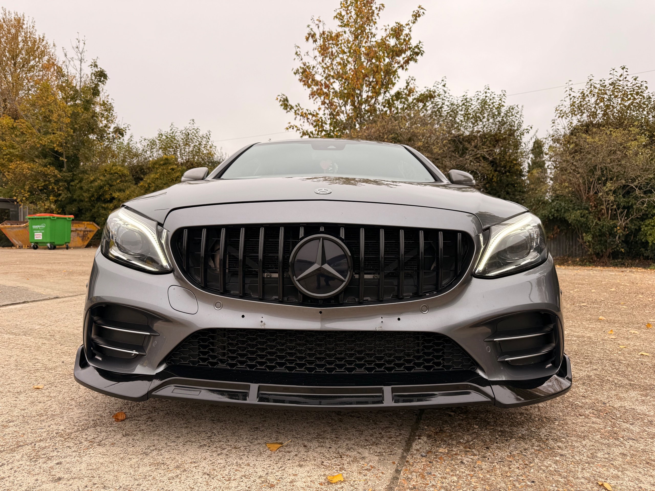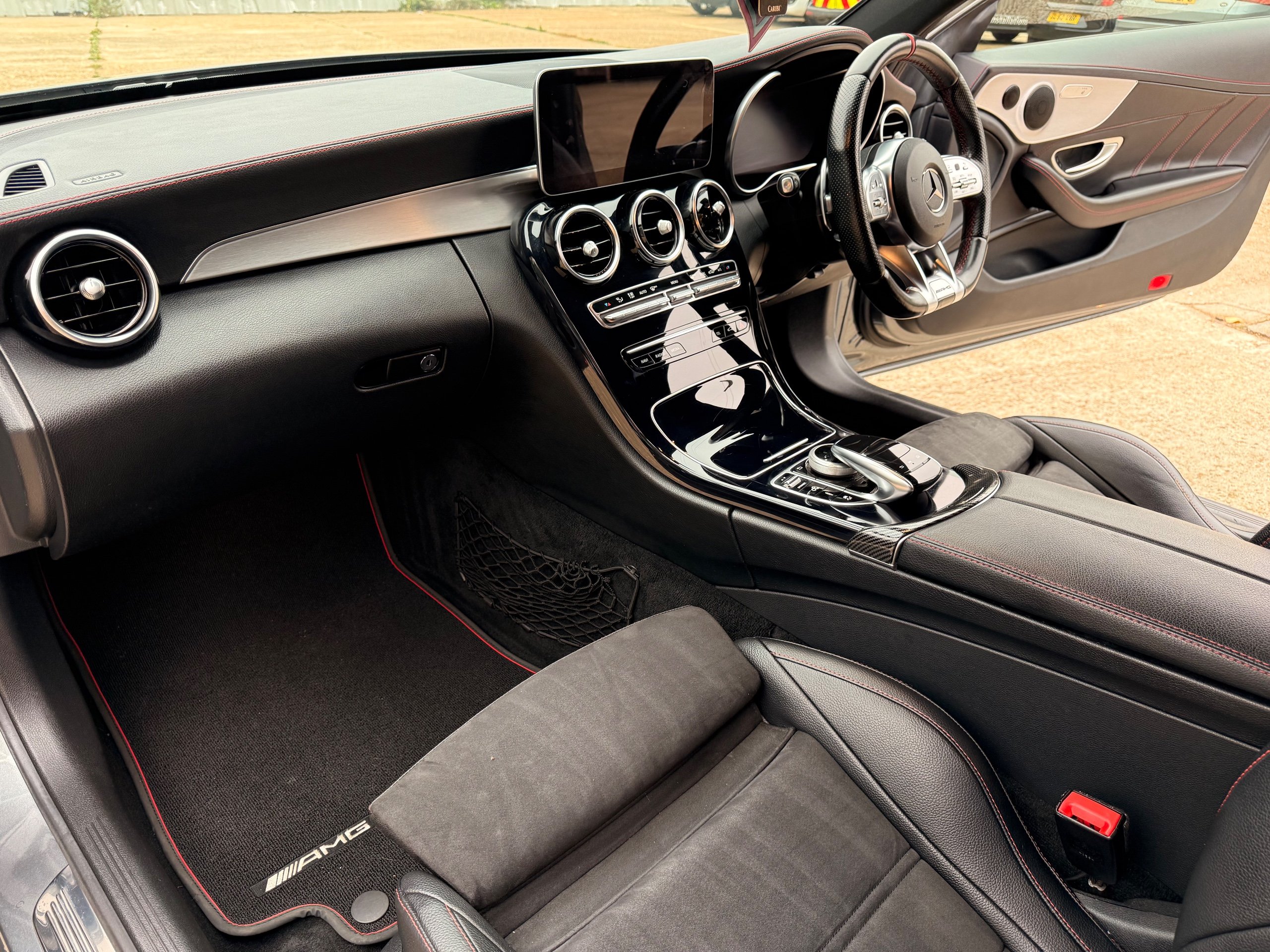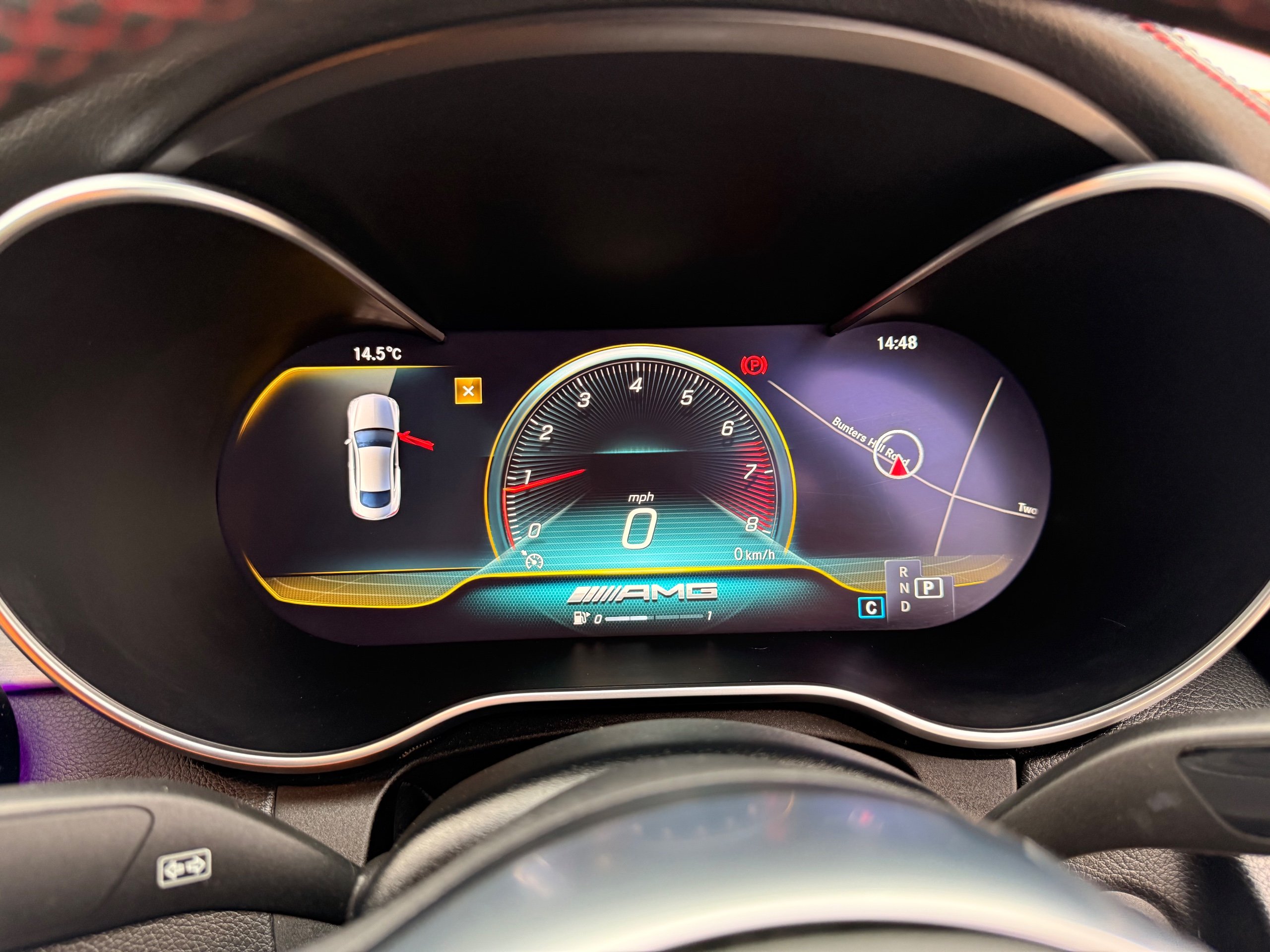 2018-18-Reg Mercedes-Benz C43 AMG 3.0 V6 Bi-Turbo 4Matic Premium Coupe, U.K Vehicle. 75,000 Miles, Metallic Grey Paintwork, Black Leather with red Stitching leather heated seats, 19” Diamond Cut with black gloss centres Alloy wheels, Black Gloss front grille with black Mercedes emblem, Front and Side Aero spoilers, Colour reversing camera, Heated Seats, Electric Memory Seats, Configurable Ambient Lighting, Privacy Glass, Switchable Exhaust, AMG Ride Control, Power Operated Bootlid, Cruise Control, Front and Rear parking Sensors, DAB Radio, Bluetooth, Handsfree, Power Folding Carbon Wing mirrors,