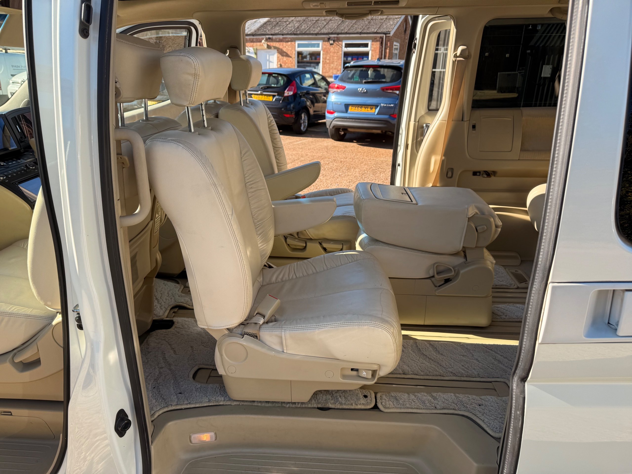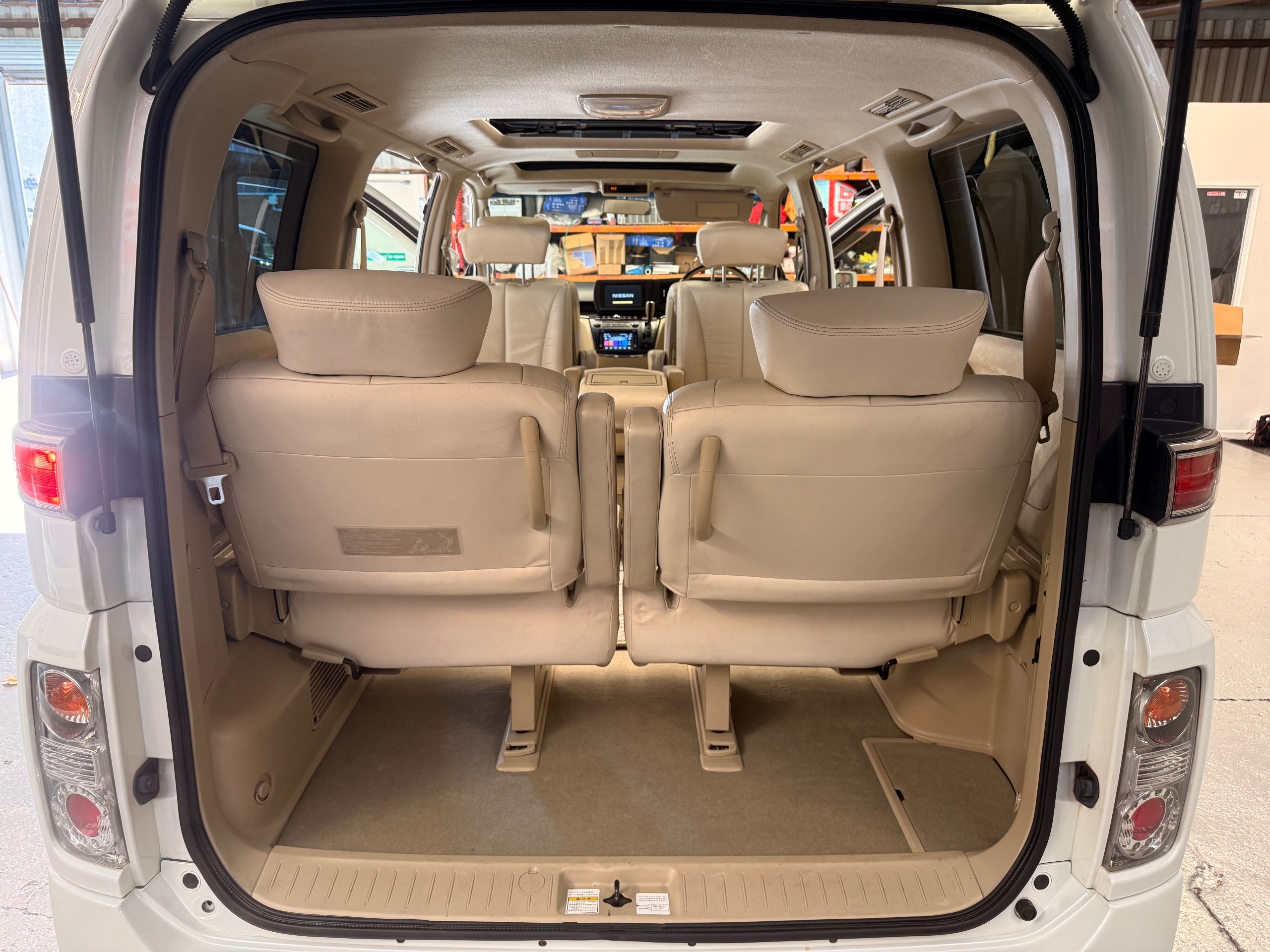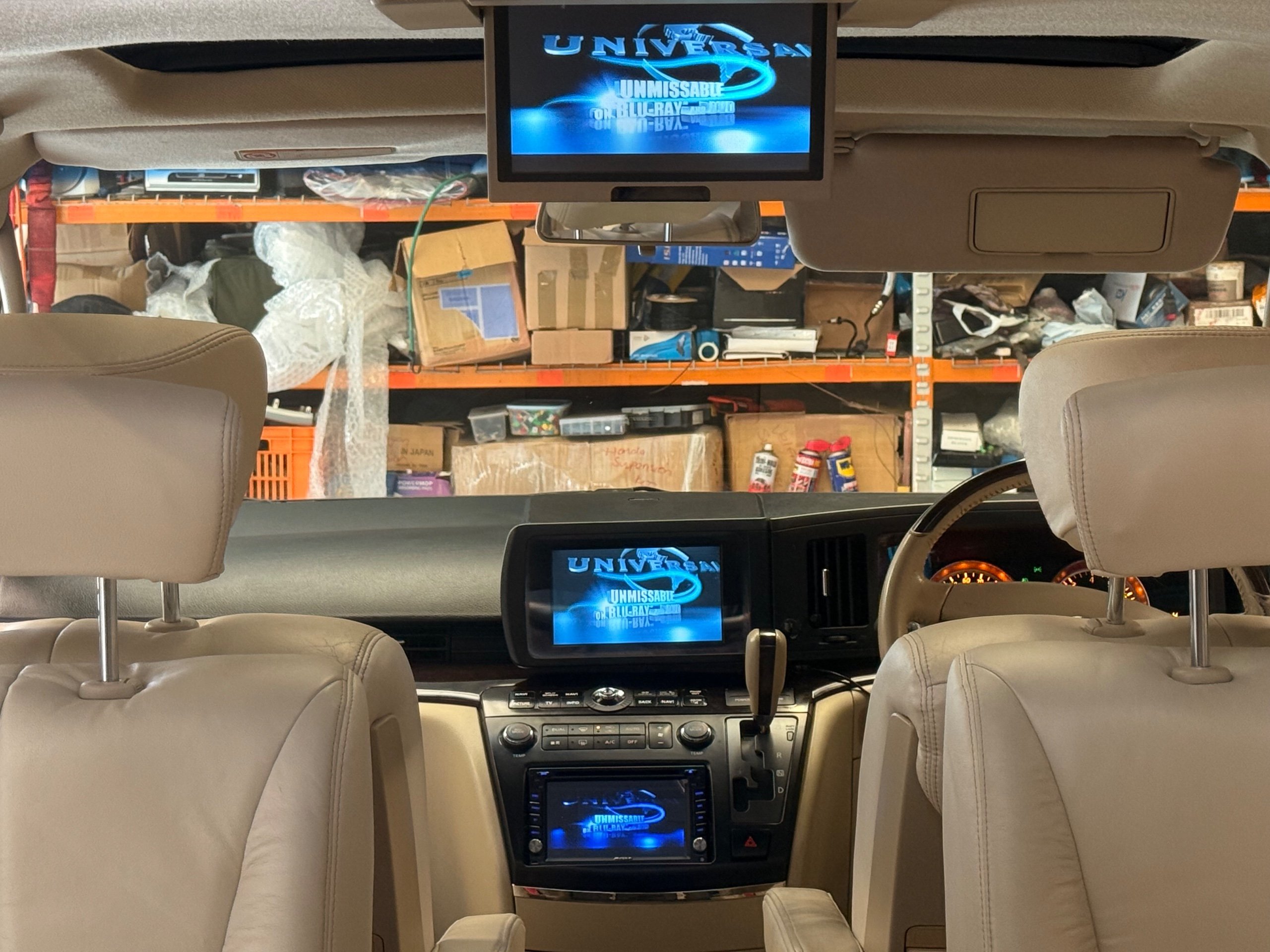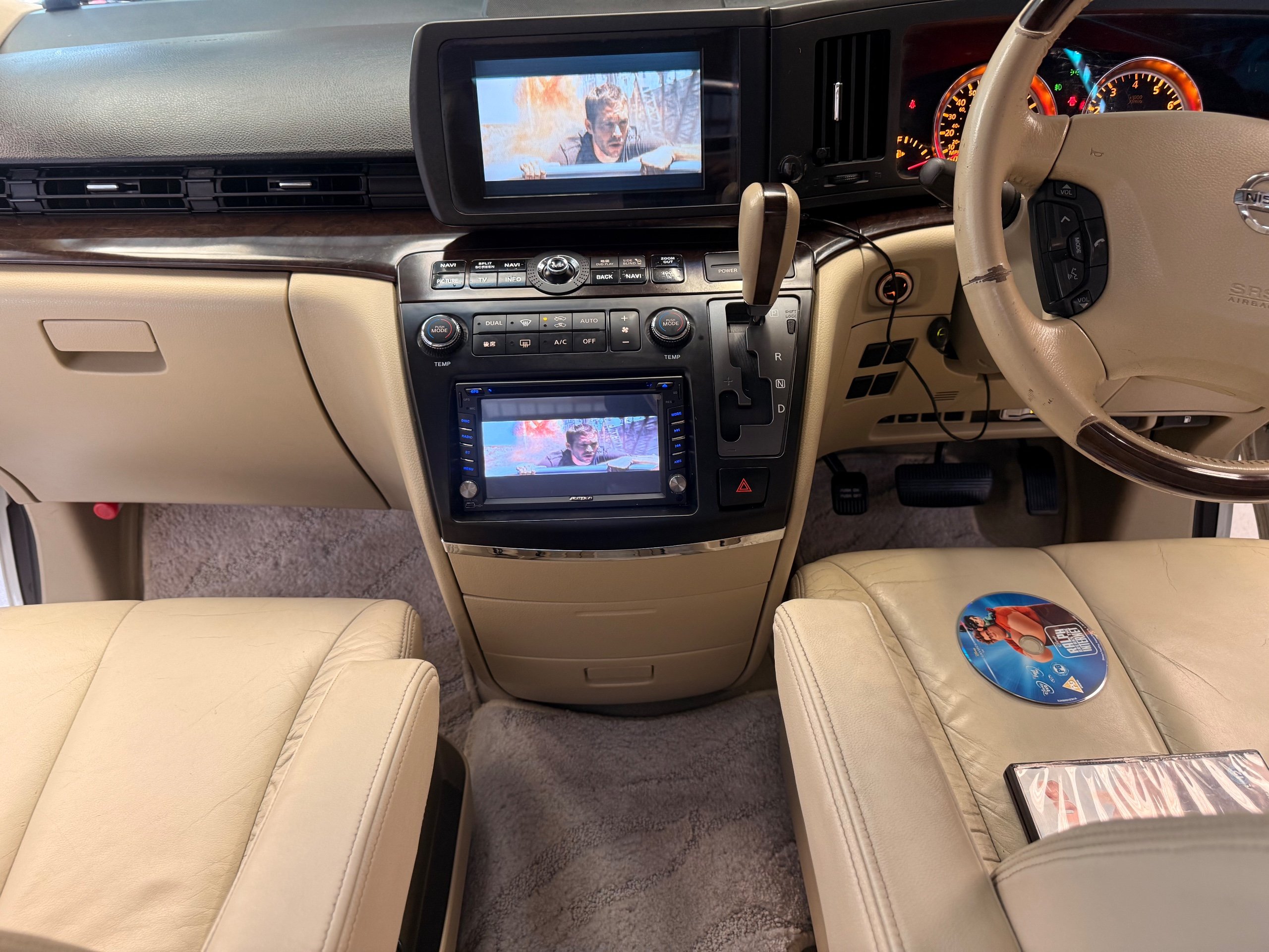 Nissan Elgrand Autech Rider 3.5 V6 Auto 2005-05-Reg, Pearlescent White Paintwork, 17” Chrome Rider Alloys, Autech pack, Full privacy glass, Twin Sunroofs. The rear sunroof is a electric moon roof, rear spoiler with built in brake light and colour reversing camera, front spots, Fold away wing mirrors with l.e.d indicators and chrome covers, Clear Rider back lights, Roof bars, 8 Seater, 8 Beige Leather seats, The front seats have armrests, The centre seats are fully rotational, The centre seat converts into a sliding table, The rear seats fold to the side to give way to a huge boot, Air-Con Climate Control, Rear Air con and climate, BOSE Sound System with UK stereo Rear Monitor to watch dvds, Imported by ourselves in 2020,