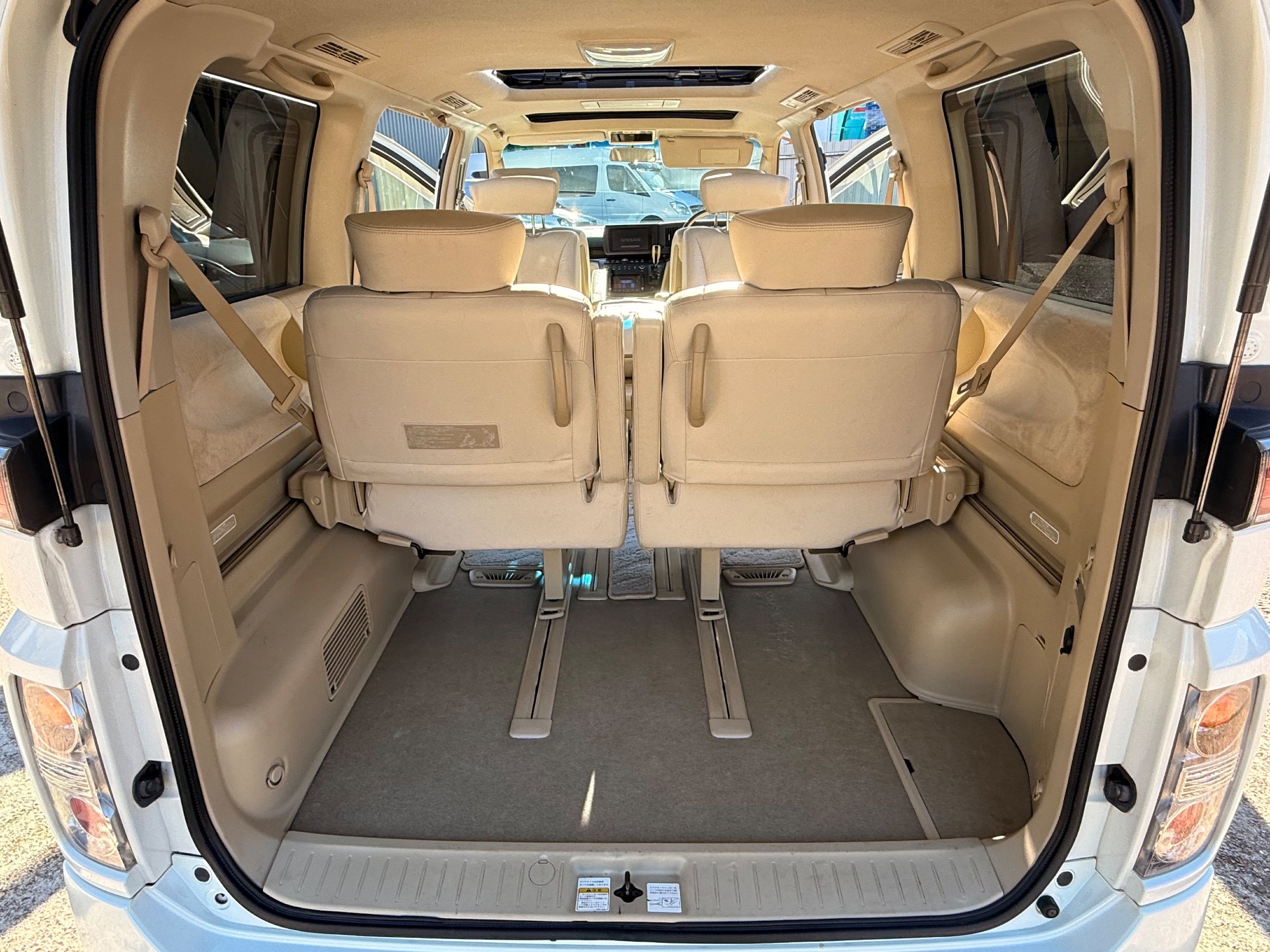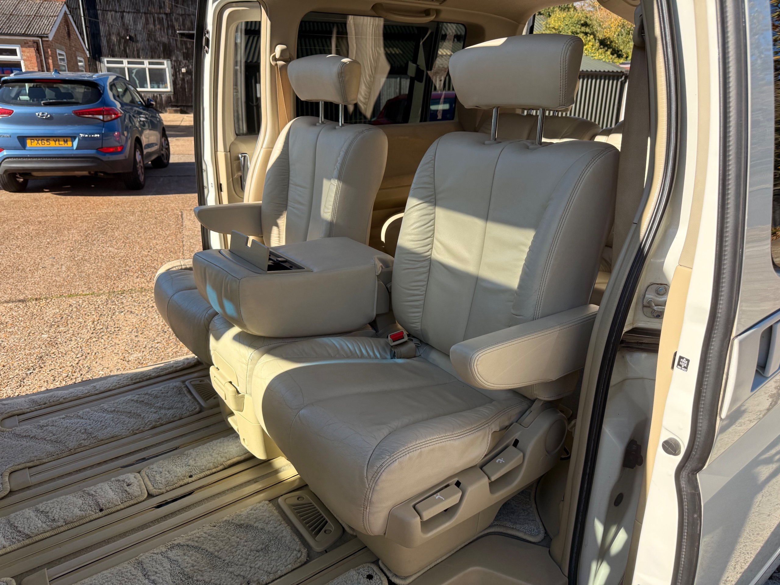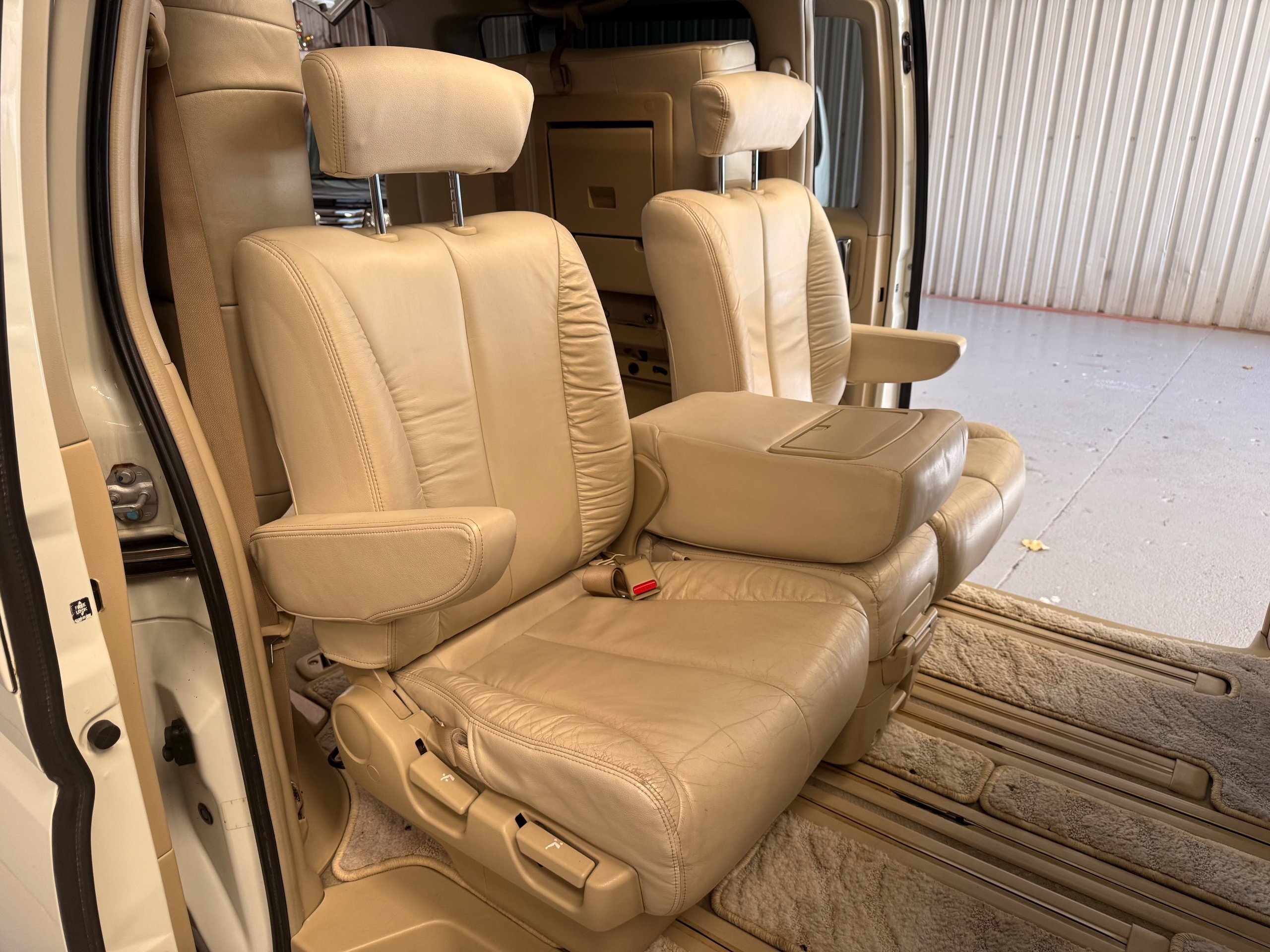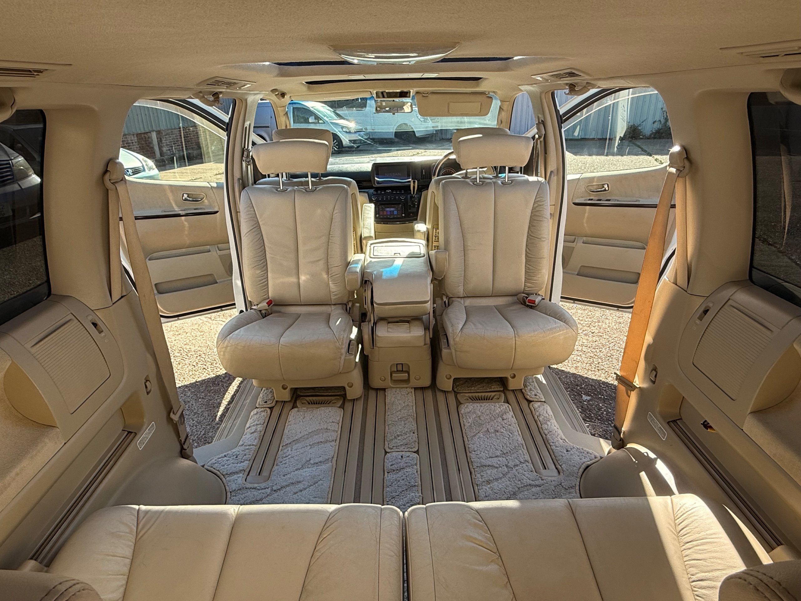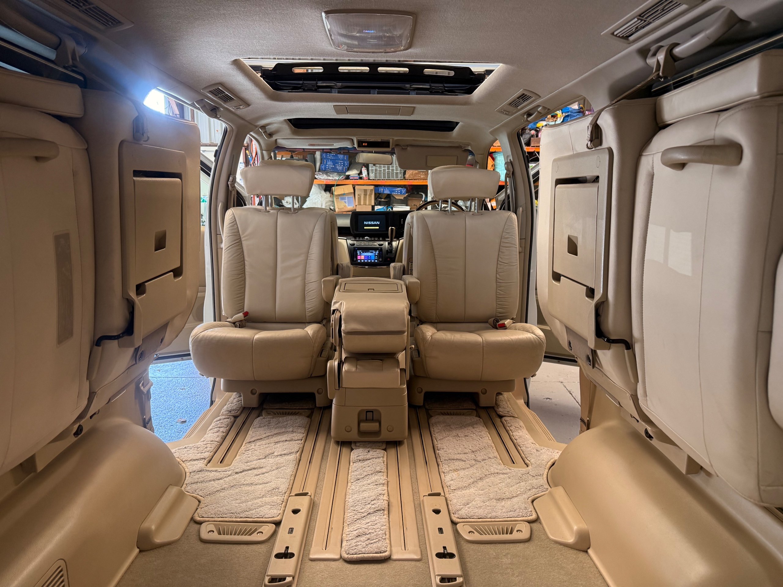 Nissan Elgrand Autech Rider 3.5 V6 Auto 2005-05-Reg, Pearlescent White Paintwork, 17” Chrome Rider Alloys, Autech pack, Full privacy glass, Twin Sunroofs. The rear sunroof is a electric moon roof, rear spoiler with built in brake light and colour reversing camera, front spots, Fold away wing mirrors with l.e.d indicators and chrome covers, Clear Rider back lights, Roof bars, 8 Seater, 8 Beige Leather seats, The front seats have armrests, The centre seats are fully rotational, The centre seat converts into a sliding table, The rear seats fold to the side to give way to a huge boot, Air-Con Climate Control, Rear Air con and climate, BOSE Sound System with UK stereo Rear Monitor to watch dvds, Imported by ourselves in 2020,