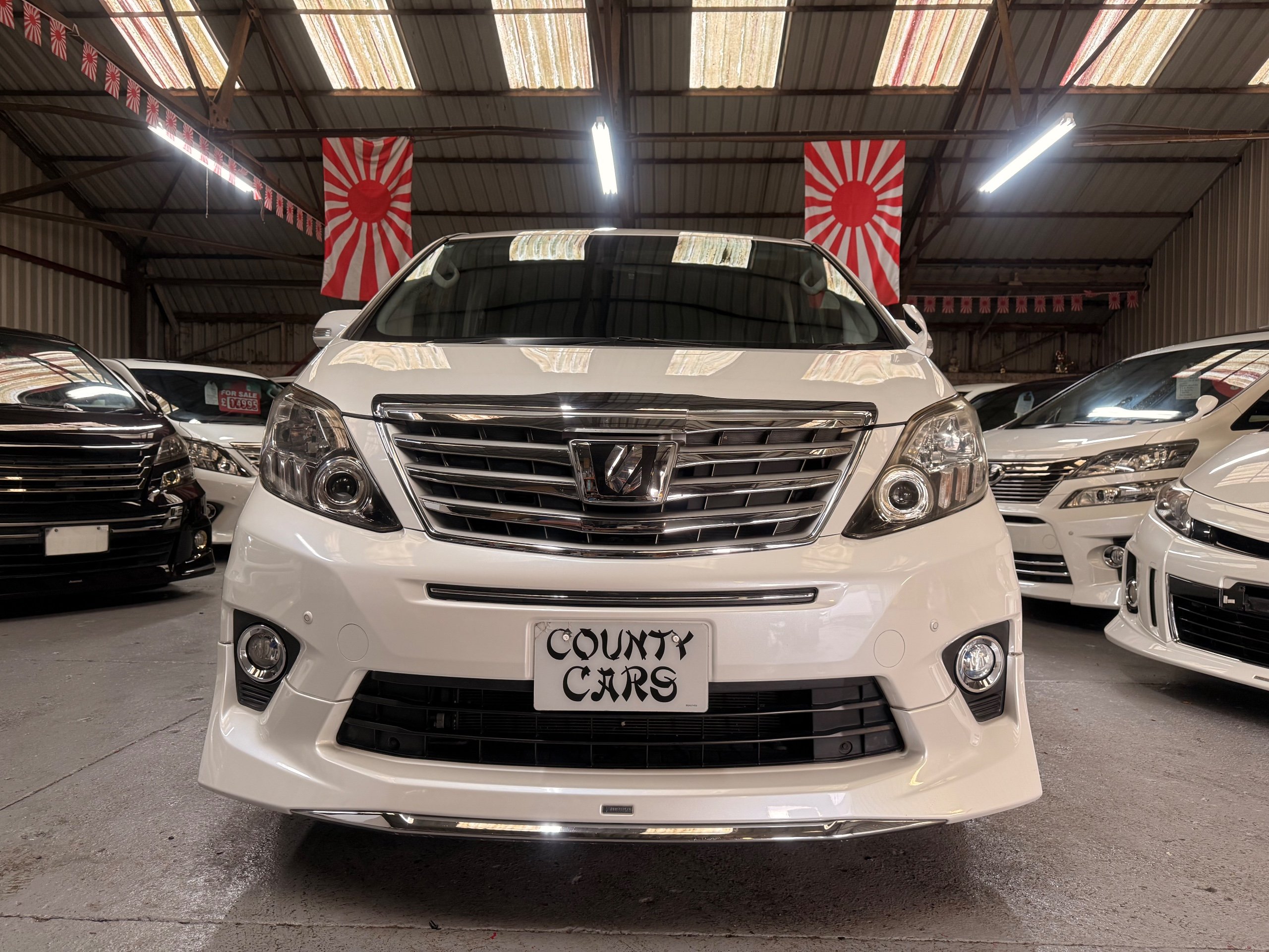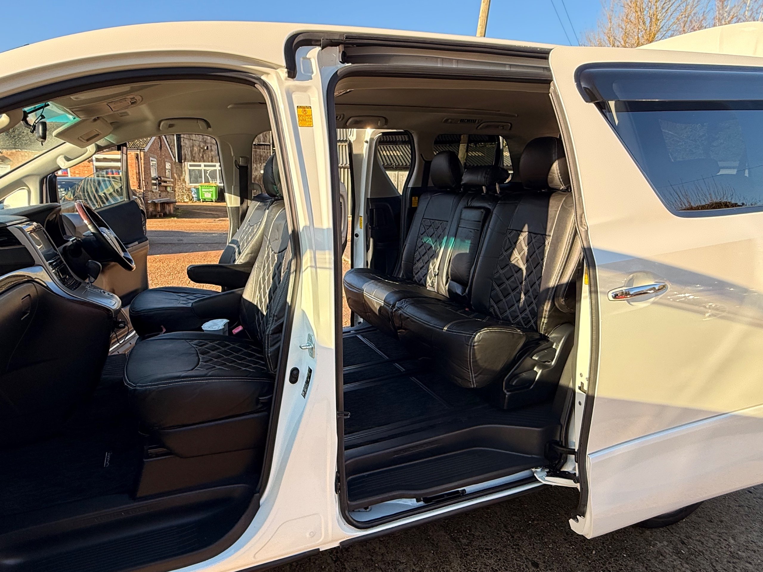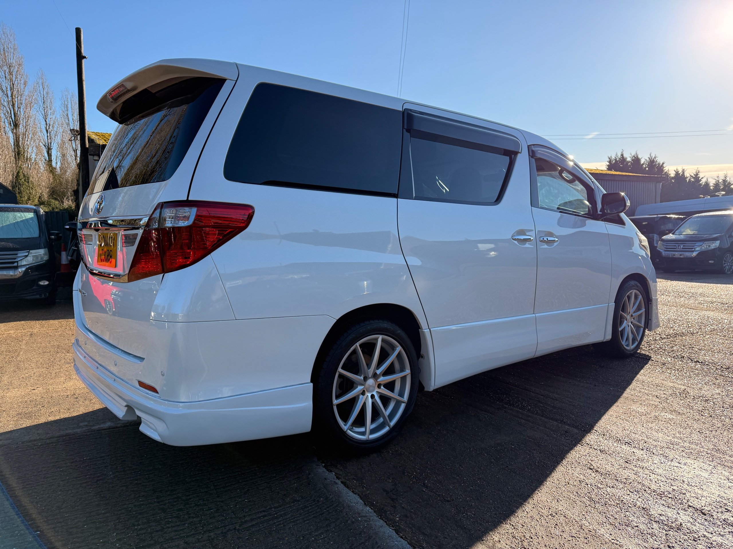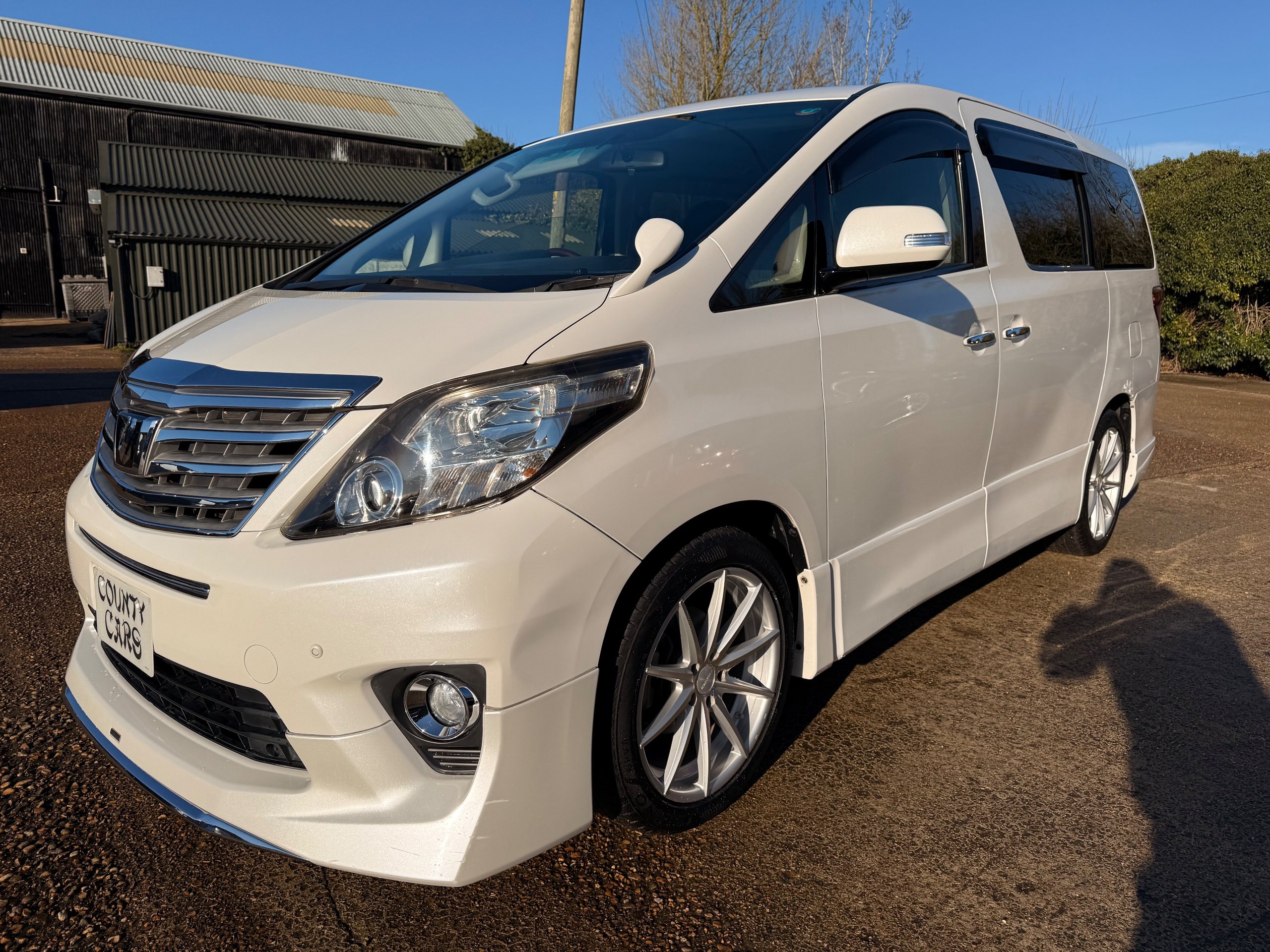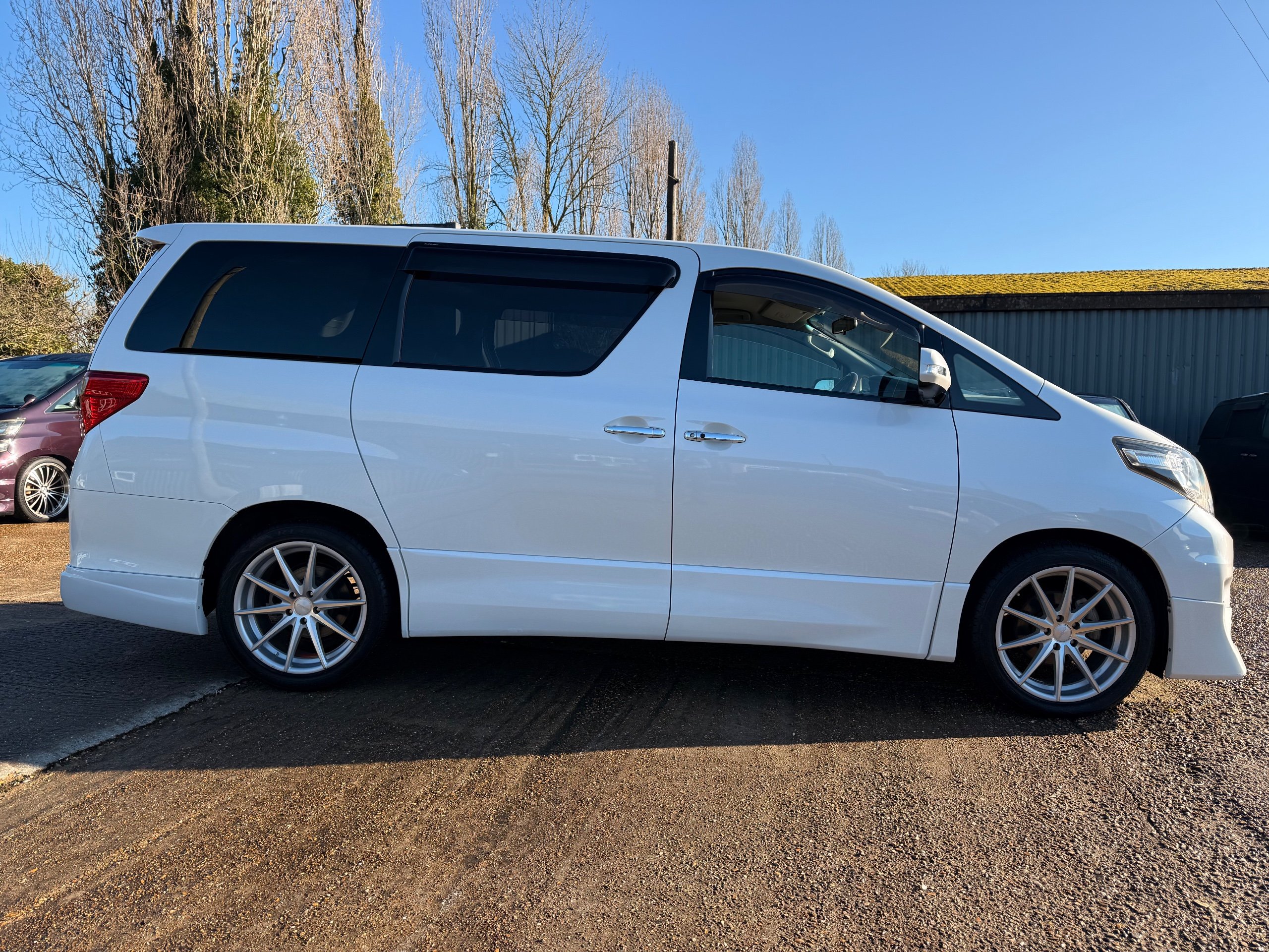 Toyota Alphard 240 S 2.4 Automatic, 8 Seater, 2014-63-Reg, Finished in Beautiful Pearlescent White Paintwork, 19” Deep Dish Alloys, Full Privacy Glass, Electric Soft Closing Sliding Passenger Door, Rear Spoiler with built in brake light, Front and Rear Parking Sensors, Colour Reversing Camera, Front spots with chrome surrounds, Front and Rear Bumper Spoilers ,8 Seater, 8 Unblemished Leather Look Crossed Stitch Seat Covers, The front seats have armrests, Centre Console with flip up cup-holders, The centre seat have twin armrests and centre armrest. The centre seat folds up and slides forward and has Isofix points, The Rear seats fold up to give way to a huge boot, Front and Rear Air-Con and climate control, 65,000 Miles, Apple CarPlay Android Auto uk Stereo, MPH Speedo conversion, Push button Start, Keyless Entry, Isofix Anchor points, ULEZ compliant, Eco mode, 65,000 Genuine miles with all the Genuine paperwork from Japan, Auction Sheet, mileage certificate, CarVX Checked,