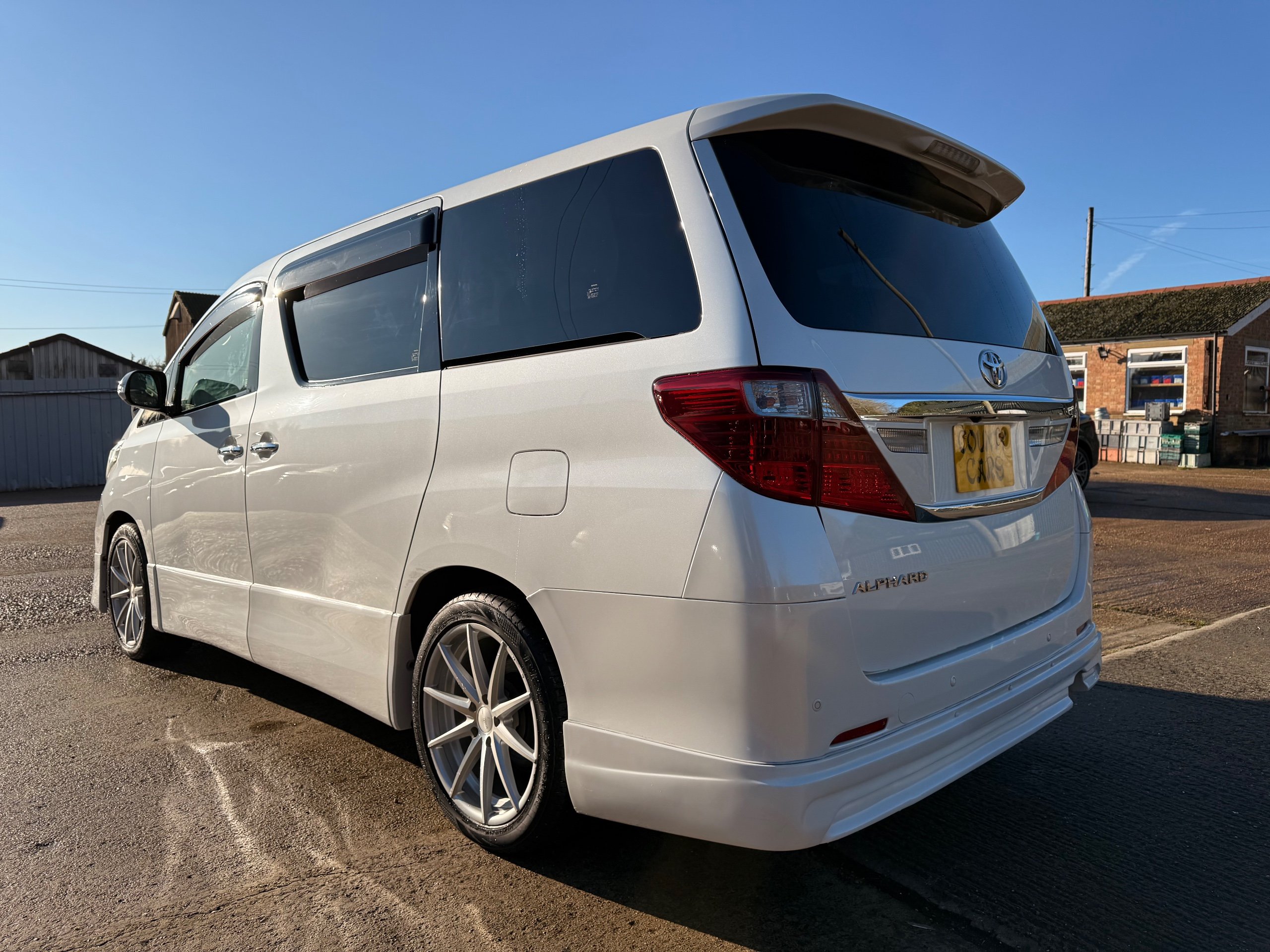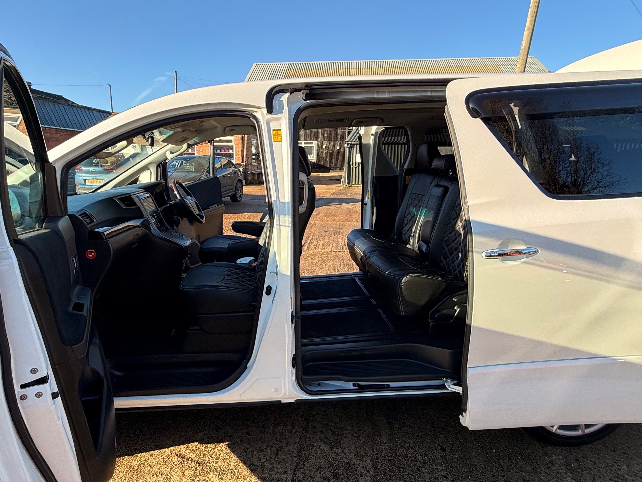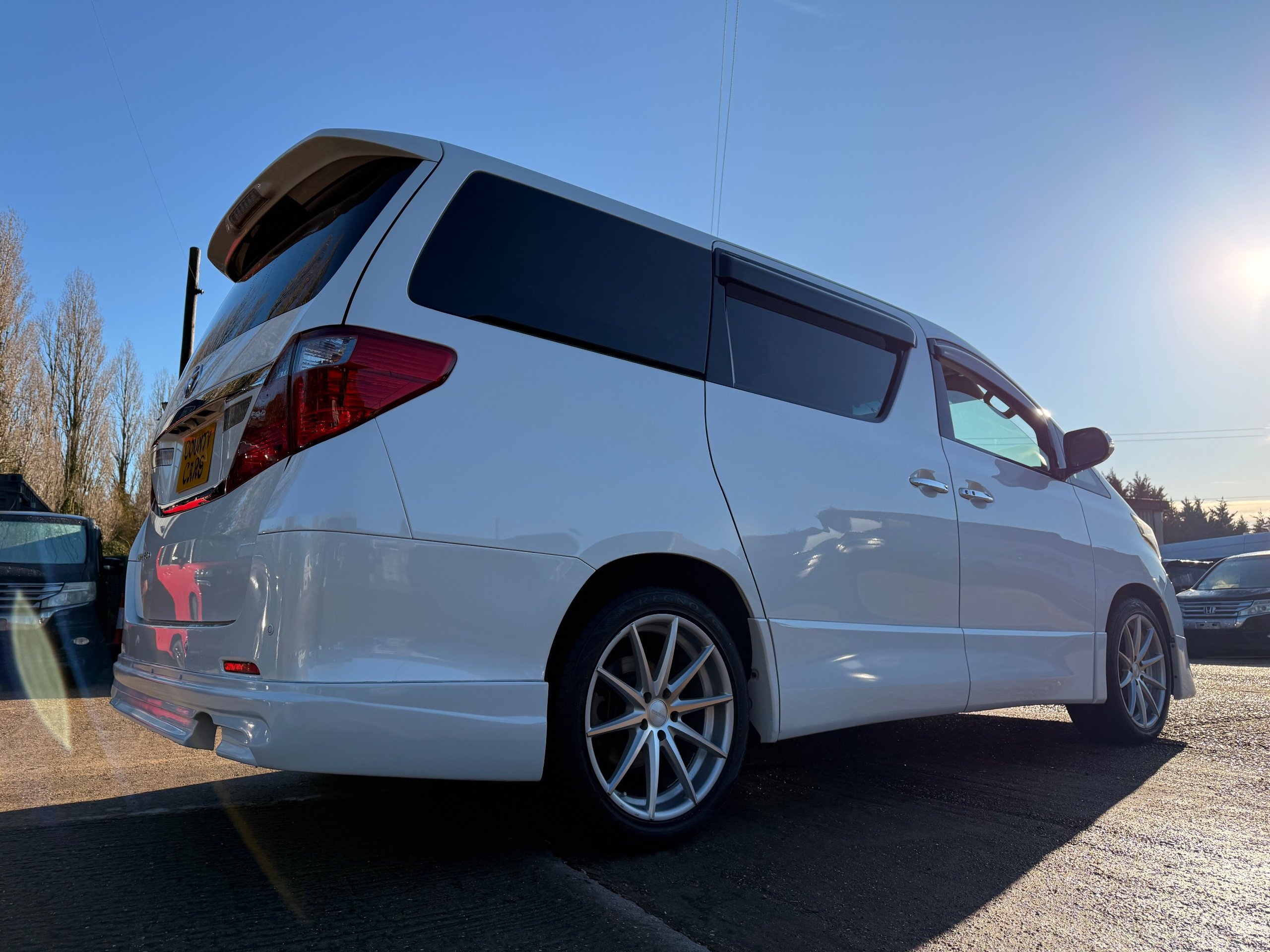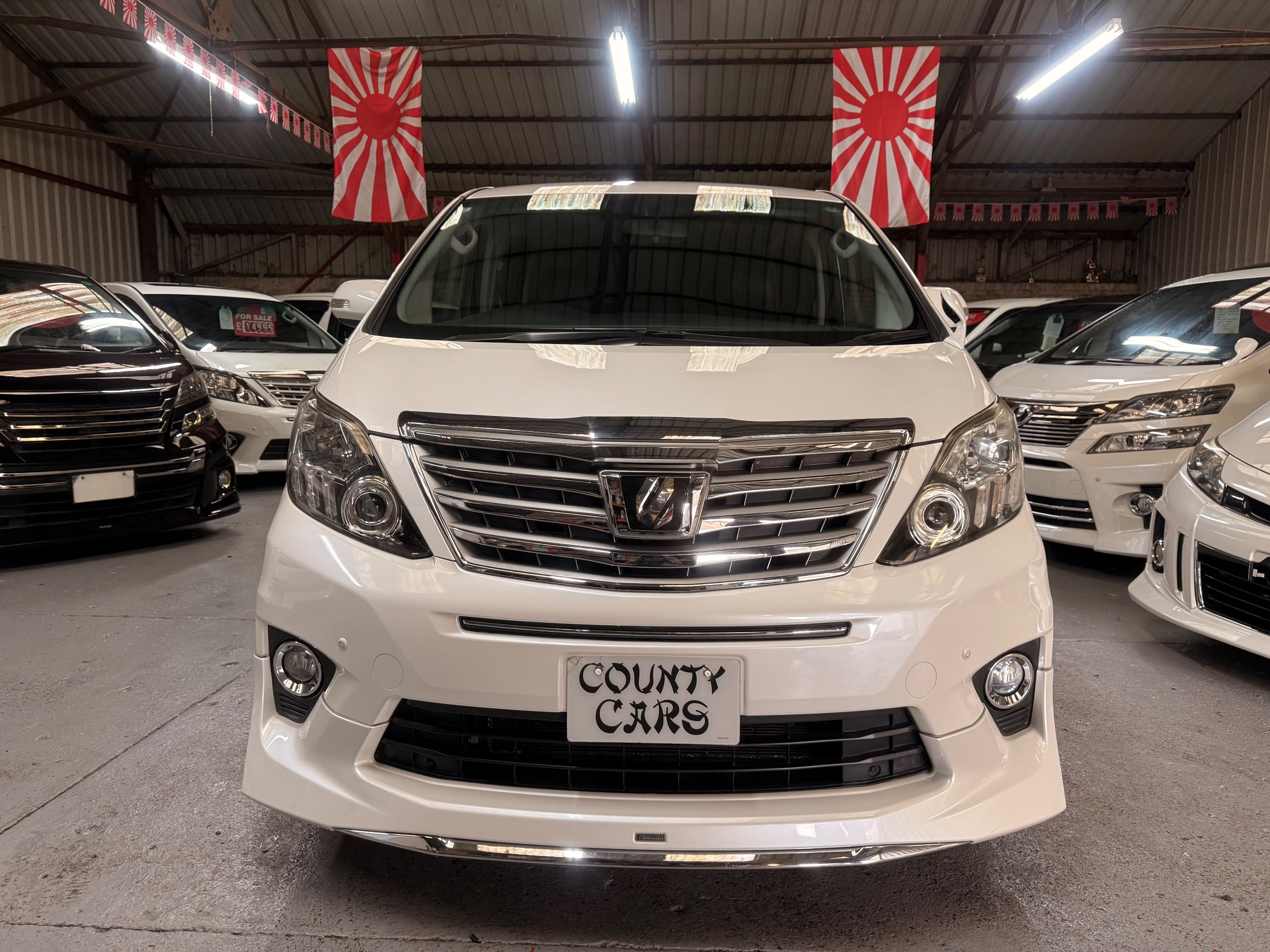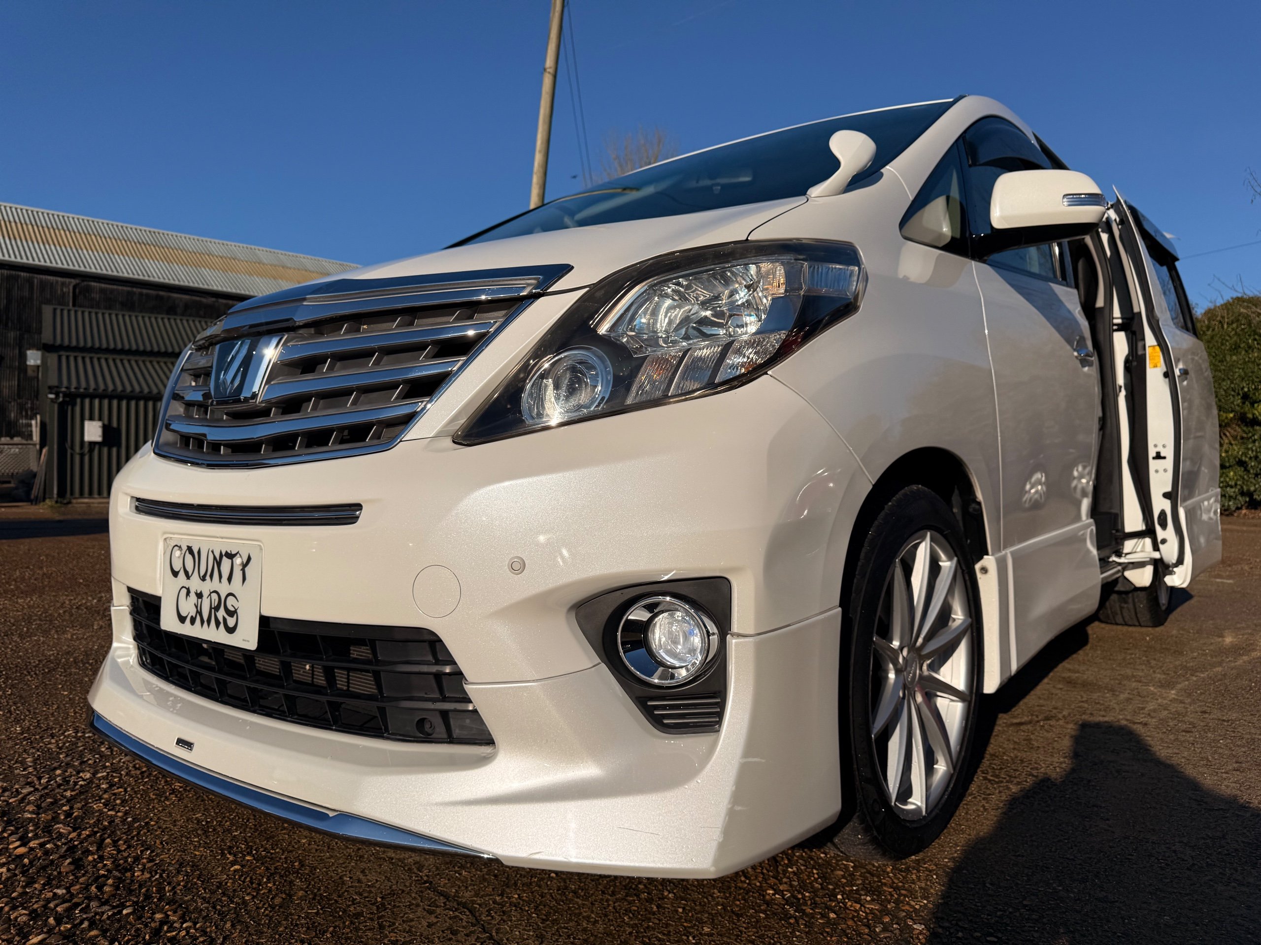 Toyota Alphard 240 S 2.4 Automatic, 8 Seater, 2014-63-Reg, Finished in Beautiful Pearlescent White Paintwork, 19” Deep Dish Alloys, Full Privacy Glass, Electric Soft Closing Sliding Passenger Door, Rear Spoiler with built in brake light, Front and Rear Parking Sensors, Colour Reversing Camera, Front spots with chrome surrounds, Front and Rear Bumper Spoilers ,8 Seater, 8 Unblemished Leather Look Crossed Stitch Seat Covers, The front seats have armrests, Centre Console with flip up cup-holders, The centre seat have twin armrests and centre armrest. The centre seat folds up and slides forward and has Isofix points, The Rear seats fold up to give way to a huge boot, Front and Rear Air-Con and climate control, 65,000 Miles, Apple CarPlay Android Auto uk Stereo, MPH Speedo conversion, Push button Start, Keyless Entry, Isofix Anchor points, ULEZ compliant, Eco mode, 65,000 Genuine miles with all the Genuine paperwork from Japan, Auction Sheet, mileage certificate, CarVX Checked,