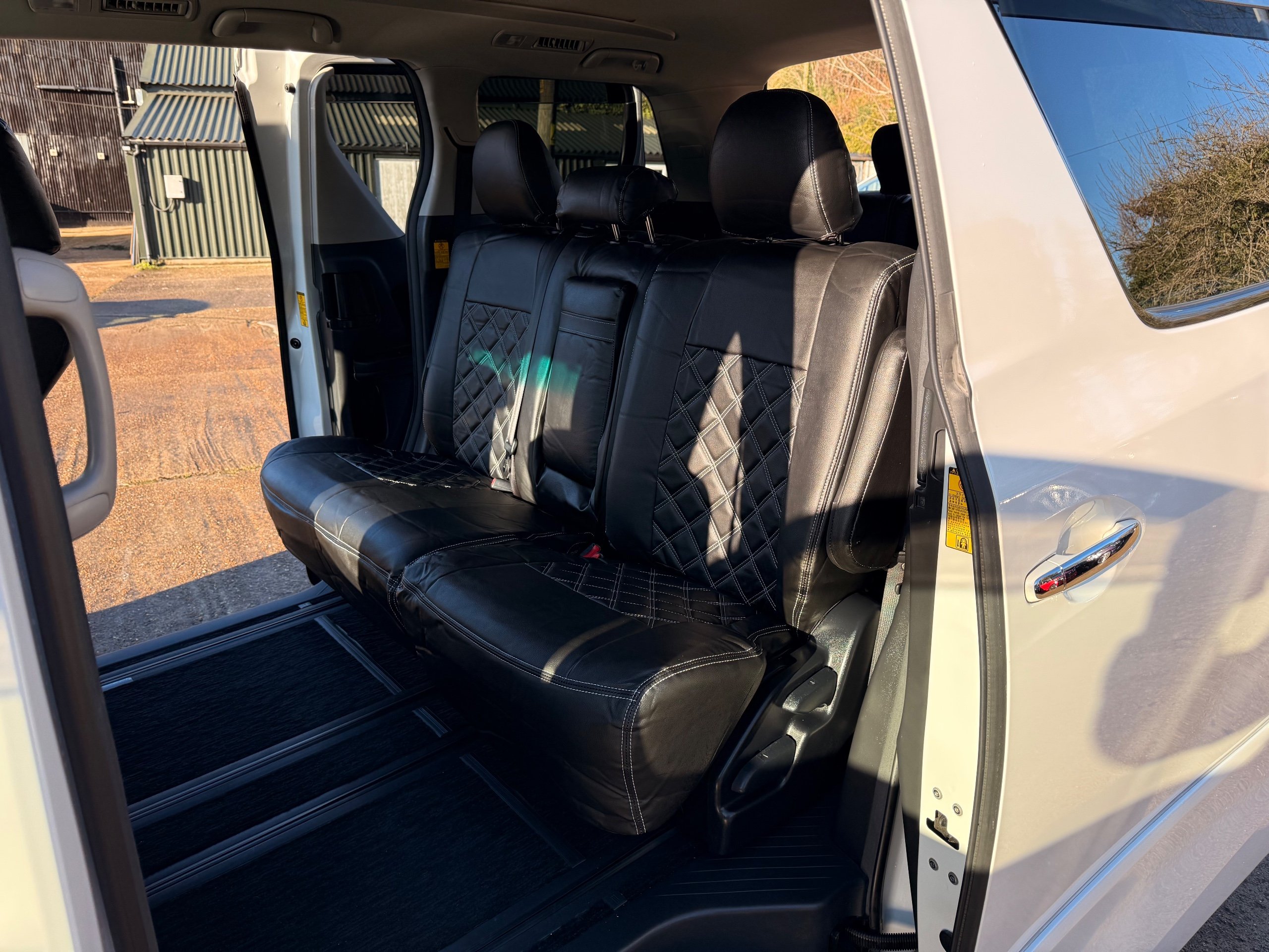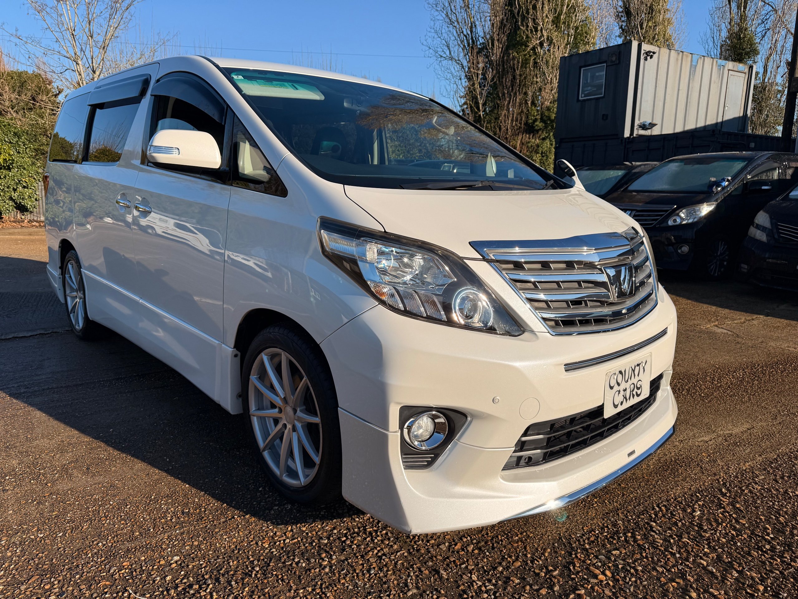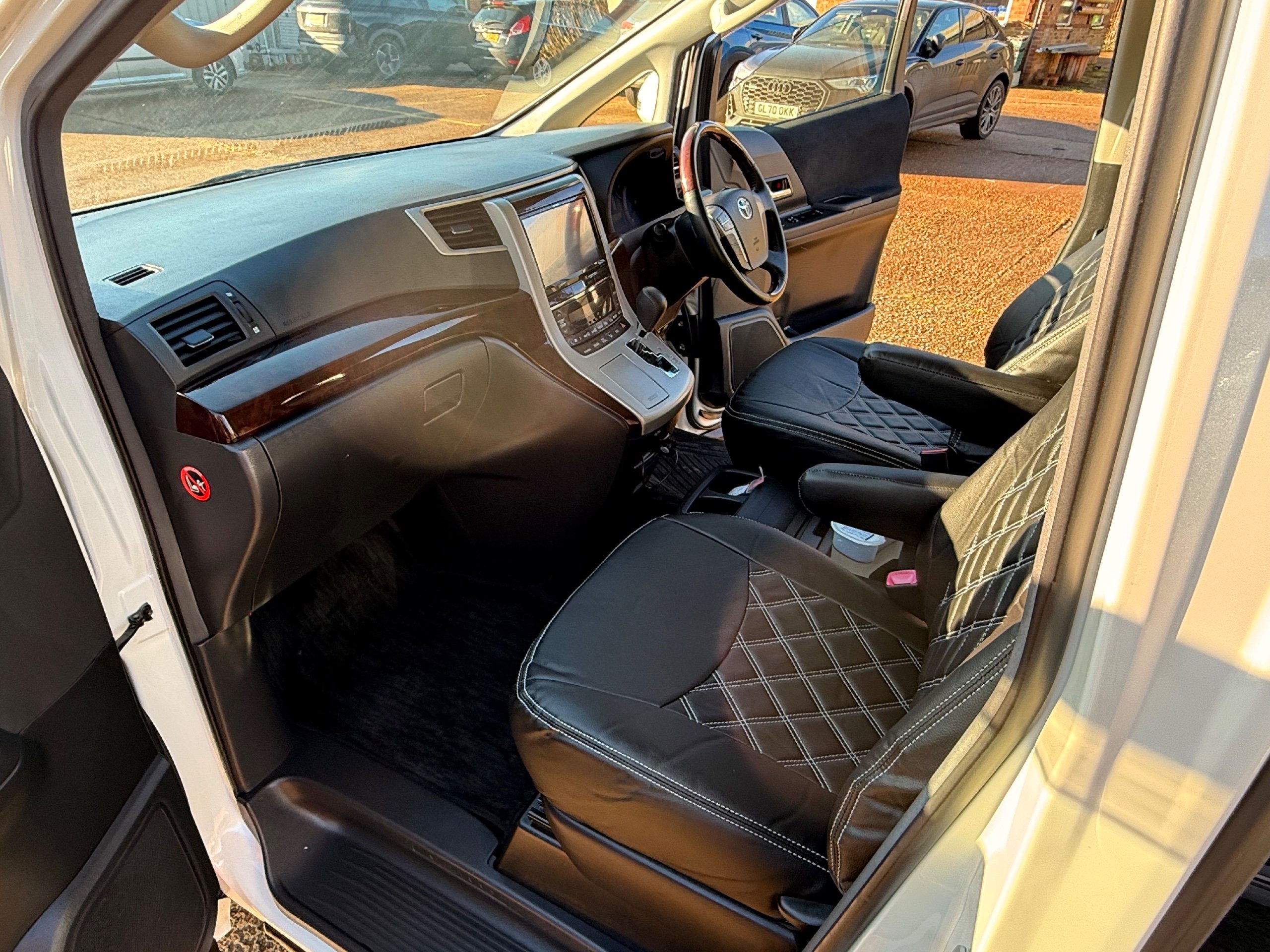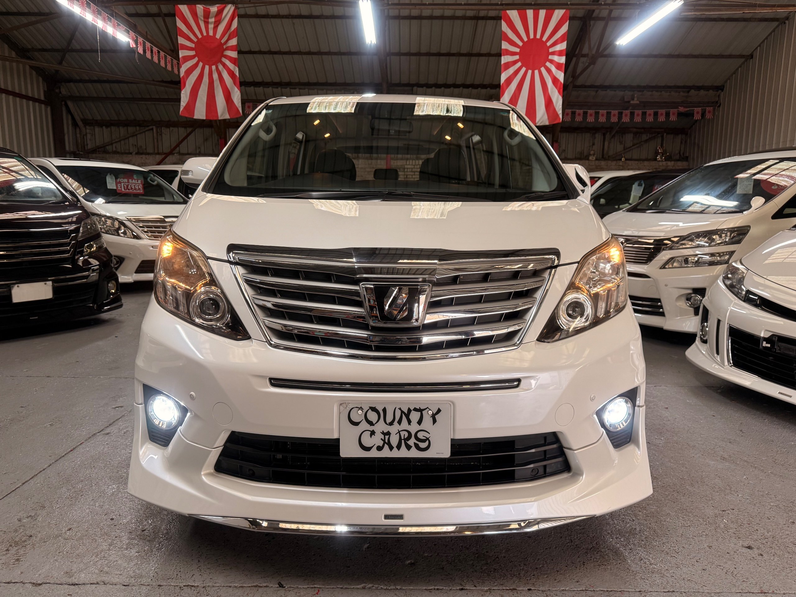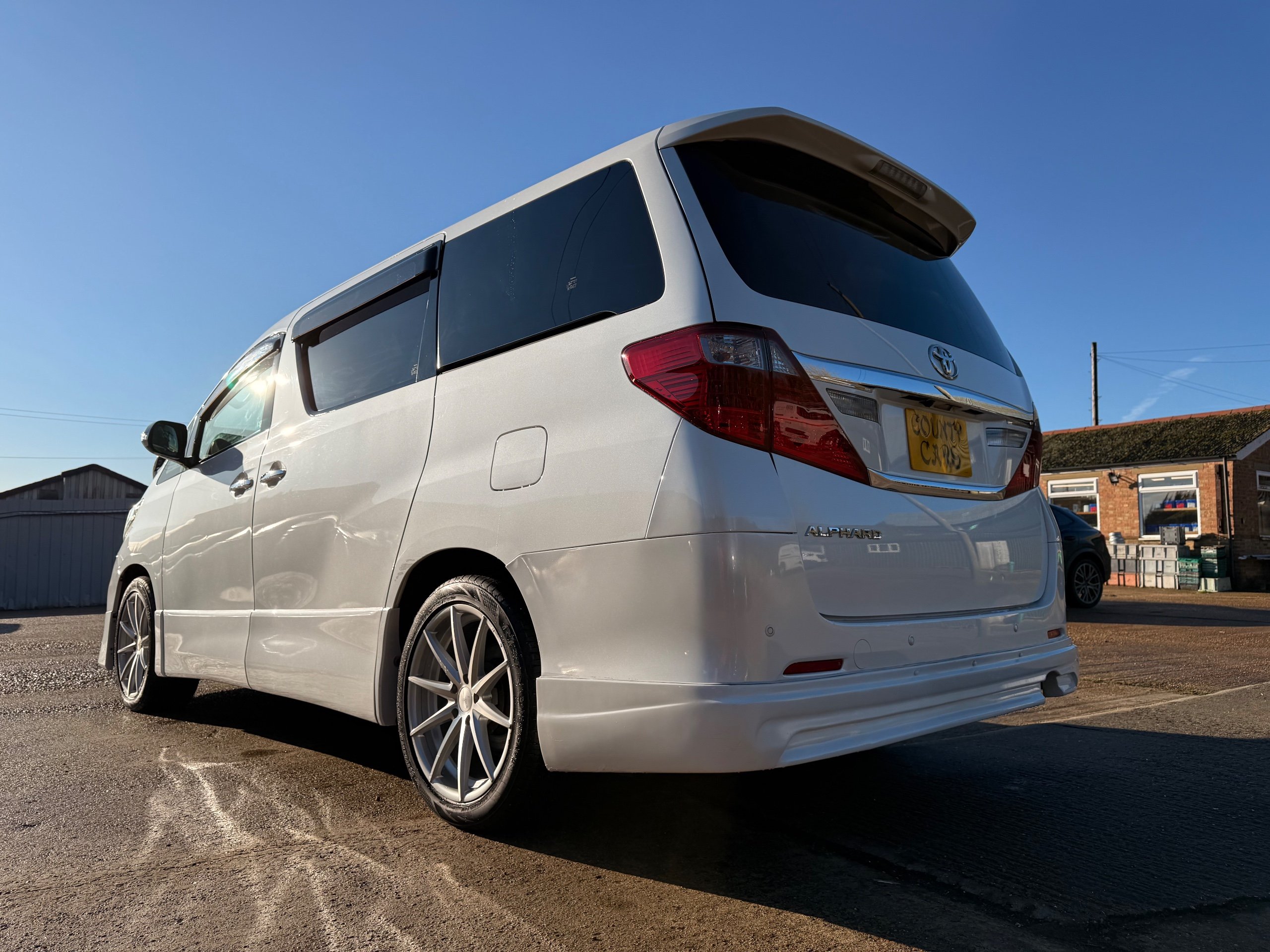 Toyota Alphard 240 S 2.4 Automatic, 8 Seater, 2014-63-Reg, Finished in Beautiful Pearlescent White Paintwork, 19” Deep Dish Alloys, Full Privacy Glass, Electric Soft Closing Sliding Passenger Door, Rear Spoiler with built in brake light, Front and Rear Parking Sensors, Colour Reversing Camera, Front spots with chrome surrounds, Front and Rear Bumper Spoilers ,8 Seater, 8 Unblemished Leather Look Crossed Stitch Seat Covers, The front seats have armrests, Centre Console with flip up cup-holders, The centre seat have twin armrests and centre armrest. The centre seat folds up and slides forward and has Isofix points, The Rear seats fold up to give way to a huge boot, Front and Rear Air-Con and climate control, 65,000 Miles, Apple CarPlay Android Auto uk Stereo, MPH Speedo conversion, Push button Start, Keyless Entry, Isofix Anchor points, ULEZ compliant, Eco mode, 65,000 Genuine miles with all the Genuine paperwork from Japan, Auction Sheet, mileage certificate, CarVX Checked,