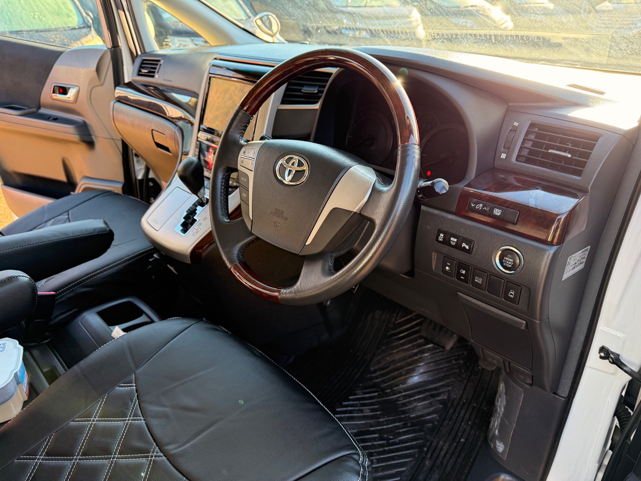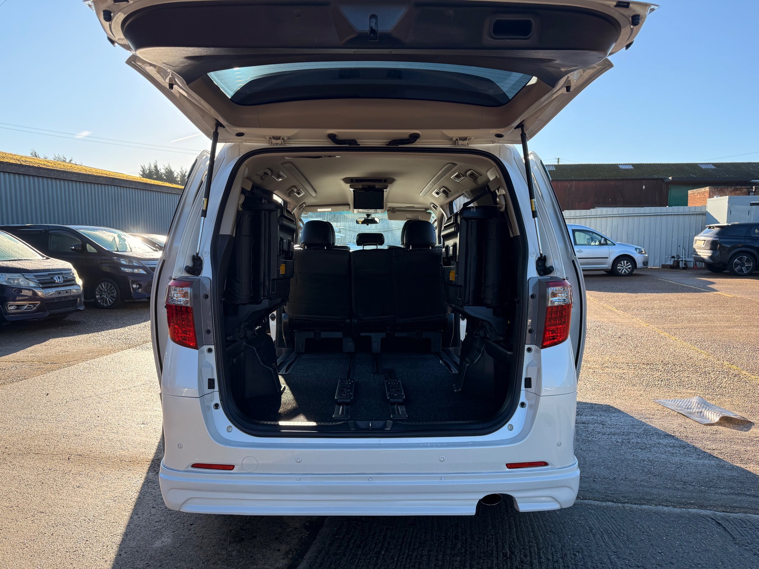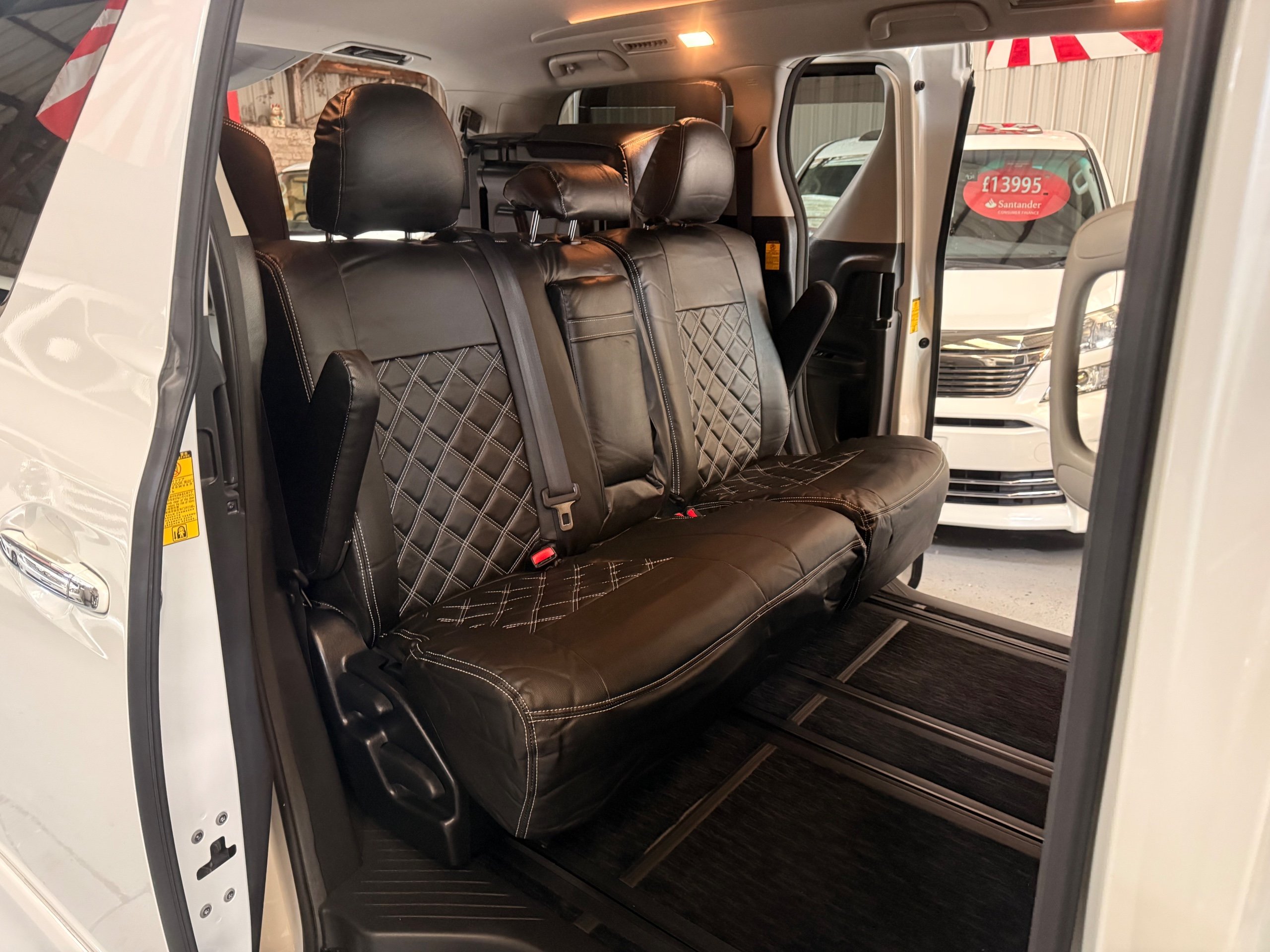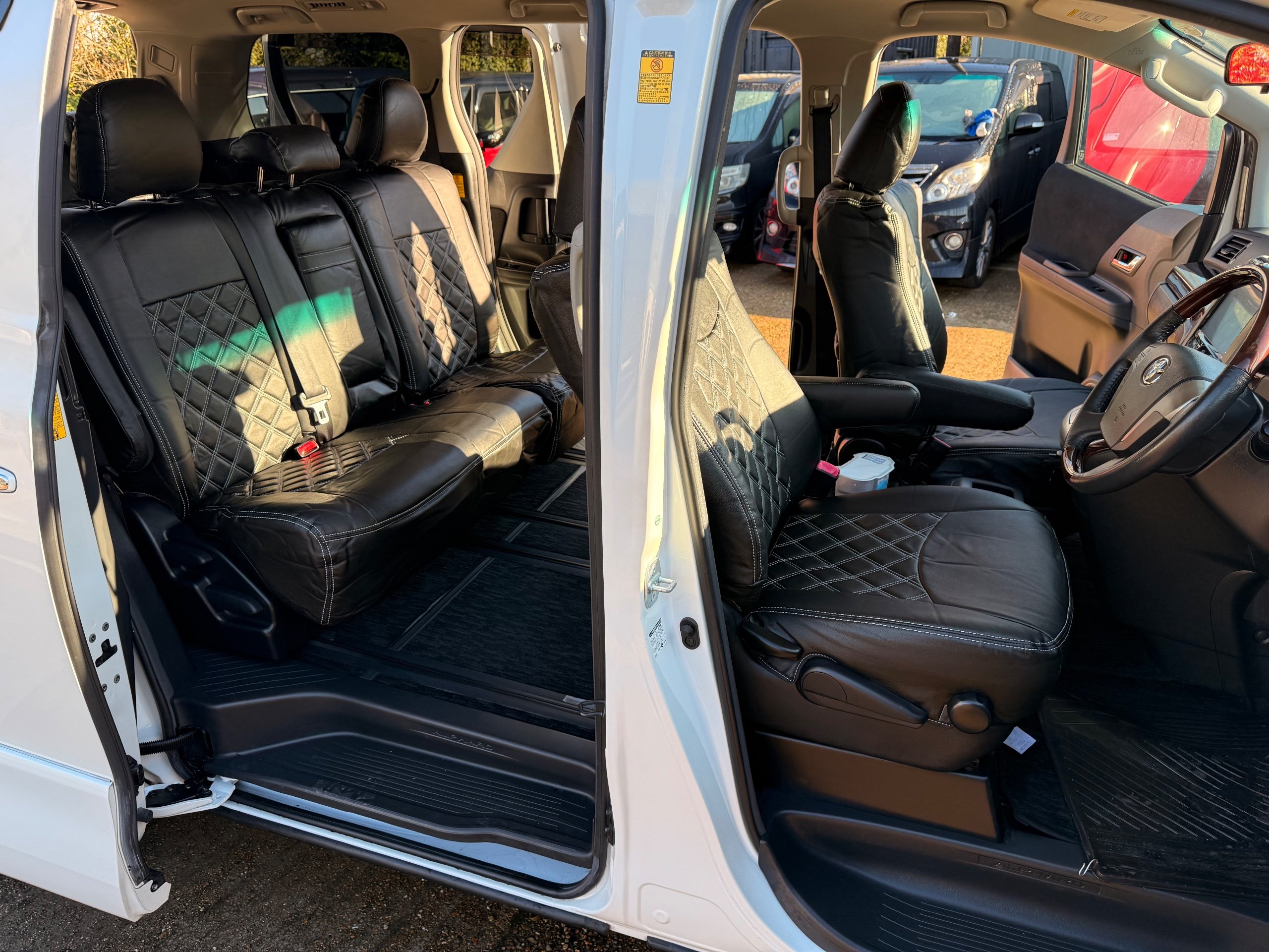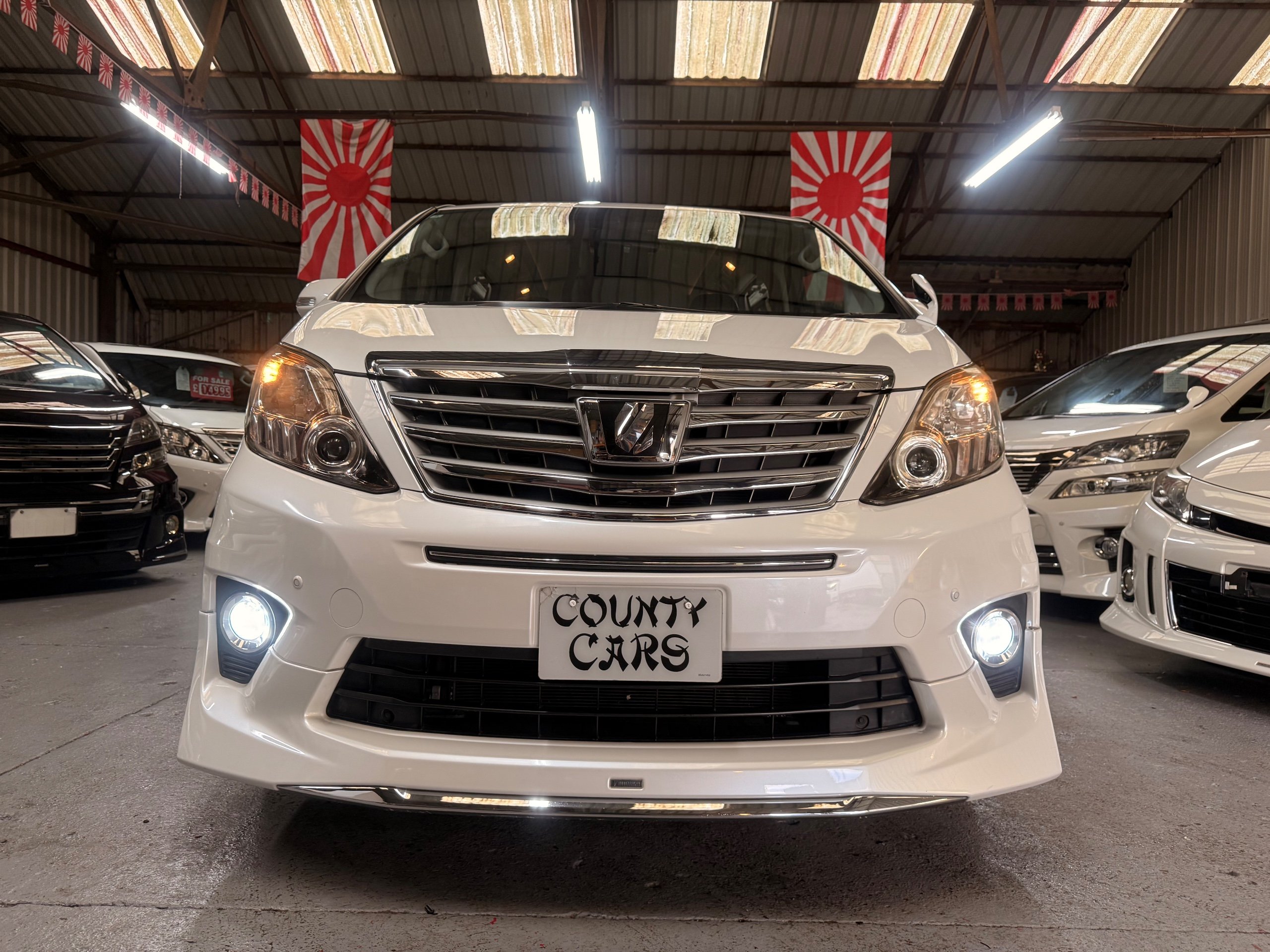 Toyota Alphard 240 S 2.4 Automatic, 8 Seater, 2014-63-Reg, Finished in Beautiful Pearlescent White Paintwork, 19” Deep Dish Alloys, Full Privacy Glass, Electric Soft Closing Sliding Passenger Door, Rear Spoiler with built in brake light, Front and Rear Parking Sensors, Colour Reversing Camera, Front spots with chrome surrounds, Front and Rear Bumper Spoilers ,8 Seater, 8 Unblemished Leather Look Crossed Stitch Seat Covers, The front seats have armrests, Centre Console with flip up cup-holders, The centre seat have twin armrests and centre armrest. The centre seat folds up and slides forward and has Isofix points, The Rear seats fold up to give way to a huge boot, Front and Rear Air-Con and climate control, 65,000 Miles, Apple CarPlay Android Auto uk Stereo, MPH Speedo conversion, Push button Start, Keyless Entry, Isofix Anchor points, ULEZ compliant, Eco mode, 65,000 Genuine miles with all the Genuine paperwork from Japan, Auction Sheet, mileage certificate, CarVX Checked,