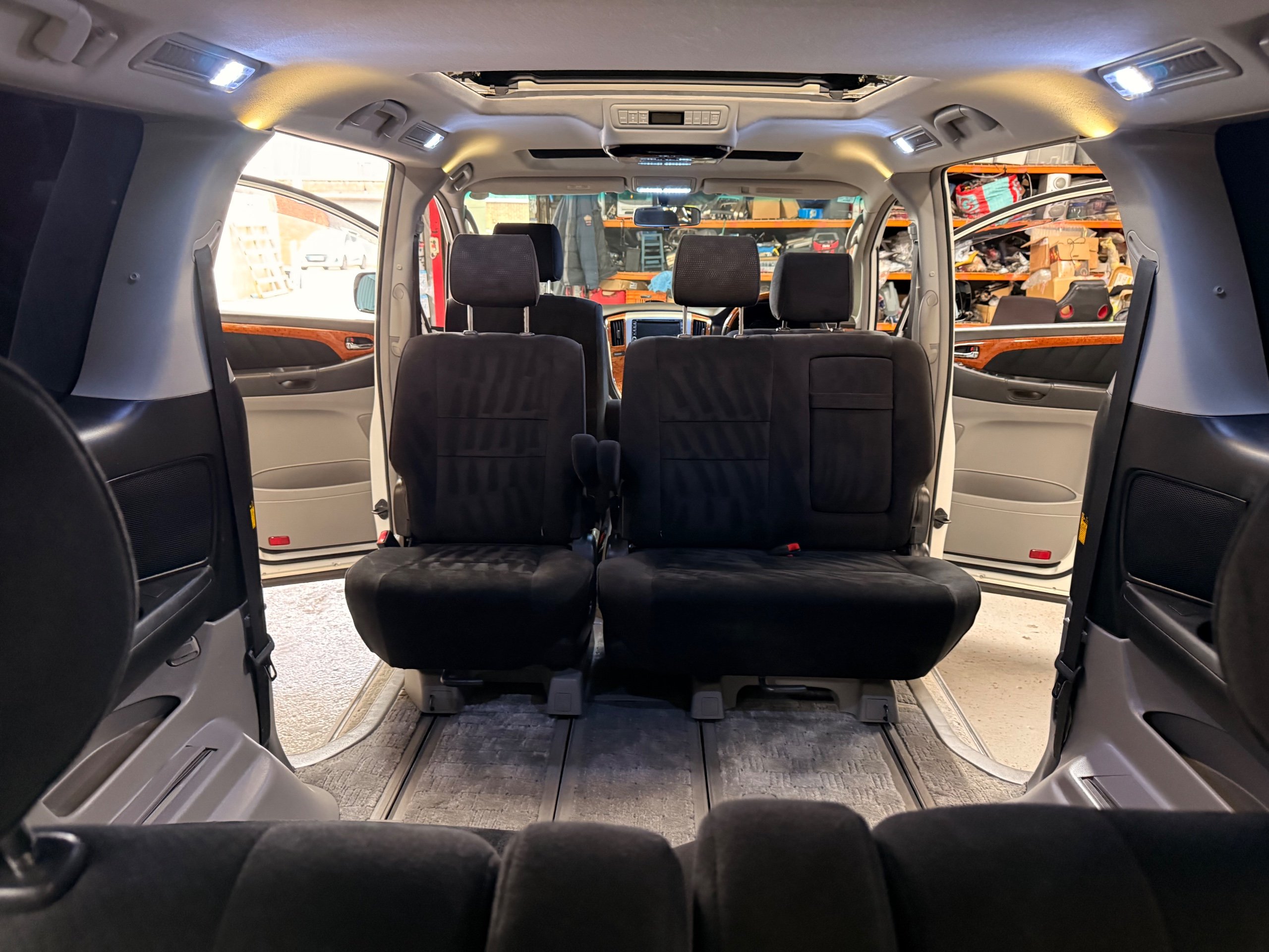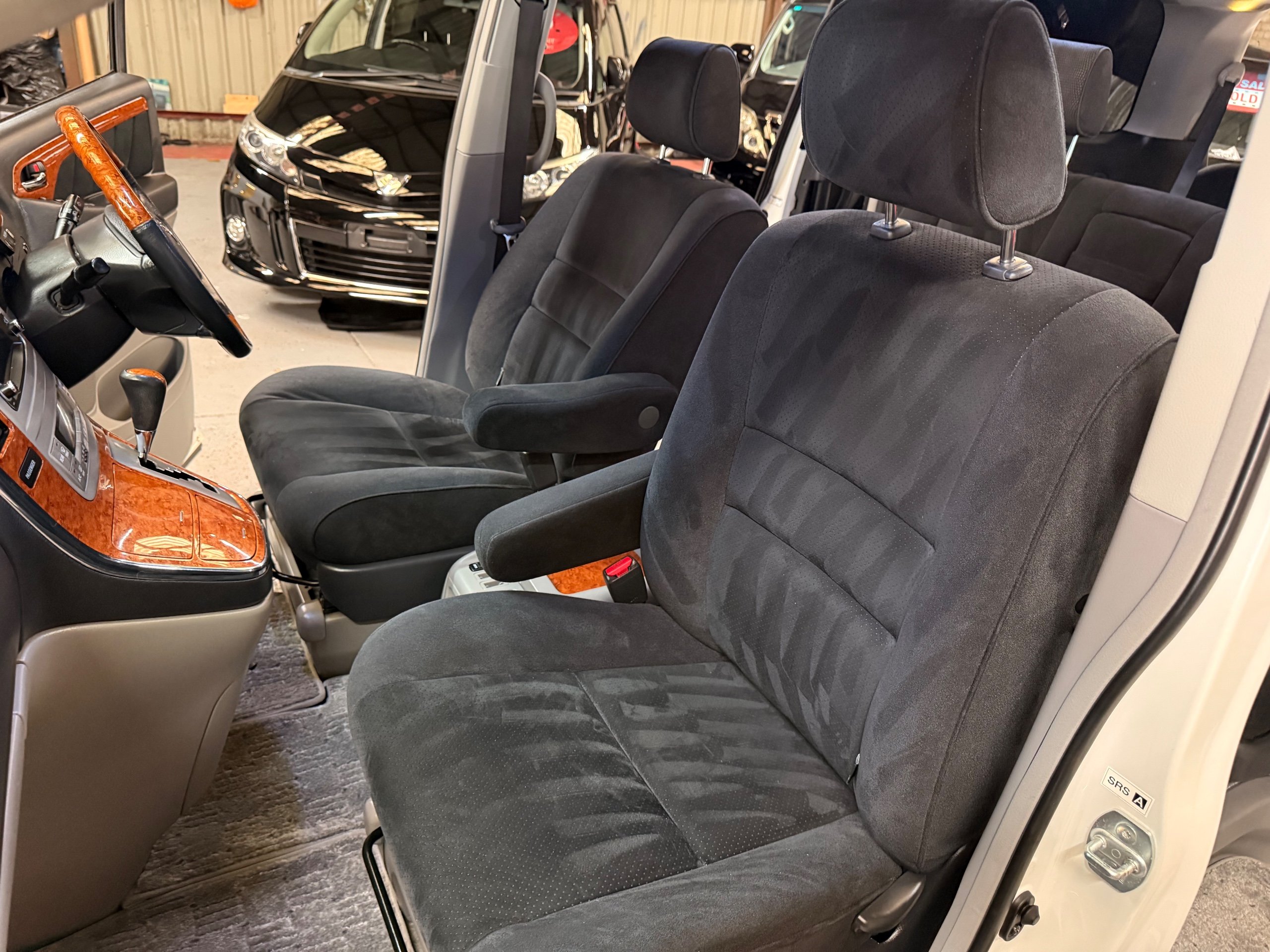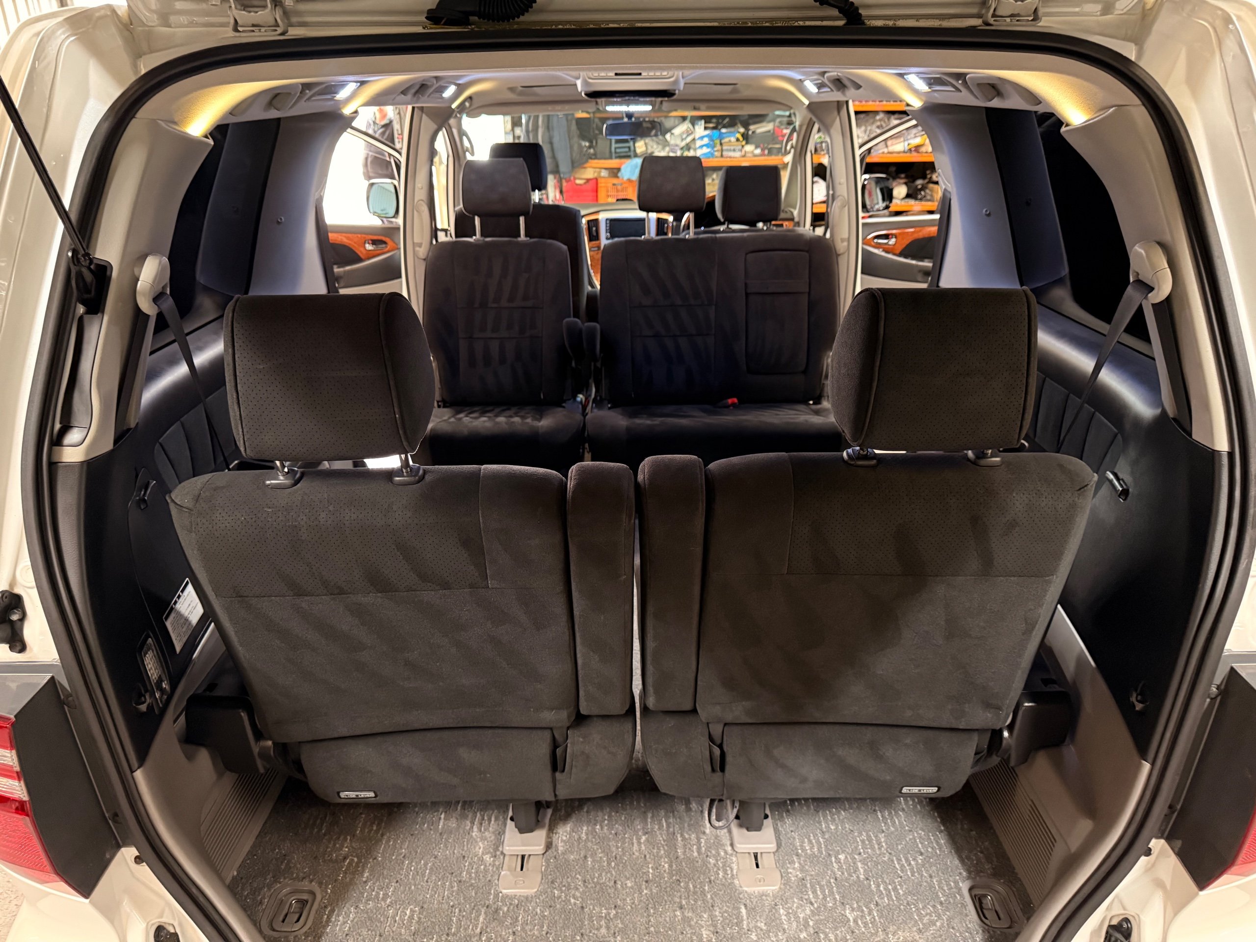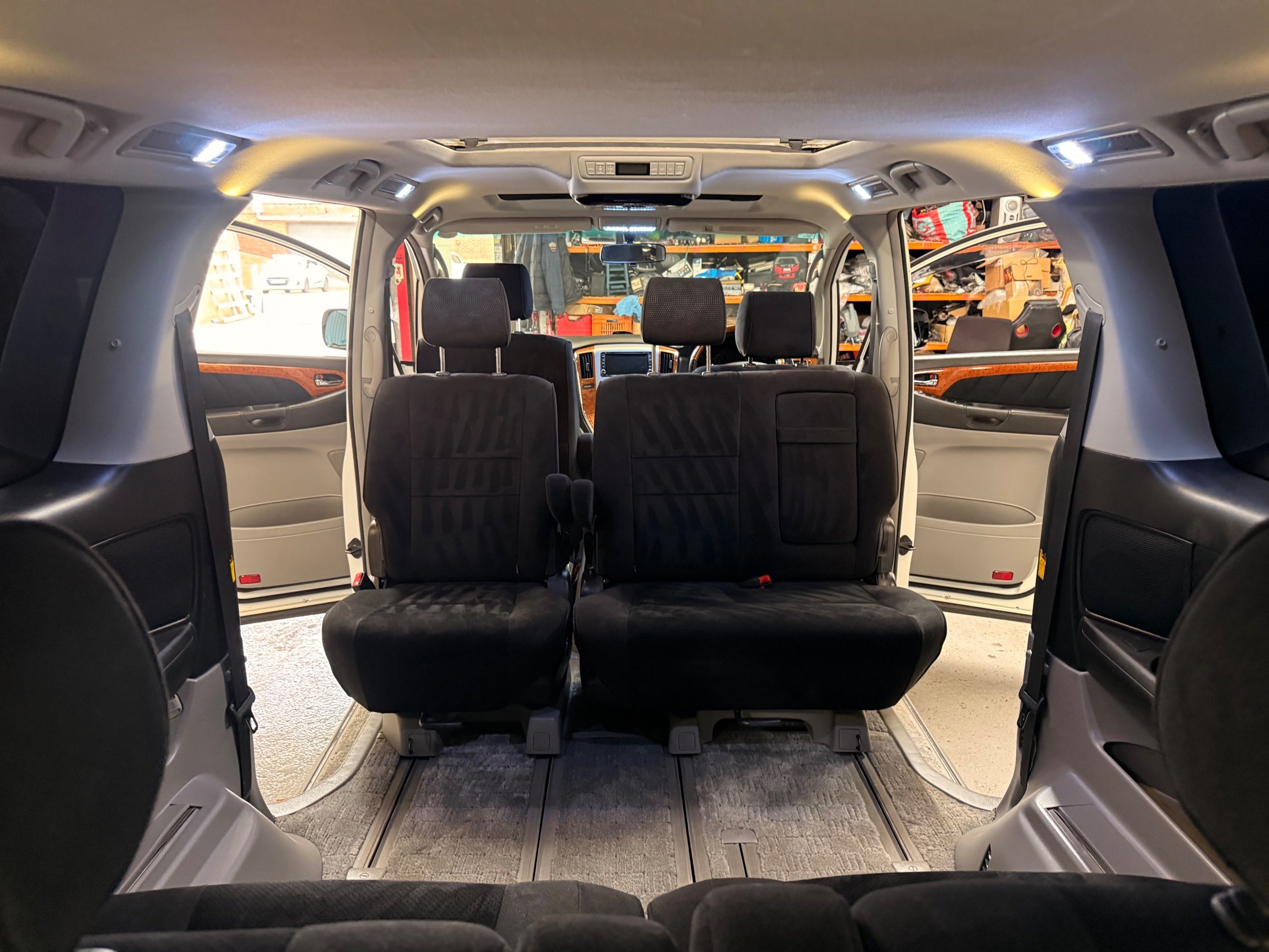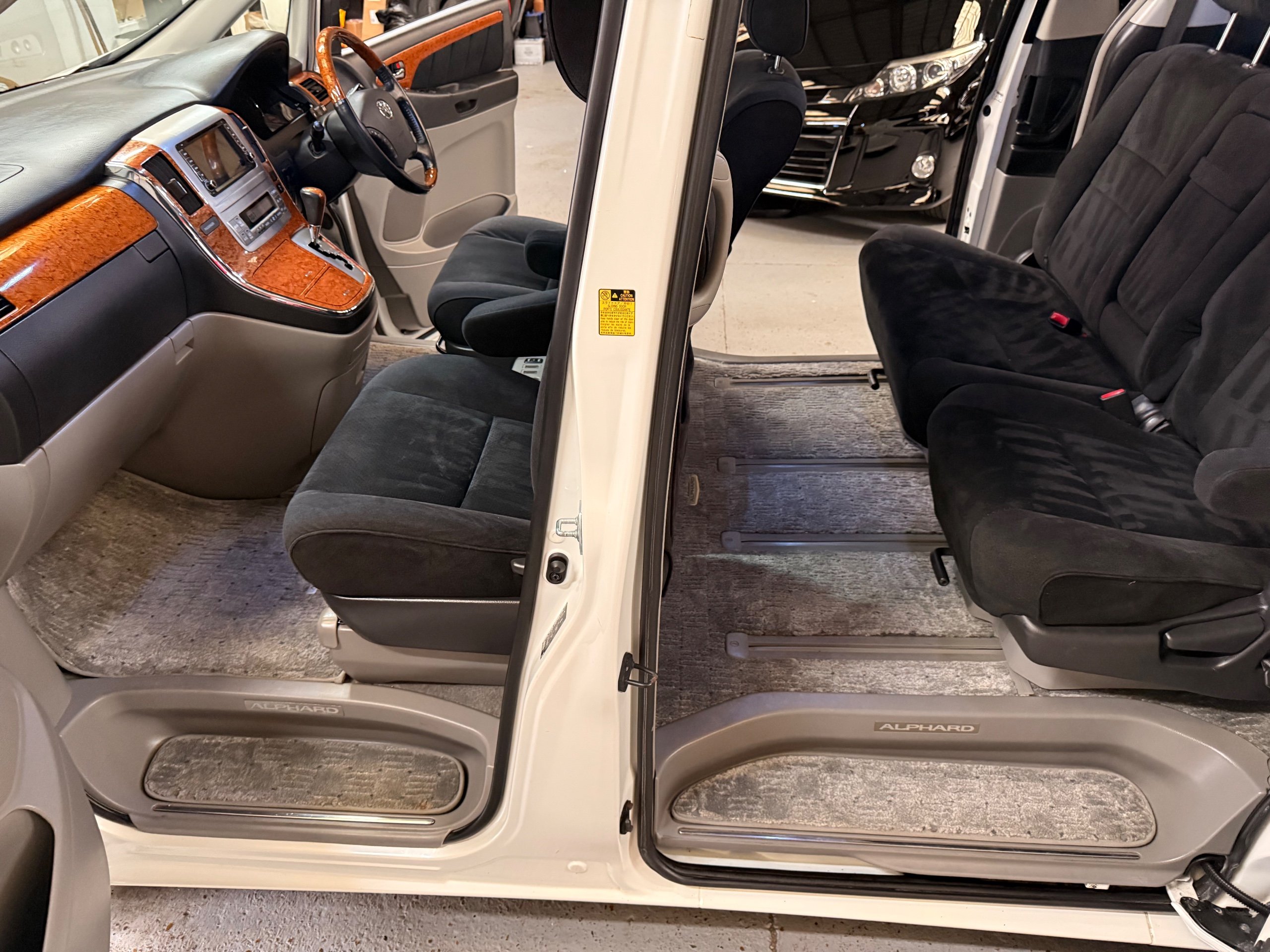 Toyota Alphard 3.0 V6 Platinum Selection ll Auto, 2008-08-Reg, Finished in Pearlescent White Paintwork, Unmarked Genuine 17" Polished Toyota Alloys, Front spots Fold away wing mirrors, Full privacy glass, Twin Sunroofs, Rear Electric Sunroof, Twin Electric soft closing sliding doors, Electric Tailgate, Front and Rear Parking Sensors, 8 Seater, 8 Unblemished Black Alcantara Seats, The front seats have armrests, centre console with a flip up tray, The centre seats have armrests/centre armrest with cup holders, The centre seats also folds down to display two tables with cup holders, The seats are also fully rotational, The rear seats fold to the side to give way to a huge loading space, Front and Rear Parking Sensors, front and rear Air-Con and climate control, Front and rear Electric windows, Ambient Lighting, Isofix Points, U.K Stereo with colour reversing camera, Rear monitor linked to the front DVD. UK Speedo conversion, Only covered a Genuine 68,000 with all the Genuine paperwork from Japan including the Export certificate and Auction sheet to prove the mileage and condition before it left Japan Nationwide Delivery Service Available