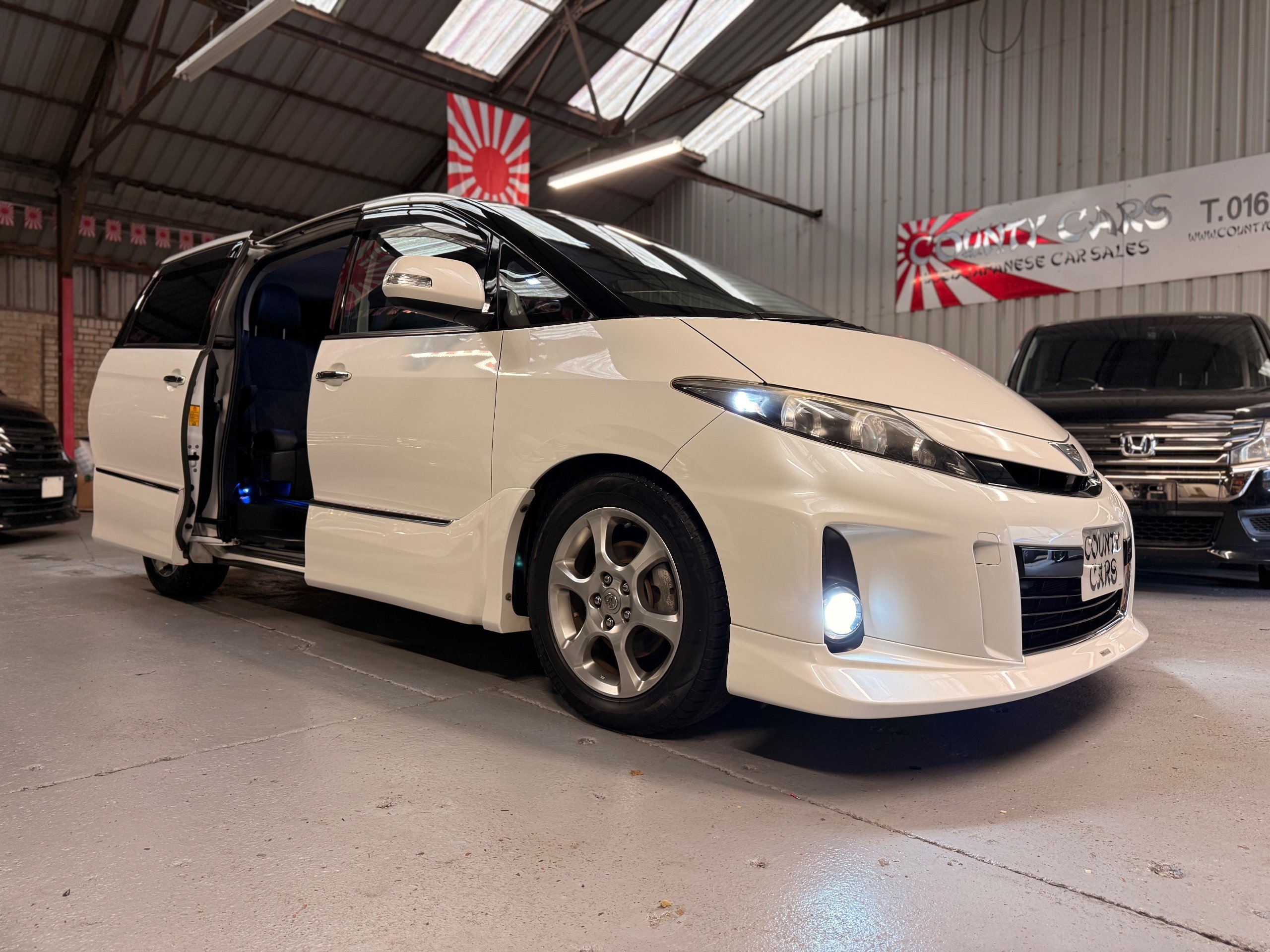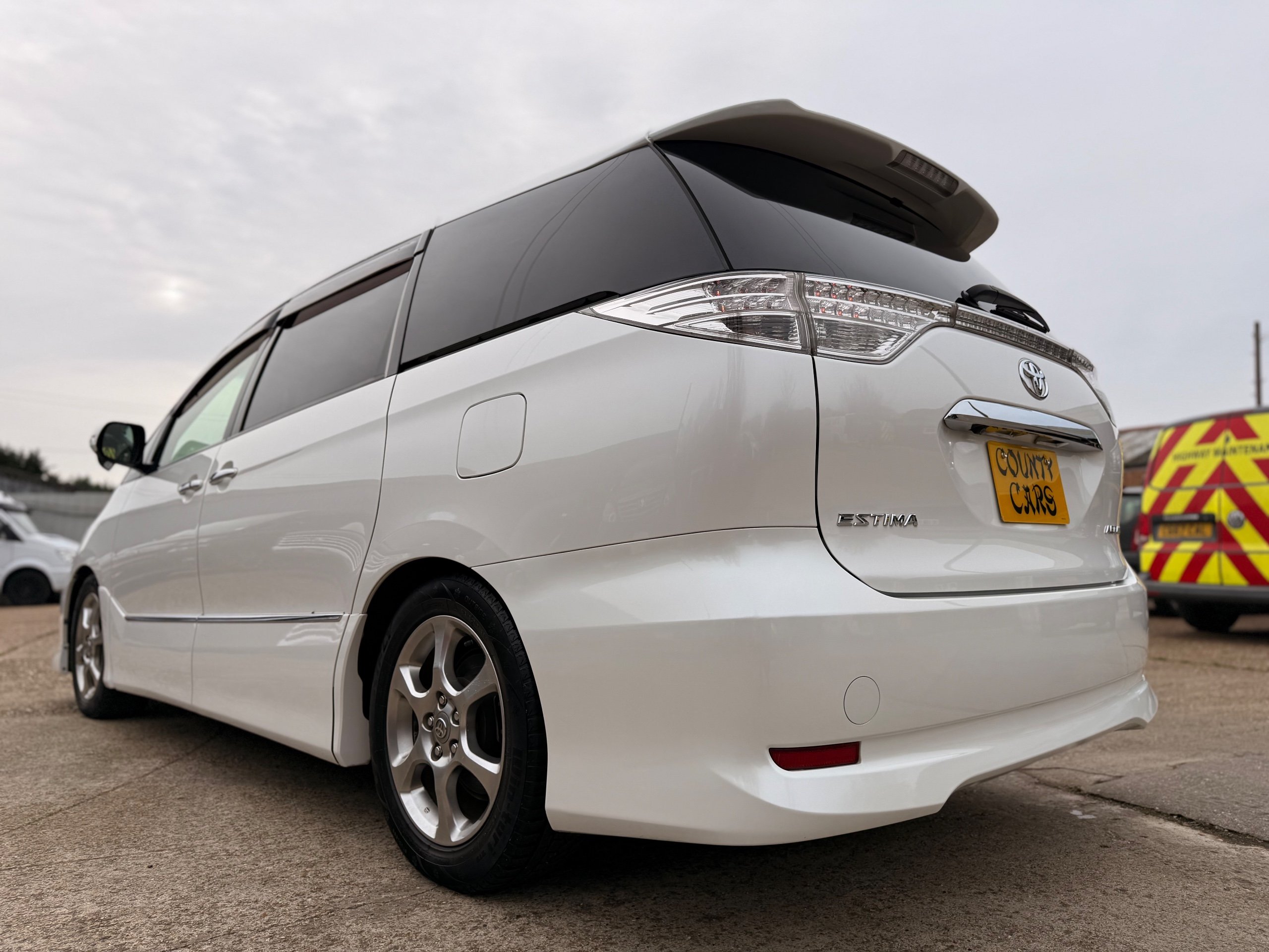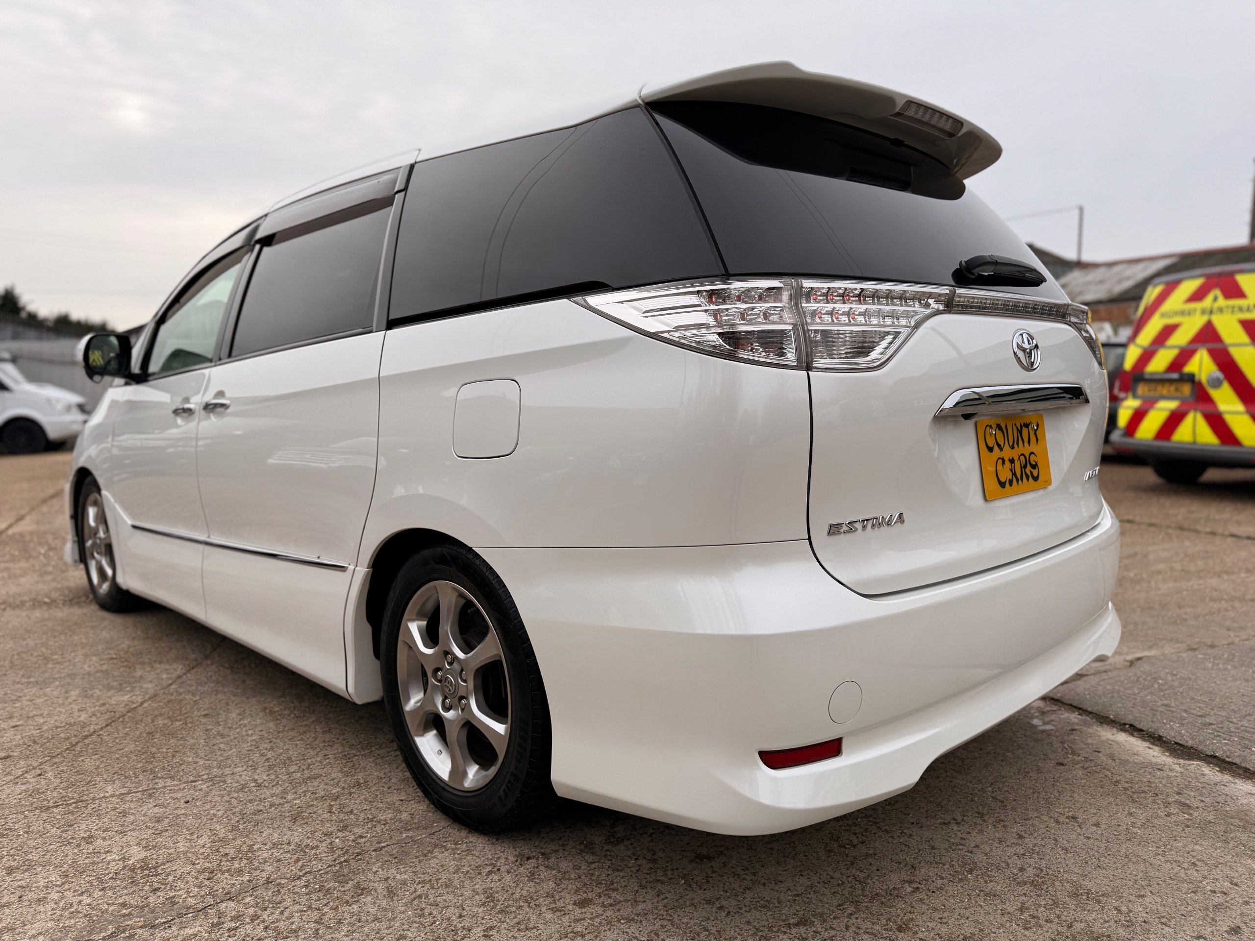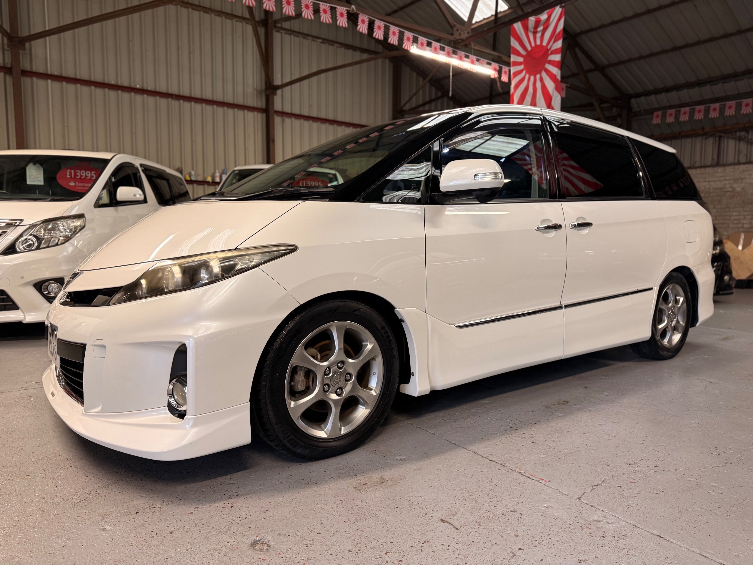 Toyota Estima 2.4 Aeras Premium Edition, 2014-63--Reg, Finished in stunning Unmarked Pearlescent White Paintwork, Front Spots with chrome surrounds, Front TRD Front Lip, Full privacy Glass, Twin Electric Soft Closing Sliding Doors, Twin Sunroofs, Rear Panoramic Roof, Key-less Entry, Unmarked Factory Toyota Alloys, fold away wing mirrors with built in clear indicators, L.E.D back lights, Colour Reversing camera, rear spoiler, Aeras Aero kit, 7 Seater, 7 Unmarked black Half Leather seats, Front seats have armrests, Front cup-holders, The middle row of seats are lounge style seats with twin armrests extra leg rests, The seats can me moved forwards backwards and side to side. Centre table with cup-holders, The rear seats fold away to give access to a huge boot, Push button Start, Front and Rear Air-Con, Front and Rear E/Windows, Isofix Rear Seats, Cruise Control, UK Apple CarPlay Stereo, ULEZ Compliment, Only Covered a Genuine 72,000 Miles With all the Genuine Paperwork from Japan including the Auction sheet and Export certificate and mileage certificate, Fully serviced before delivery or collection, MPH Speedo Conversion