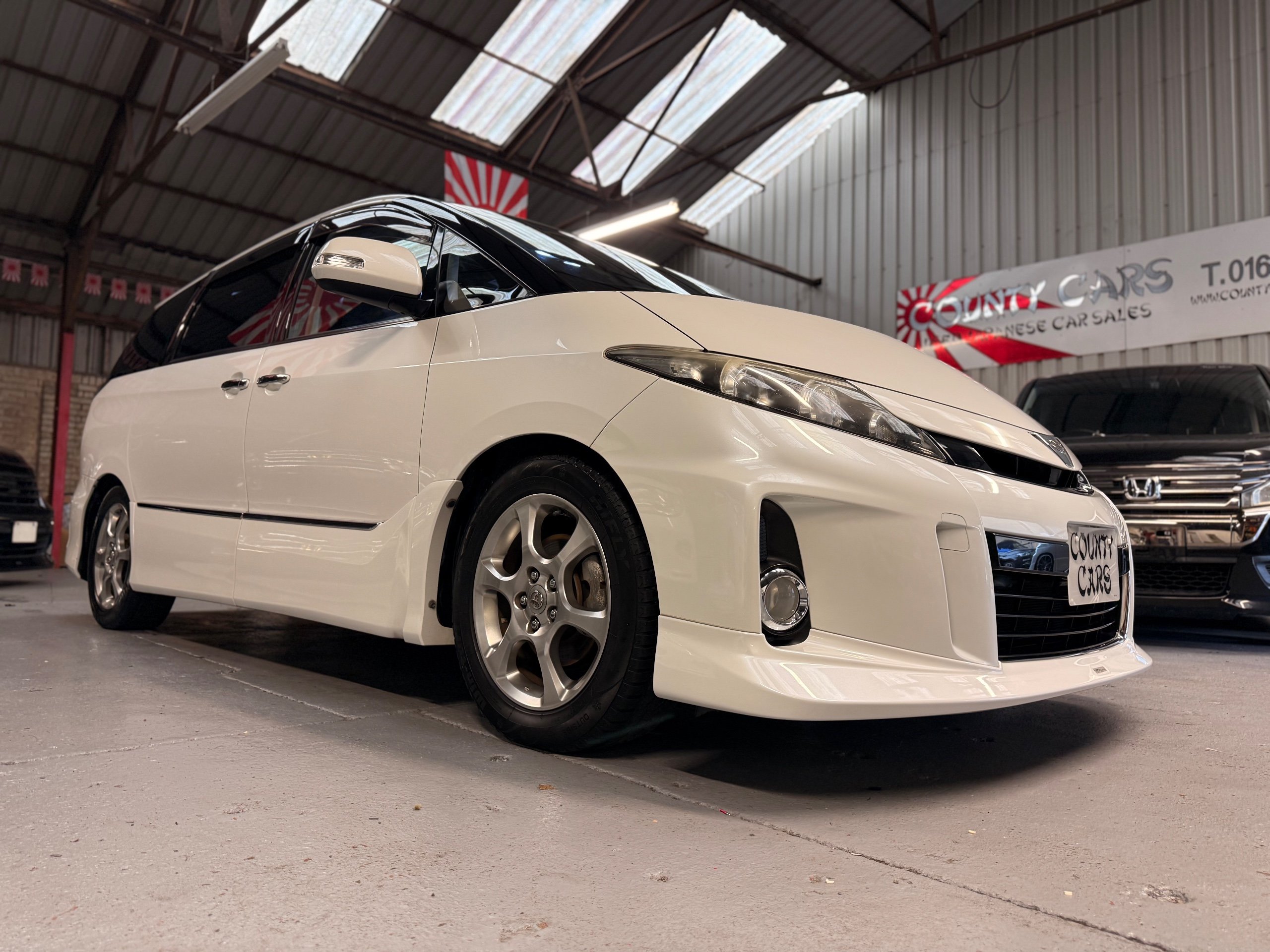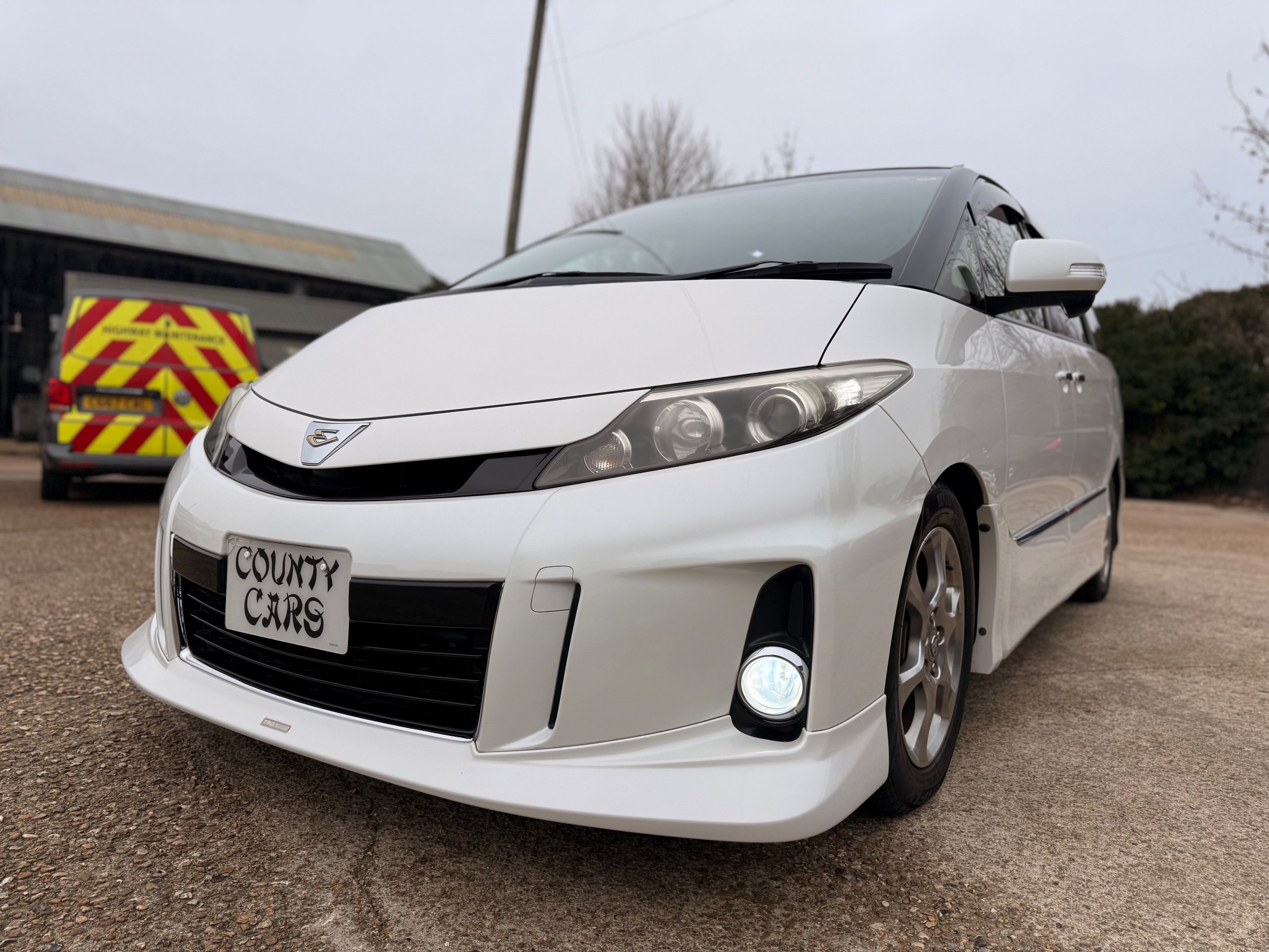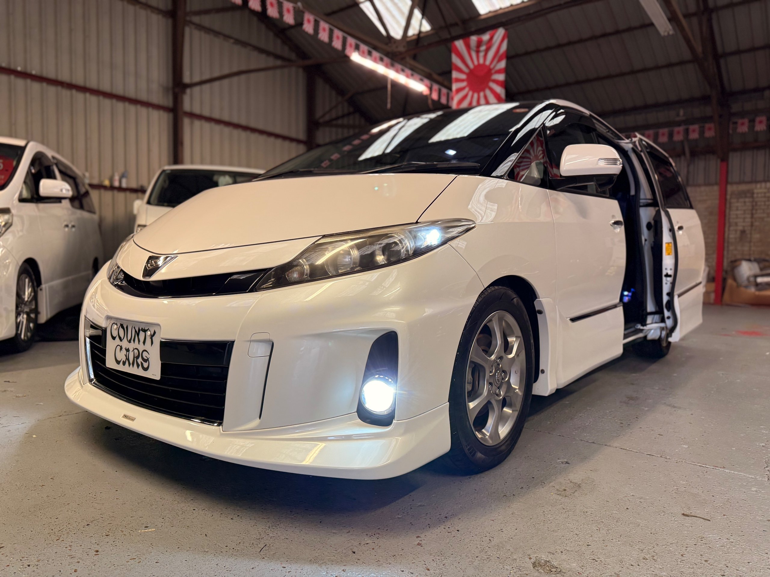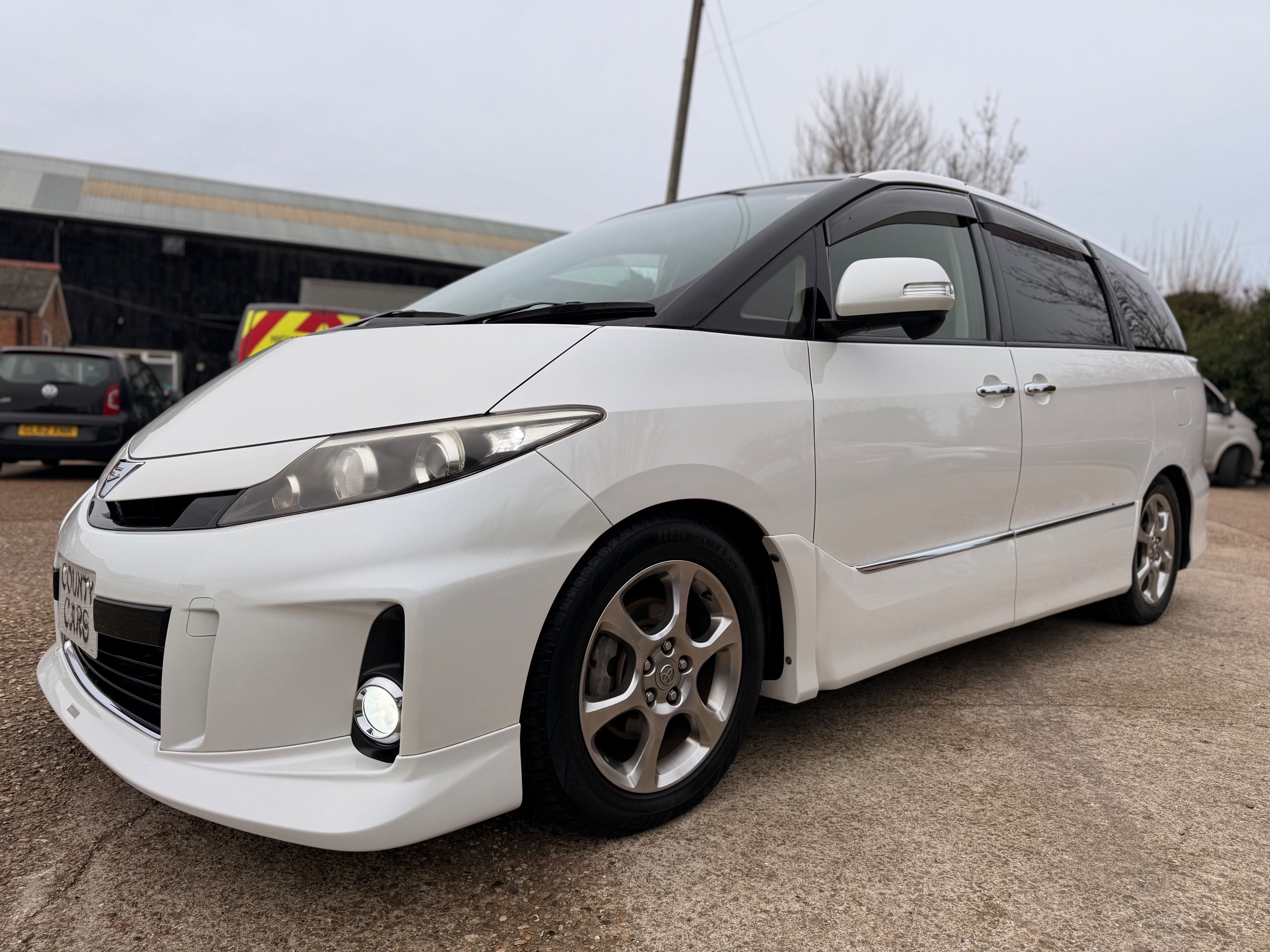 Toyota Estima 2.4 Aeras Premium Edition, 2014-63--Reg, Finished in stunning Unmarked Pearlescent White Paintwork, Front Spots with chrome surrounds, Front TRD Front Lip, Full privacy Glass, Twin Electric Soft Closing Sliding Doors, Twin Sunroofs, Rear Panoramic Roof, Key-less Entry, Unmarked Factory Toyota Alloys, fold away wing mirrors with built in clear indicators, L.E.D back lights, Colour Reversing camera, rear spoiler, Aeras Aero kit, 7 Seater, 7 Unmarked black Half Leather seats, Front seats have armrests, Front cup-holders, The middle row of seats are lounge style seats with twin armrests extra leg rests, The seats can me moved forwards backwards and side to side. Centre table with cup-holders, The rear seats fold away to give access to a huge boot, Push button Start, Front and Rear Air-Con, Front and Rear E/Windows, Isofix Rear Seats, Cruise Control, UK Apple CarPlay Stereo, ULEZ Compliment, Only Covered a Genuine 72,000 Miles With all the Genuine Paperwork from Japan including the Auction sheet and Export certificate and mileage certificate, Fully serviced before delivery or collection, MPH Speedo Conversion