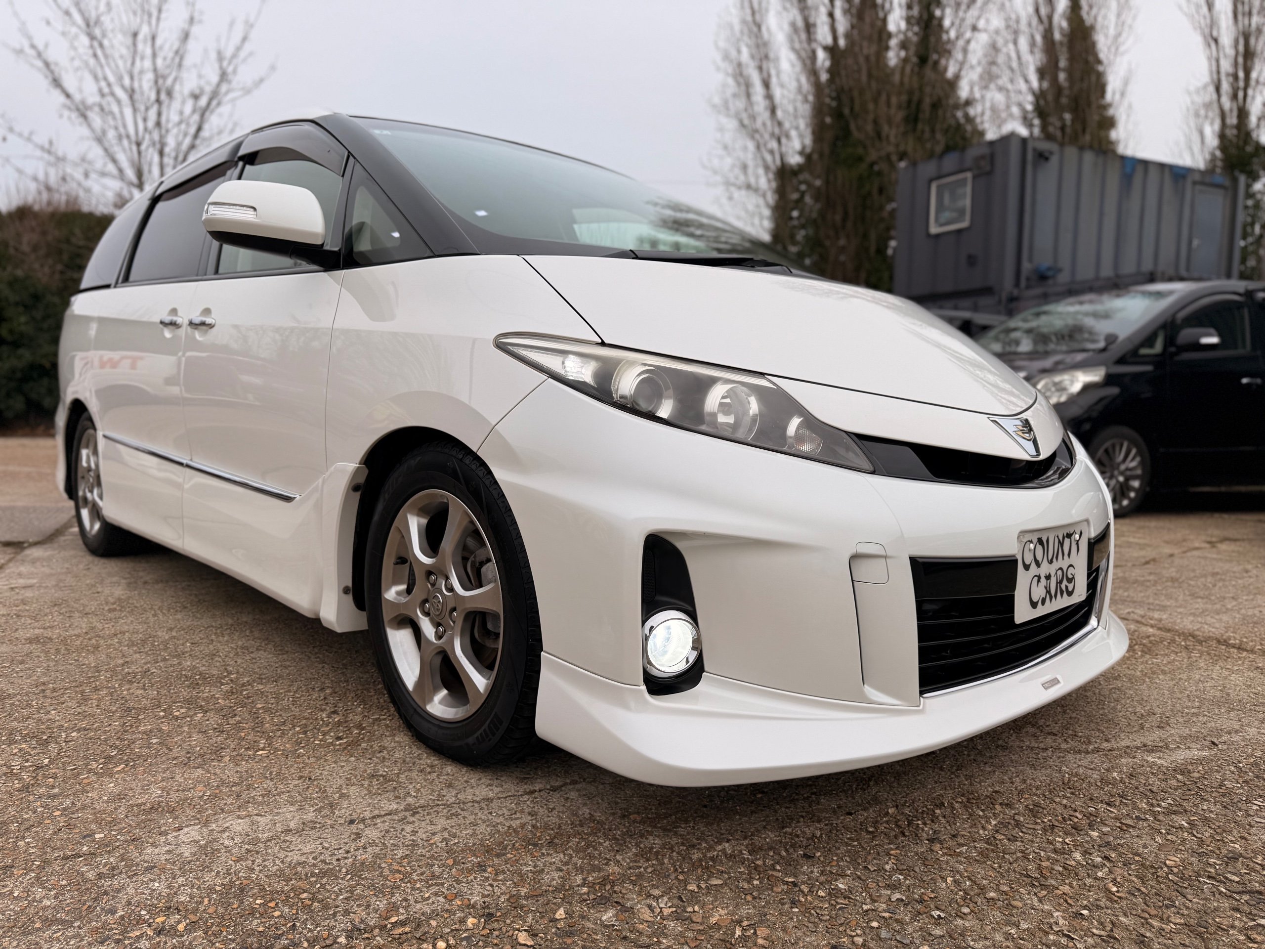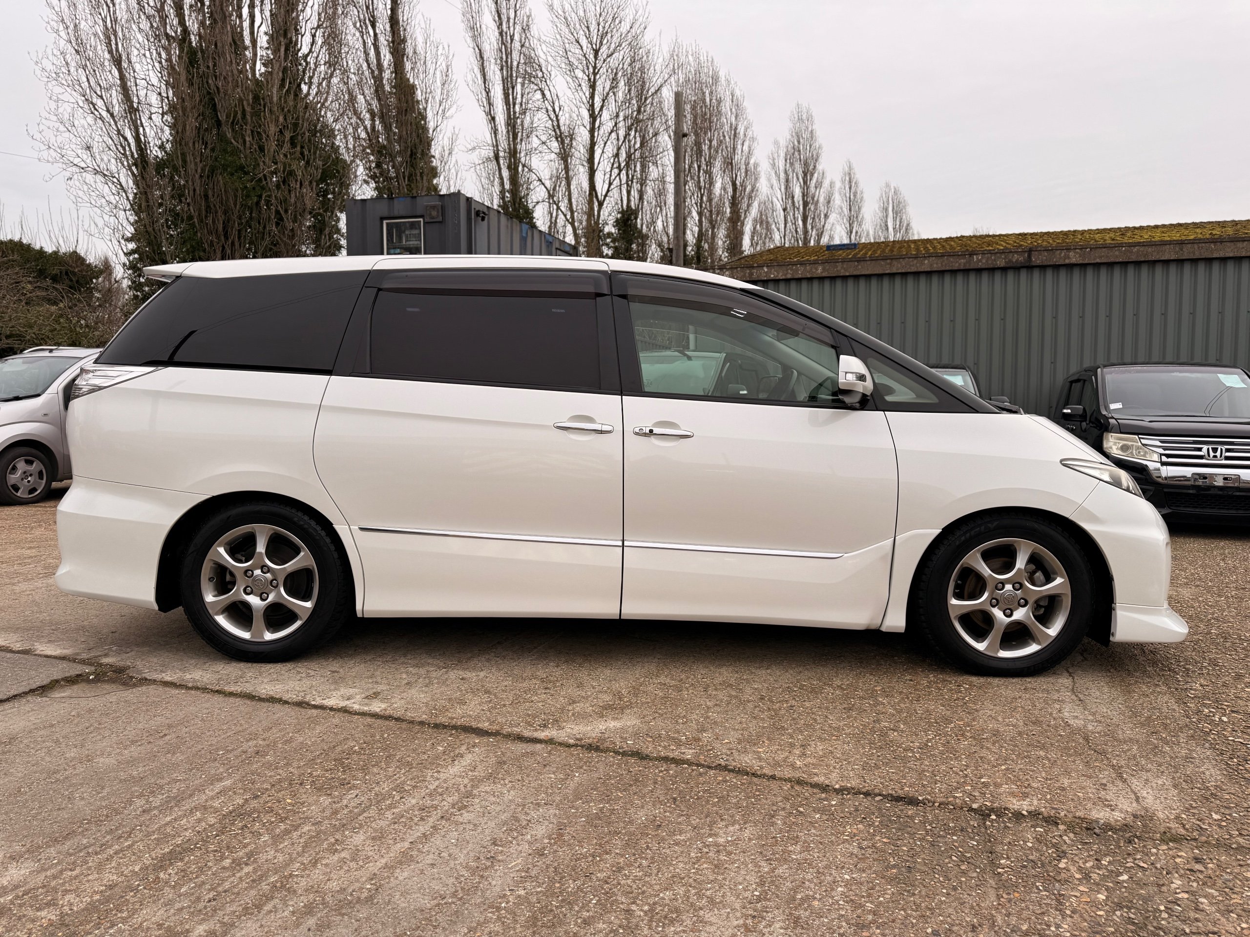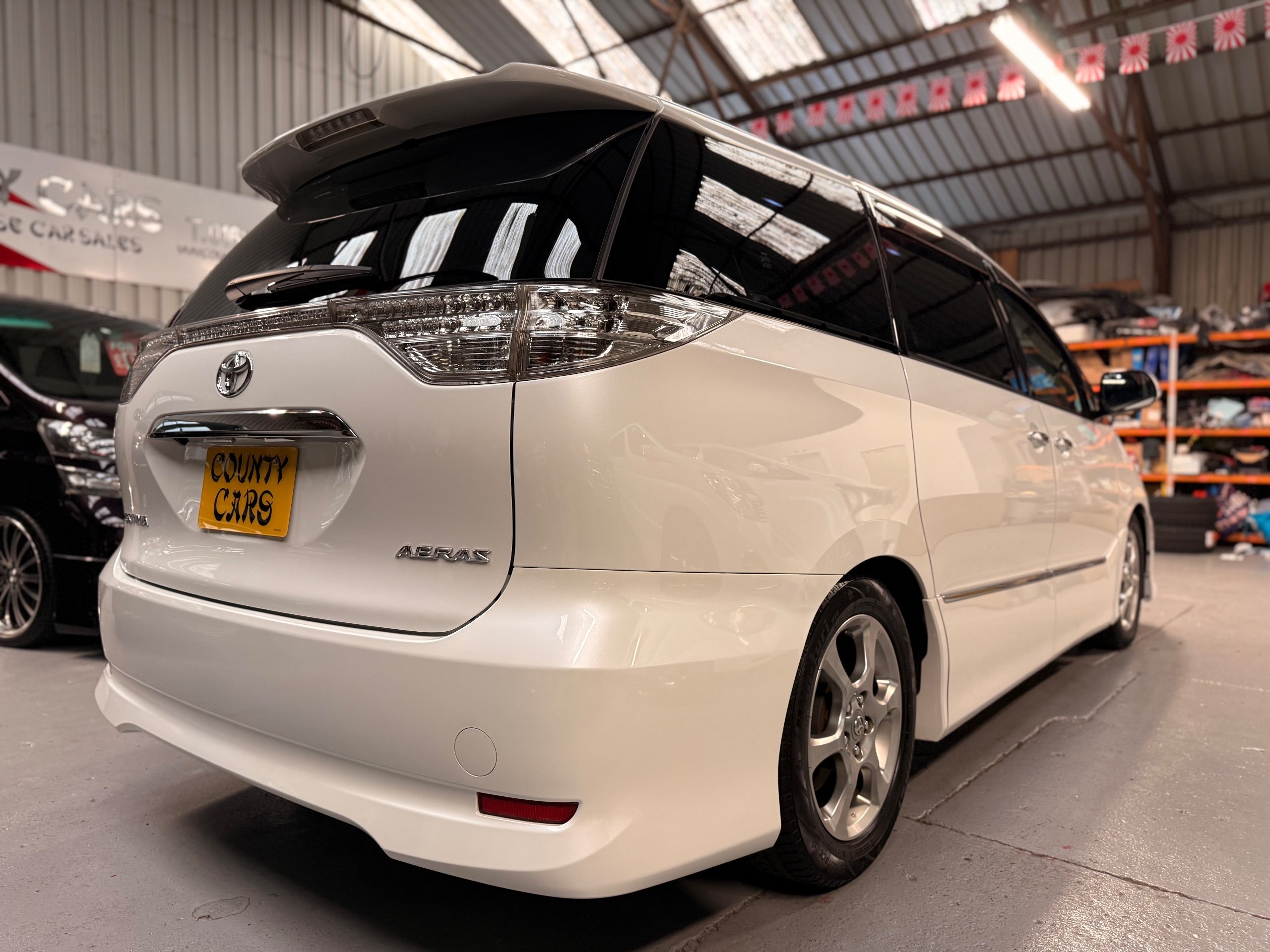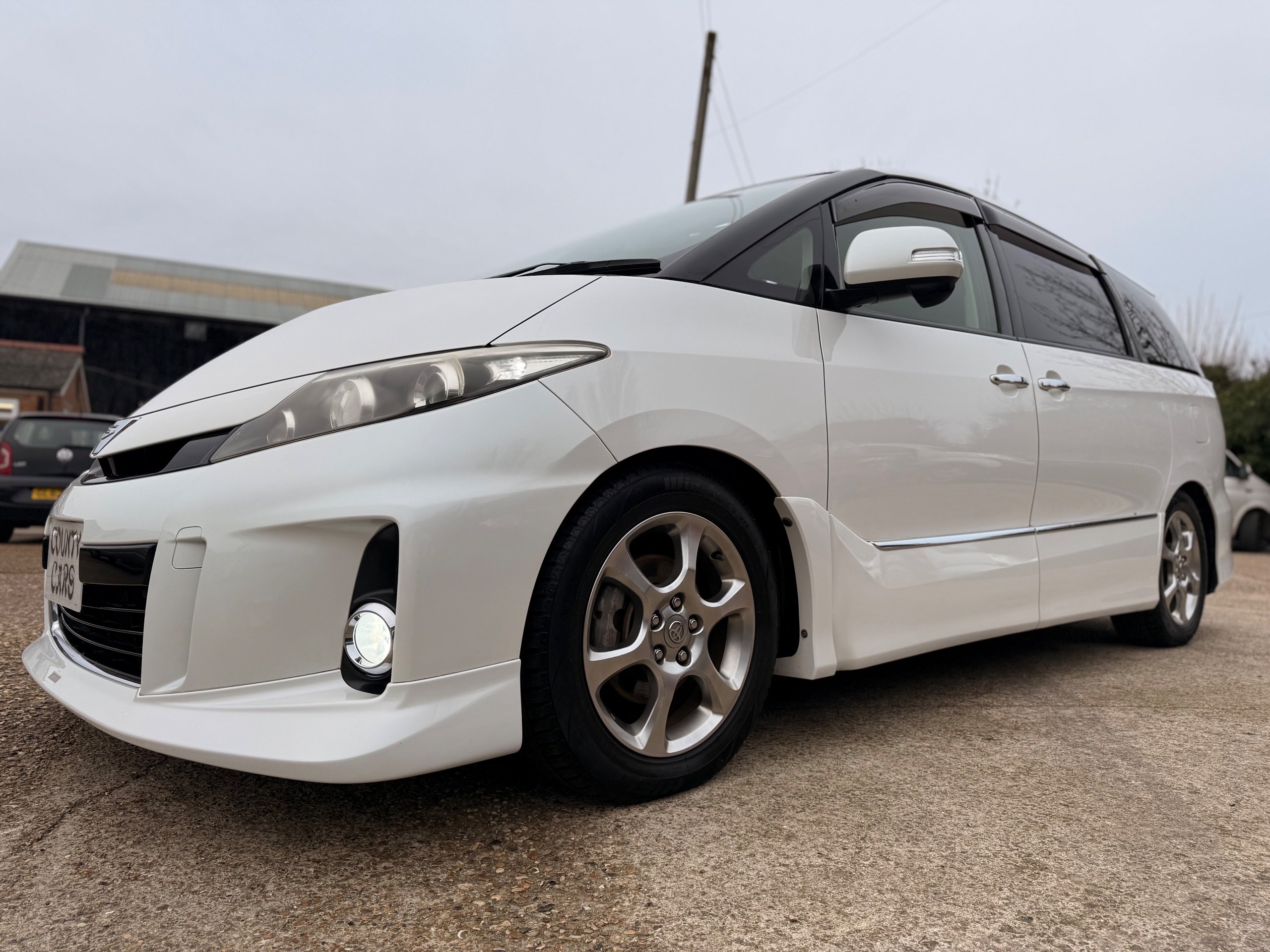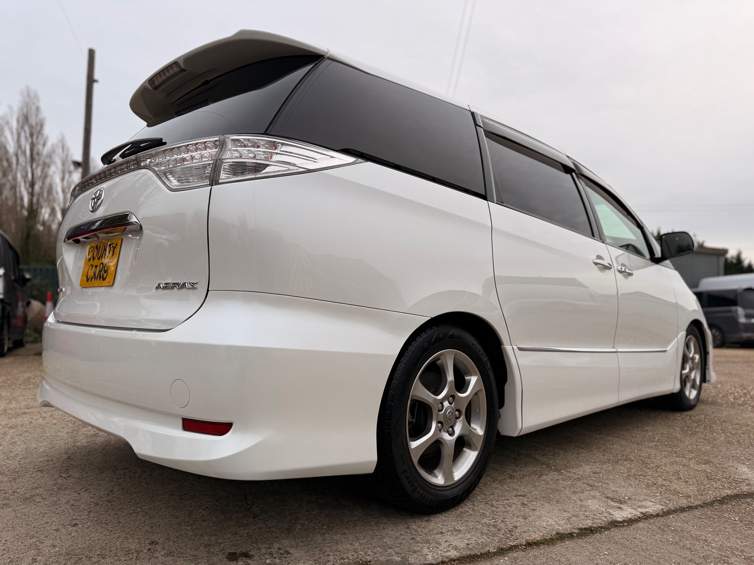 Toyota Estima 2.4 Aeras Premium Edition, 2014-63--Reg, Finished in stunning Unmarked Pearlescent White Paintwork, Front Spots with chrome surrounds, Front TRD Front Lip, Full privacy Glass, Twin Electric Soft Closing Sliding Doors, Twin Sunroofs, Rear Panoramic Roof, Key-less Entry, Unmarked Factory Toyota Alloys, fold away wing mirrors with built in clear indicators, L.E.D back lights, Colour Reversing camera, rear spoiler, Aeras Aero kit, 7 Seater, 7 Unmarked black Half Leather seats, Front seats have armrests, Front cup-holders, The middle row of seats are lounge style seats with twin armrests extra leg rests, The seats can me moved forwards backwards and side to side. Centre table with cup-holders, The rear seats fold away to give access to a huge boot, Push button Start, Front and Rear Air-Con, Front and Rear E/Windows, Isofix Rear Seats, Cruise Control, UK Apple CarPlay Stereo, ULEZ Compliment, Only Covered a Genuine 72,000 Miles With all the Genuine Paperwork from Japan including the Auction sheet and Export certificate and mileage certificate, Fully serviced before delivery or collection, MPH Speedo Conversion