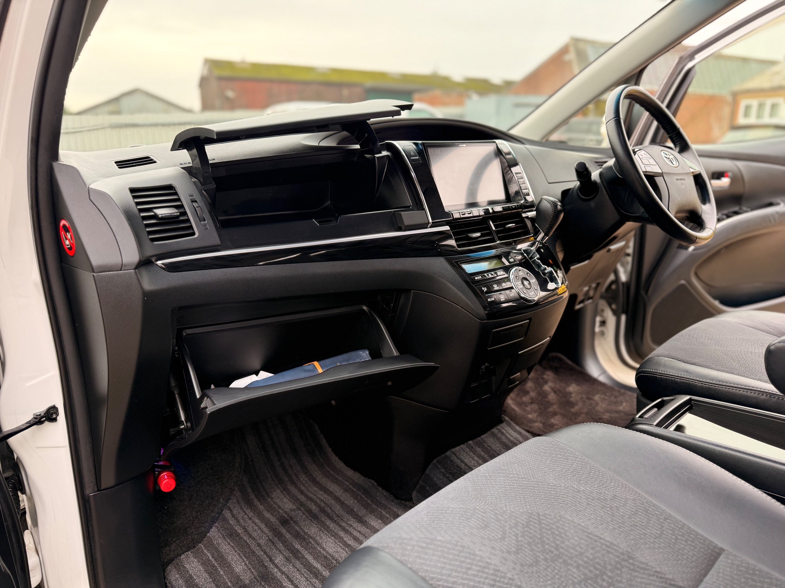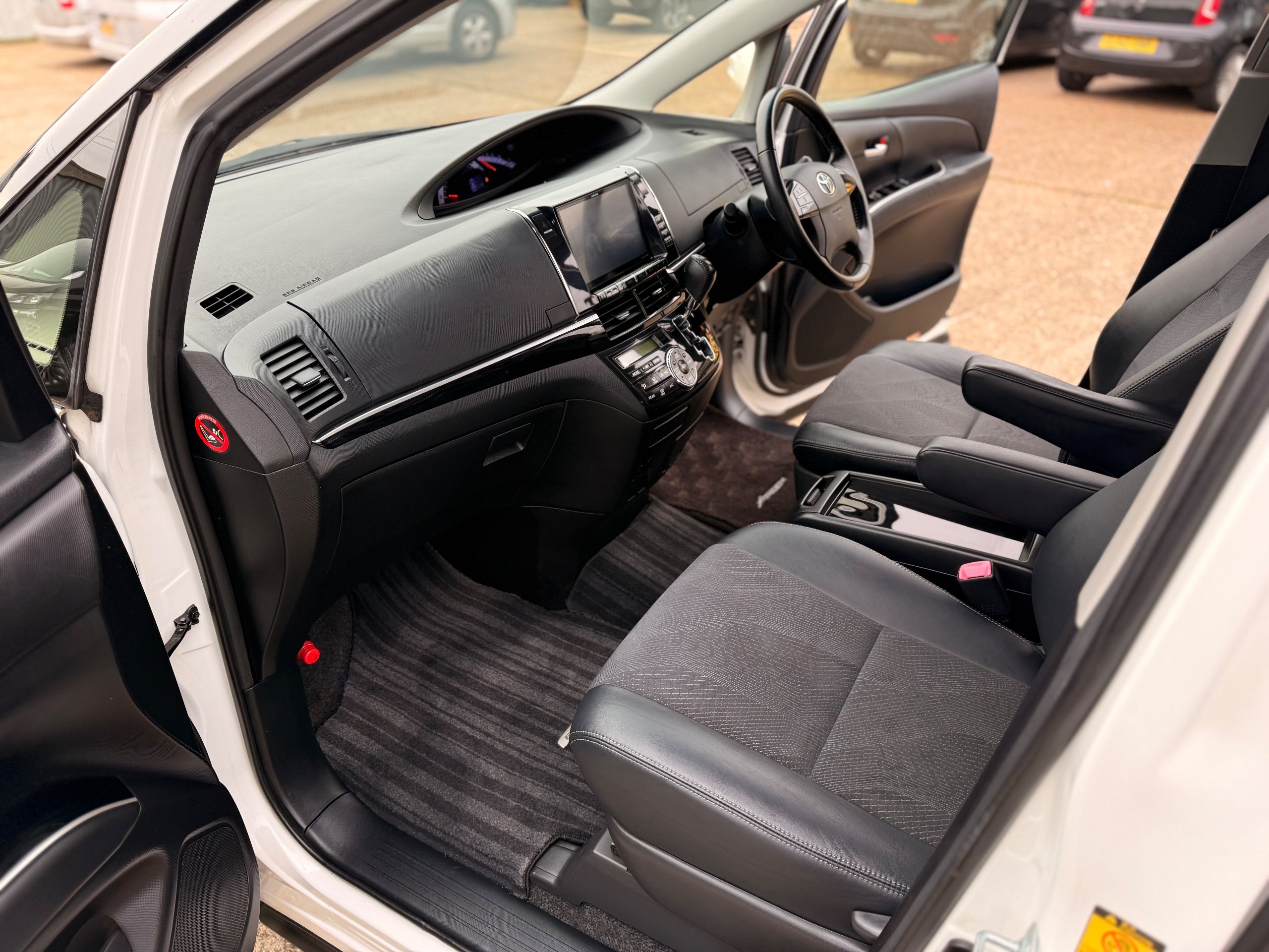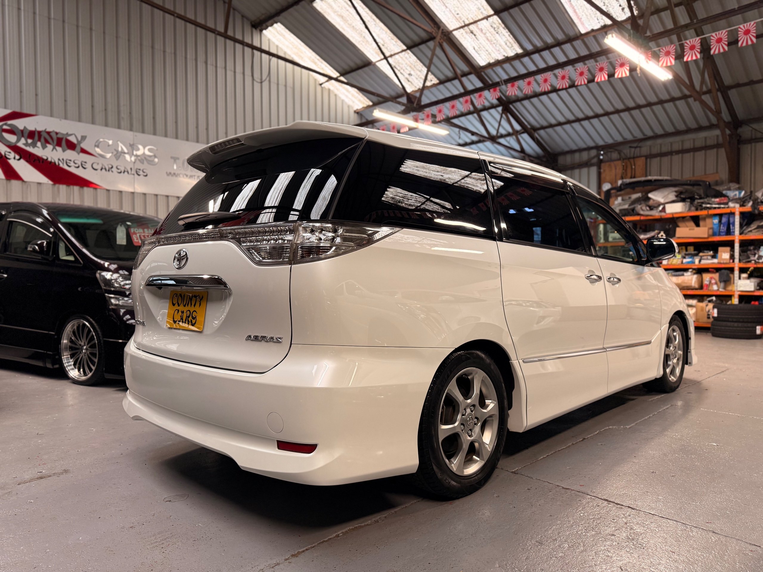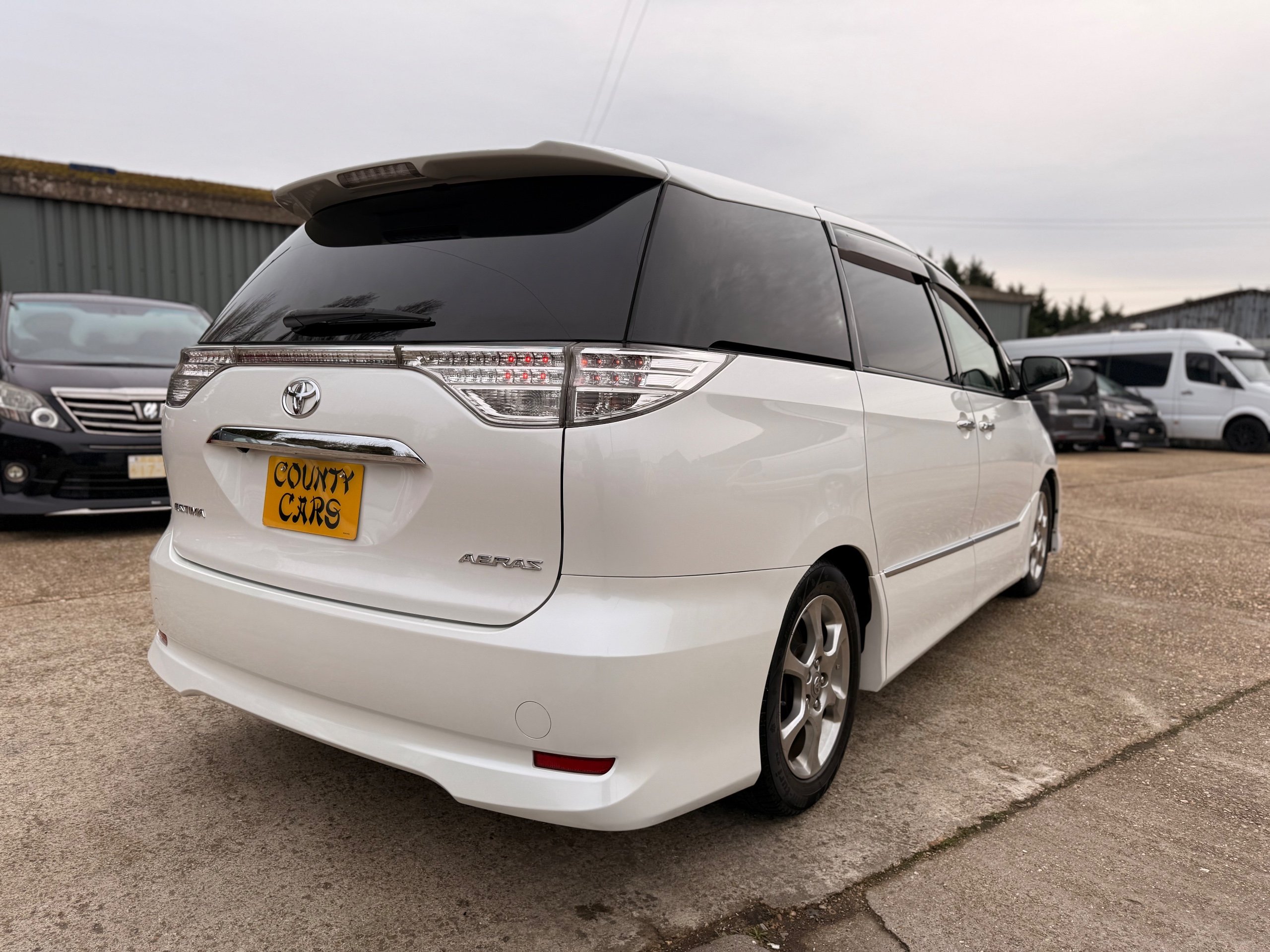 Toyota Estima 2.4 Aeras Premium Edition, 2014-63--Reg, Finished in stunning Unmarked Pearlescent White Paintwork, Front Spots with chrome surrounds, Front TRD Front Lip, Full privacy Glass, Twin Electric Soft Closing Sliding Doors, Twin Sunroofs, Rear Panoramic Roof, Key-less Entry, Unmarked Factory Toyota Alloys, fold away wing mirrors with built in clear indicators, L.E.D back lights, Colour Reversing camera, rear spoiler, Aeras Aero kit, 7 Seater, 7 Unmarked black Half Leather seats, Front seats have armrests, Front cup-holders, The middle row of seats are lounge style seats with twin armrests extra leg rests, The seats can me moved forwards backwards and side to side. Centre table with cup-holders, The rear seats fold away to give access to a huge boot, Push button Start, Front and Rear Air-Con, Front and Rear E/Windows, Isofix Rear Seats, Cruise Control, UK Apple CarPlay Stereo, ULEZ Compliment, Only Covered a Genuine 72,000 Miles With all the Genuine Paperwork from Japan including the Auction sheet and Export certificate and mileage certificate, Fully serviced before delivery or collection, MPH Speedo Conversion