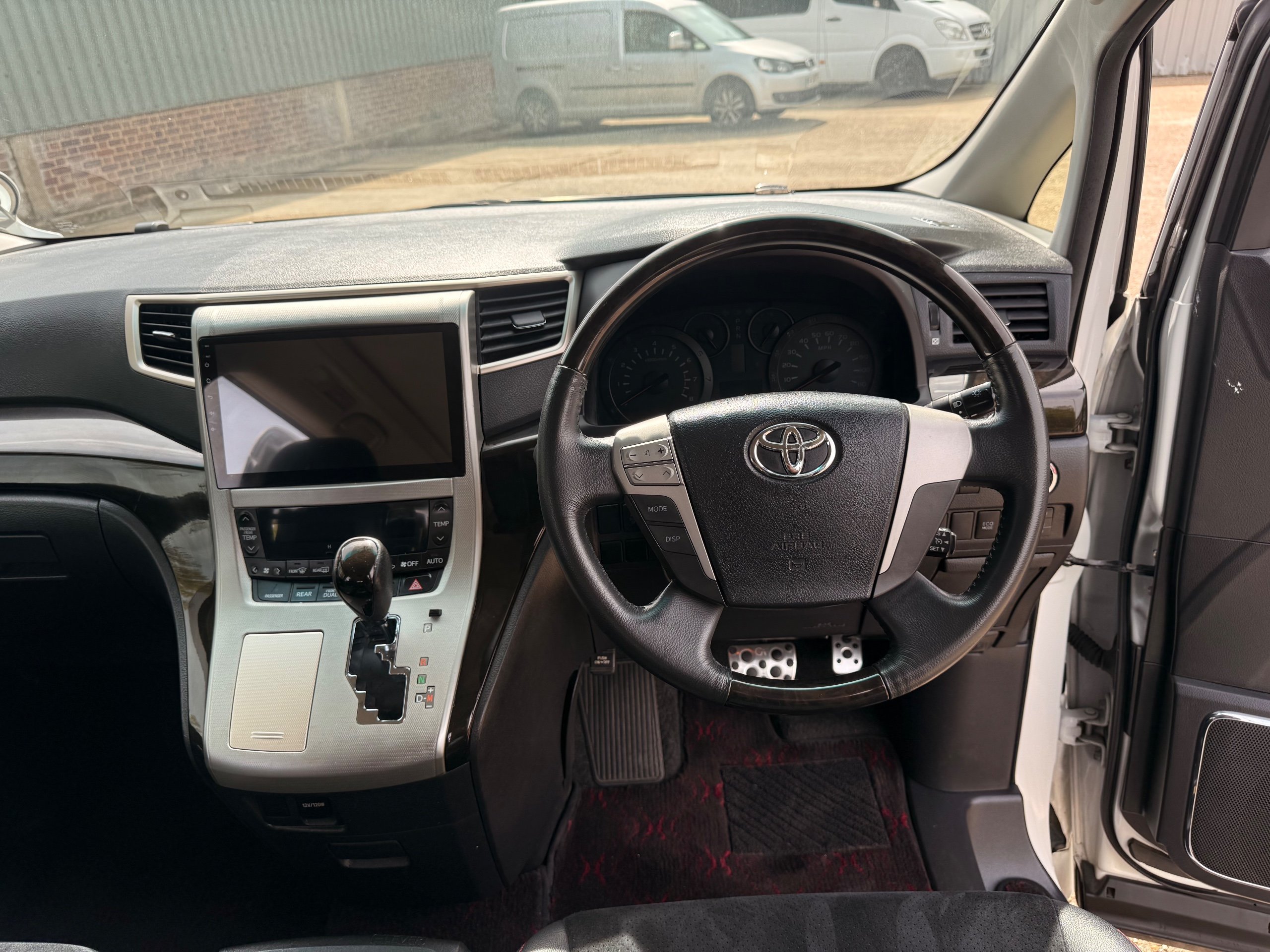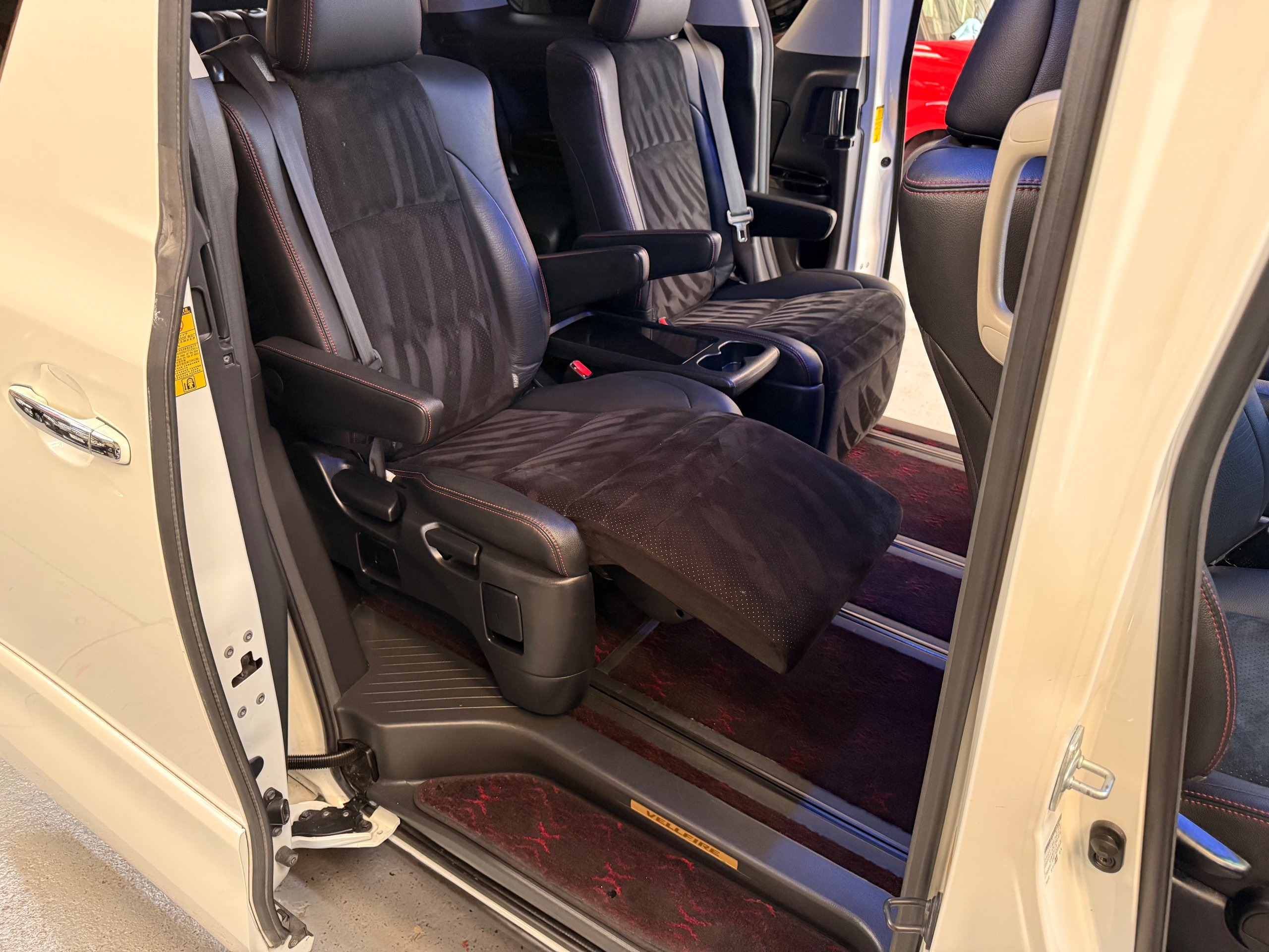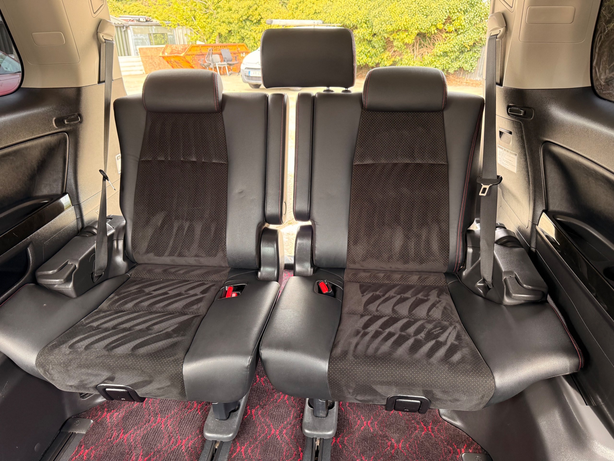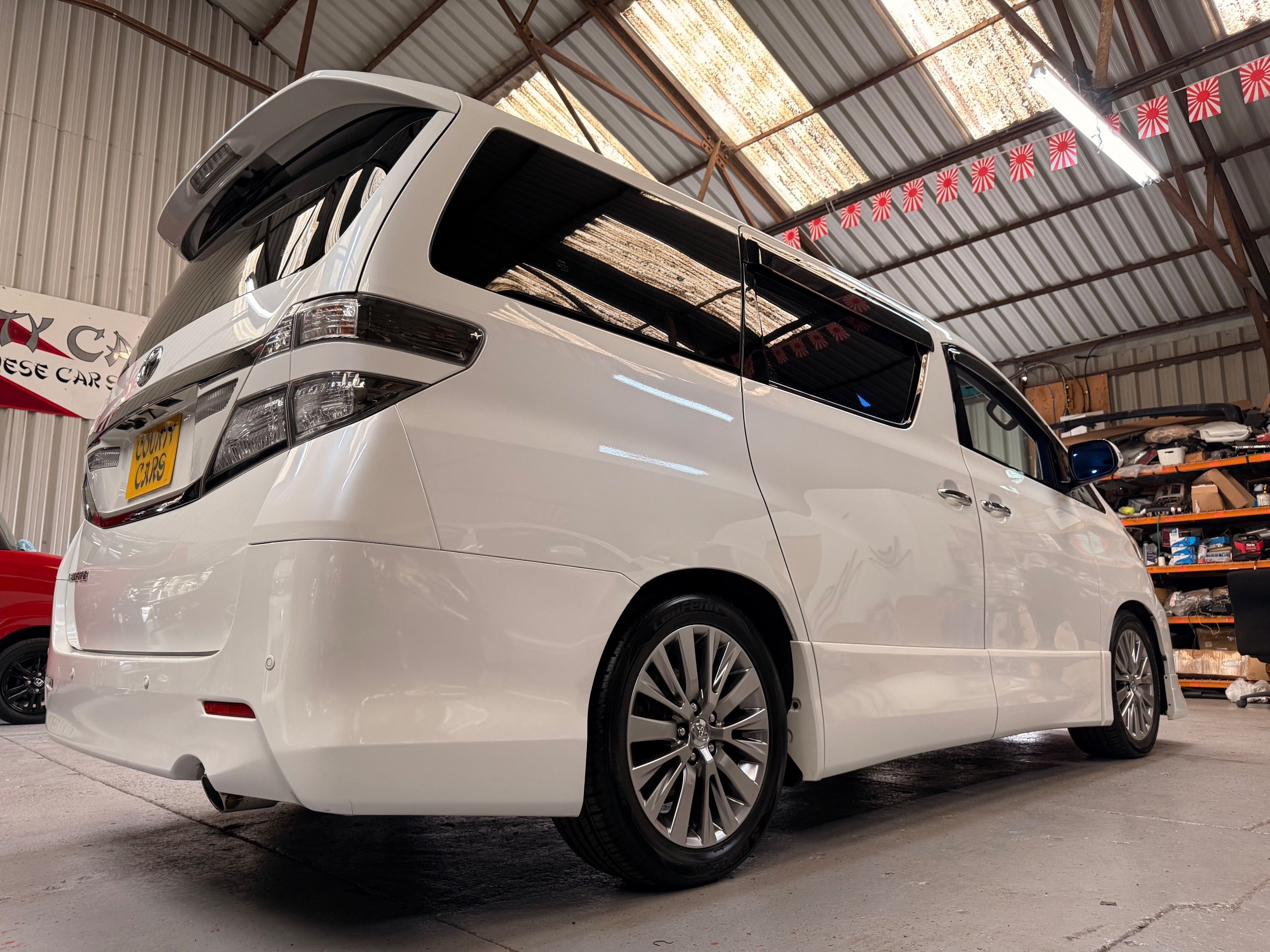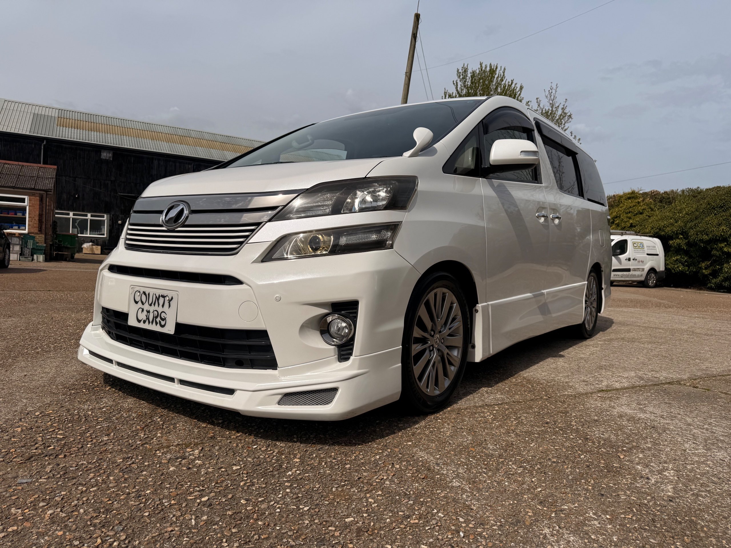 2012 Toyota Vellfire 2.4Z GOLDEN EYES EDITION 2012-62-Reg, Face-lift Edition, Finished in Stunning Pearlescent White paintwork, Twin Electric Soft Closing Sliding Doors, Electric Soft closing Tailgate, Front spots With chrome surrounds, Front Lip, Full Privacy Glass, Rear Spoiler with built in brake light, Unmarked Genuine 18” Golden Eyes dark silver Alloys, Key-less Entry, Key-less start, Golden headlight surround, 7 Seater 7 Unblemished Half leather seats with red stitching, The Front Seats have armrests, Centre console with flip up cup holders, The centre seats are Lounge style seats with extra leg rests and twin armrests on each seat, The seats also slide forwards and backwards and side to side with a folding centre table with built in cup holders, easy access to the rear seats, Isofix centre seats, The rear seats fold away to give way to a large boot, Strip L.E.D lighting, Ambient lighting, Push button Start, Front and Rear parking sensors, Traction Control, Front and Rear Electric windows, Colour reversing camera, Isofix points, Stereo System with Apple CarPlay, Red and Black Golden eyes floor mats, Cruise Control, Only covered a Genuine 68,000 Miles With All the Genuine paperwork from Japan including the auction sheet and D-Reg form which both prove the mileage and condition before it left Japan