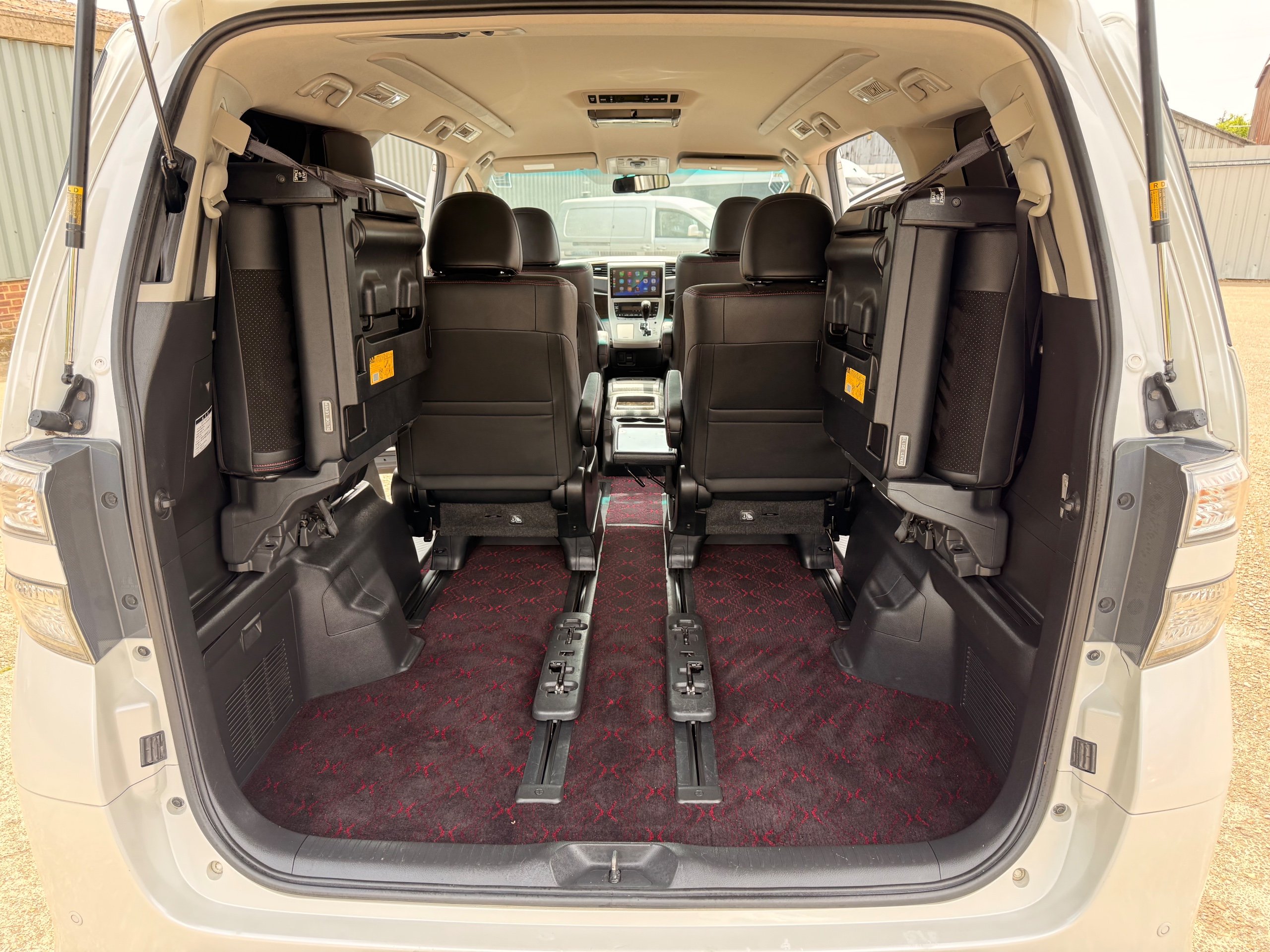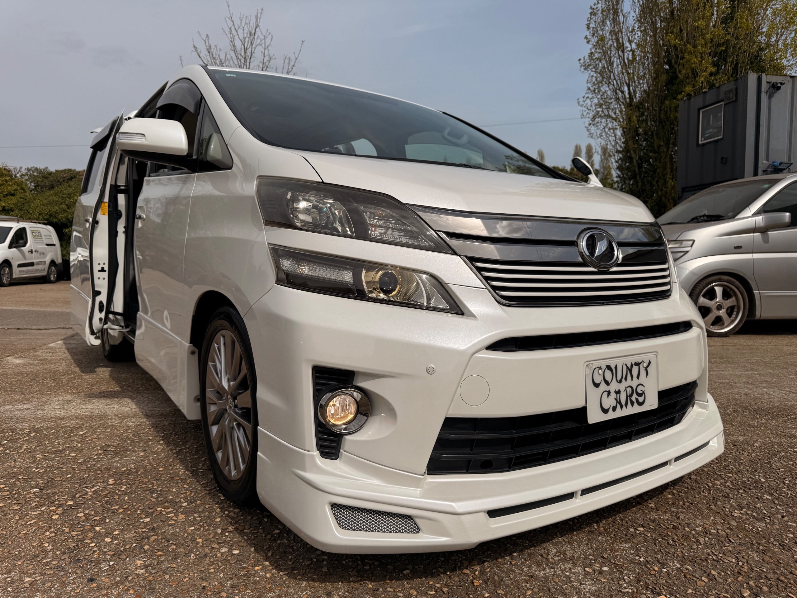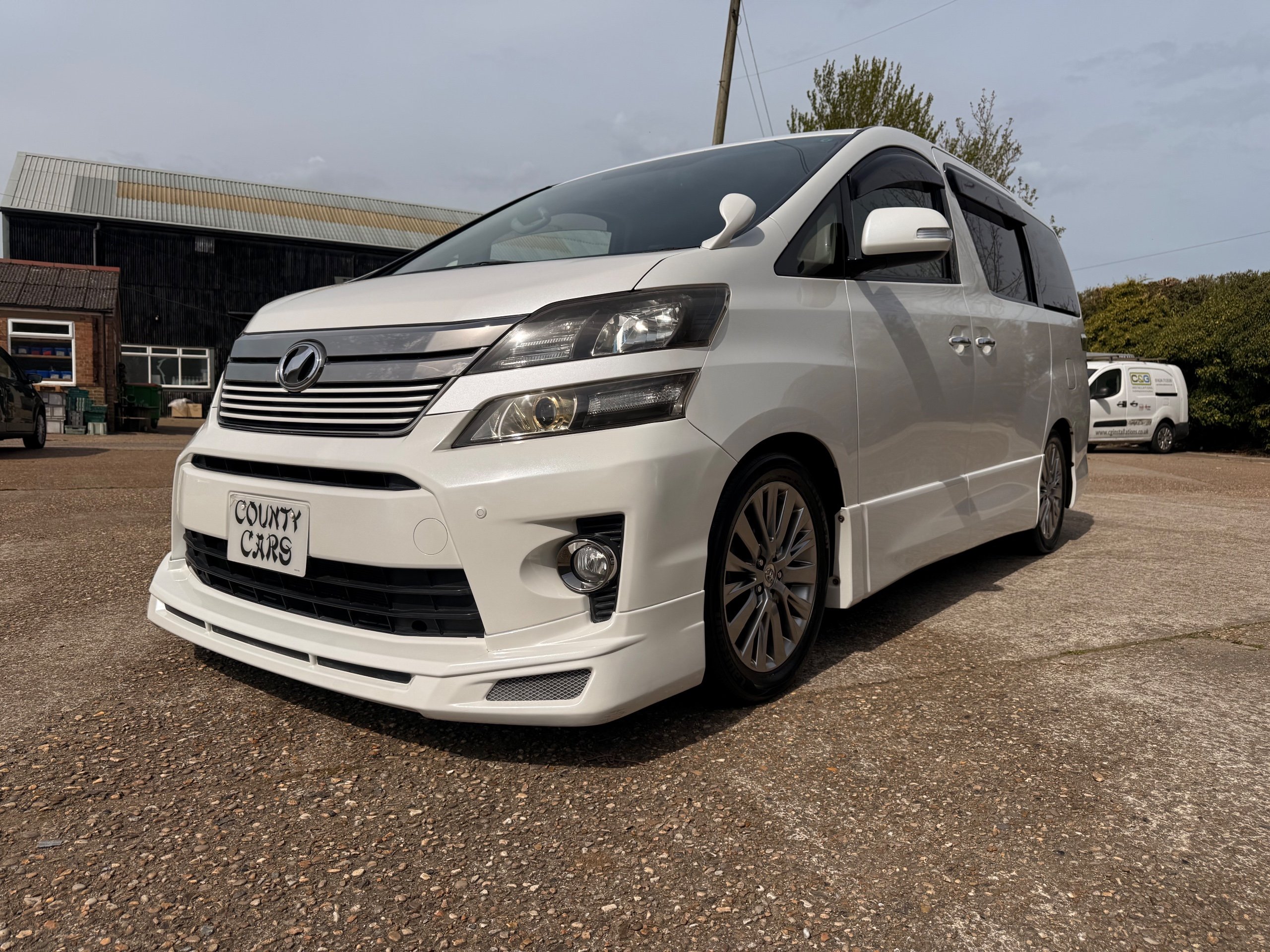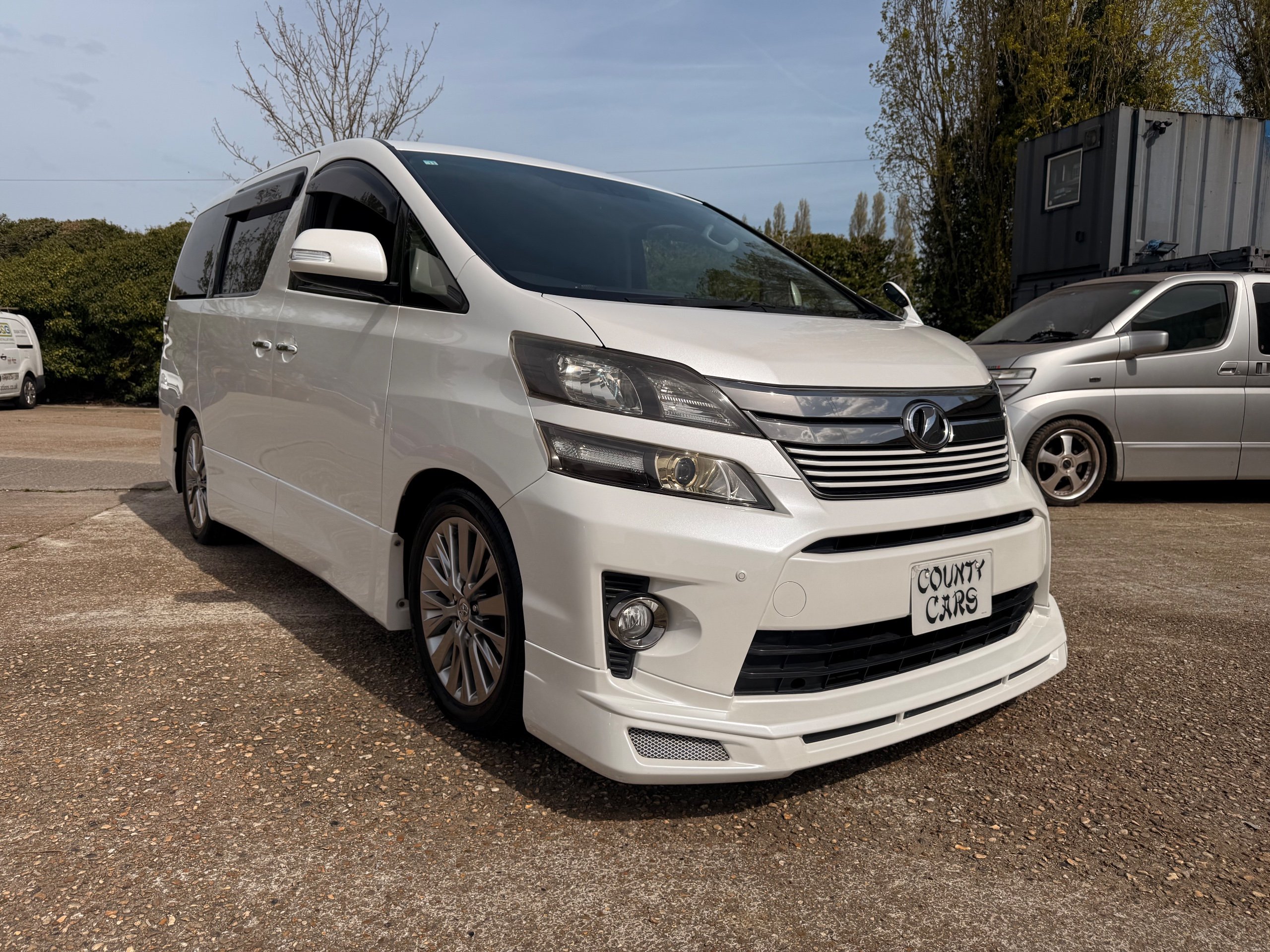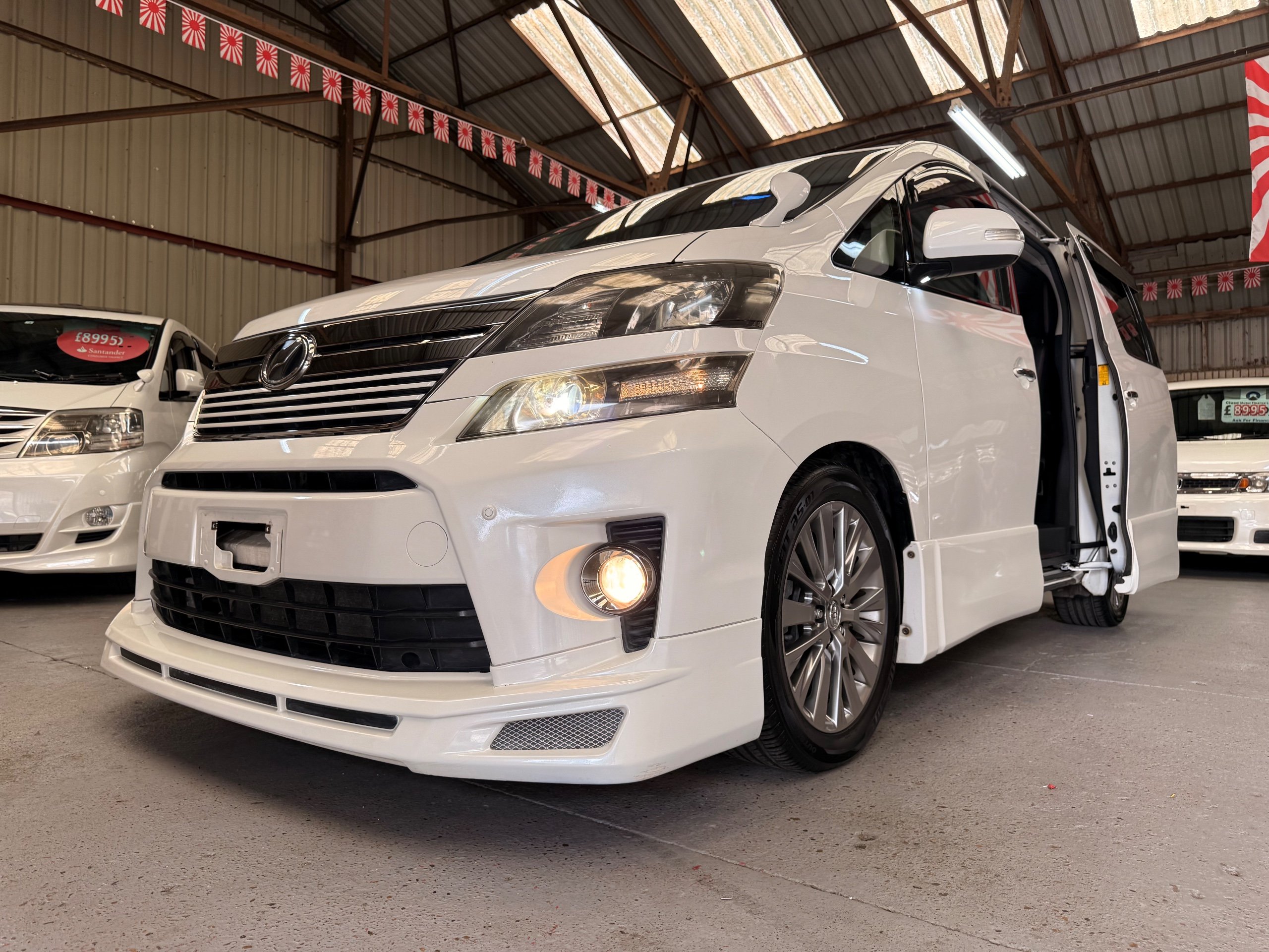 2012 Toyota Vellfire 2.4Z GOLDEN EYES EDITION 2012-62-Reg, Face-lift Edition, Finished in Stunning Pearlescent White paintwork, Twin Electric Soft Closing Sliding Doors, Electric Soft closing Tailgate, Front spots With chrome surrounds, Front Lip, Full Privacy Glass, Rear Spoiler with built in brake light, Unmarked Genuine 18” Golden Eyes dark silver Alloys, Key-less Entry, Key-less start, Golden headlight surround, 7 Seater 7 Unblemished Half leather seats with red stitching, The Front Seats have armrests, Centre console with flip up cup holders, The centre seats are Lounge style seats with extra leg rests and twin armrests on each seat, The seats also slide forwards and backwards and side to side with a folding centre table with built in cup holders, easy access to the rear seats, Isofix centre seats, The rear seats fold away to give way to a large boot, Strip L.E.D lighting, Ambient lighting, Push button Start, Front and Rear parking sensors, Traction Control, Front and Rear Electric windows, Colour reversing camera, Isofix points, Stereo System with Apple CarPlay, Red and Black Golden eyes floor mats, Cruise Control, Only covered a Genuine 68,000 Miles With All the Genuine paperwork from Japan including the auction sheet and D-Reg form which both prove the mileage and condition before it left Japan