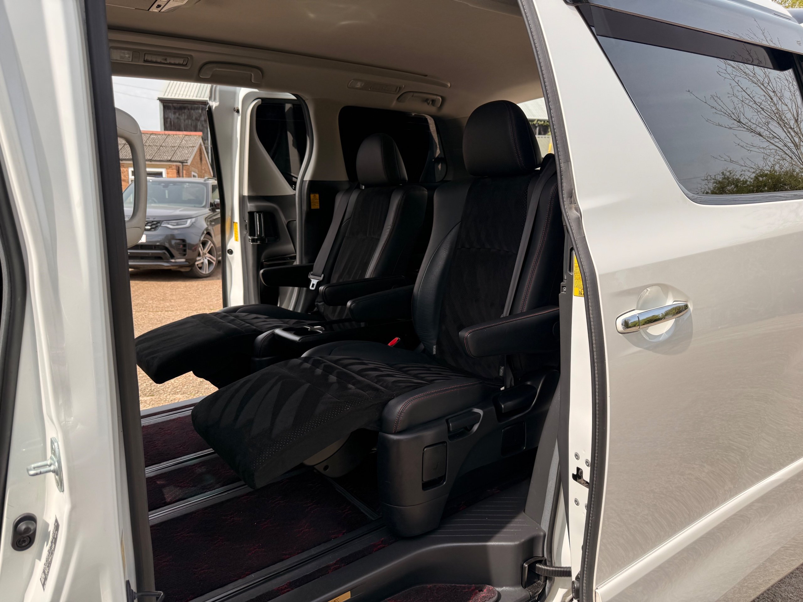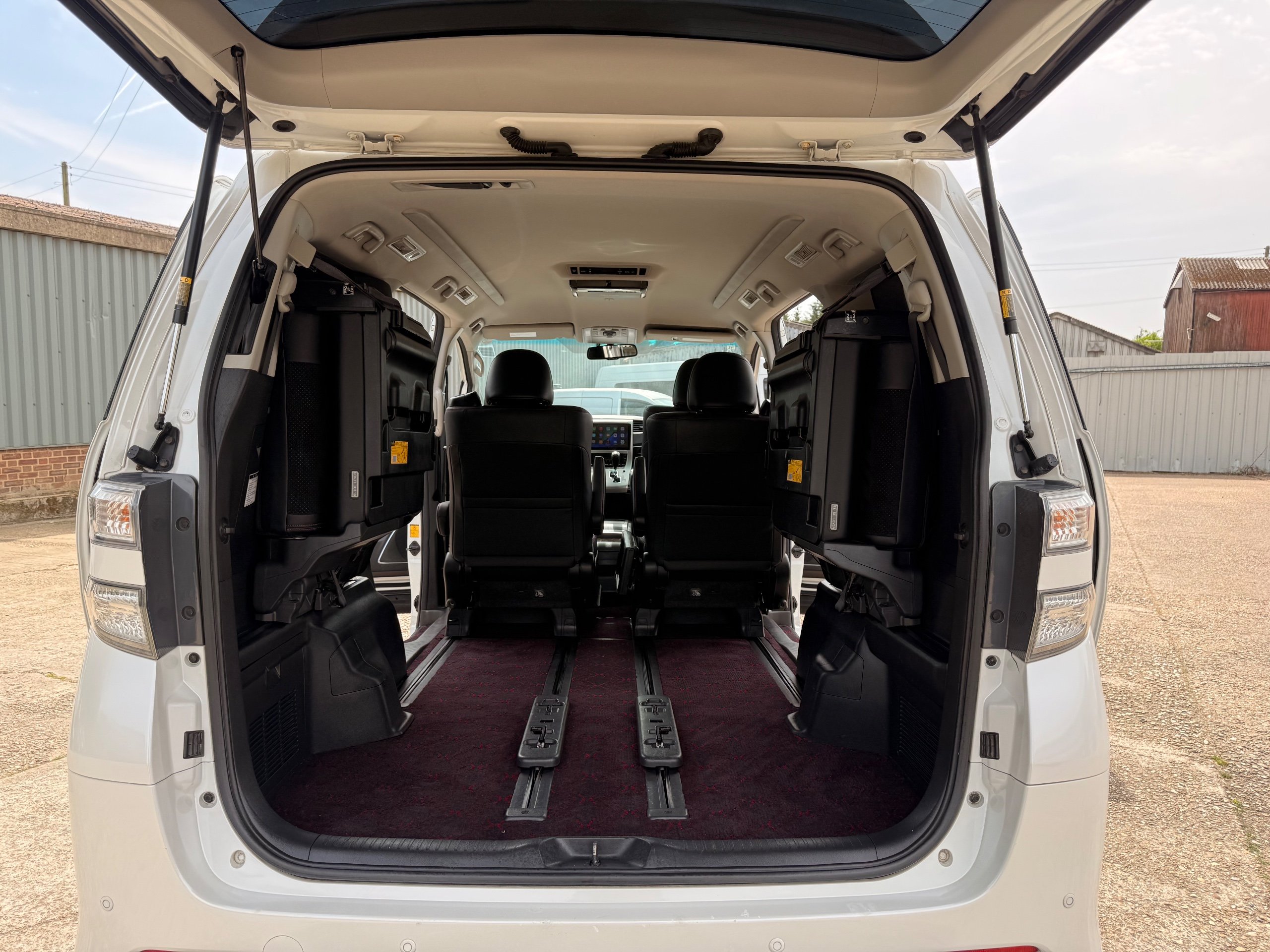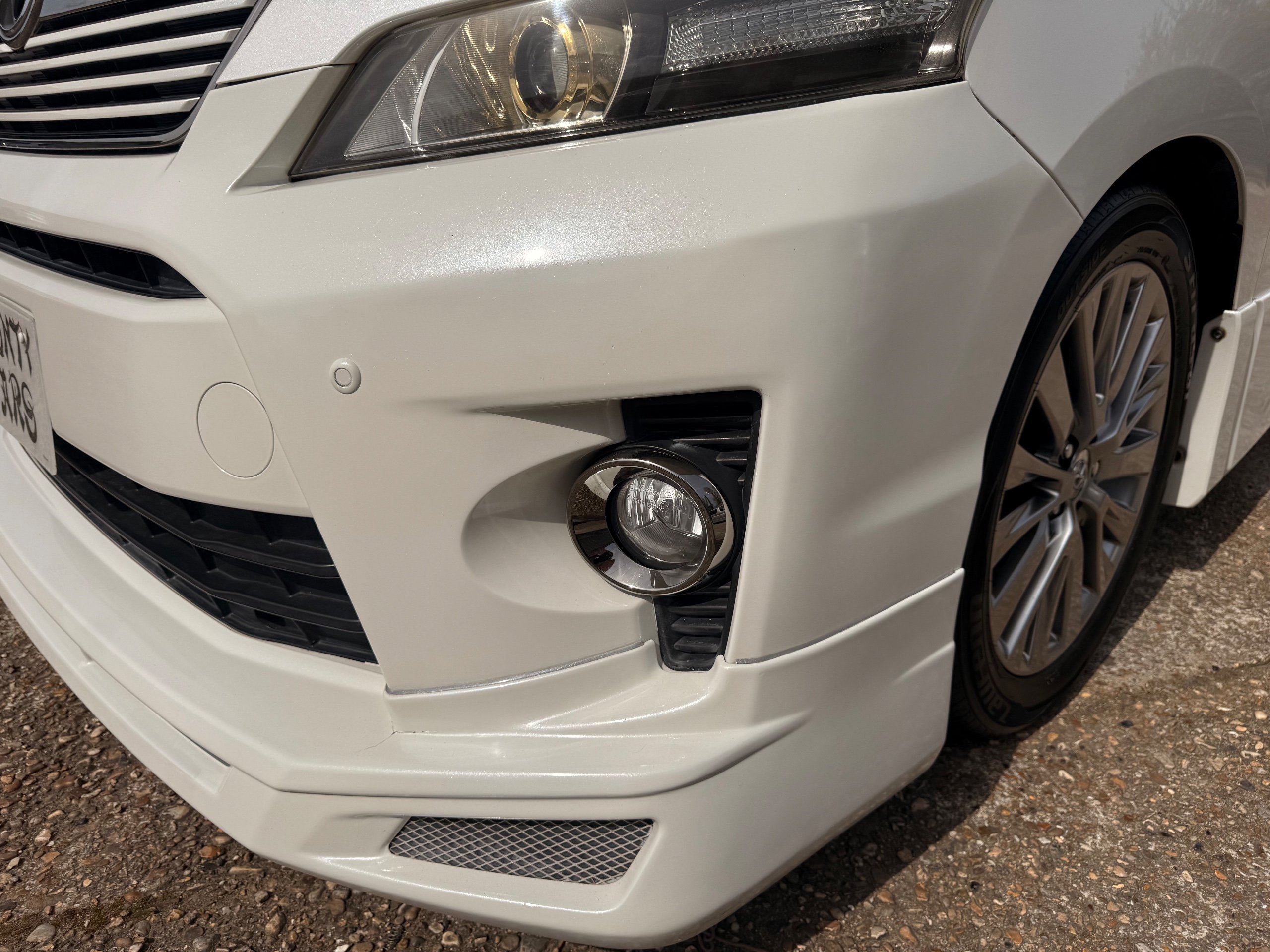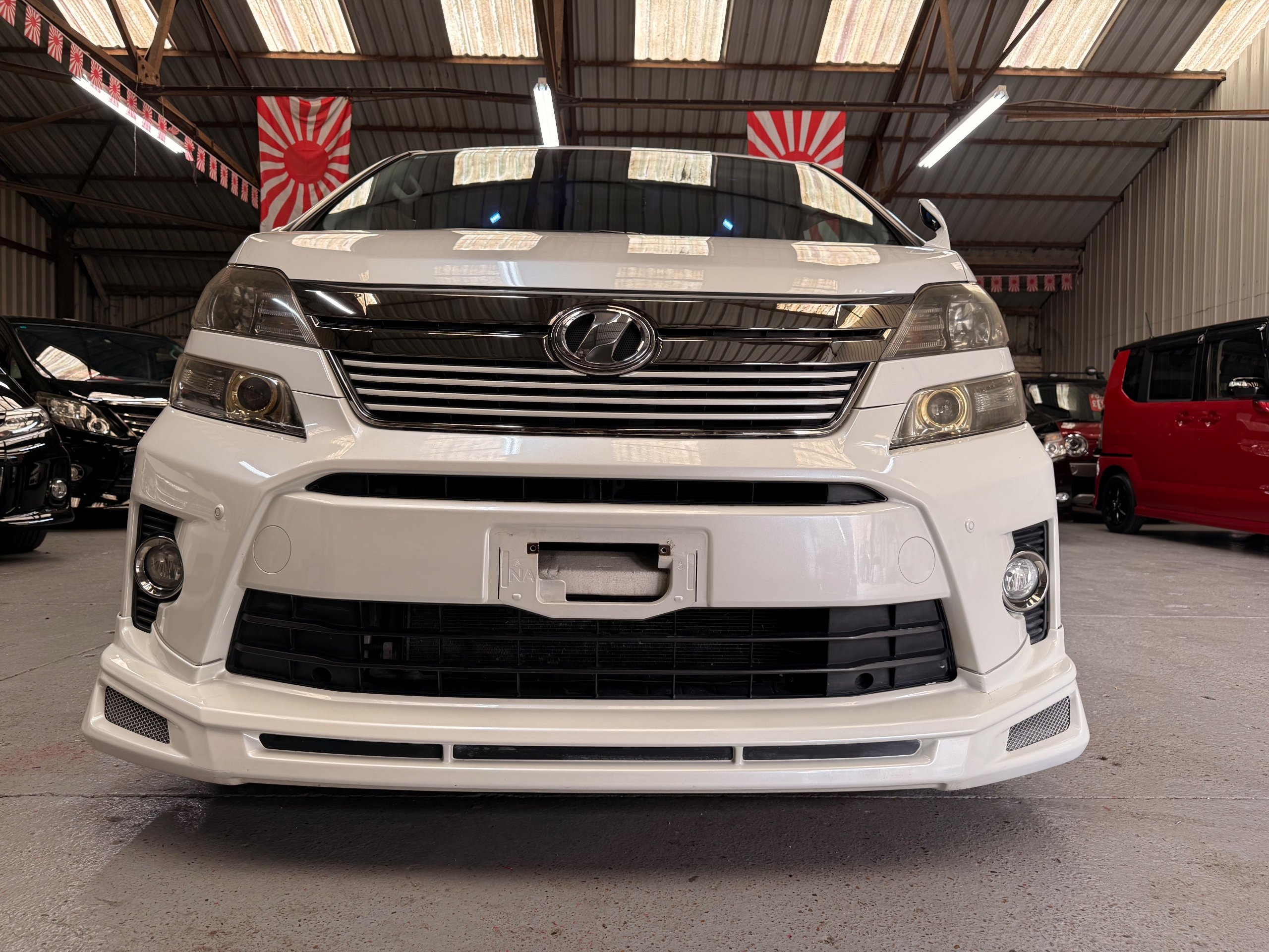 2012 Toyota Vellfire 2.4Z GOLDEN EYES EDITION 2012-62-Reg, Face-lift Edition, Finished in Stunning Pearlescent White paintwork, Twin Electric Soft Closing Sliding Doors, Electric Soft closing Tailgate, Front spots With chrome surrounds, Front Lip, Full Privacy Glass, Rear Spoiler with built in brake light, Unmarked Genuine 18” Golden Eyes dark silver Alloys, Key-less Entry, Key-less start, Golden headlight surround, 7 Seater 7 Unblemished Half leather seats with red stitching, The Front Seats have armrests, Centre console with flip up cup holders, The centre seats are Lounge style seats with extra leg rests and twin armrests on each seat, The seats also slide forwards and backwards and side to side with a folding centre table with built in cup holders, easy access to the rear seats, Isofix centre seats, The rear seats fold away to give way to a large boot, Strip L.E.D lighting, Ambient lighting, Push button Start, Front and Rear parking sensors, Traction Control, Front and Rear Electric windows, Colour reversing camera, Isofix points, Stereo System with Apple CarPlay, Red and Black Golden eyes floor mats, Cruise Control, Only covered a Genuine 68,000 Miles With All the Genuine paperwork from Japan including the auction sheet and D-Reg form which both prove the mileage and condition before it left Japan
