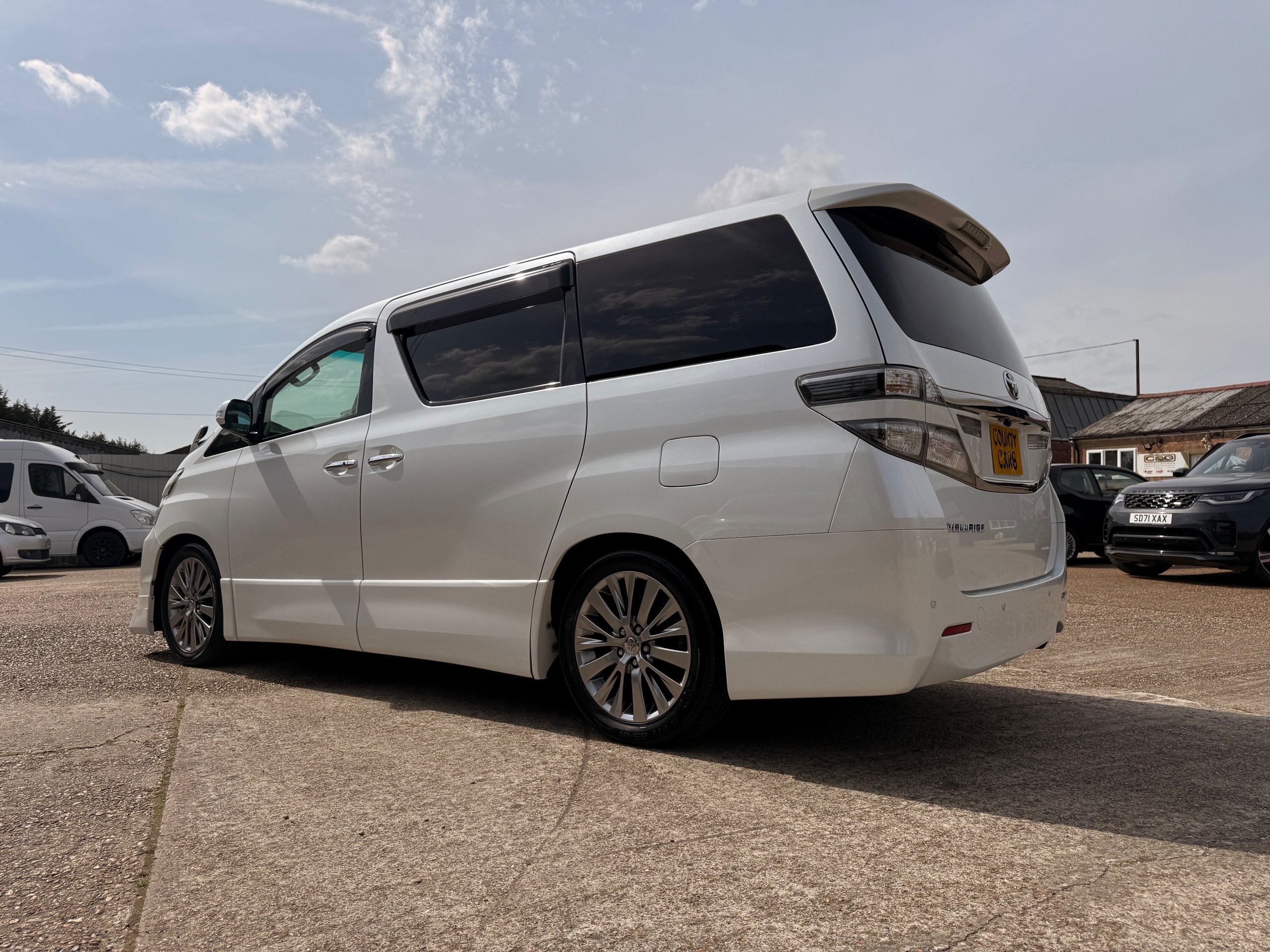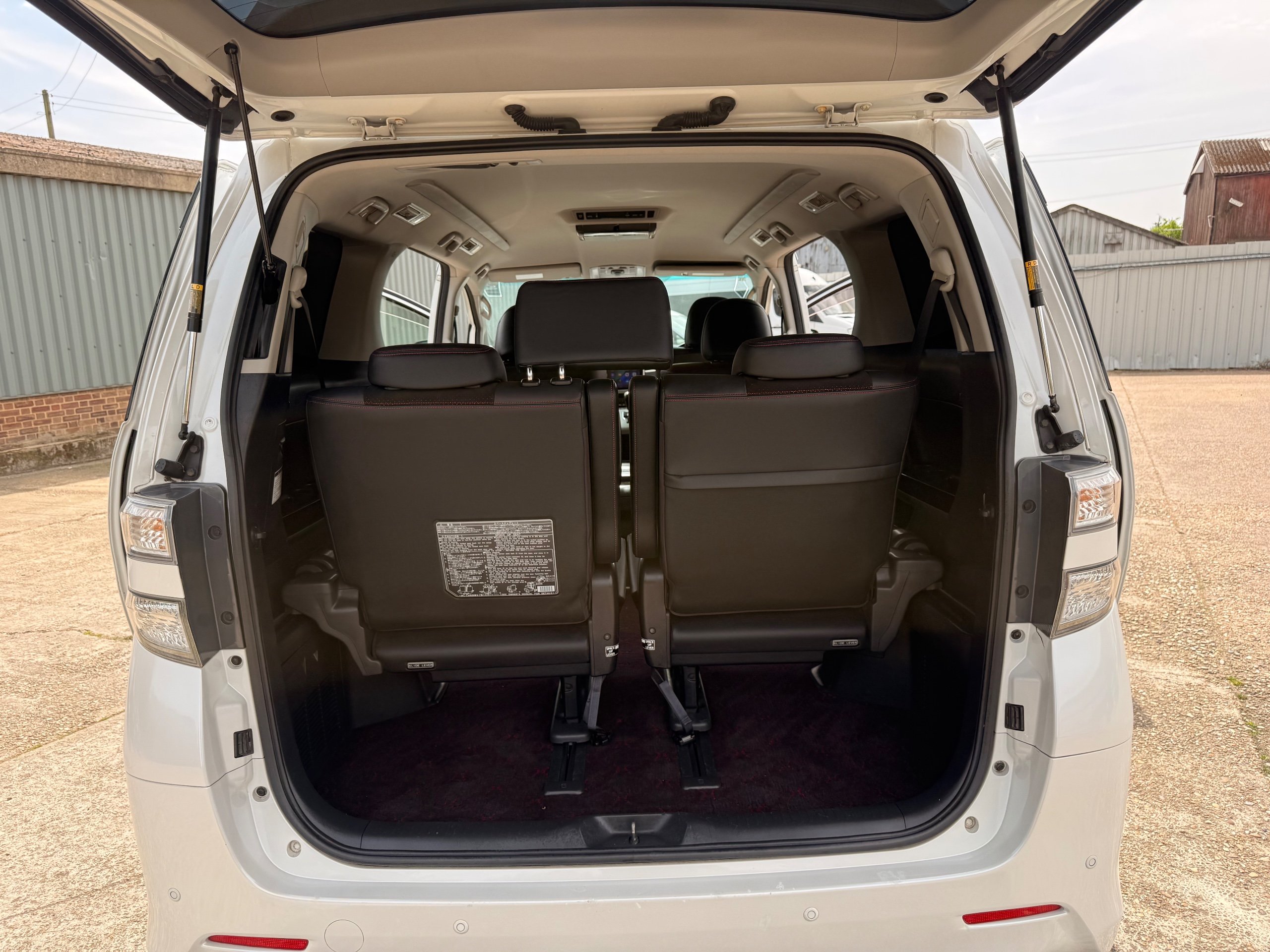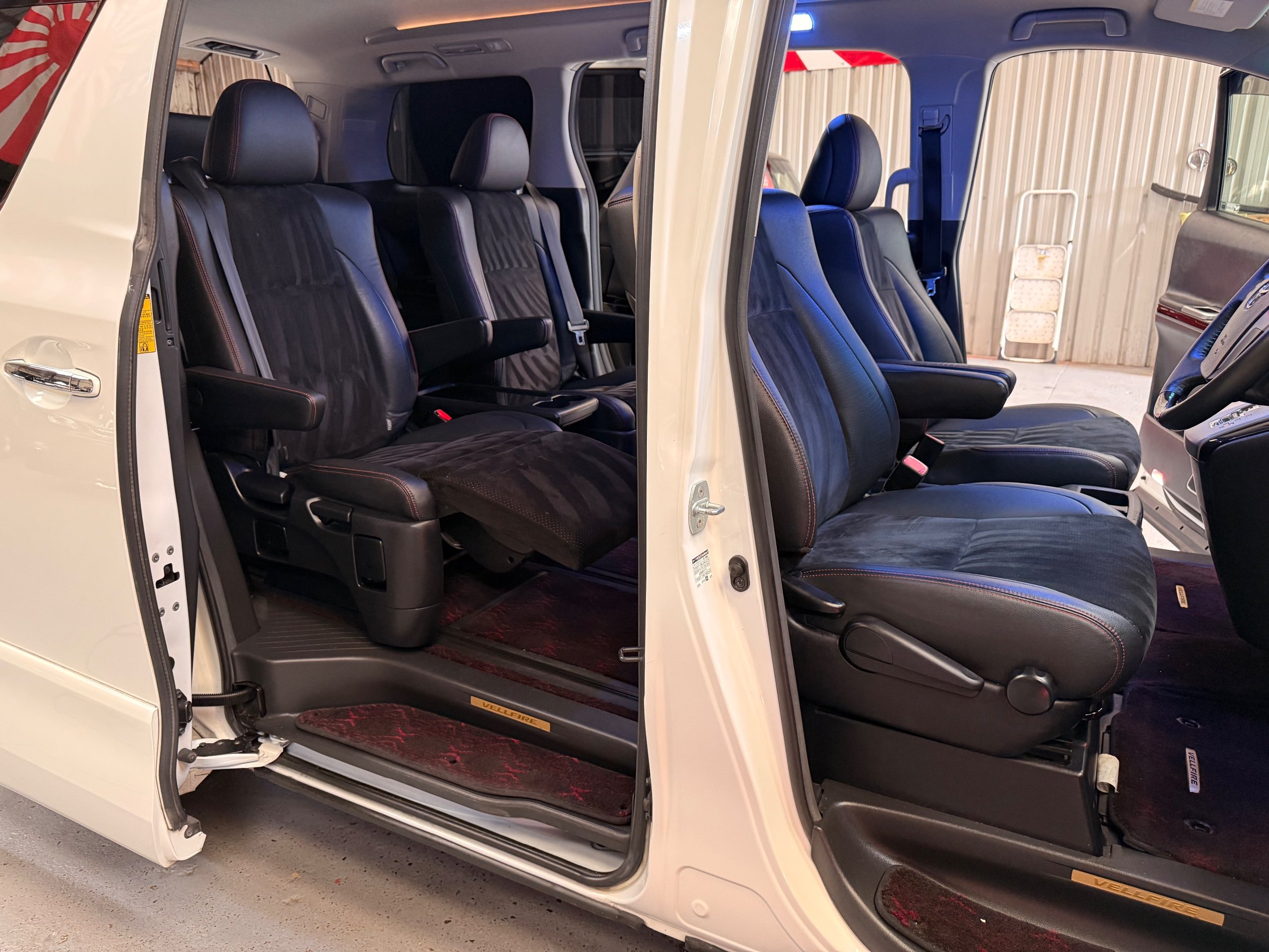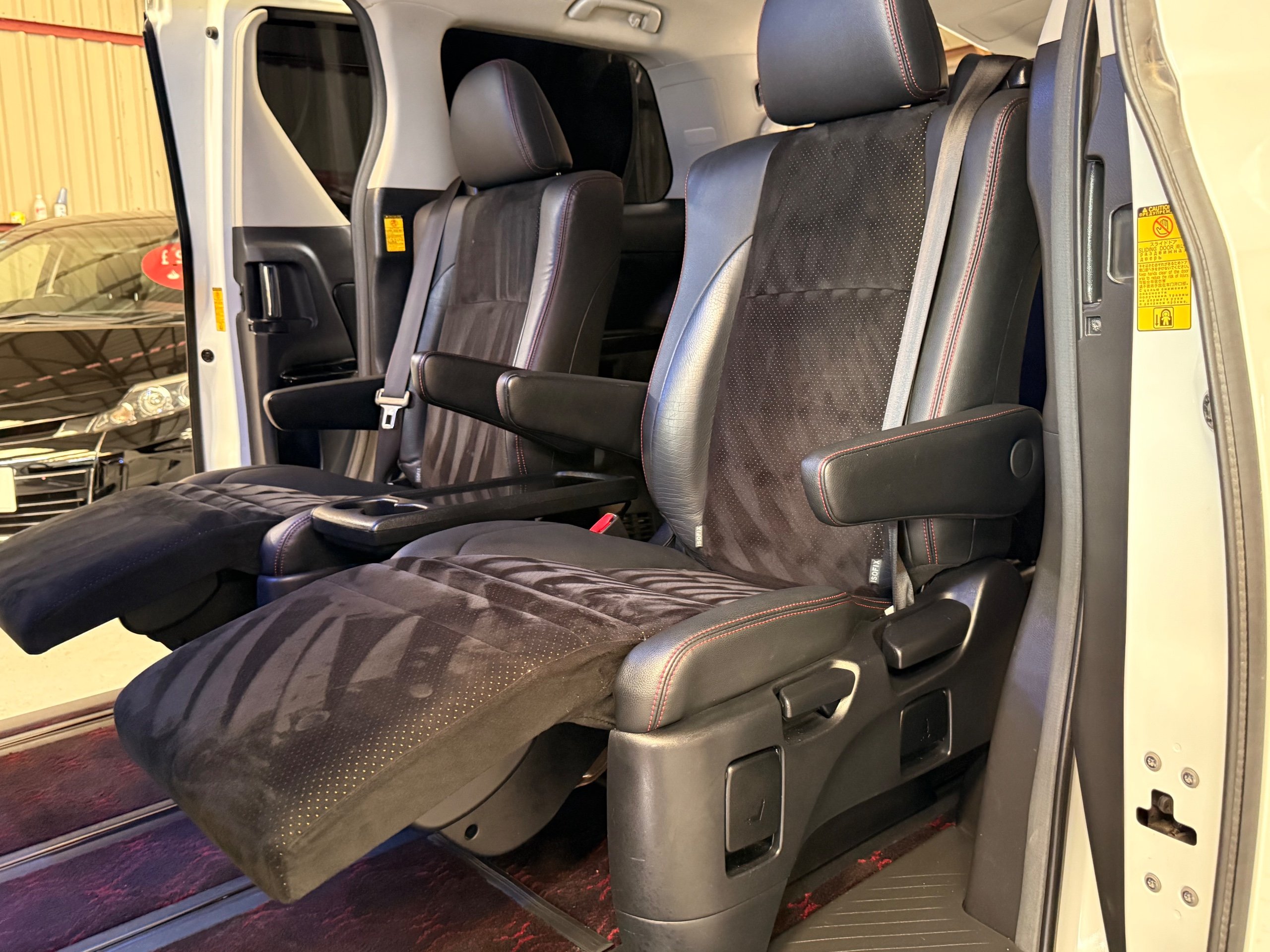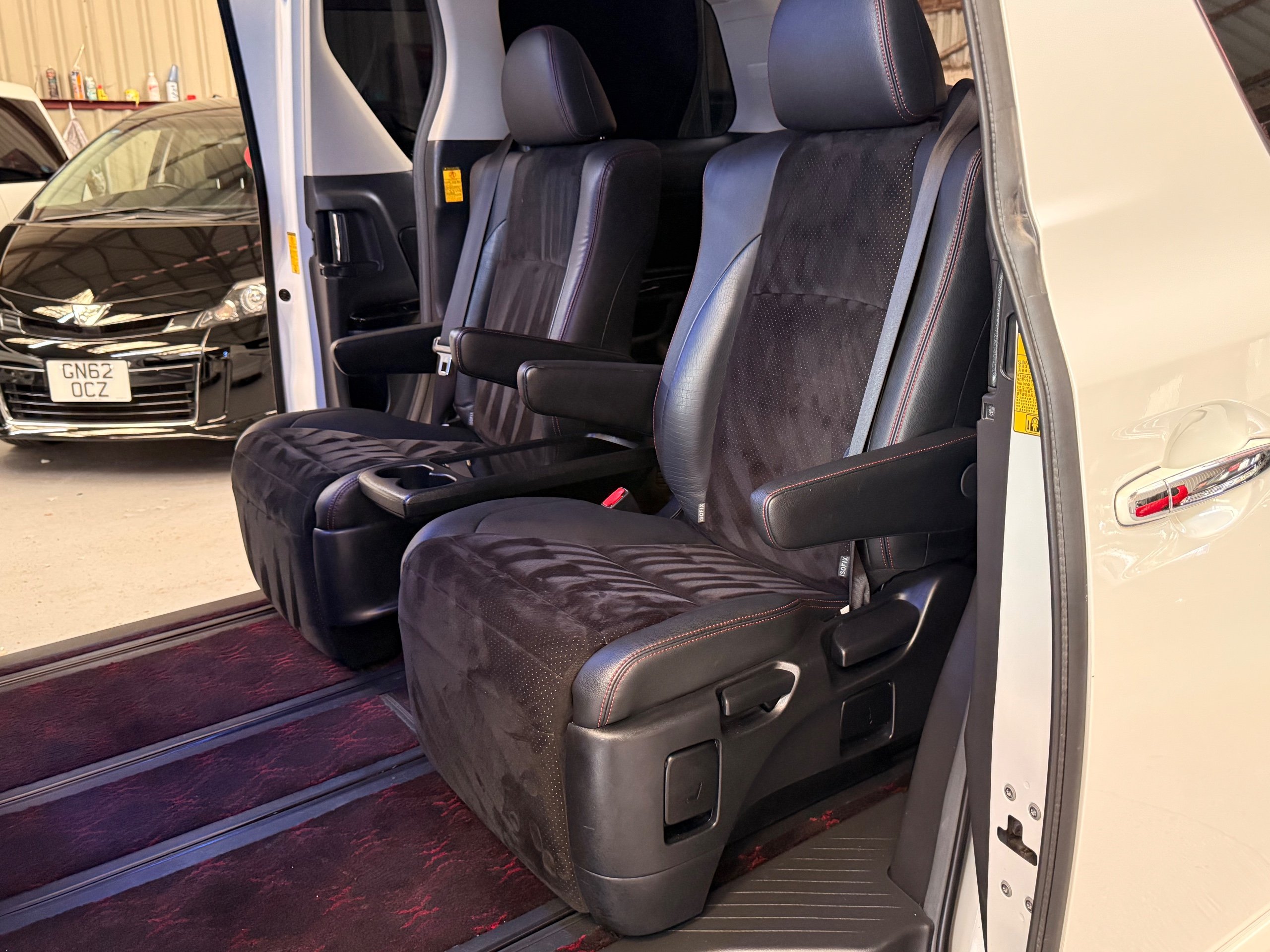 2012 Toyota Vellfire 2.4Z GOLDEN EYES EDITION 2012-62-Reg, Face-lift Edition, Finished in Stunning Pearlescent White paintwork, Twin Electric Soft Closing Sliding Doors, Electric Soft closing Tailgate, Front spots With chrome surrounds, Front Lip, Full Privacy Glass, Rear Spoiler with built in brake light, Unmarked Genuine 18” Golden Eyes dark silver Alloys, Key-less Entry, Key-less start, Golden headlight surround, 7 Seater 7 Unblemished Half leather seats with red stitching, The Front Seats have armrests, Centre console with flip up cup holders, The centre seats are Lounge style seats with extra leg rests and twin armrests on each seat, The seats also slide forwards and backwards and side to side with a folding centre table with built in cup holders, easy access to the rear seats, Isofix centre seats, The rear seats fold away to give way to a large boot, Strip L.E.D lighting, Ambient lighting, Push button Start, Front and Rear parking sensors, Traction Control, Front and Rear Electric windows, Colour reversing camera, Isofix points, Stereo System with Apple CarPlay, Red and Black Golden eyes floor mats, Cruise Control, Only covered a Genuine 68,000 Miles With All the Genuine paperwork from Japan including the auction sheet and D-Reg form which both prove the mileage and condition before it left Japan