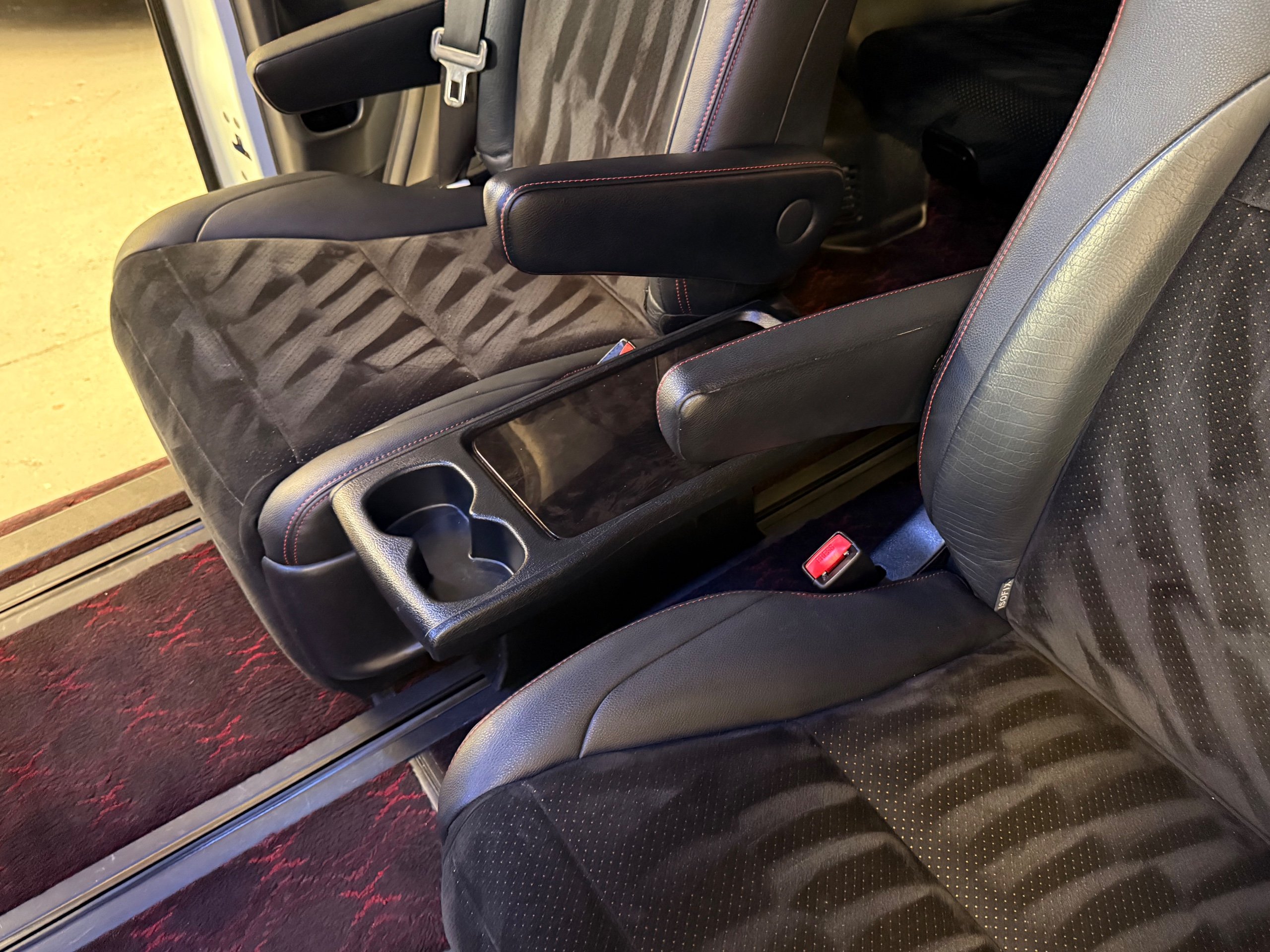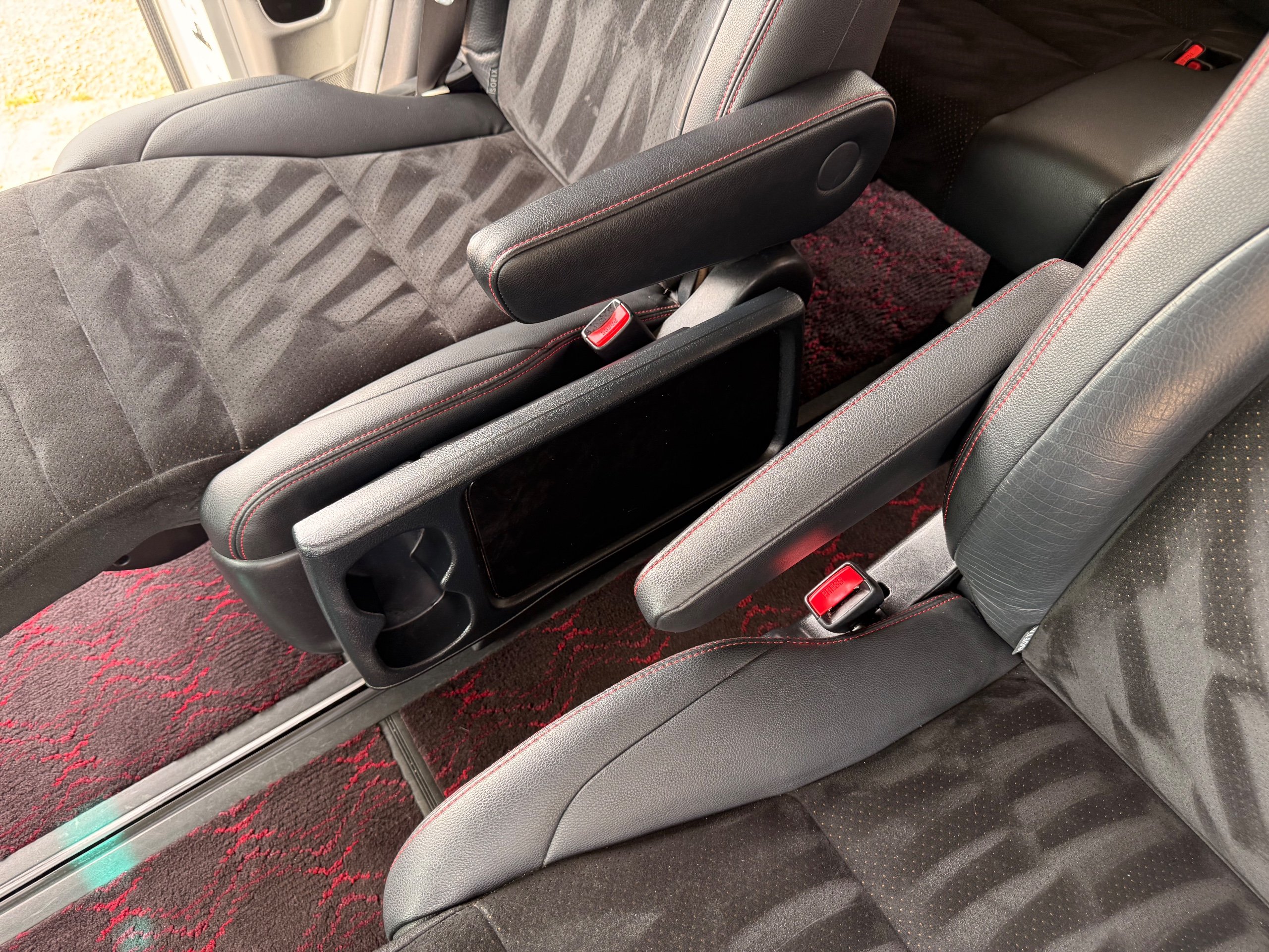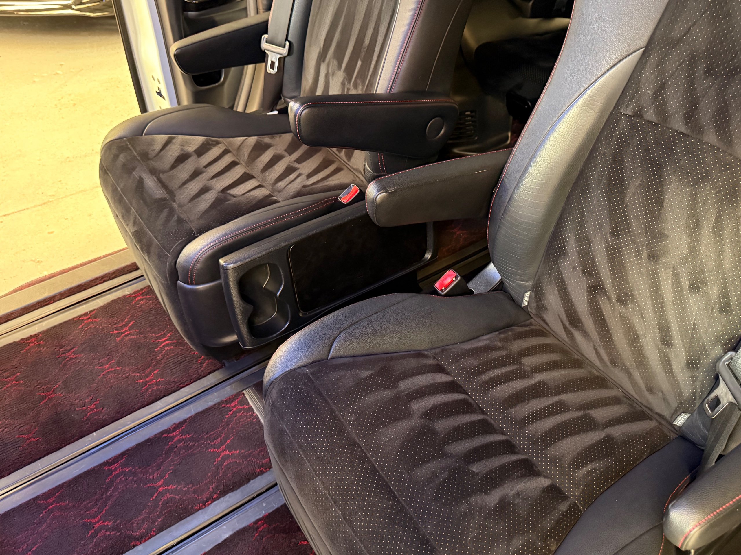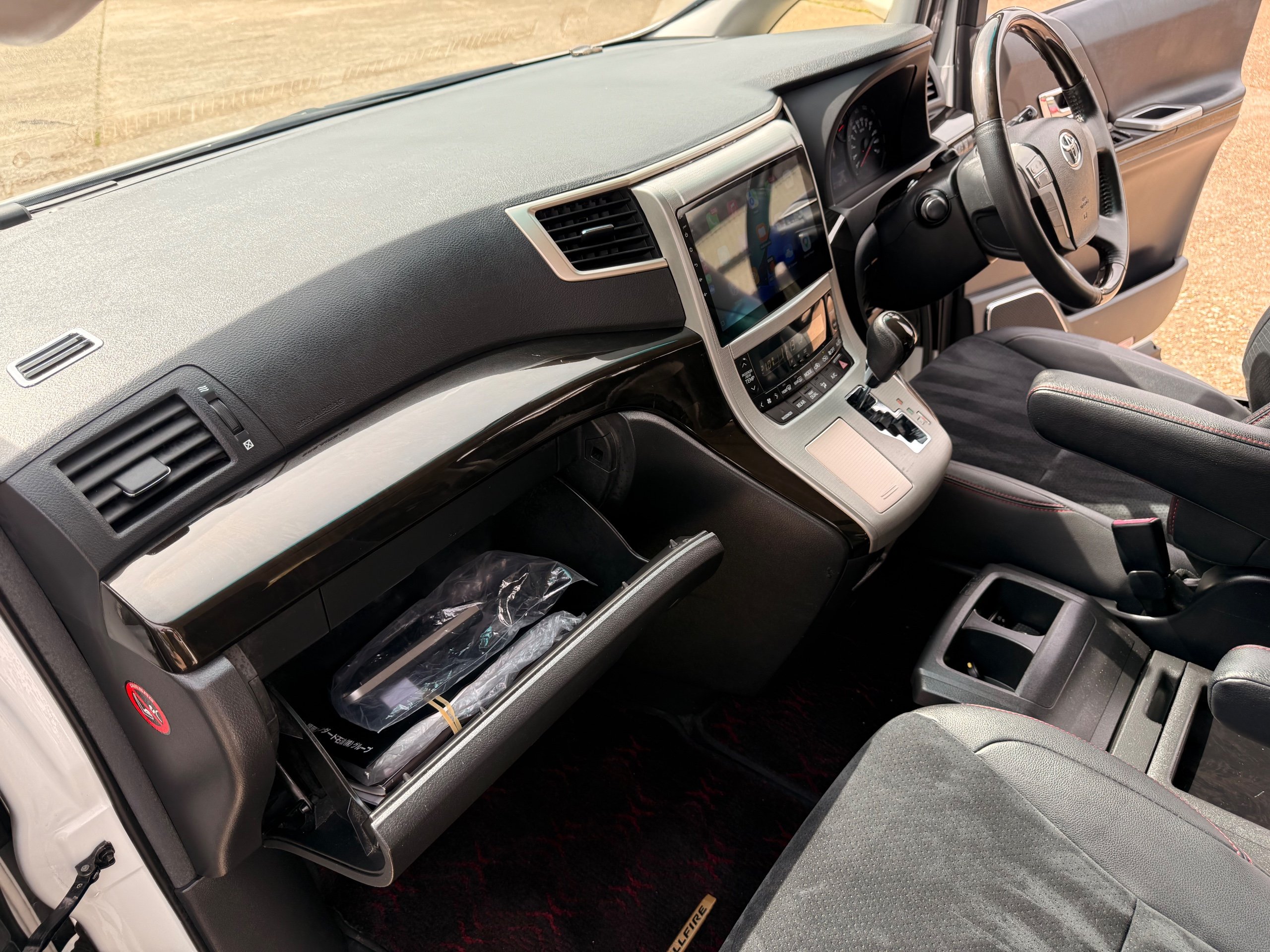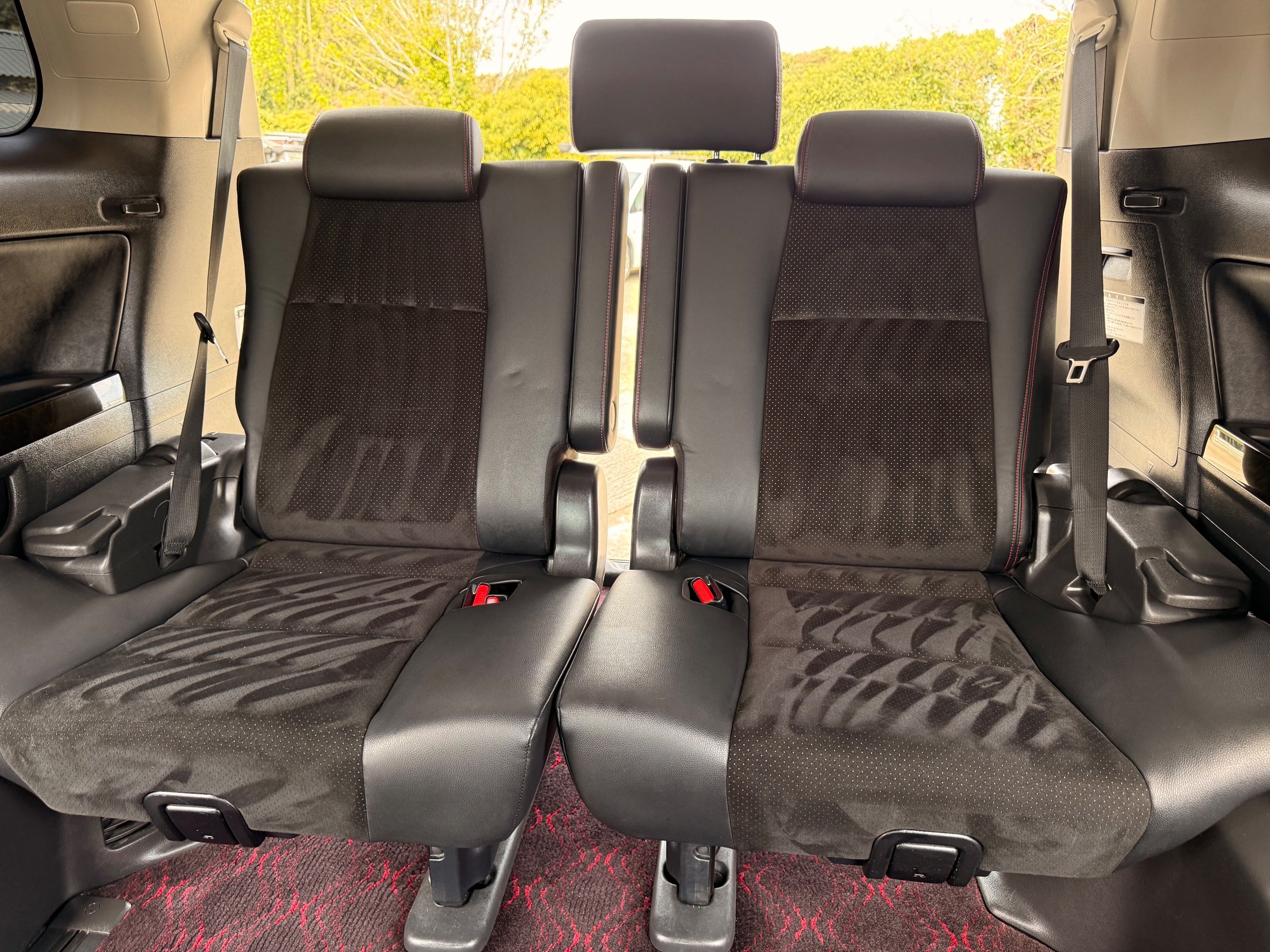 2012 Toyota Vellfire 2.4Z GOLDEN EYES EDITION 2012-62-Reg, Face-lift Edition, Finished in Stunning Pearlescent White paintwork, Twin Electric Soft Closing Sliding Doors, Electric Soft closing Tailgate, Front spots With chrome surrounds, Front Lip, Full Privacy Glass, Rear Spoiler with built in brake light, Unmarked Genuine 18” Golden Eyes dark silver Alloys, Key-less Entry, Key-less start, Golden headlight surround, 7 Seater 7 Unblemished Half leather seats with red stitching, The Front Seats have armrests, Centre console with flip up cup holders, The centre seats are Lounge style seats with extra leg rests and twin armrests on each seat, The seats also slide forwards and backwards and side to side with a folding centre table with built in cup holders, easy access to the rear seats, Isofix centre seats, The rear seats fold away to give way to a large boot, Strip L.E.D lighting, Ambient lighting, Push button Start, Front and Rear parking sensors, Traction Control, Front and Rear Electric windows, Colour reversing camera, Isofix points, Stereo System with Apple CarPlay, Red and Black Golden eyes floor mats, Cruise Control, Only covered a Genuine 68,000 Miles With All the Genuine paperwork from Japan including the auction sheet and D-Reg form which both prove the mileage and condition before it left Japan