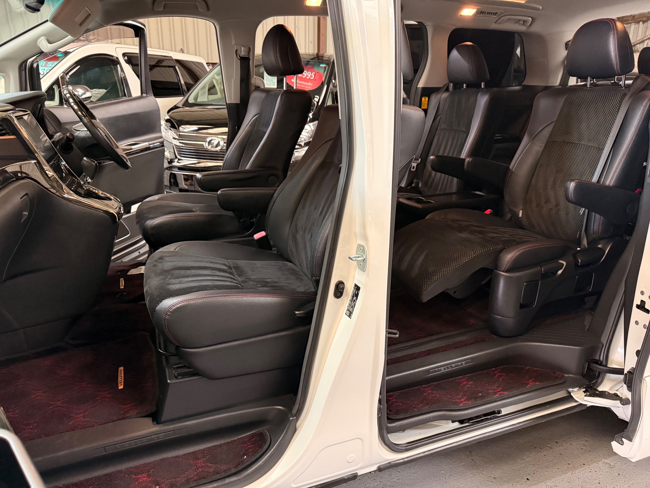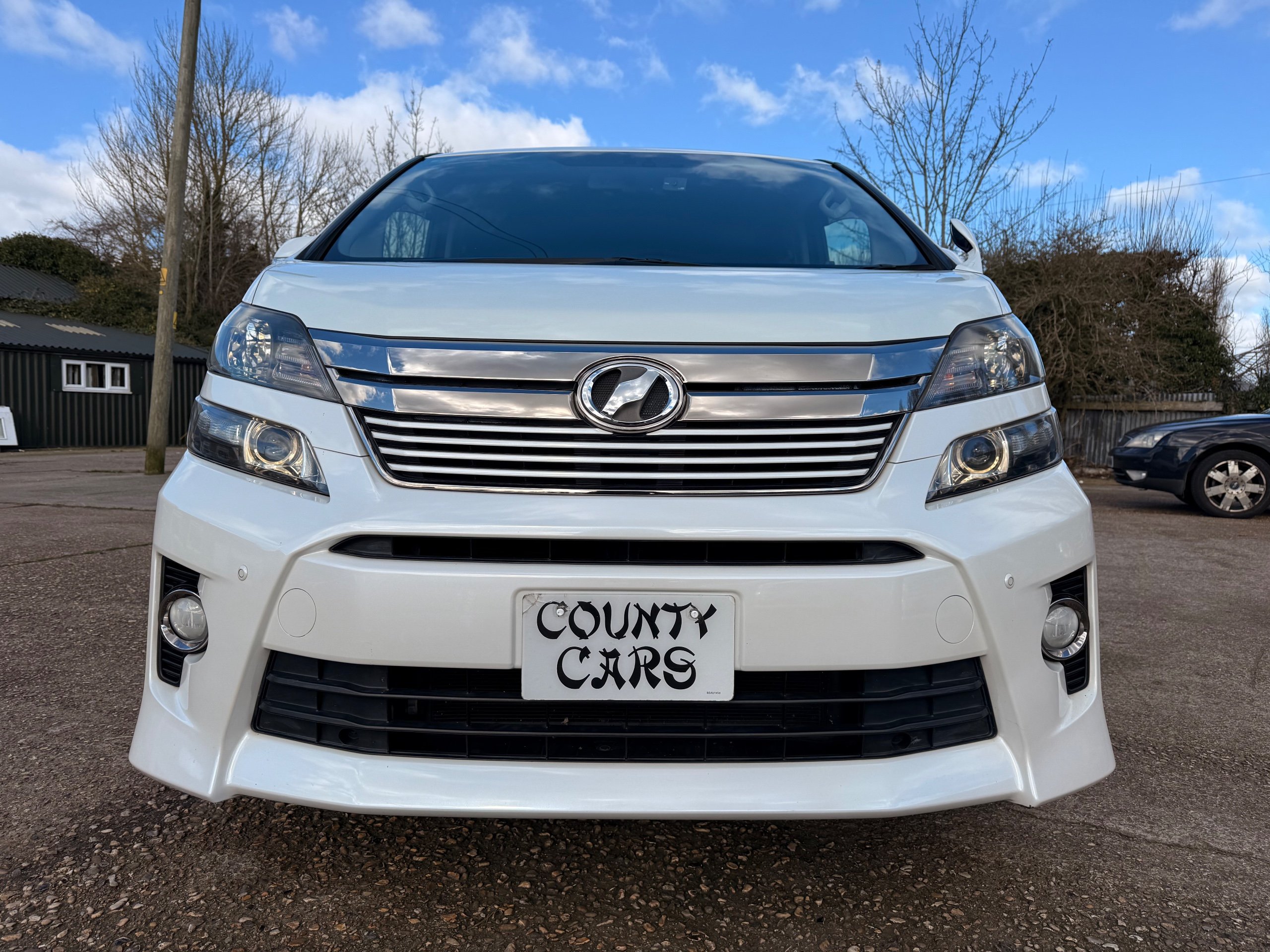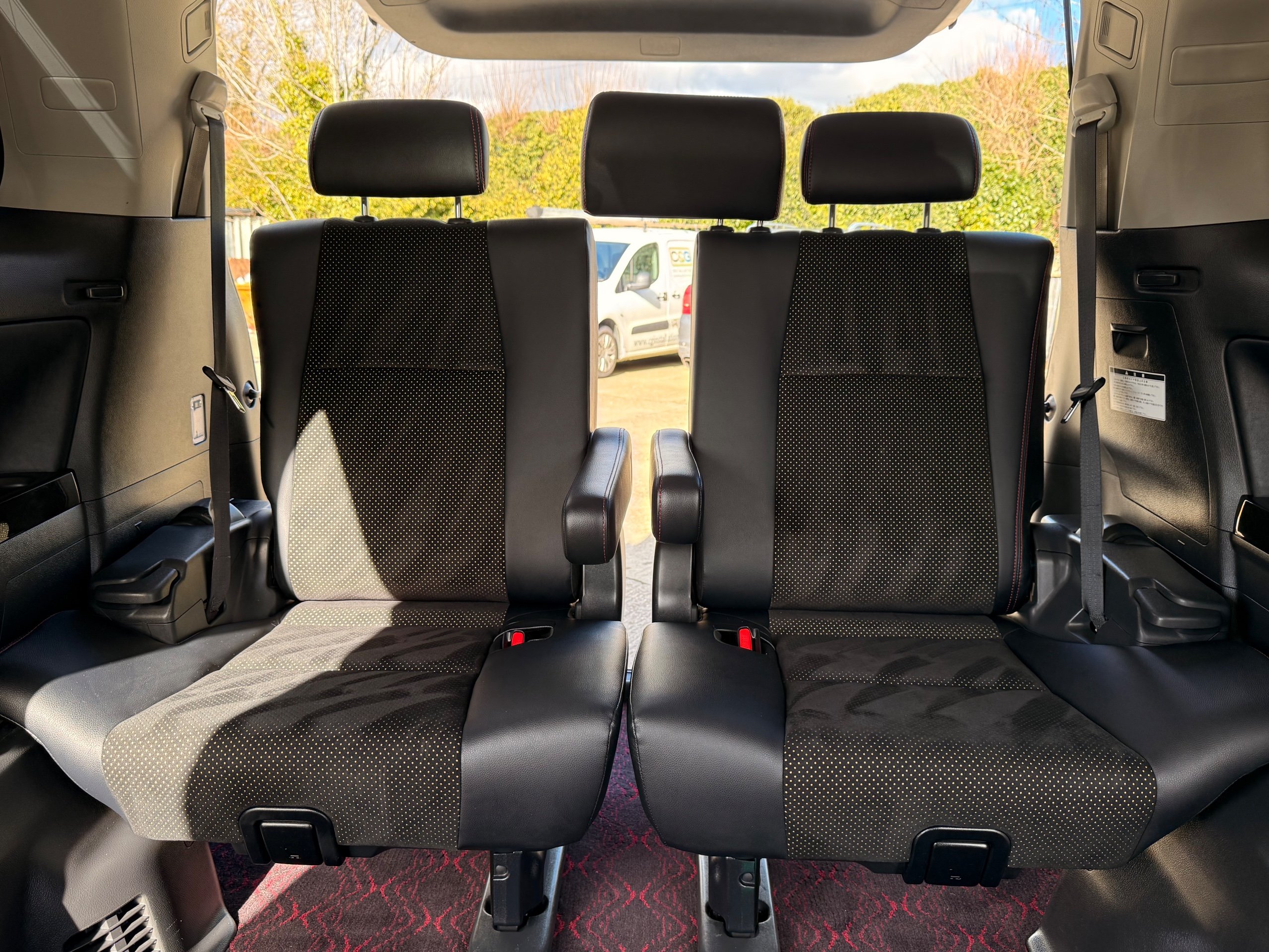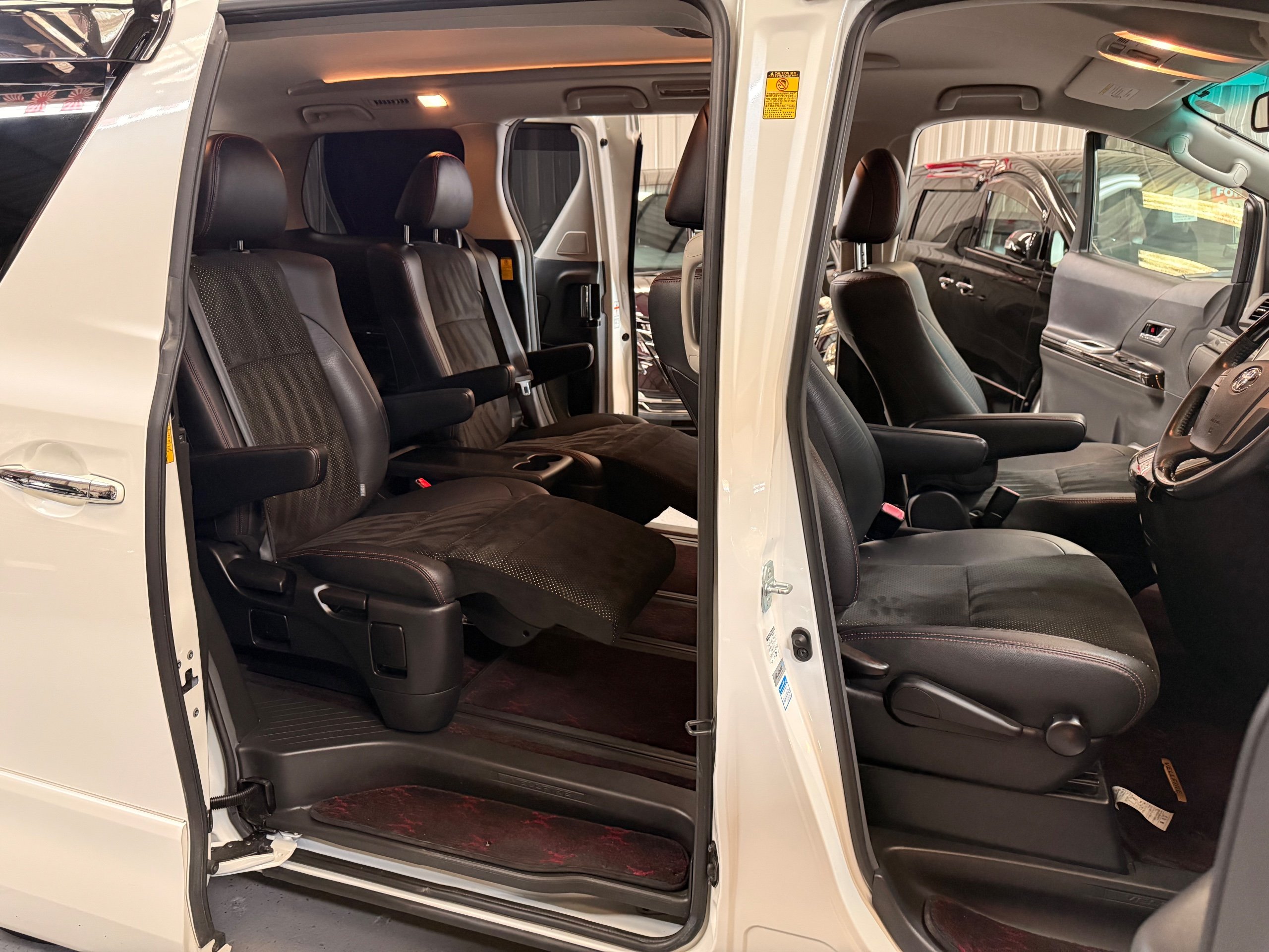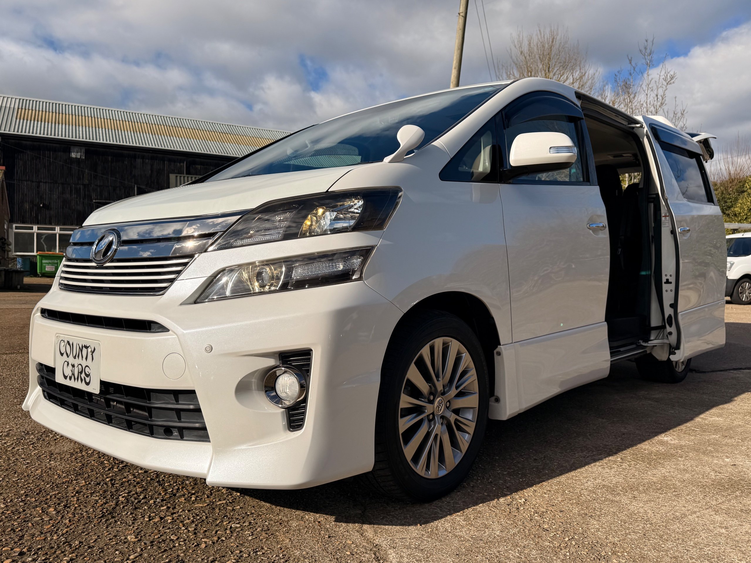 2014 Toyota Vellfire 2.4Z GOLDEN EYES EDITION 2 2014-64Reg, Face-lift edition, Finished in Stunning Unmarked Pearlescent White paintwork, Twin Electric Soft Closing Sliding Doors, Electric Soft closing Tailgate, Front spots With chrome surrounds, Full Privacy Glass, Rear Spoiler with built in brake light, Unmarked Genuine 18” Golden Eyes dark silver Alloys, Key-less Entry, Key-less start, Twin Golden Light elements, 7 Seater 7 Unblemished Half leather seats with red stitching and Golden Spots, The Front Seats have armrests, Centre console with flip up cup holders, The centre seats are Lounge style seats with extra leg rests and twin armrests on each seat, The seats also slide forwards and backwards and side to side with a folding centre table with built in cup holders, easy access to the rear seats, Isofix centre seats, The rear seats fold away to give way to a large boot, Strip L.E.D lighting, Ambient lighting, Push button Start, Front and Rear parking sensors, Traction Control, Front and Rear Electric windows, Colour reversing camera, Isofix points, Stereo System with Apple CarPlay, Red and Black Golden eyes floor mats, Cruise Control, Only covered a Genuine 66,000 Miles With All the Genuine paperwork from Japan including the auction sheet and D-Reg form which both prove the mileage and condition before it left Japan
