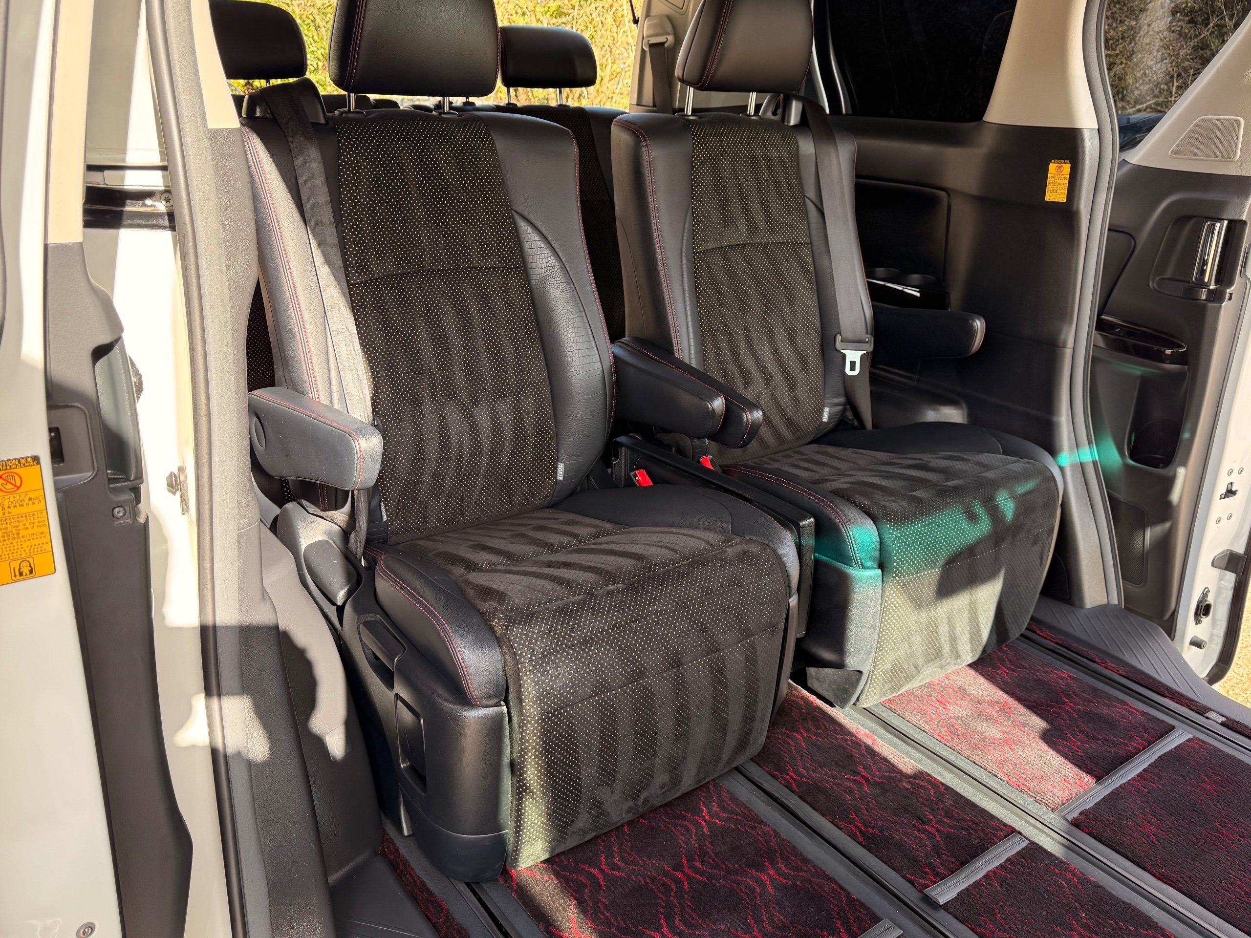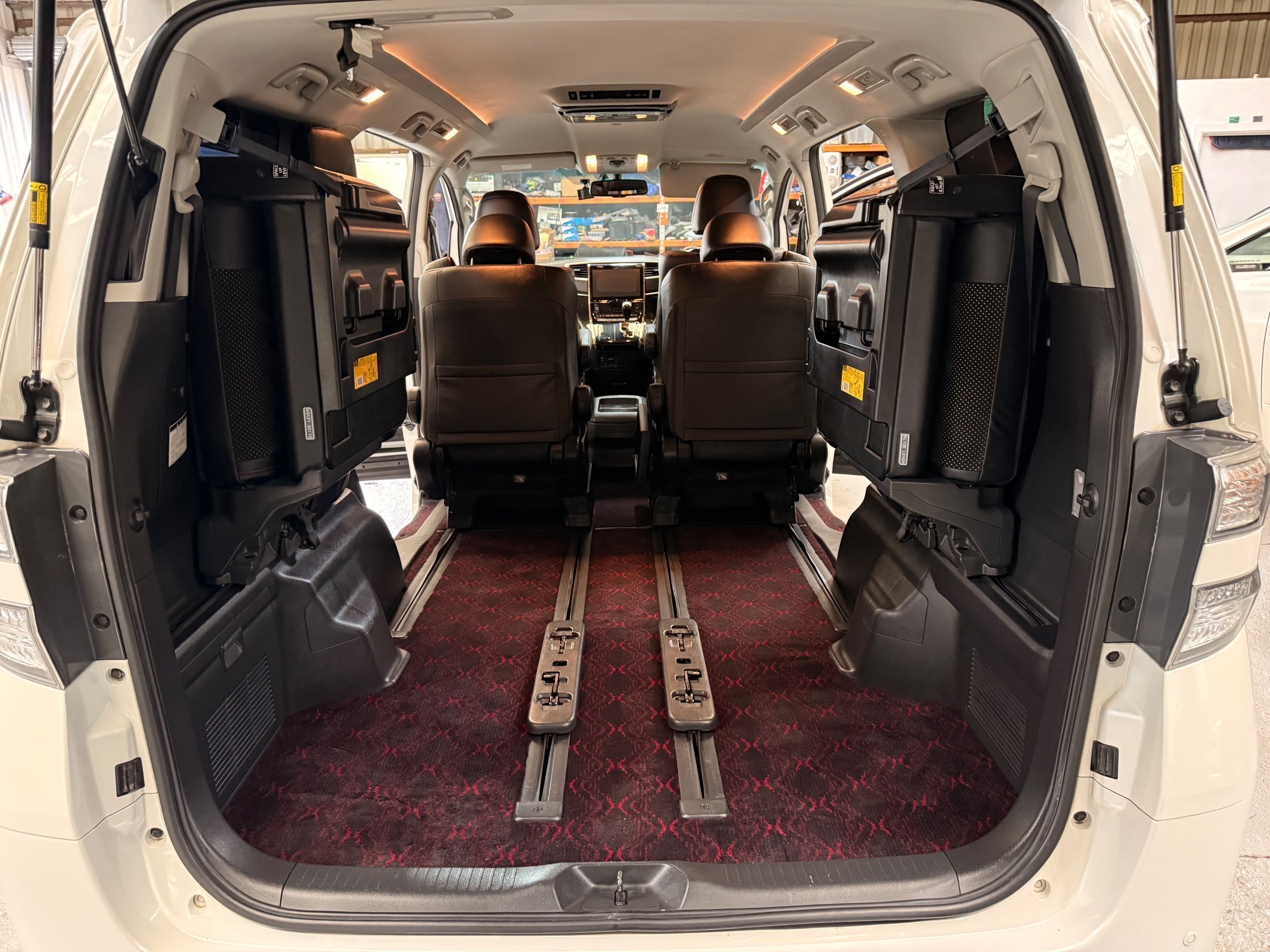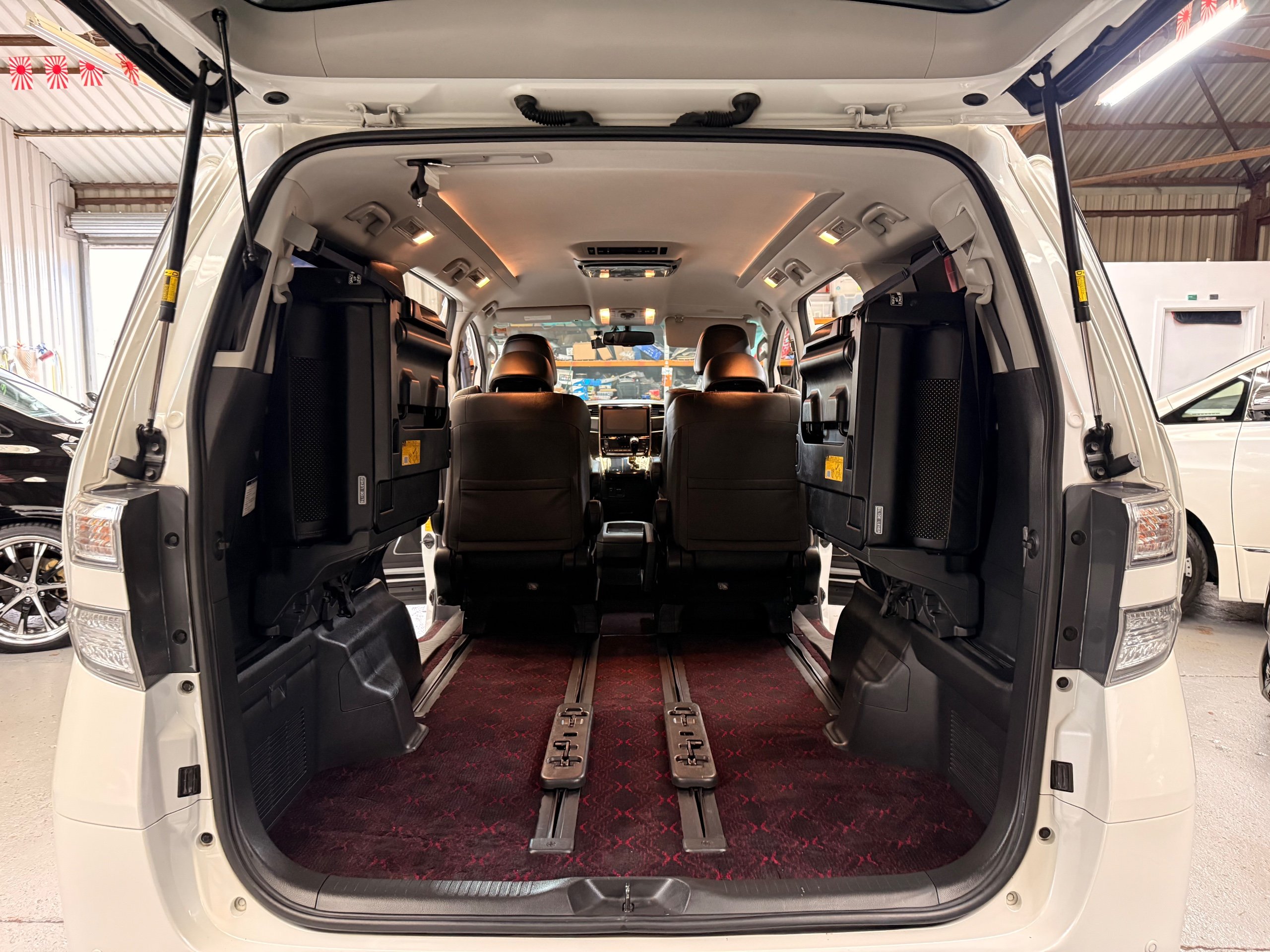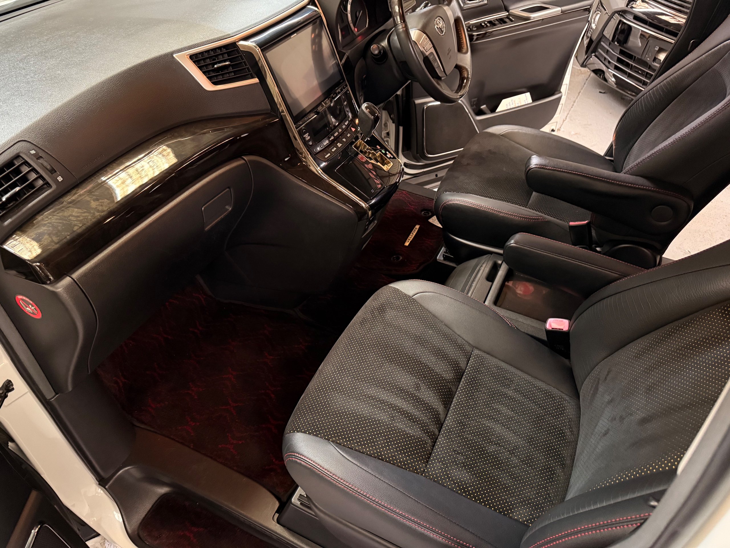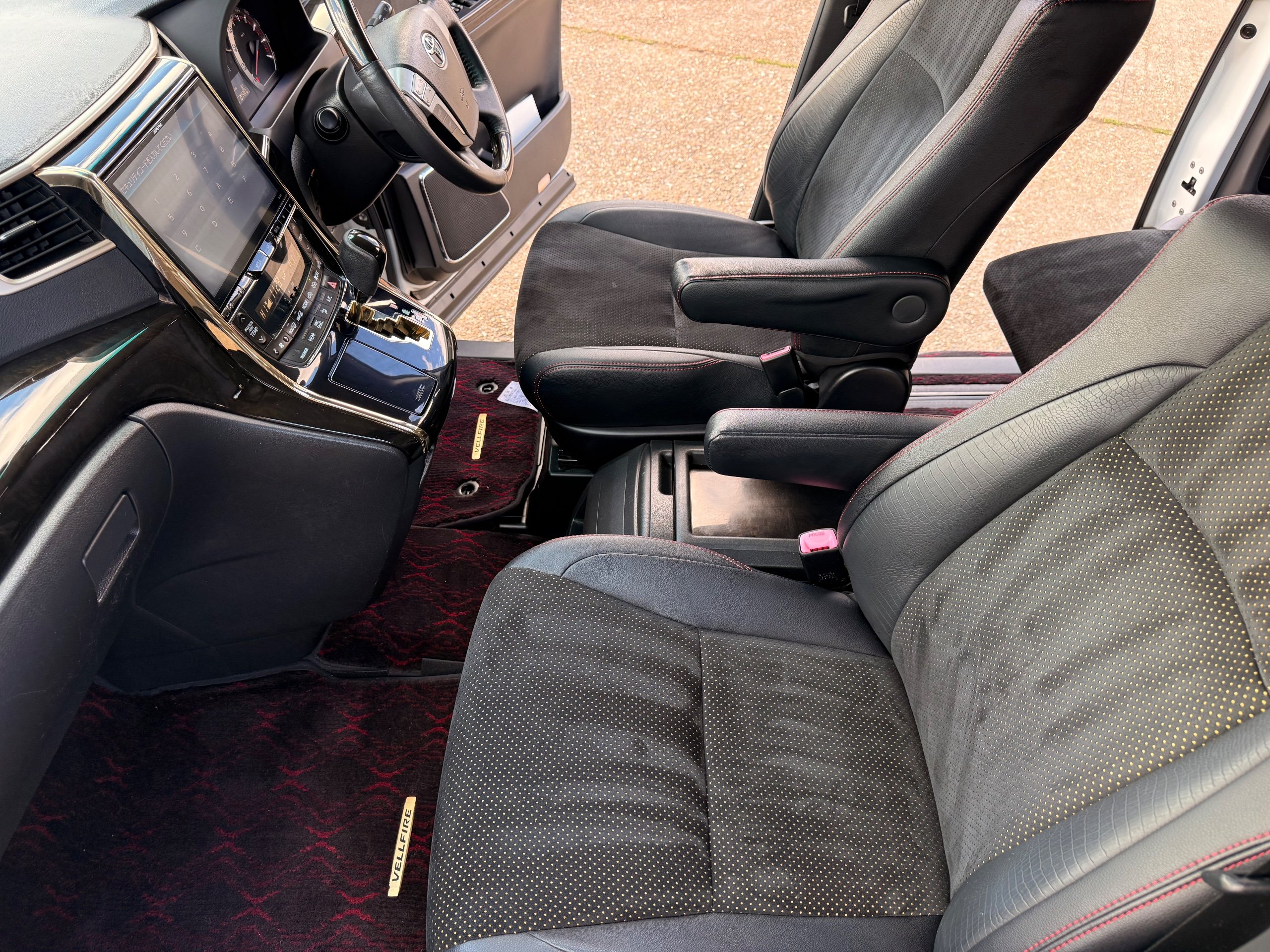 2014 Toyota Vellfire 2.4Z GOLDEN EYES EDITION 2 2014-64Reg, Face-lift edition, Finished in Stunning Unmarked Pearlescent White paintwork, Twin Electric Soft Closing Sliding Doors, Electric Soft closing Tailgate, Front spots With chrome surrounds, Full Privacy Glass, Rear Spoiler with built in brake light, Unmarked Genuine 18” Golden Eyes dark silver Alloys, Key-less Entry, Key-less start, Twin Golden Light elements, 7 Seater 7 Unblemished Half leather seats with red stitching and Golden Spots, The Front Seats have armrests, Centre console with flip up cup holders, The centre seats are Lounge style seats with extra leg rests and twin armrests on each seat, The seats also slide forwards and backwards and side to side with a folding centre table with built in cup holders, easy access to the rear seats, Isofix centre seats, The rear seats fold away to give way to a large boot, Strip L.E.D lighting, Ambient lighting, Push button Start, Front and Rear parking sensors, Traction Control, Front and Rear Electric windows, Colour reversing camera, Isofix points, Stereo System with Apple CarPlay, Red and Black Golden eyes floor mats, Cruise Control, Only covered a Genuine 66,000 Miles With All the Genuine paperwork from Japan including the auction sheet and D-Reg form which both prove the mileage and condition before it left Japan