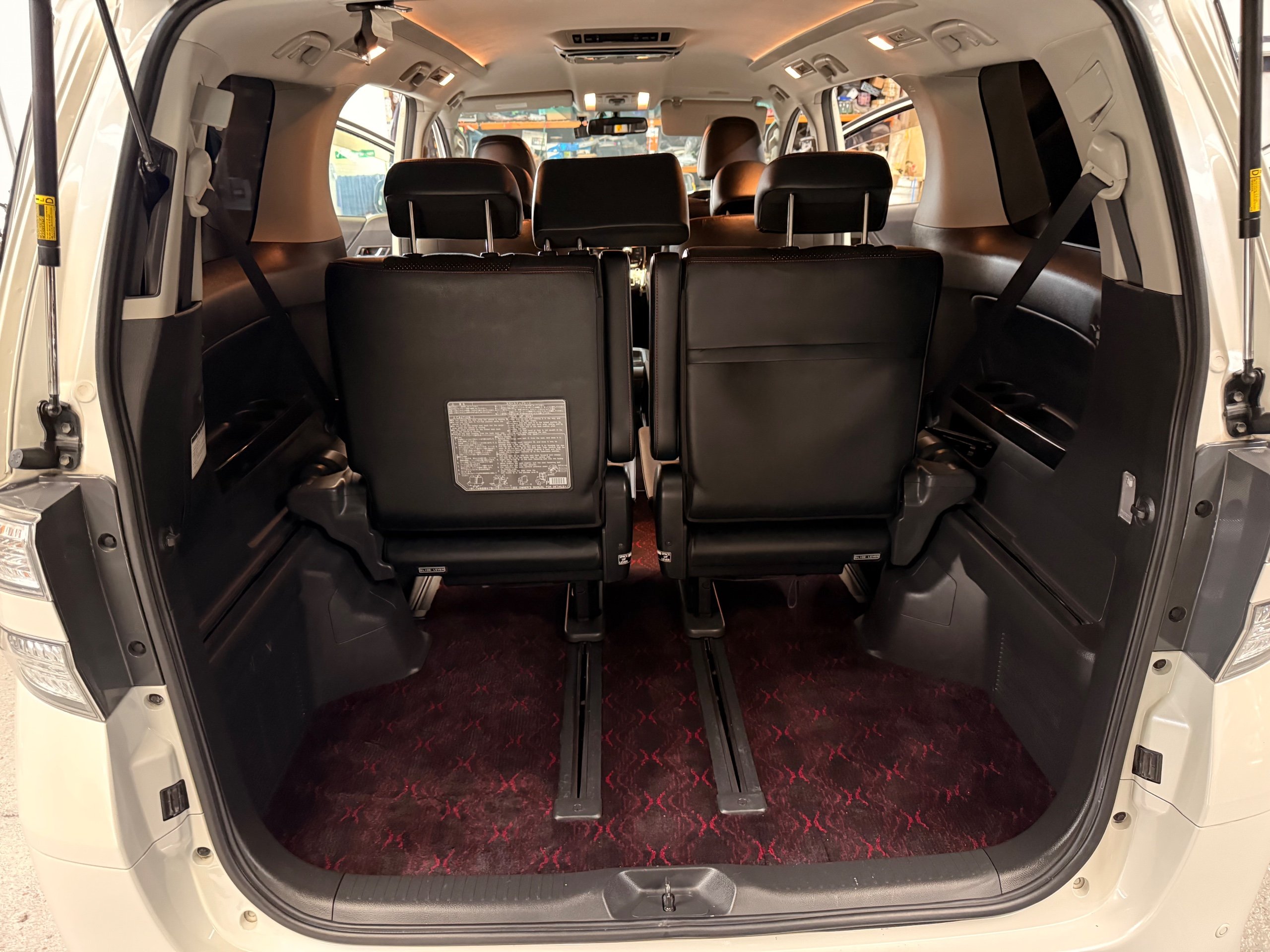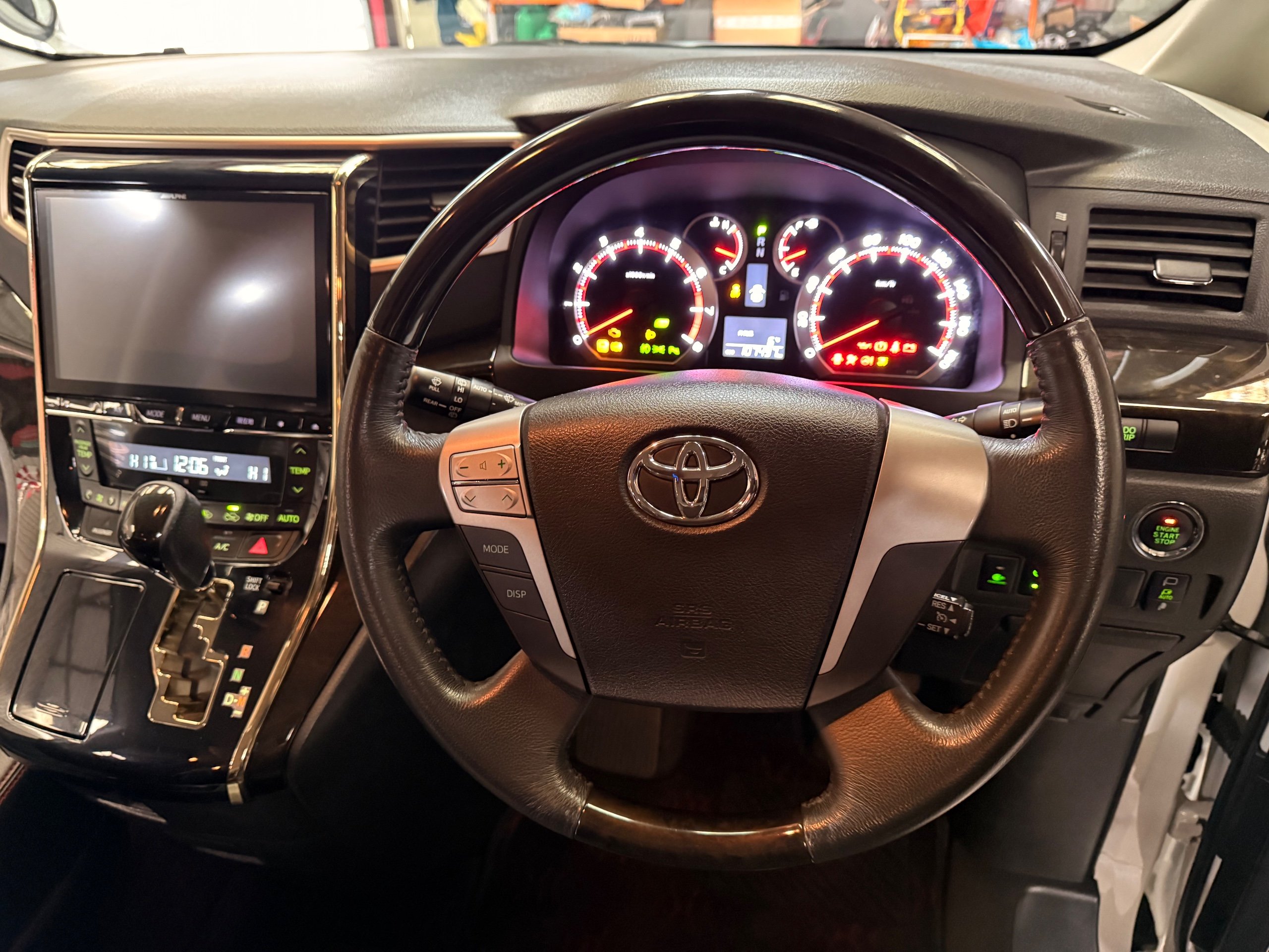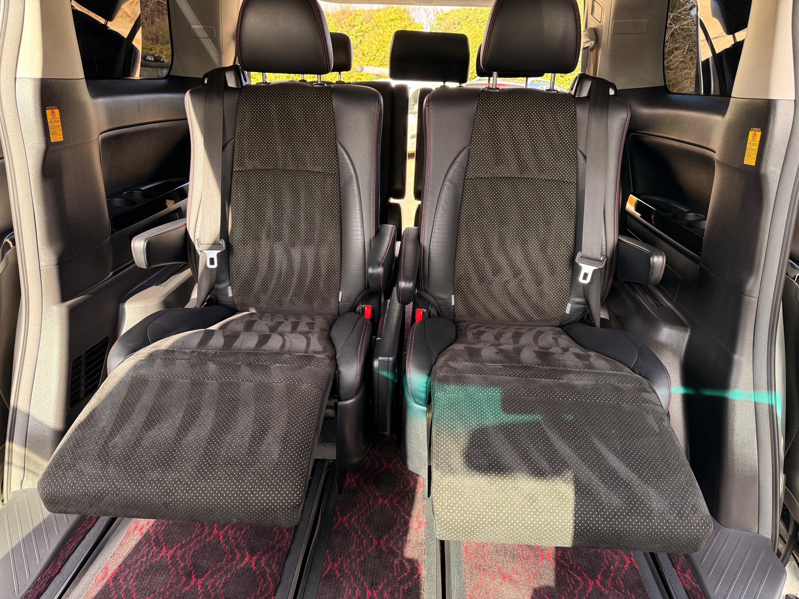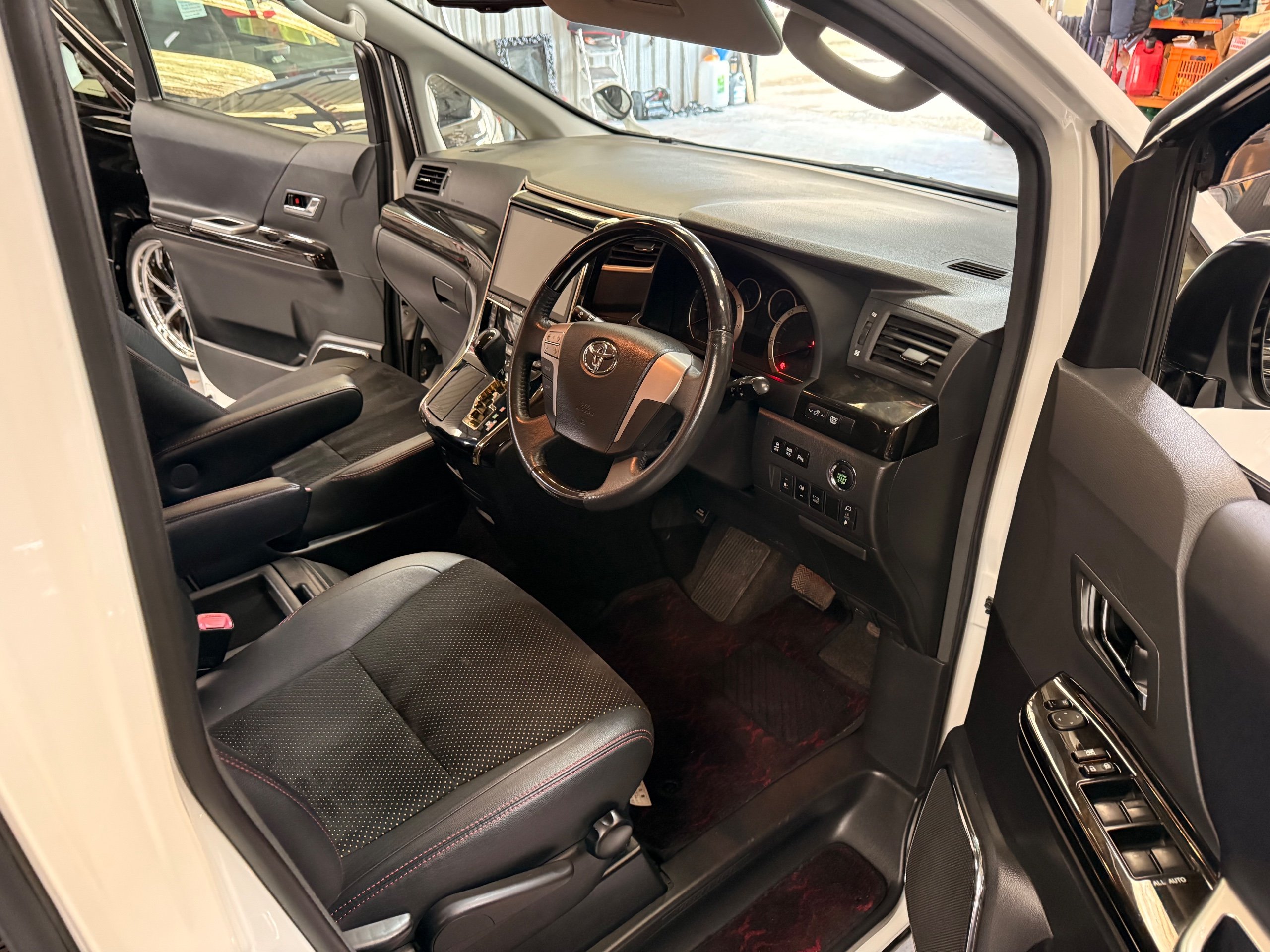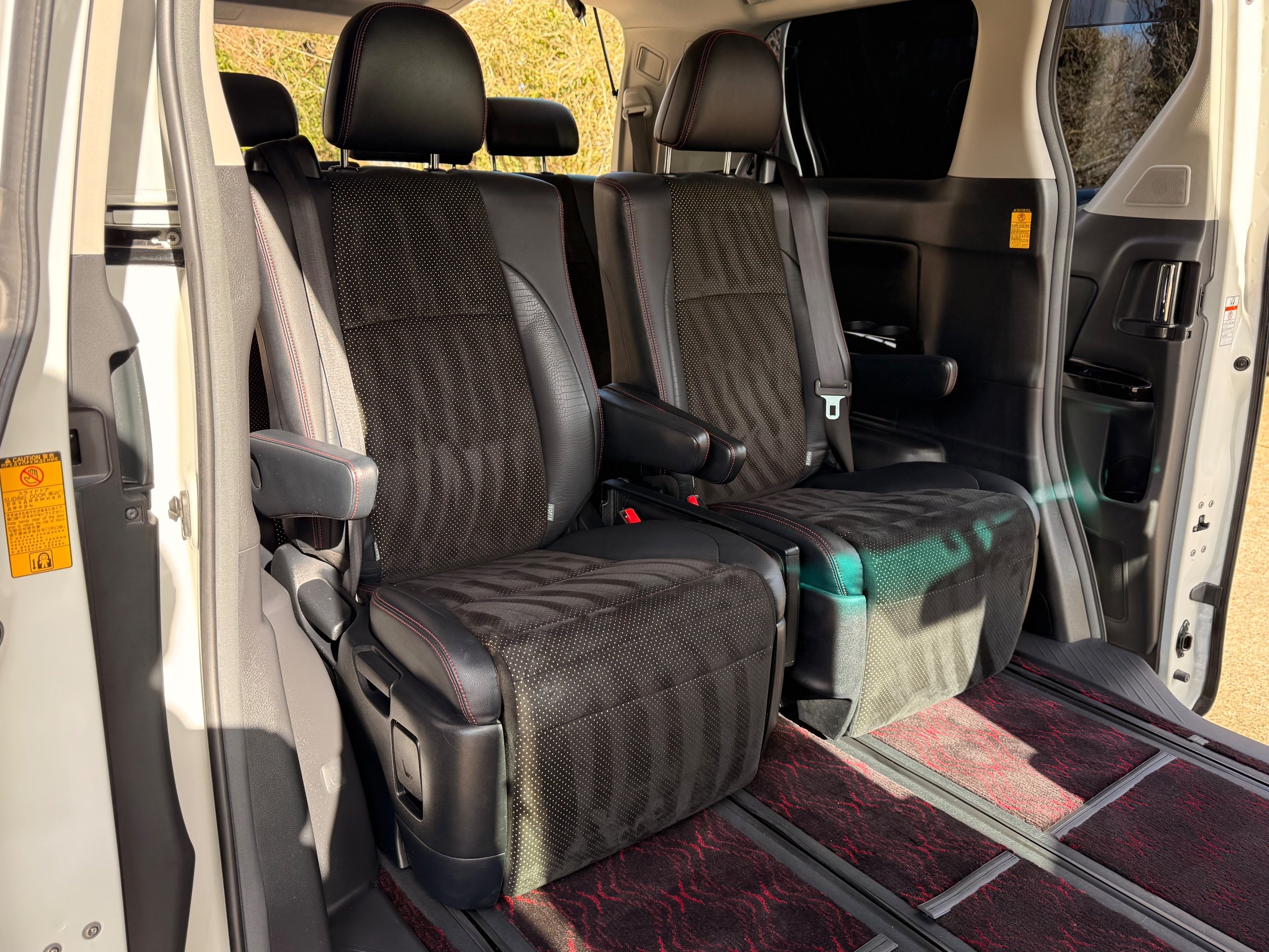 2014 Toyota Vellfire 2.4Z GOLDEN EYES EDITION 2 2014-64Reg, Face-lift edition, Finished in Stunning Unmarked Pearlescent White paintwork, Twin Electric Soft Closing Sliding Doors, Electric Soft closing Tailgate, Front spots With chrome surrounds, Full Privacy Glass, Rear Spoiler with built in brake light, Unmarked Genuine 18” Golden Eyes dark silver Alloys, Key-less Entry, Key-less start, Twin Golden Light elements, 7 Seater 7 Unblemished Half leather seats with red stitching and Golden Spots, The Front Seats have armrests, Centre console with flip up cup holders, The centre seats are Lounge style seats with extra leg rests and twin armrests on each seat, The seats also slide forwards and backwards and side to side with a folding centre table with built in cup holders, easy access to the rear seats, Isofix centre seats, The rear seats fold away to give way to a large boot, Strip L.E.D lighting, Ambient lighting, Push button Start, Front and Rear parking sensors, Traction Control, Front and Rear Electric windows, Colour reversing camera, Isofix points, Stereo System with Apple CarPlay, Red and Black Golden eyes floor mats, Cruise Control, Only covered a Genuine 66,000 Miles With All the Genuine paperwork from Japan including the auction sheet and D-Reg form which both prove the mileage and condition before it left Japan