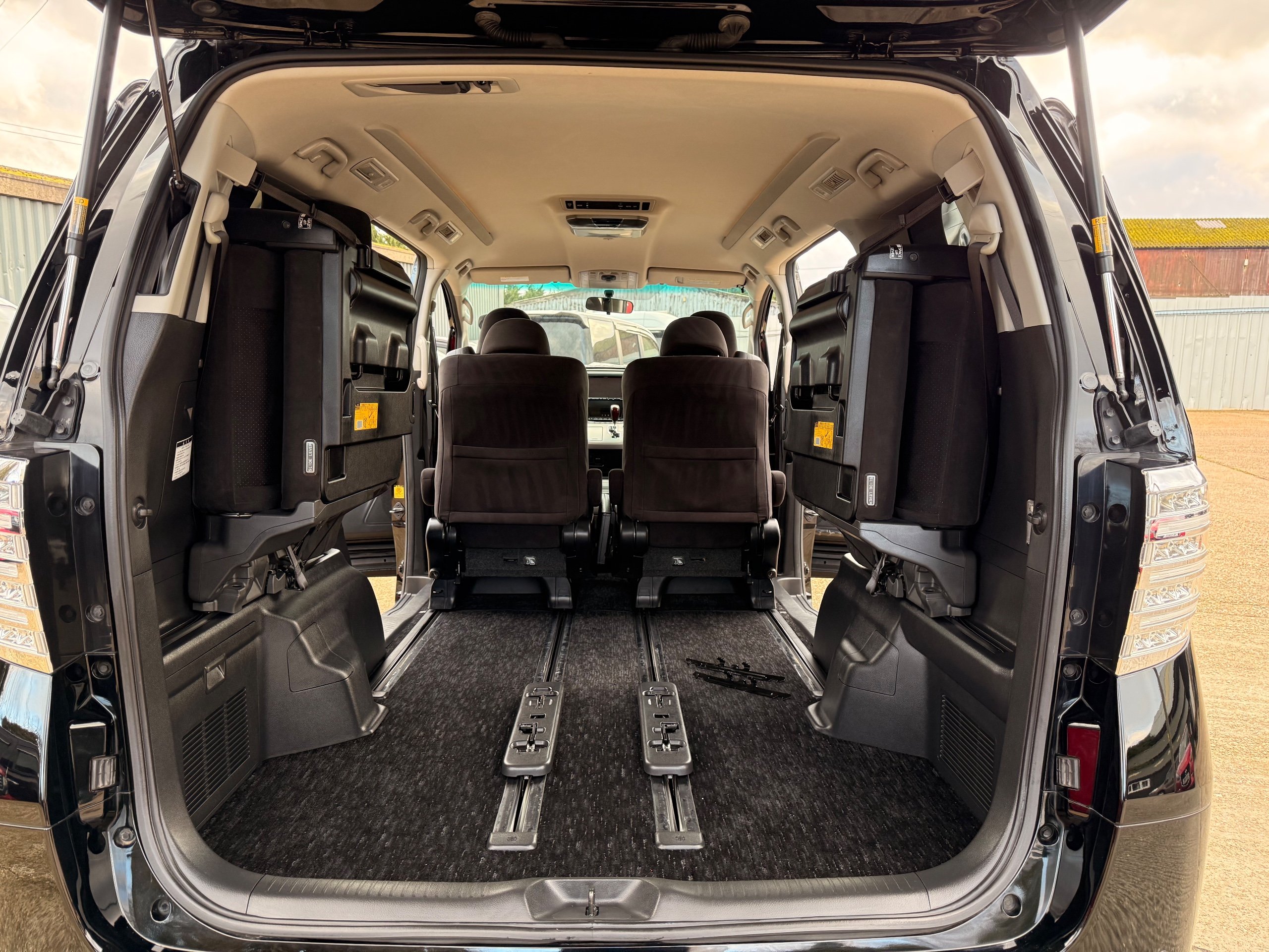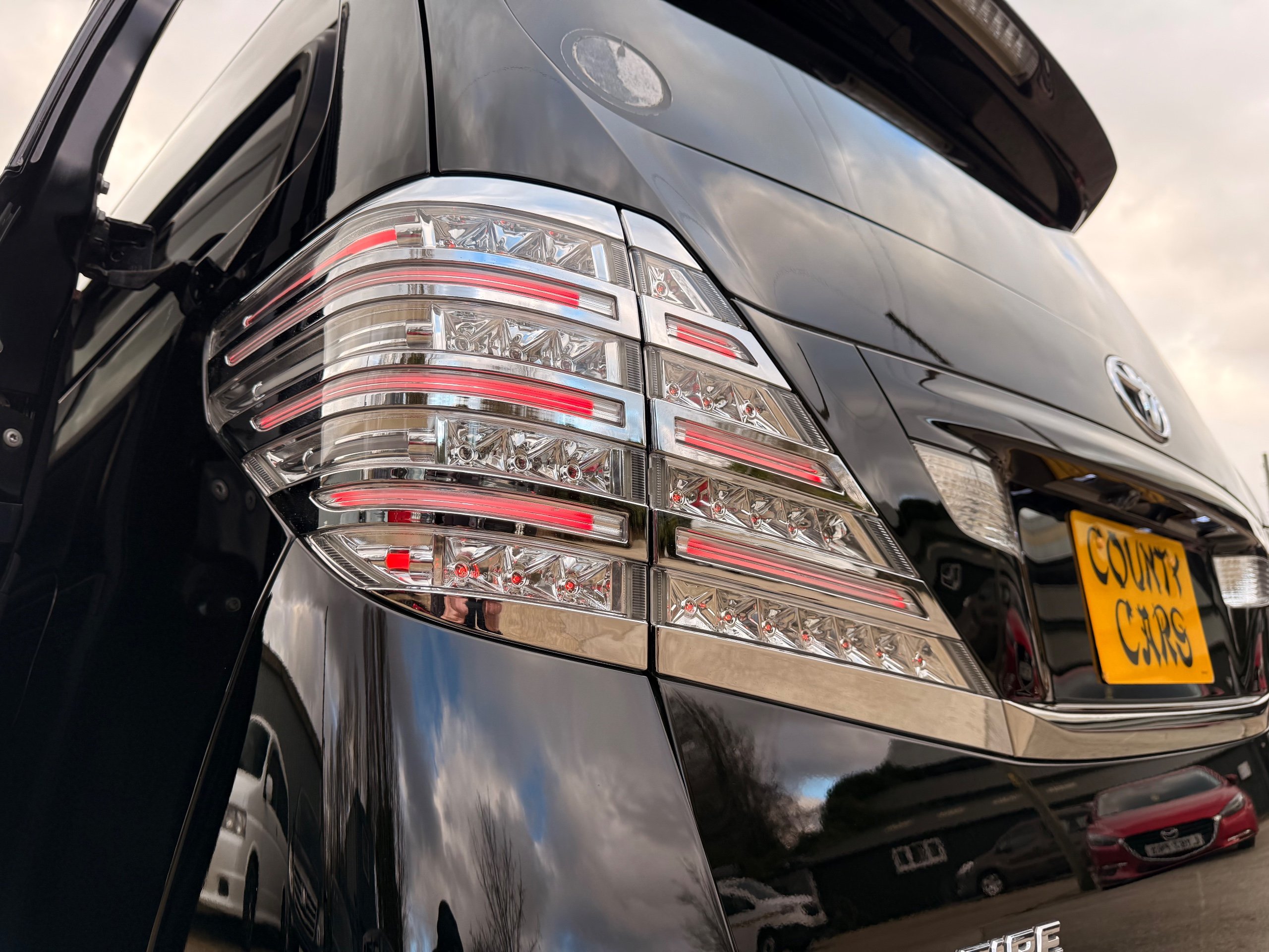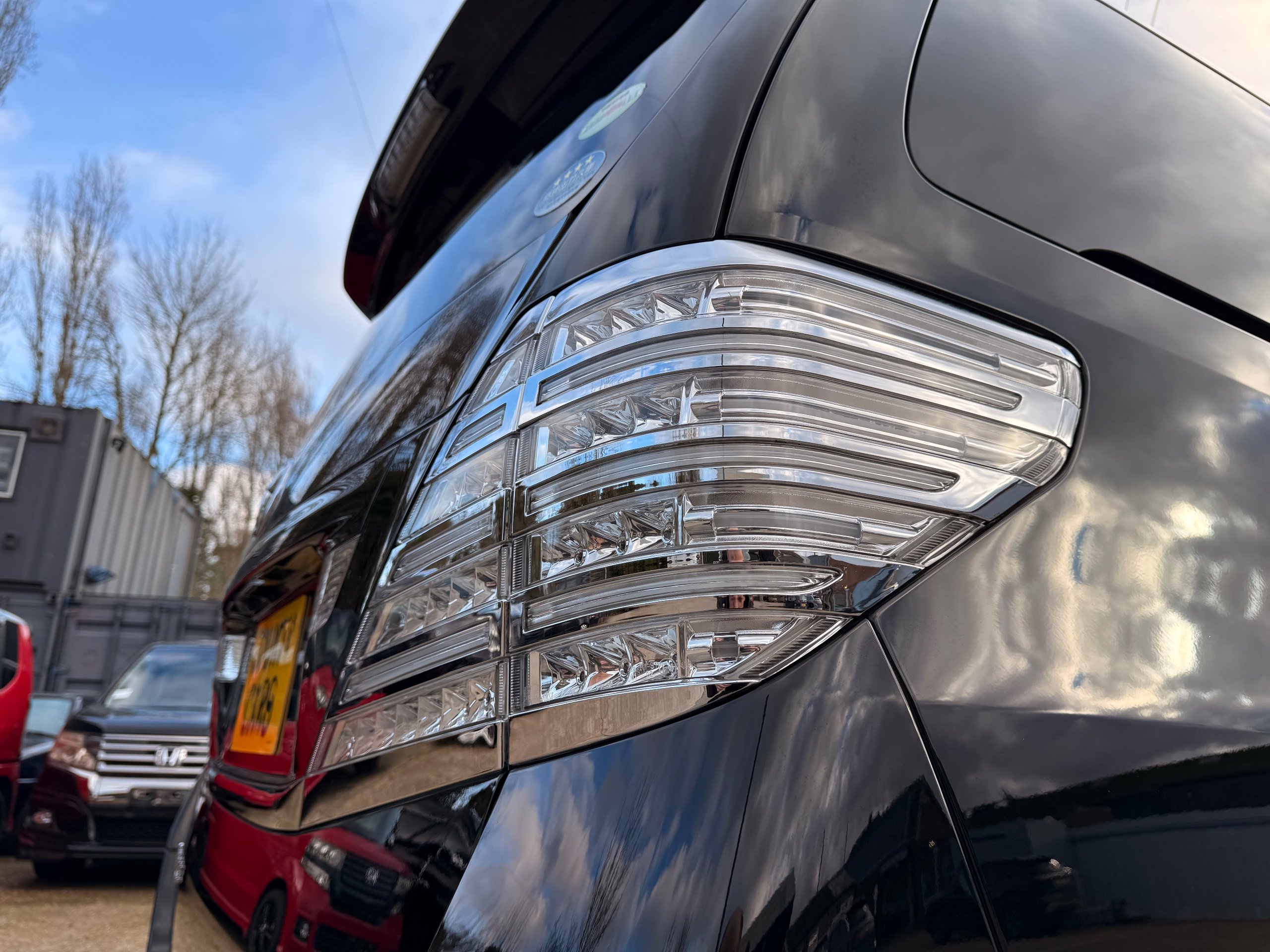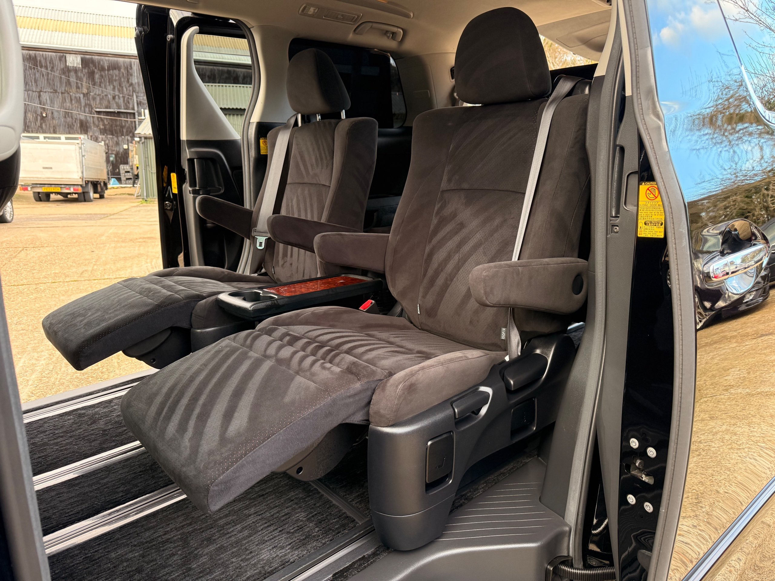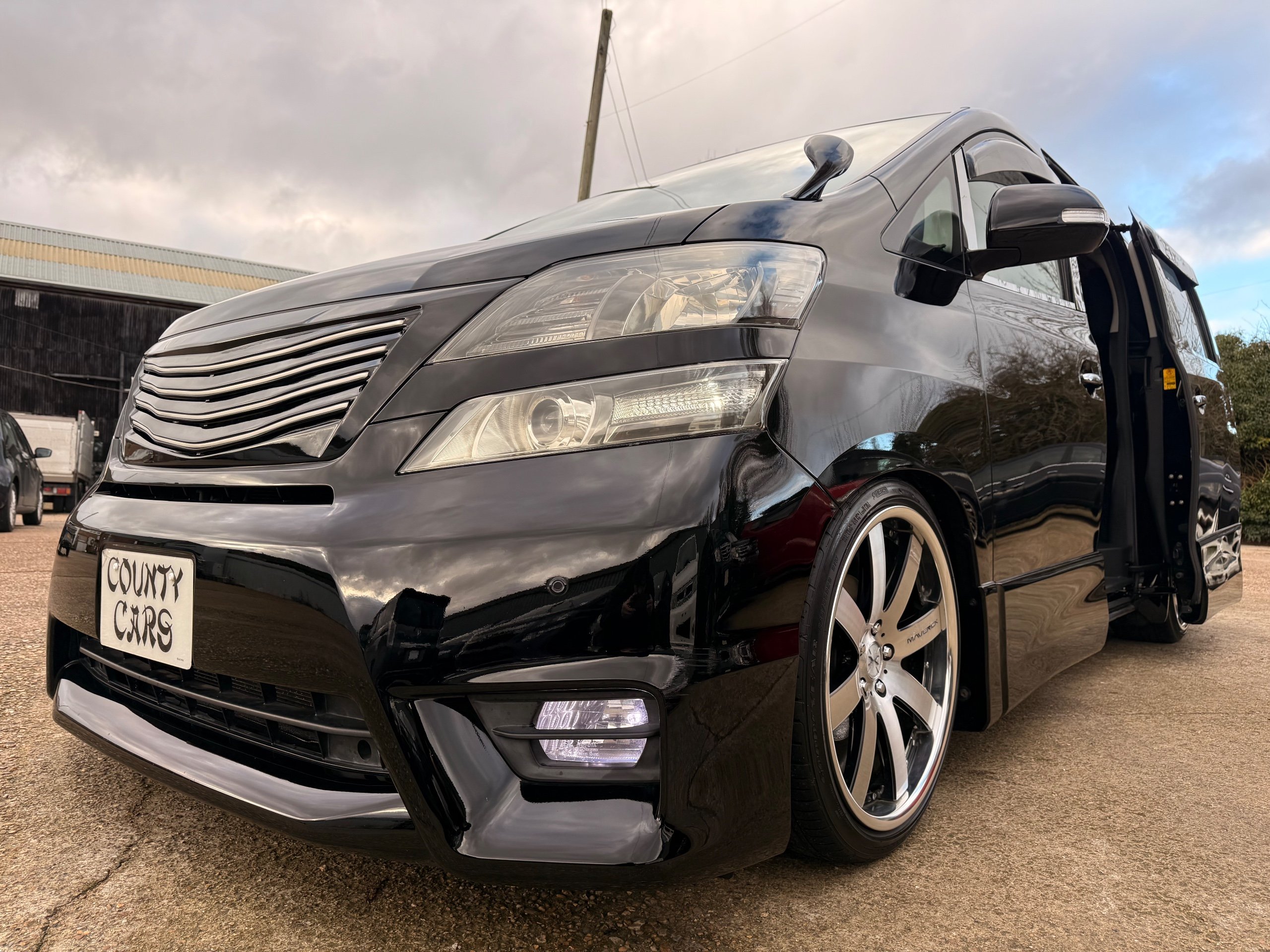 2010 Toyota Vellfire 2.4Z platinum Selection, Grade 4.5 2010-60-Reg, Finished in Stunning Unmarked Black paintwork, Twin Electric Soft Closing Sliding Doors, Electric Soft Closing Tailgate, Front spots Full Privacy Glass, Rear Spoiler with built in brake light, Stunning set of 20" Maverick Alloys, The best set of rear l.e.d Clear lights, Rear bumper l.e.d lights, Key-less Entry, Key-less start, 7 Seater 7 Unblemished Black Alcantara Seats, The centre seats are Lounge style seats with extra leg rests, The seats also slide forwards and backwards and side to side with a folding centre table with built in cup holders, easy access to the rear seats, The rear seats fold away to give way to a large boot, Strip L.E.D lighting, Ambient lighting, Push button Start, Front and Rear parking sensors, Traction Control, Front and Rear Electric windows, Colour reversing camera, UK Stereo with Apple CarPlay, Electric Tailgate, Isofix points, Only covered a Genuine 20,000 Miles With All the Genuine paperwork from Japan including the auction sheet and The Export Certificate which both prove the mileage and condition before it left Japan Nationwide delivery service available