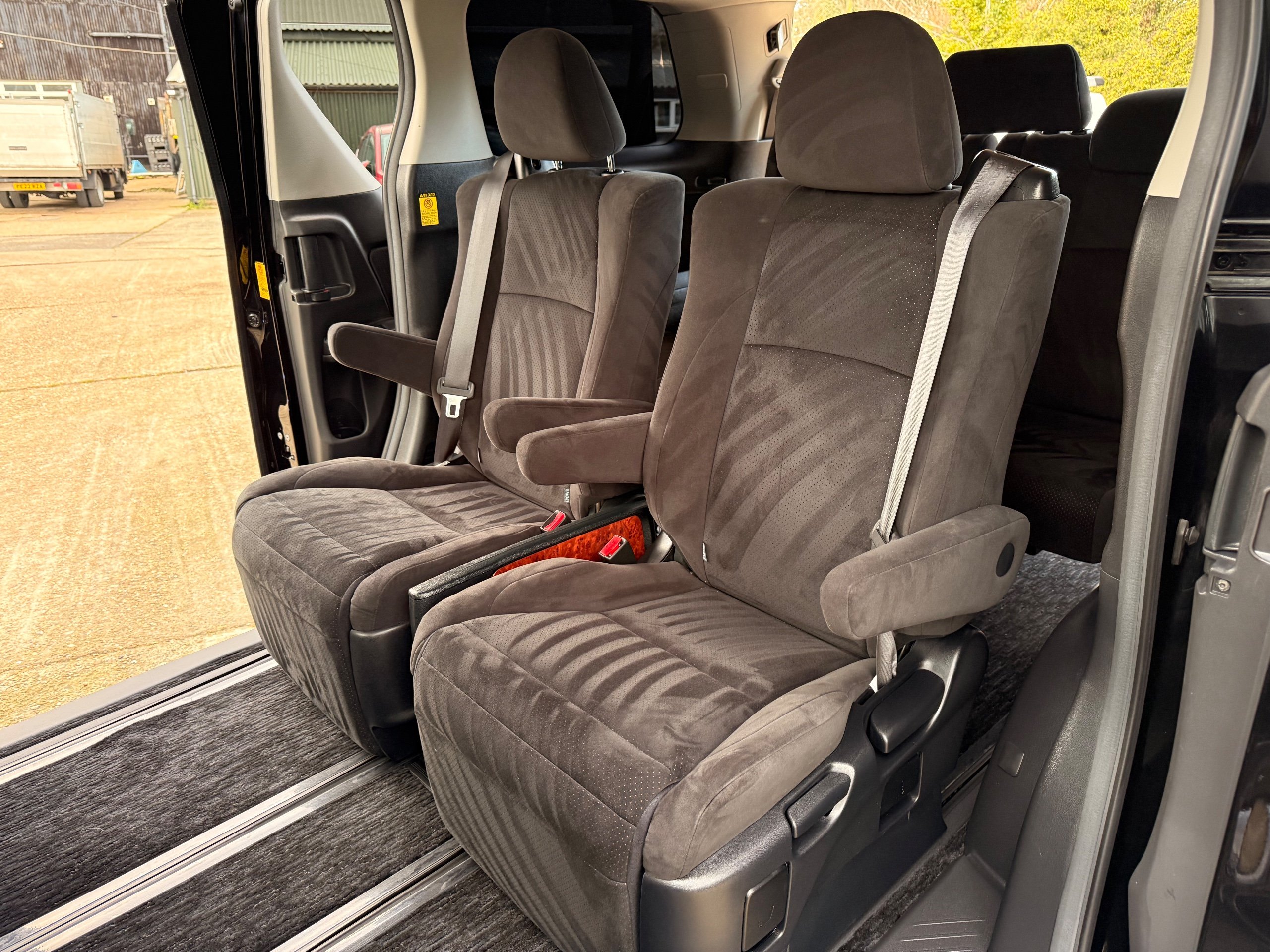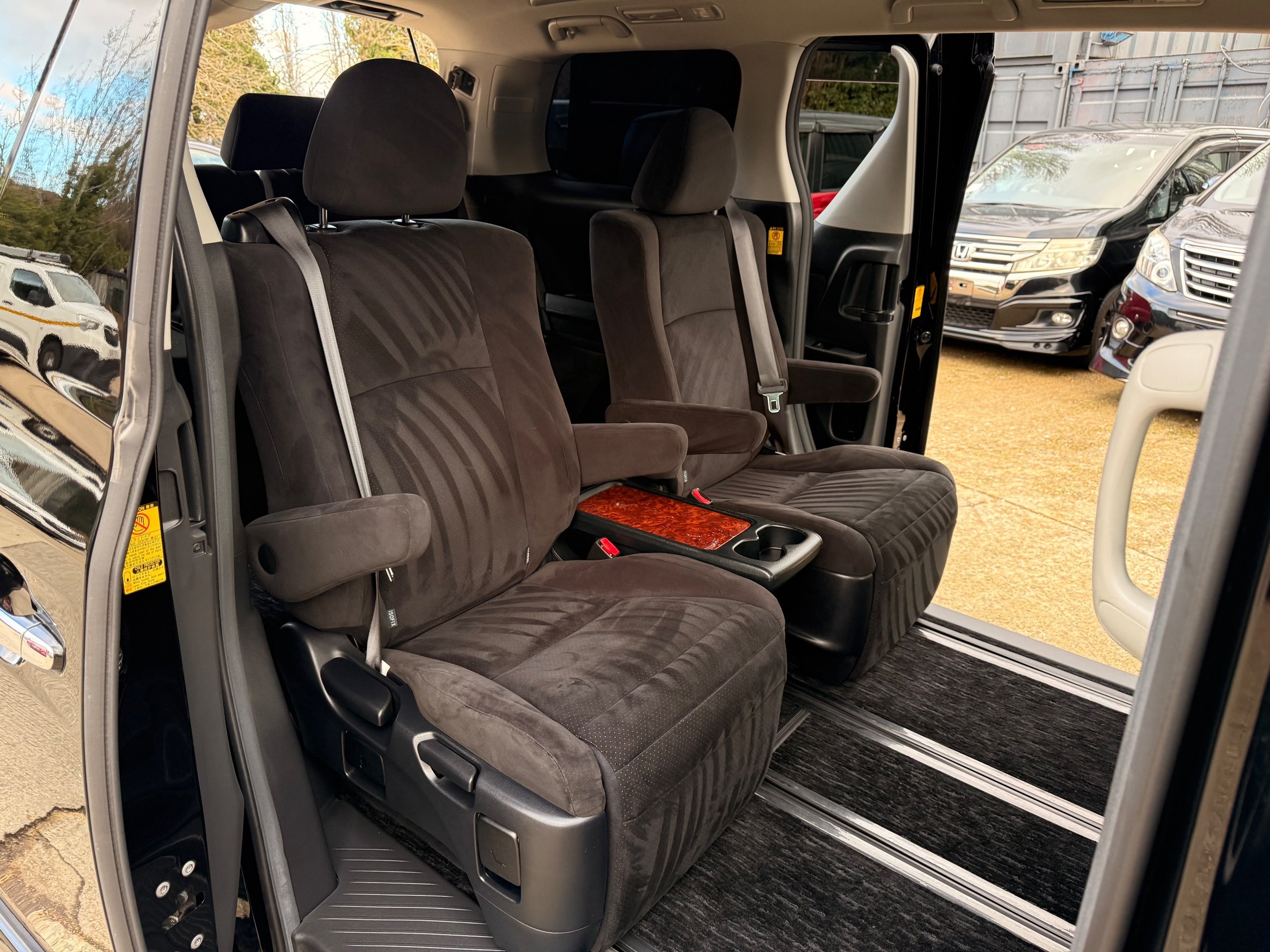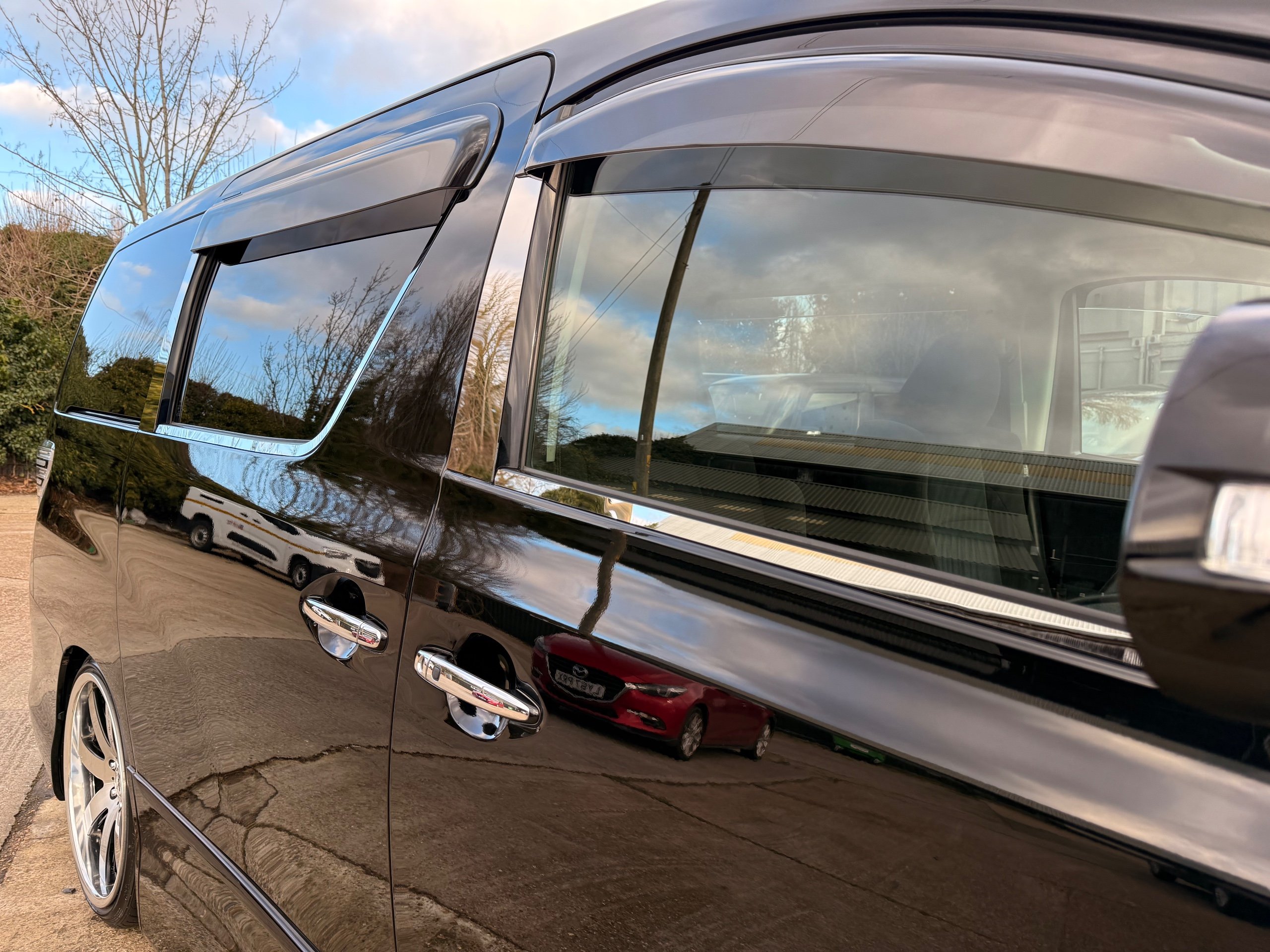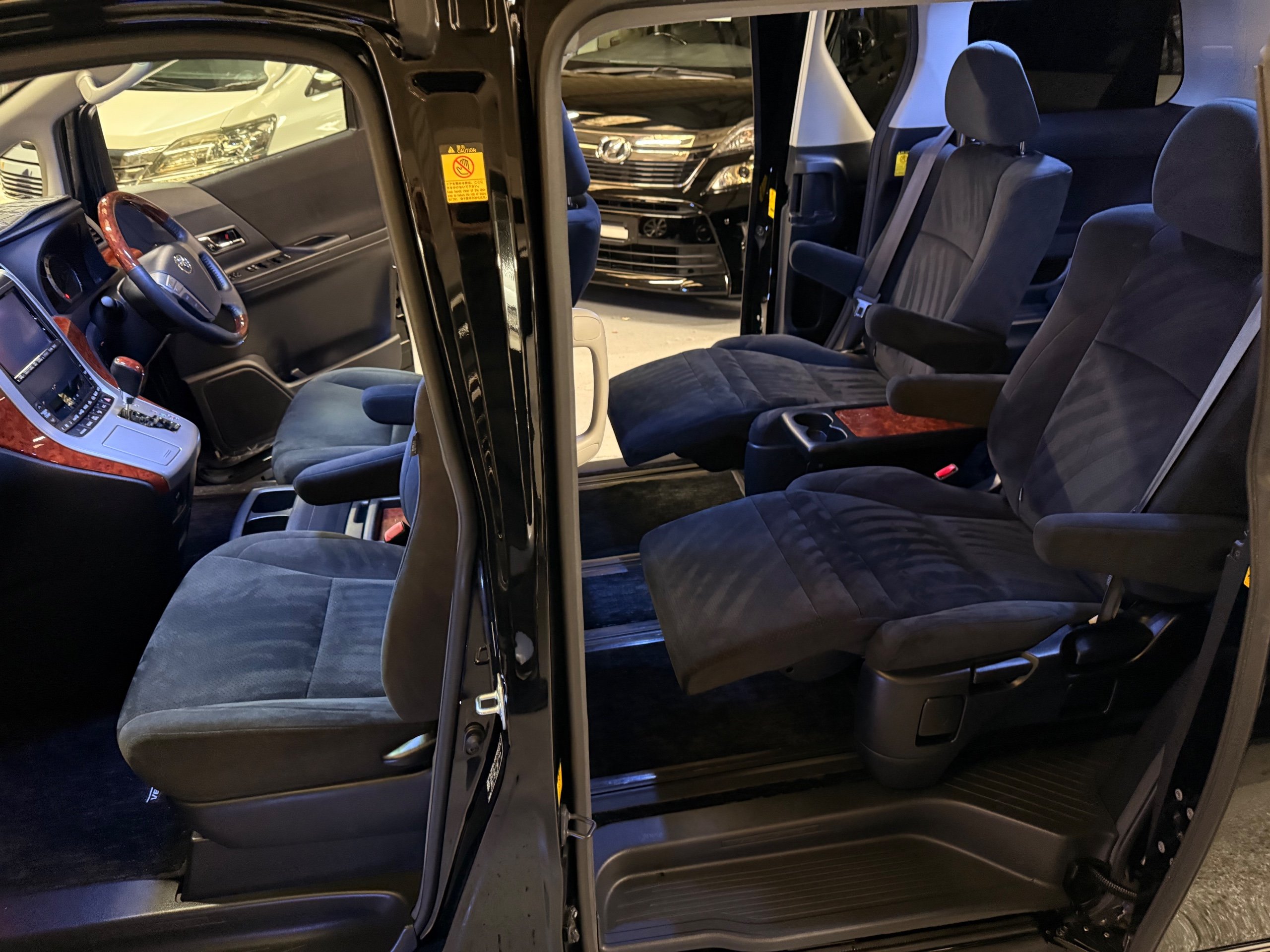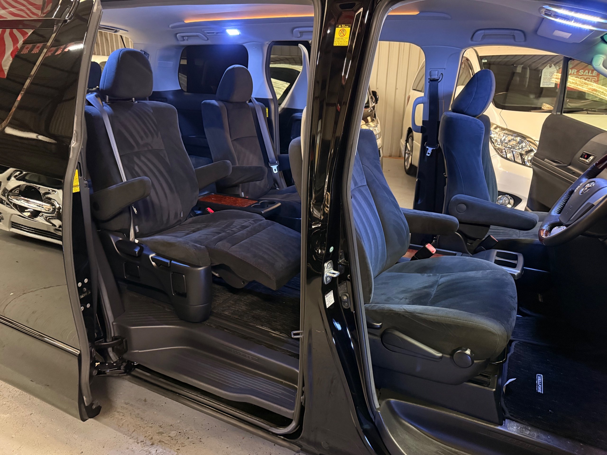 2010 Toyota Vellfire 2.4Z platinum Selection, Grade 4.5 2010-60-Reg, Finished in Stunning Unmarked Black paintwork, Twin Electric Soft Closing Sliding Doors, Electric Soft Closing Tailgate, Front spots Full Privacy Glass, Rear Spoiler with built in brake light, Stunning set of 20" Maverick Alloys, The best set of rear l.e.d Clear lights, Rear bumper l.e.d lights, Key-less Entry, Key-less start, 7 Seater 7 Unblemished Black Alcantara Seats, The centre seats are Lounge style seats with extra leg rests, The seats also slide forwards and backwards and side to side with a folding centre table with built in cup holders, easy access to the rear seats, The rear seats fold away to give way to a large boot, Strip L.E.D lighting, Ambient lighting, Push button Start, Front and Rear parking sensors, Traction Control, Front and Rear Electric windows, Colour reversing camera, UK Stereo with Apple CarPlay, Electric Tailgate, Isofix points, Only covered a Genuine 20,000 Miles With All the Genuine paperwork from Japan including the auction sheet and The Export Certificate which both prove the mileage and condition before it left Japan Nationwide delivery service available