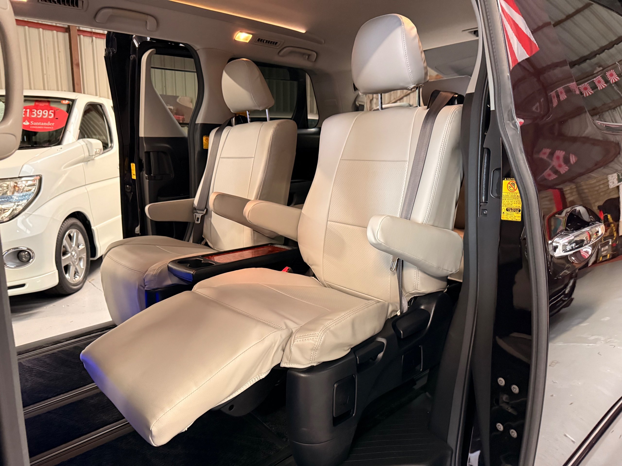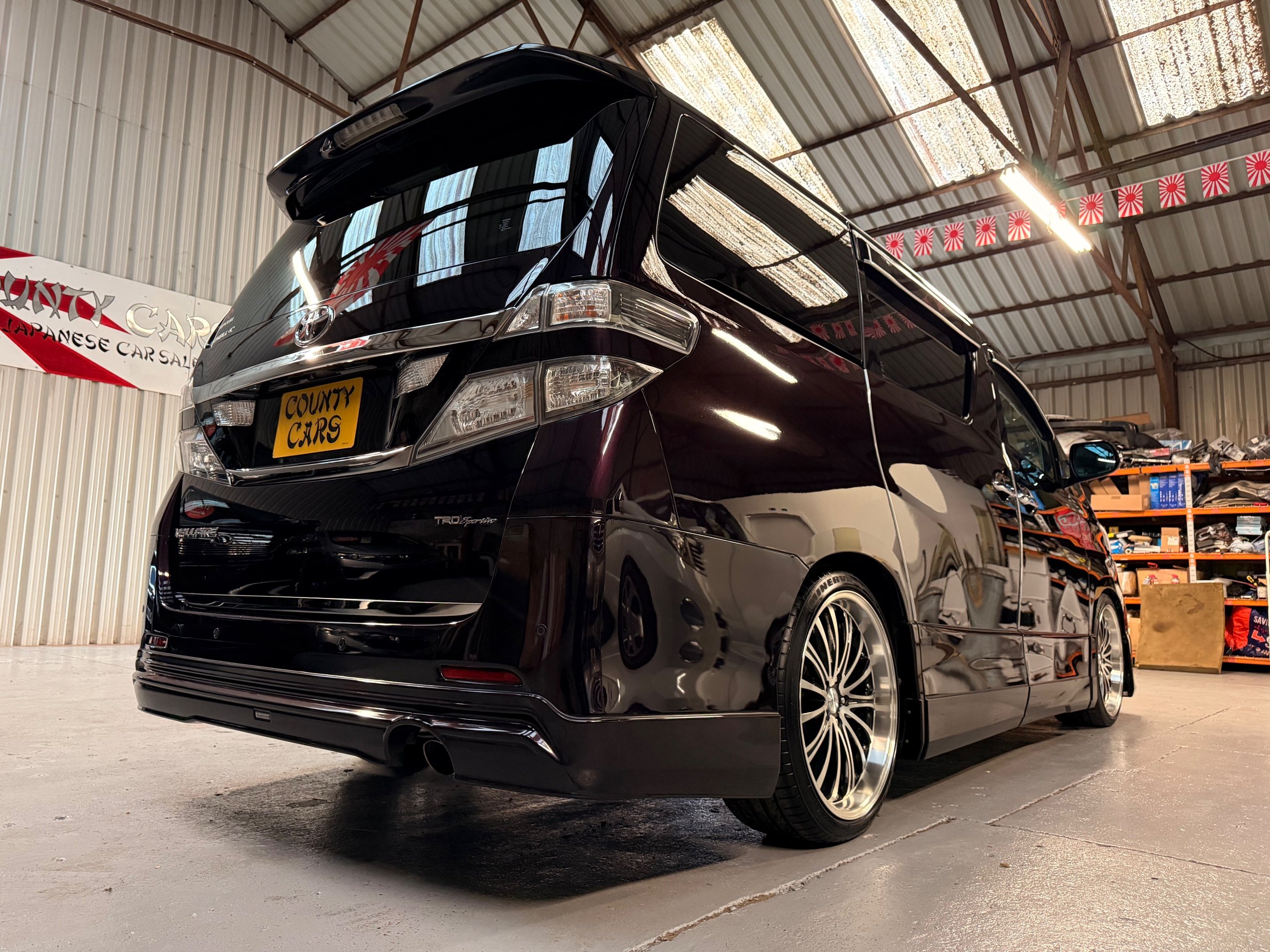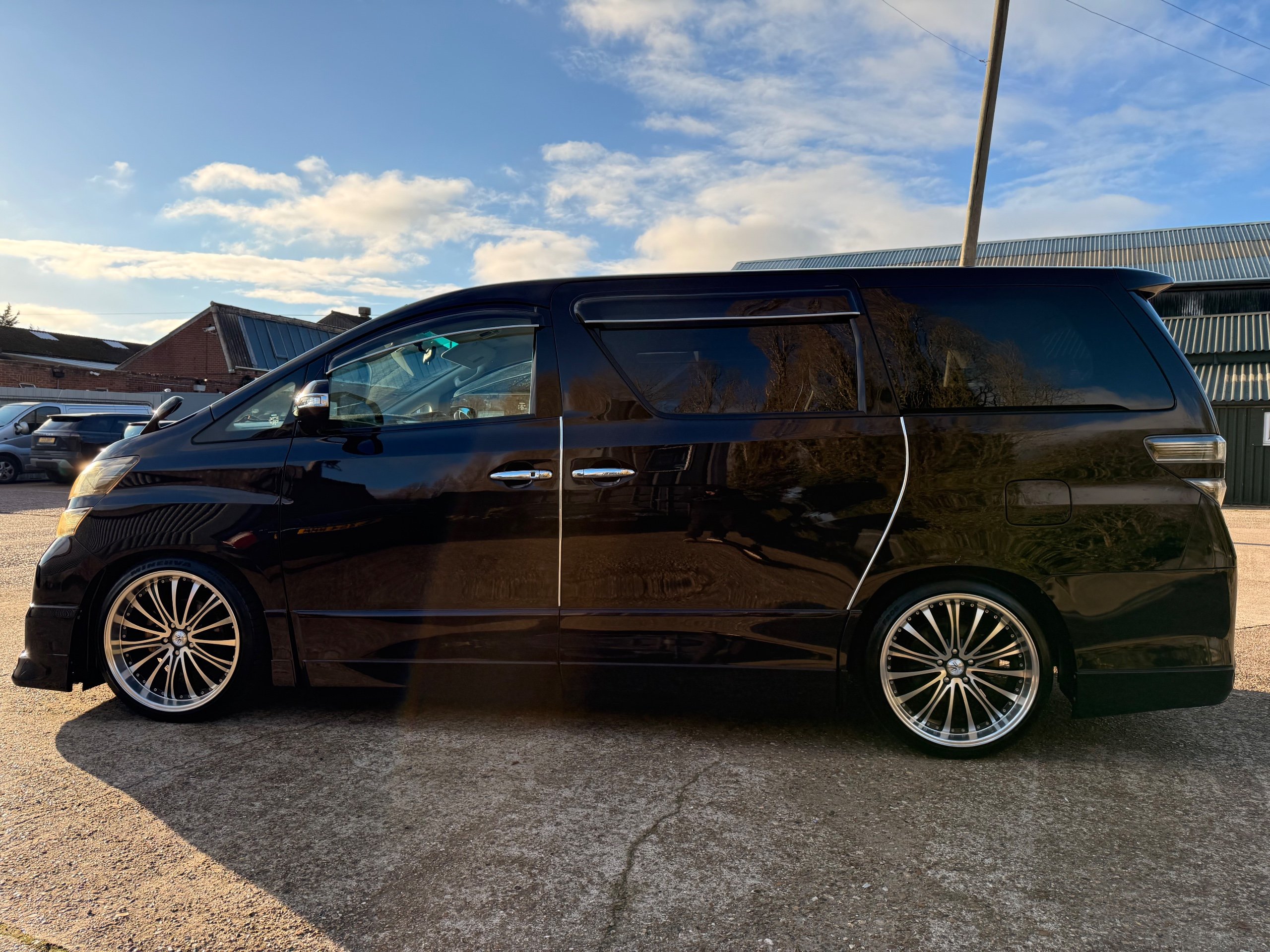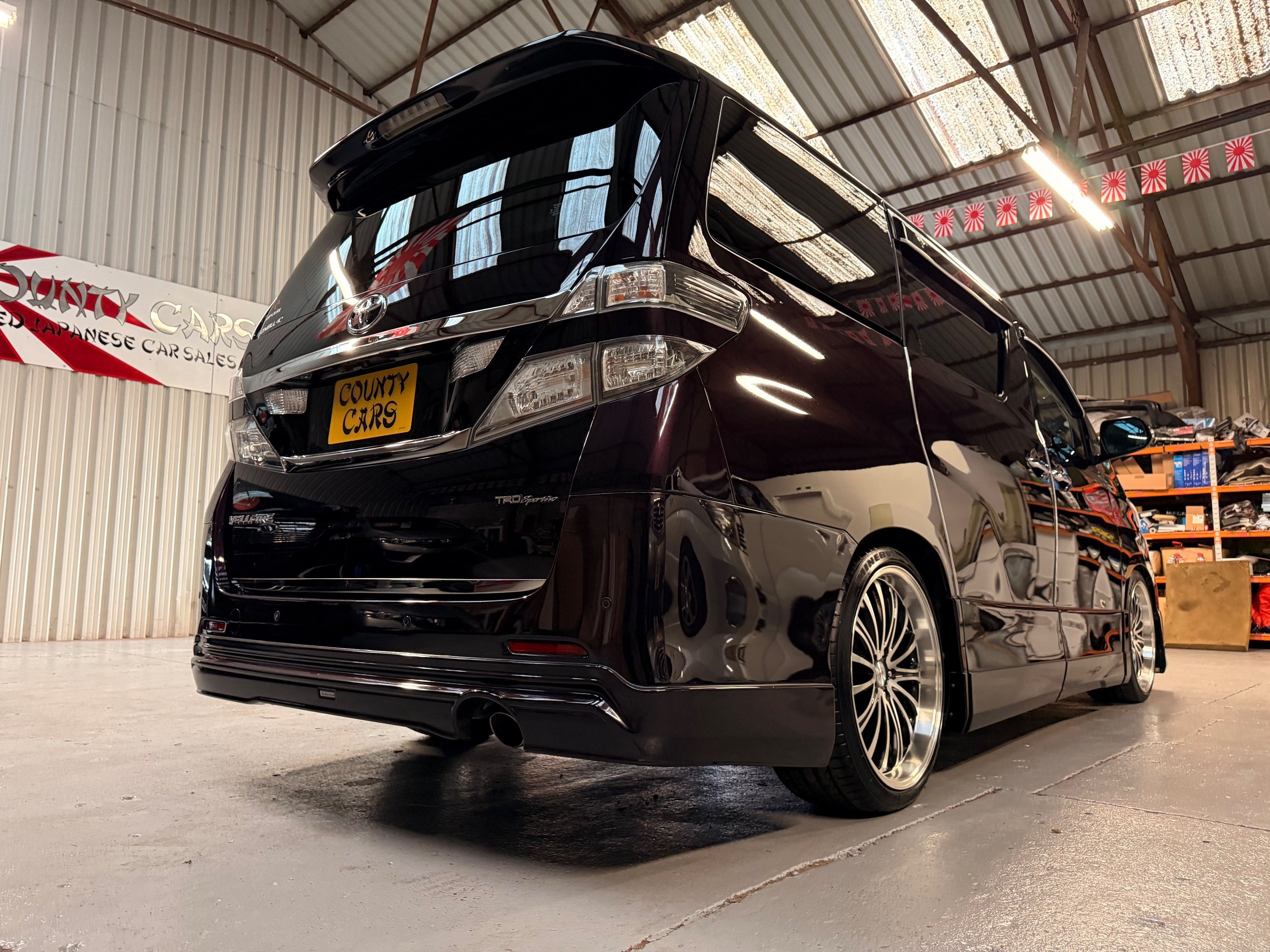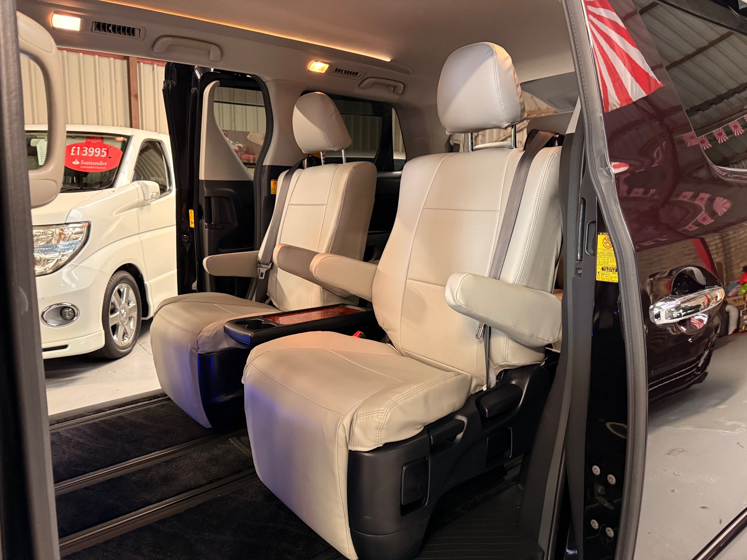 2010 Toyota Vellfire 2.4Z platinum Selection, 2010-10-Reg, Finished in Stunning Unmarked Metallic Purple paintwork, Twin Electric Soft Closing Sliding Doors, Electric Tailgate, Front spots with chrome covers, Full Privacy Glass, Rear Spoiler with built in brake light, L.E.D Lights, Chrome door handles, fold in wing mirrors with built in clear indicators with chrome covers, 20” multi spoke alloys with black gloss centres, rear chrome boot strip, Key-less Entry, Key-less start, 7 Seater 7 Unblemished Grey Leather look Expensive Seat Covers, The centre seats are Lounge style seats with extra leg rests, The seats also slide forwards and backwards and side to side with a folding centre table with built in cup holders, easy access to the rear seats, The rear seats fold away to give way to a large boot, Strip L.E.D lighting, blue foot well lights,Push button Start Front and Rear parking sensors, Traction Control, Front and Rear Electric windows, Colour reversing camera, Stereo with Apple CarPlay and Android Auto, Electric Tailgate, Isofix points, Full Dash Wood Kit, Chrome Air vent covers Only covered a Genuine 63,000 Miles With All the Genuine paperwork from Japan including the auction sheet and the Export Certificate which both prove the mileage and condition before it left Japan, Car VX Checked
