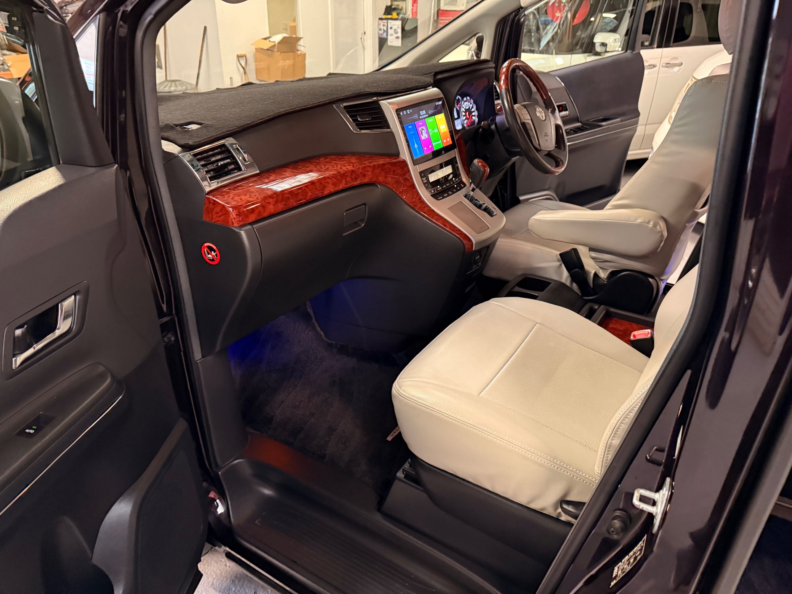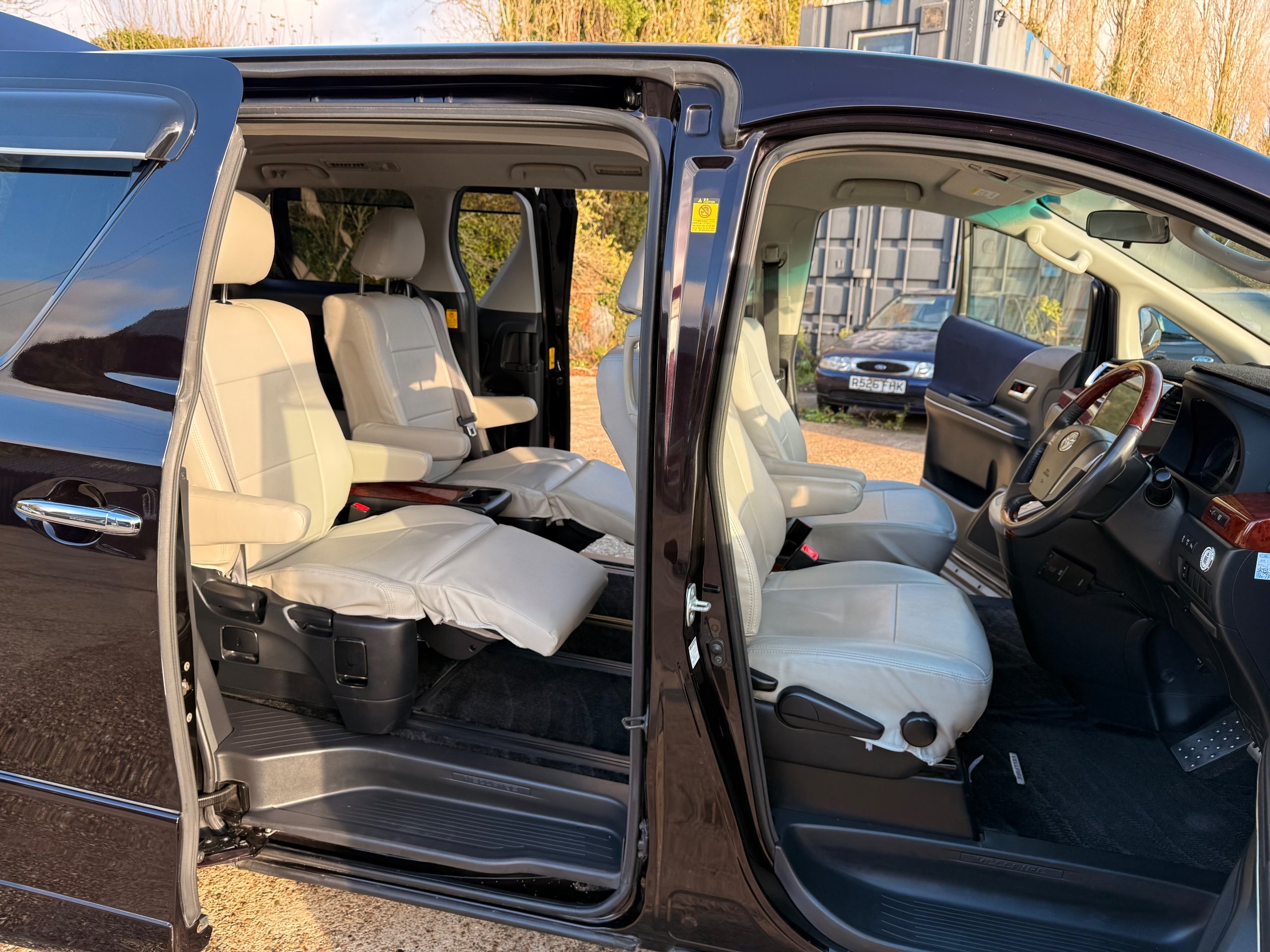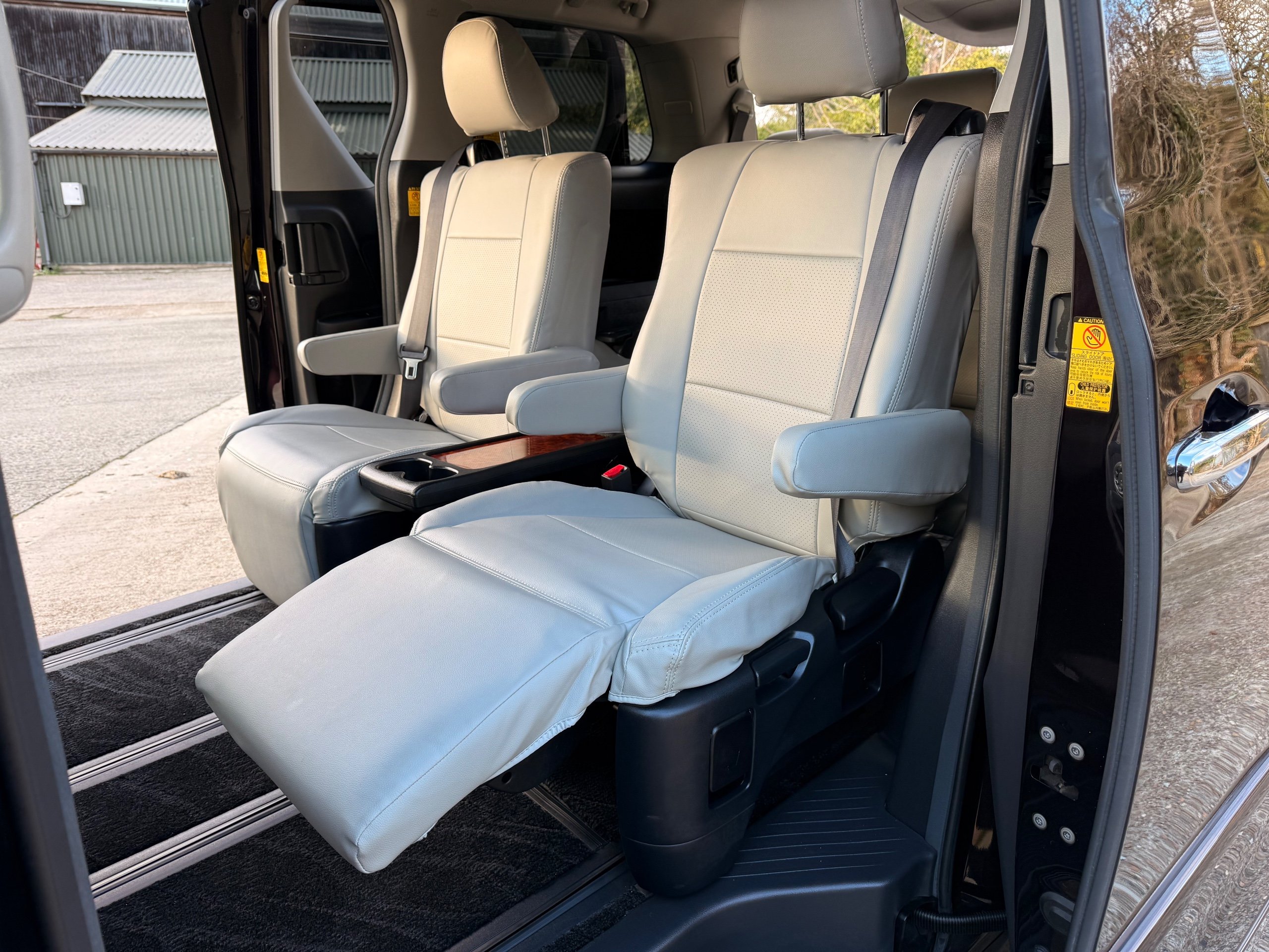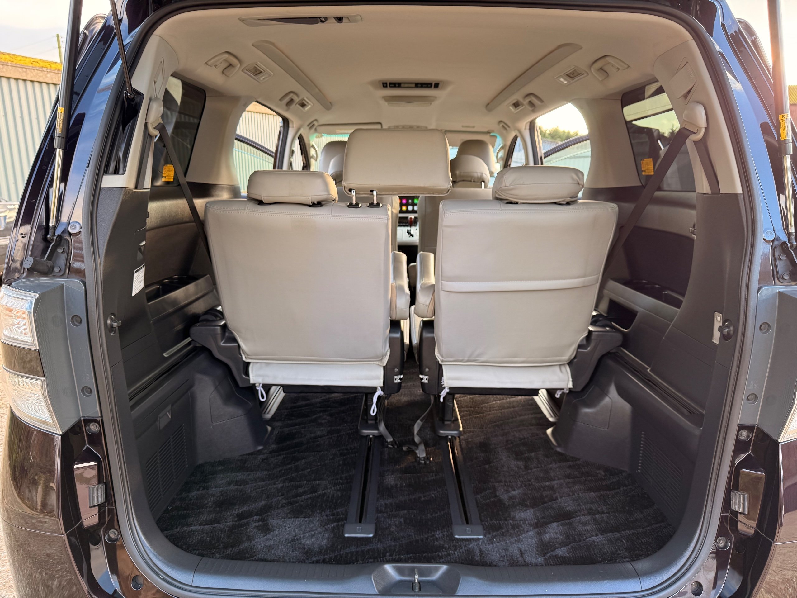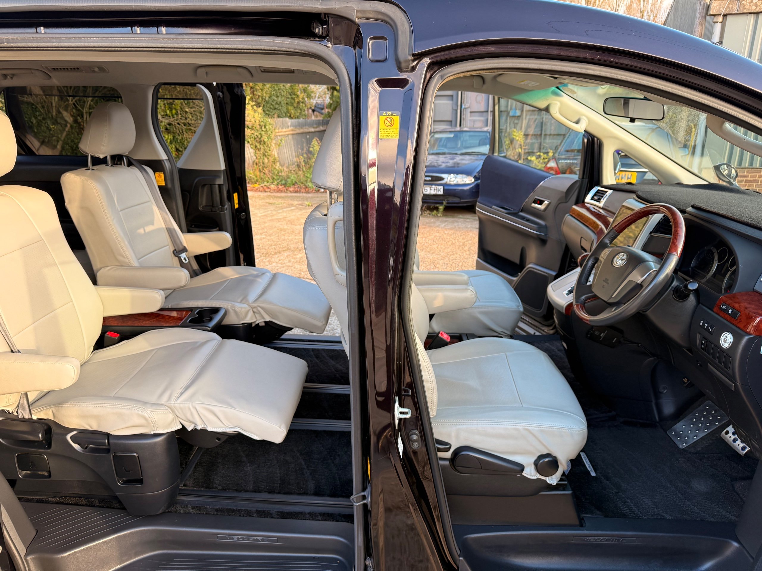 2010 Toyota Vellfire 2.4Z platinum Selection, 2010-10-Reg, Finished in Stunning Unmarked Metallic Purple paintwork, Twin Electric Soft Closing Sliding Doors, Electric Tailgate, Front spots with chrome covers, Full Privacy Glass, Rear Spoiler with built in brake light, L.E.D Lights, Chrome door handles, fold in wing mirrors with built in clear indicators with chrome covers, 20” multi spoke alloys with black gloss centres, rear chrome boot strip, Key-less Entry, Key-less start, 7 Seater 7 Unblemished Grey Leather look Expensive Seat Covers, The centre seats are Lounge style seats with extra leg rests, The seats also slide forwards and backwards and side to side with a folding centre table with built in cup holders, easy access to the rear seats, The rear seats fold away to give way to a large boot, Strip L.E.D lighting, blue foot well lights,Push button Start Front and Rear parking sensors, Traction Control, Front and Rear Electric windows, Colour reversing camera, Stereo with Apple CarPlay and Android Auto, Electric Tailgate, Isofix points, Full Dash Wood Kit, Chrome Air vent covers Only covered a Genuine 63,000 Miles With All the Genuine paperwork from Japan including the auction sheet and the Export Certificate which both prove the mileage and condition before it left Japan, Car VX Checked