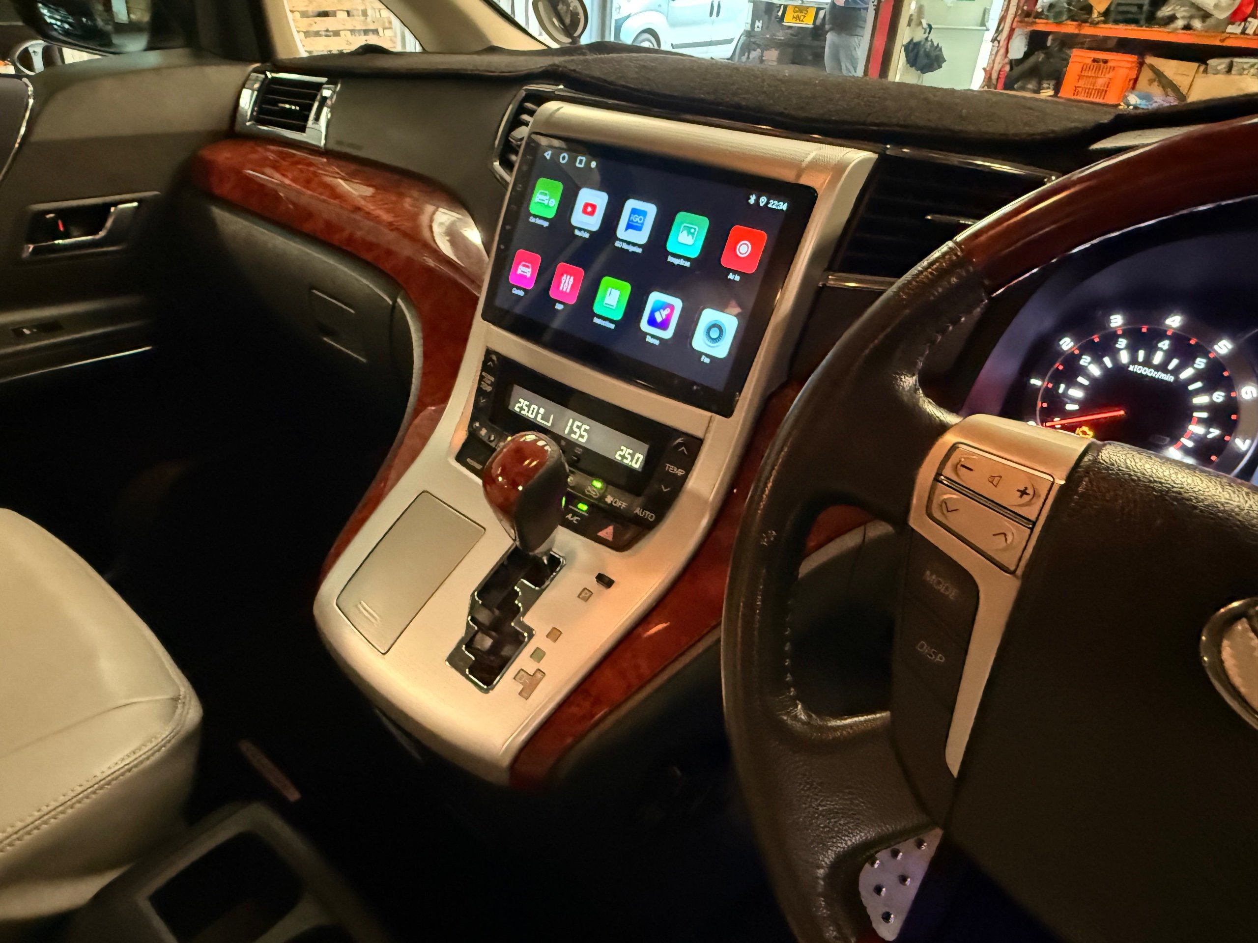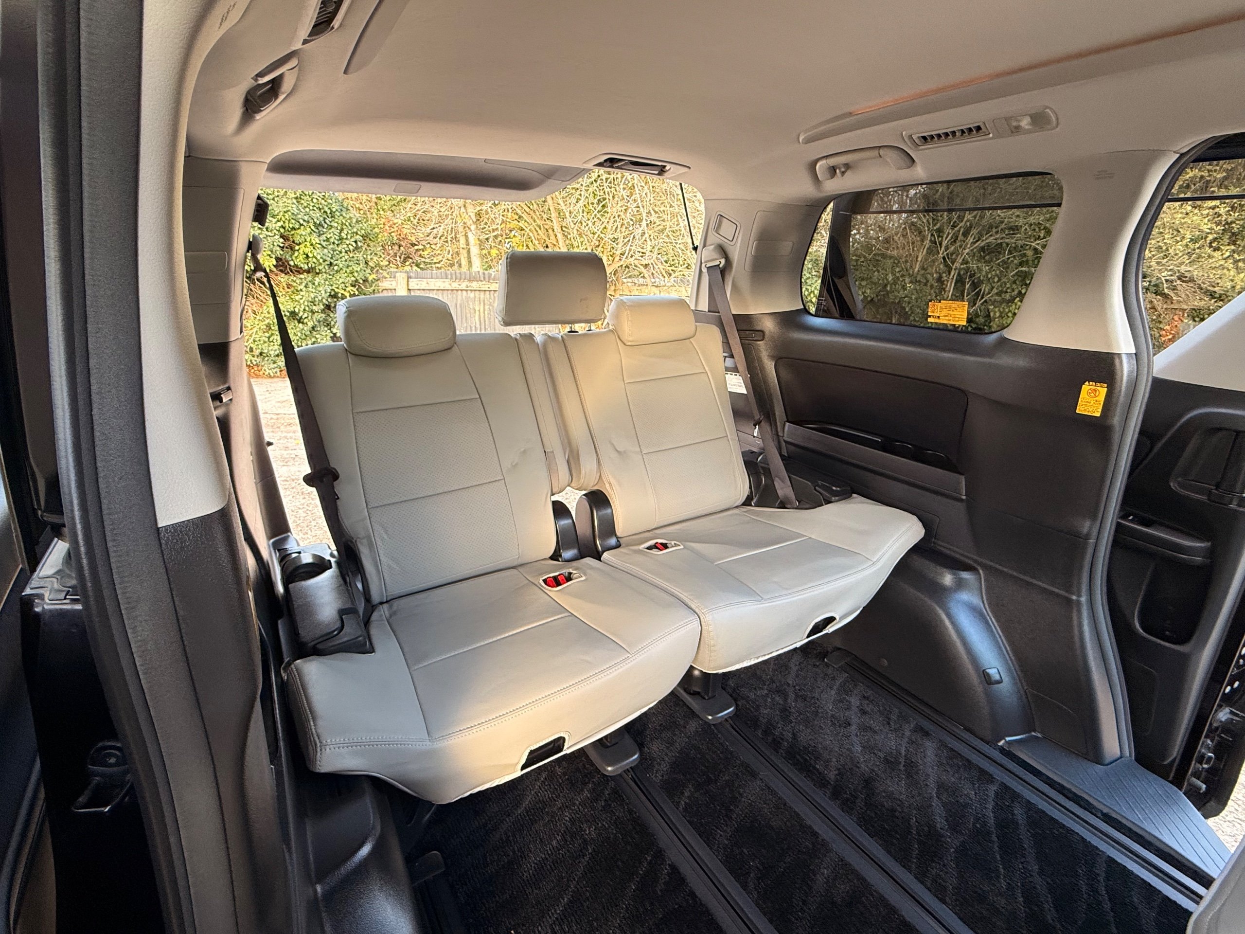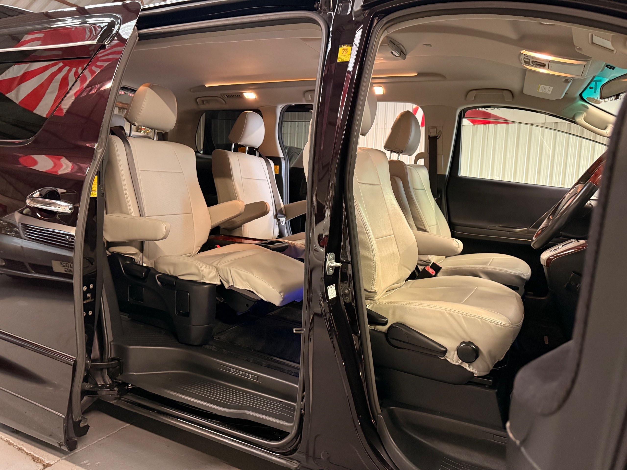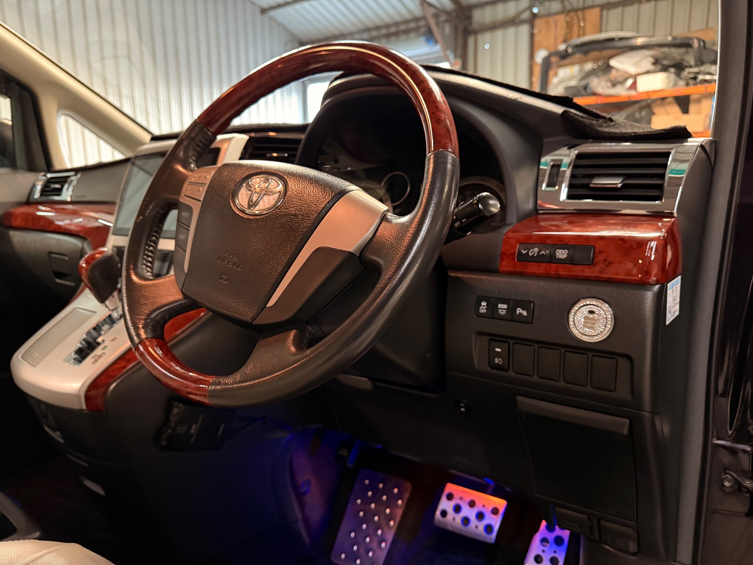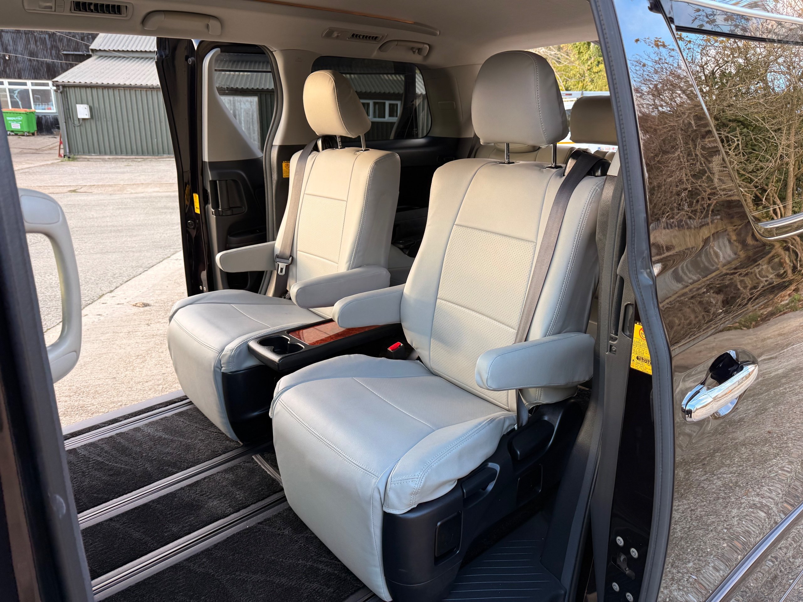2010 Toyota Vellfire 2.4Z platinum Selection, 2010-10-Reg, Finished in Stunning Unmarked Metallic Purple paintwork, Twin Electric Soft Closing Sliding Doors, Electric Tailgate, Front spots with chrome covers, Full Privacy Glass, Rear Spoiler with built in brake light, L.E.D Lights, Chrome door handles, fold in wing mirrors with built in clear indicators with chrome covers, 20” multi spoke alloys with black gloss centres, rear chrome boot strip, Key-less Entry, Key-less start, 7 Seater 7 Unblemished Grey Leather look Expensive Seat Covers, The centre seats are Lounge style seats with extra leg rests, The seats also slide forwards and backwards and side to side with a folding centre table with built in cup holders, easy access to the rear seats, The rear seats fold away to give way to a large boot, Strip L.E.D lighting, blue foot well lights,Push button Start Front and Rear parking sensors, Traction Control, Front and Rear Electric windows, Colour reversing camera, Stereo with Apple CarPlay and Android Auto, Electric Tailgate, Isofix points, Full Dash Wood Kit, Chrome Air vent covers Only covered a Genuine 63,000 Miles With All the Genuine paperwork from Japan including the auction sheet and the Export Certificate which both prove the mileage and condition before it left Japan, Car VX Checked